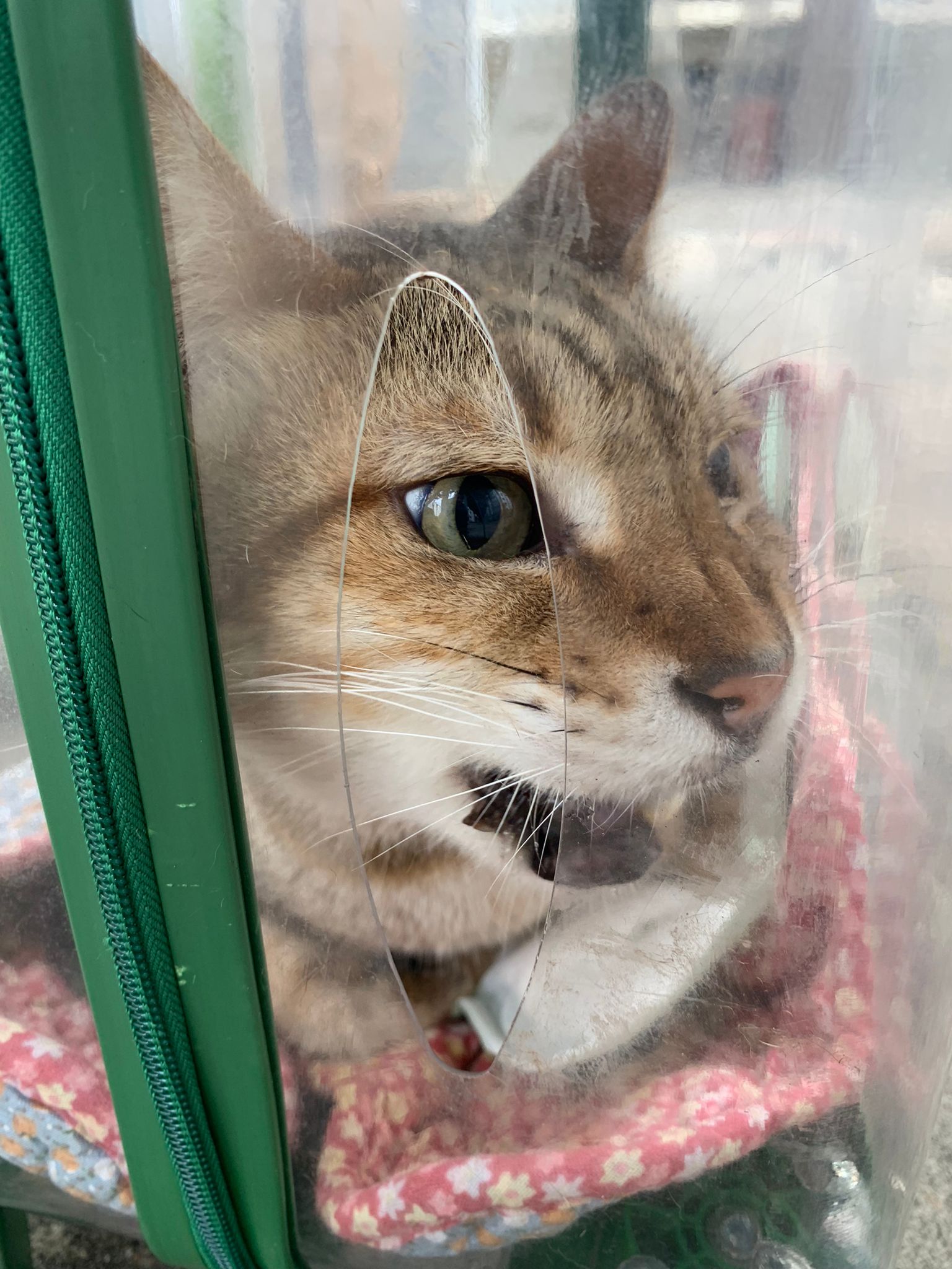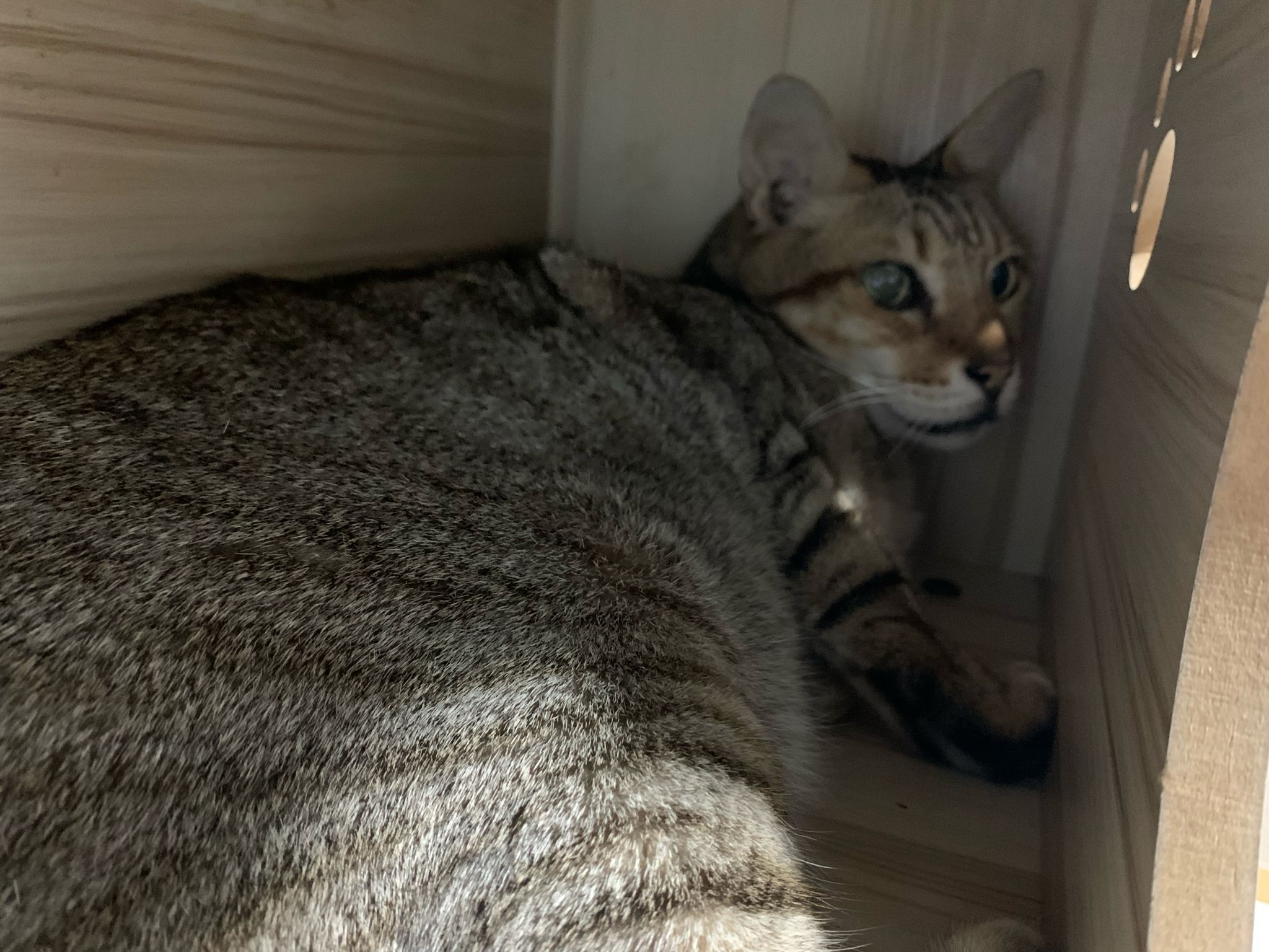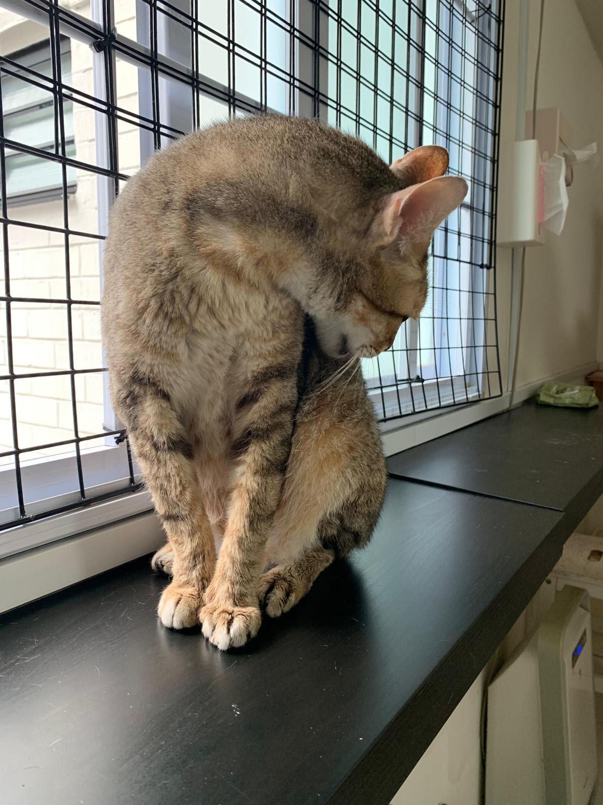 12pm+: I’m back he didn’t move. Vacuum also can’t scare him out. I tilt condo till if almost collaps then he come out. Given bupre. Bring good plate to him not eating. lucky I open instructive pouch he willing eat (a little) didn’t weigh but he obviously become thinner n weaker and lost a lot of muscle mass.