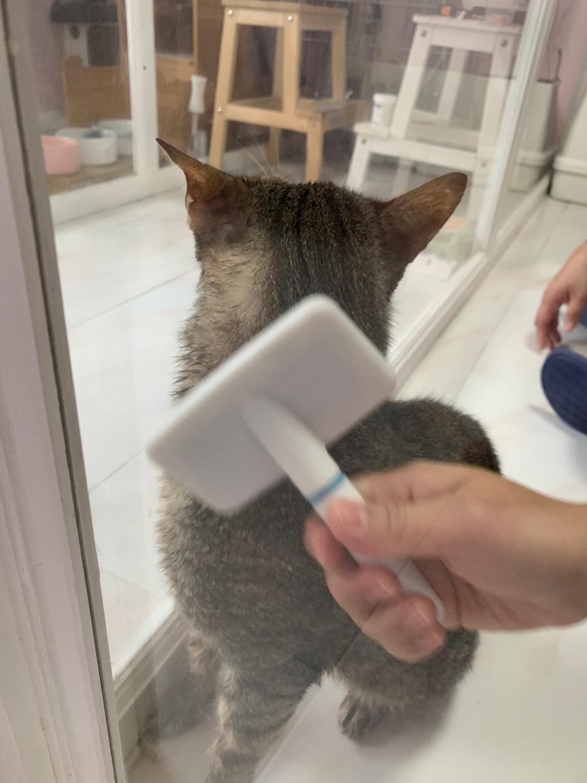 • he groom brownie n brownie use paw push his face away and he slam dunk brownie to the floor