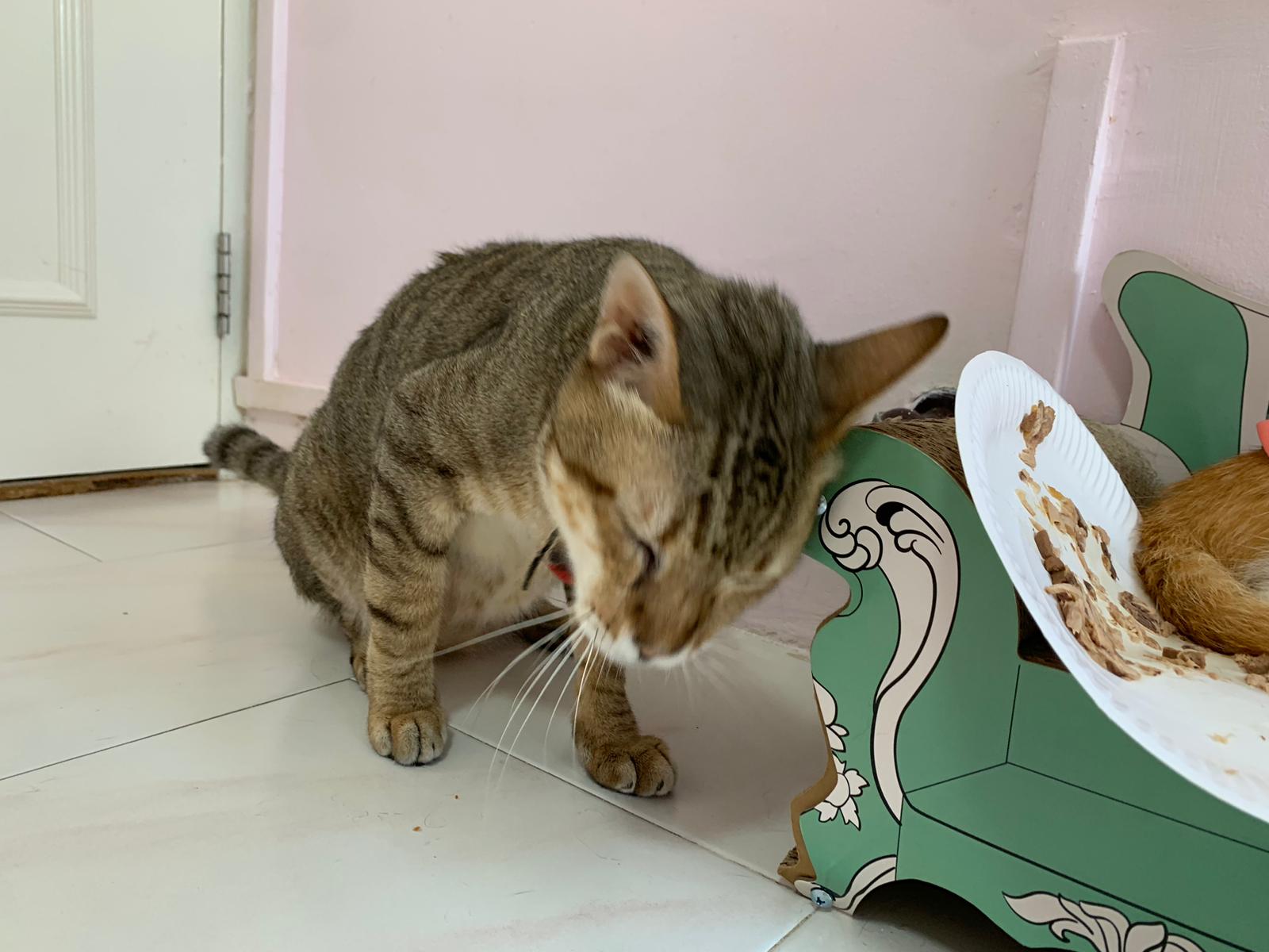• alley recently not enthu in food – will be at basin area- got eat but not like young will snatch for food – like fo accompany me in toilet