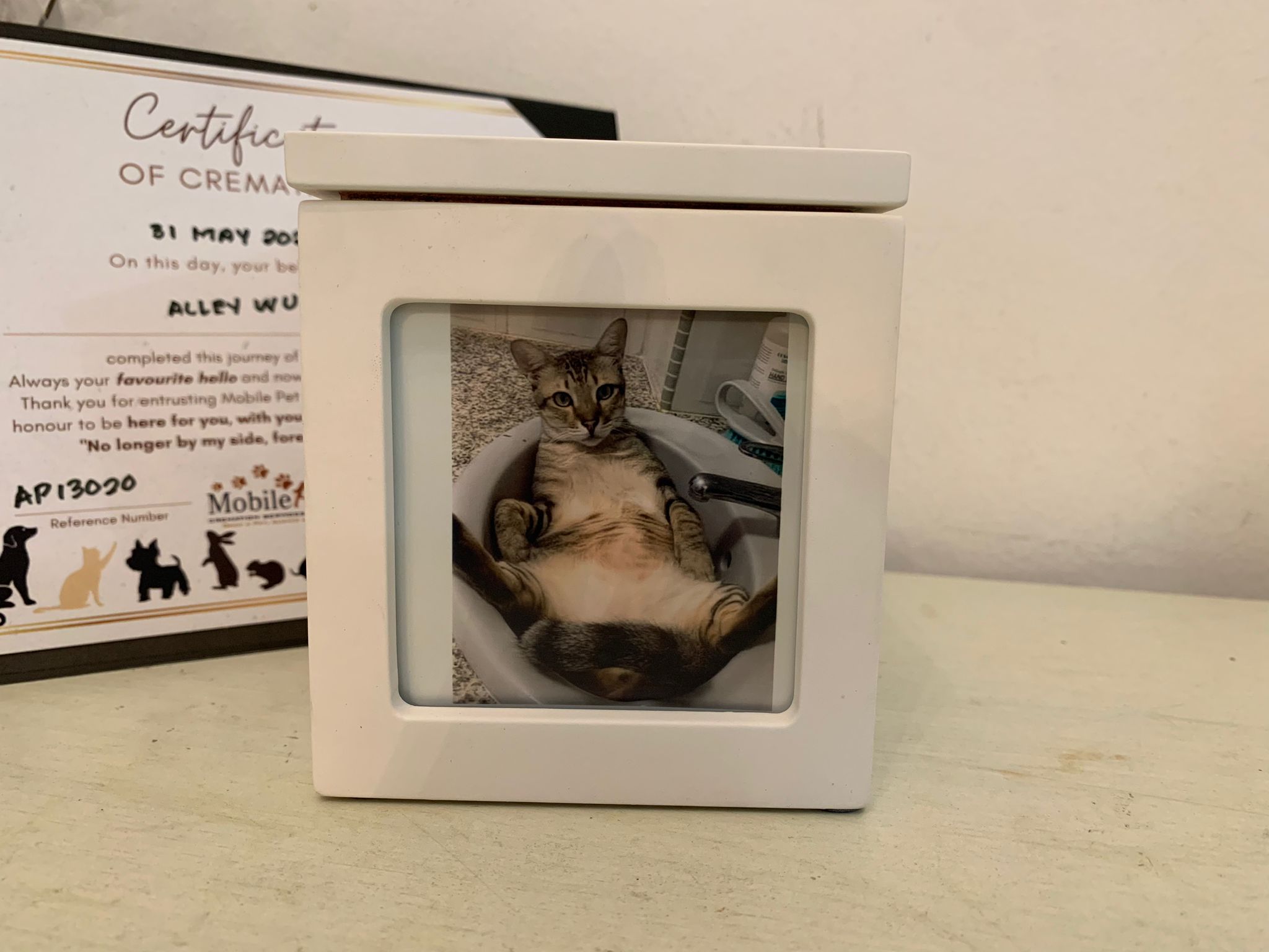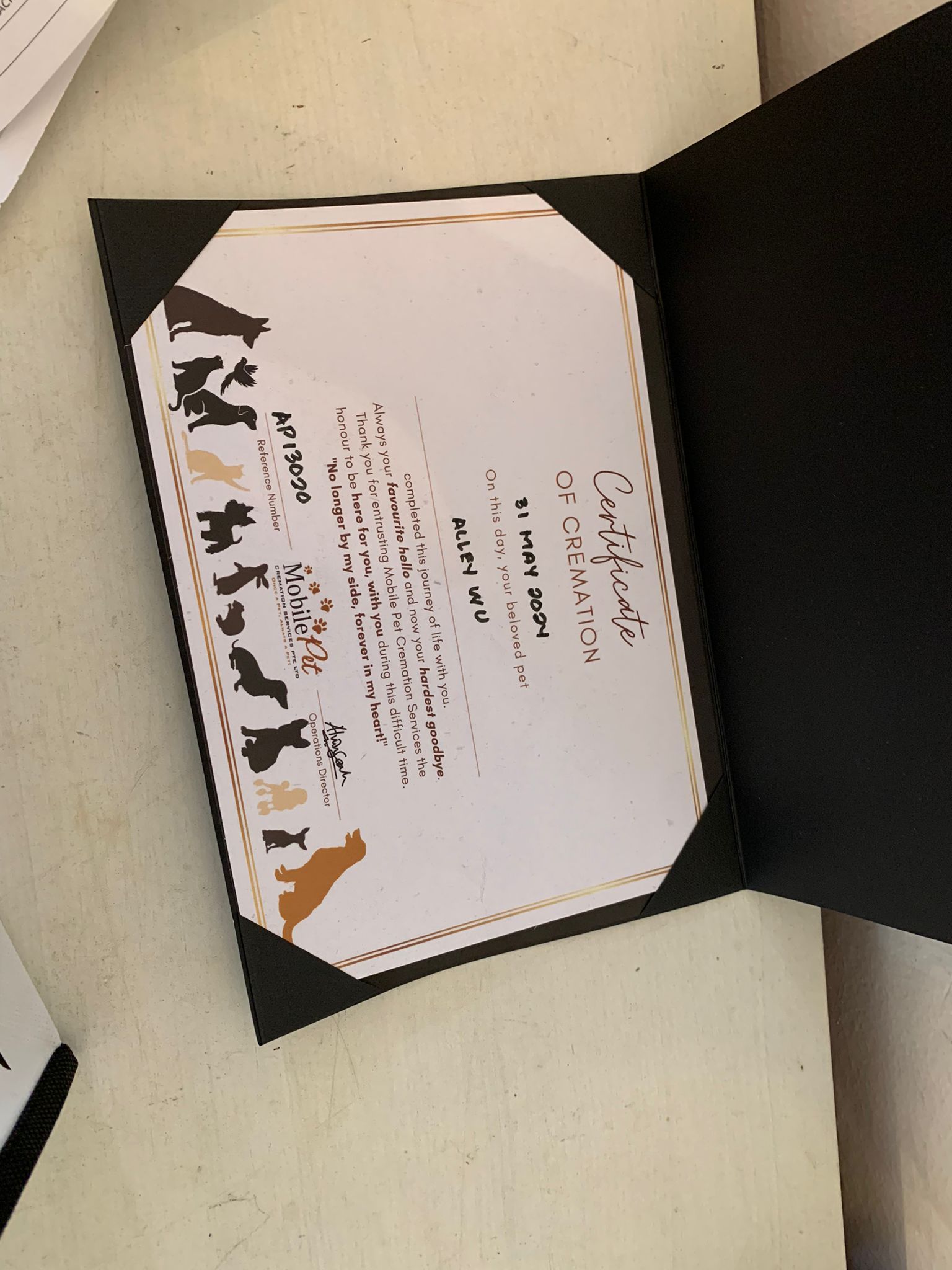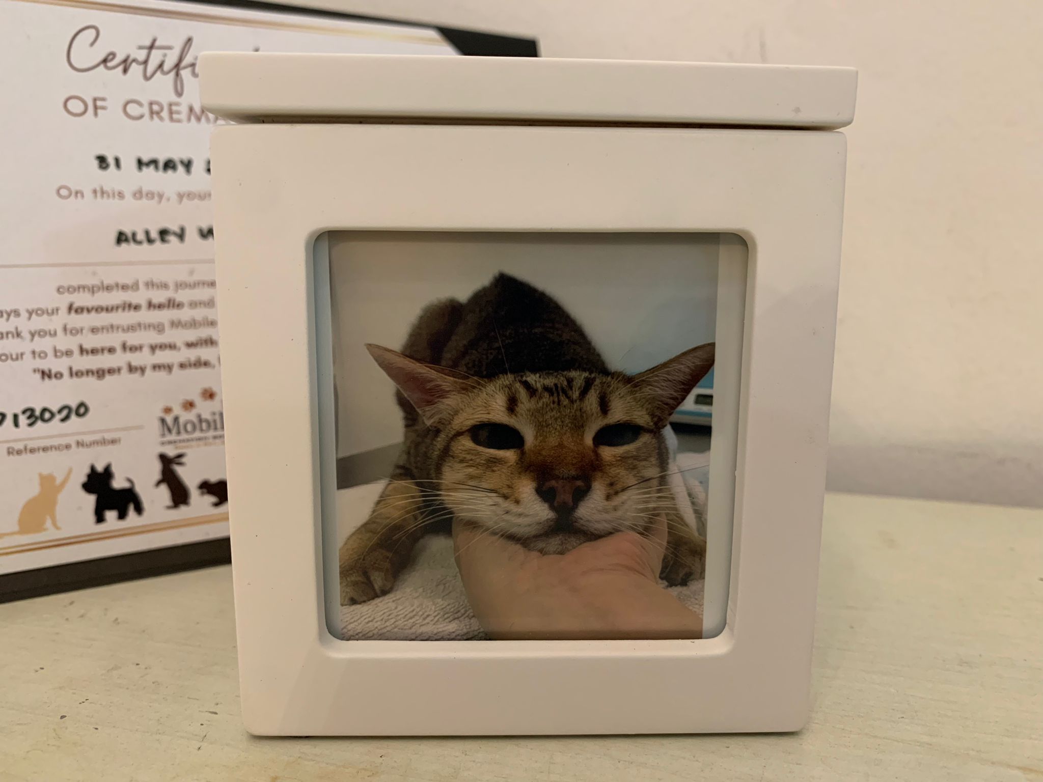 I alr know he is gone but when I touch him I still sad. My alley. I know you for so many years alr. Cut off his nasal tube and sayang him.