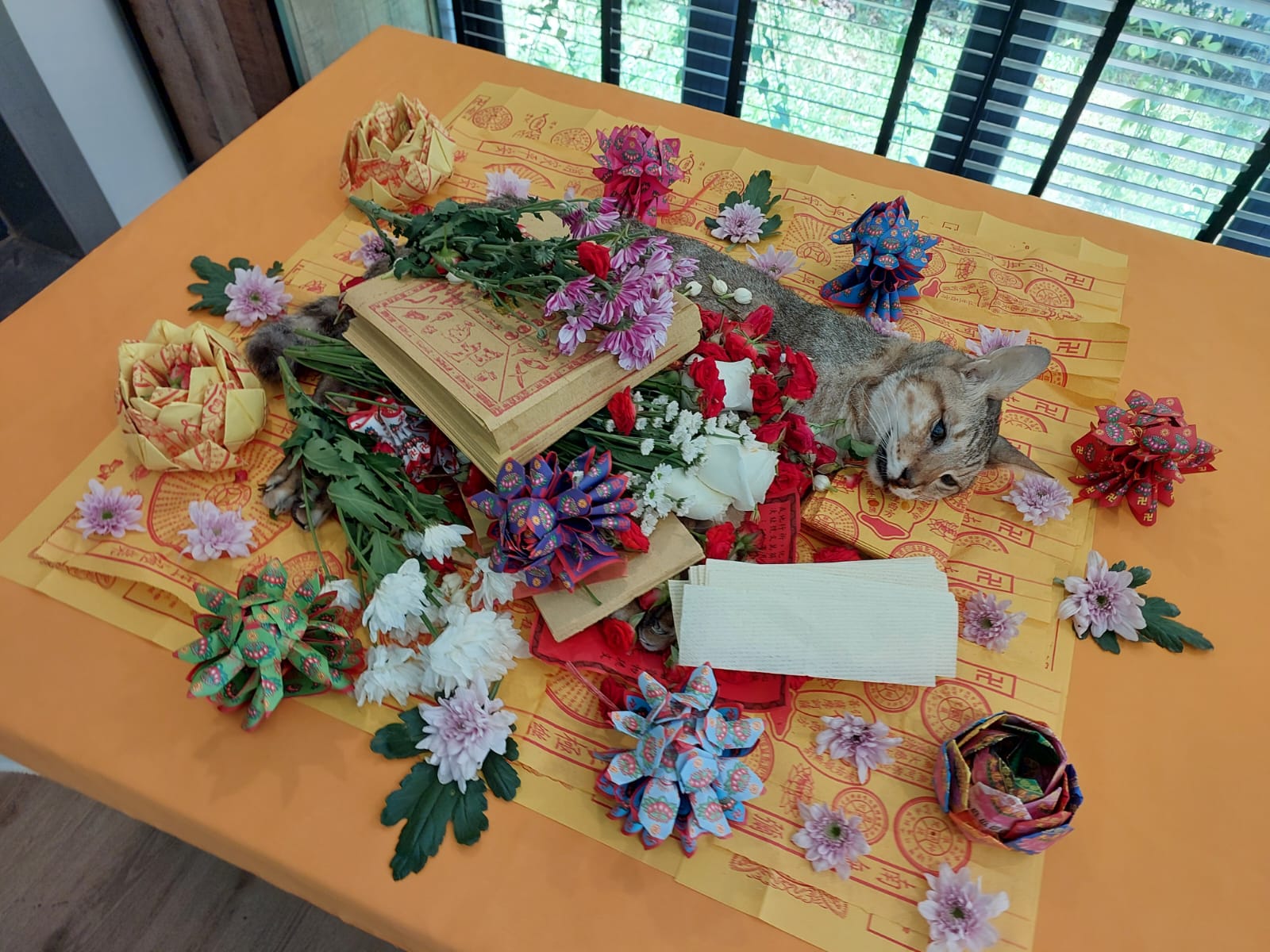 Made decision: let him stay in room since it’s aircon. Just don’t put flowers.