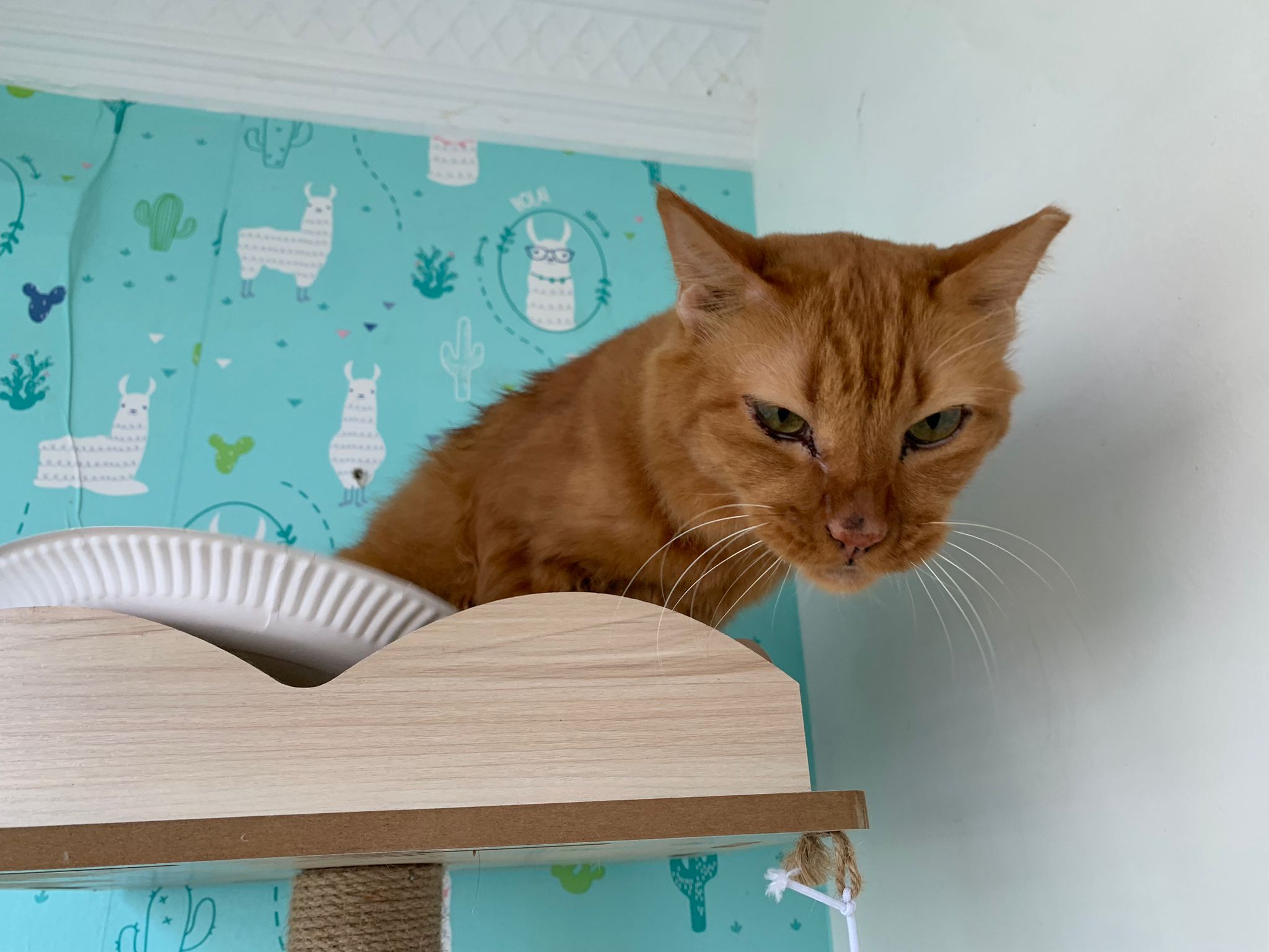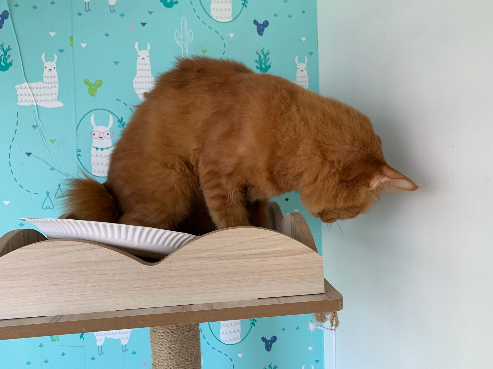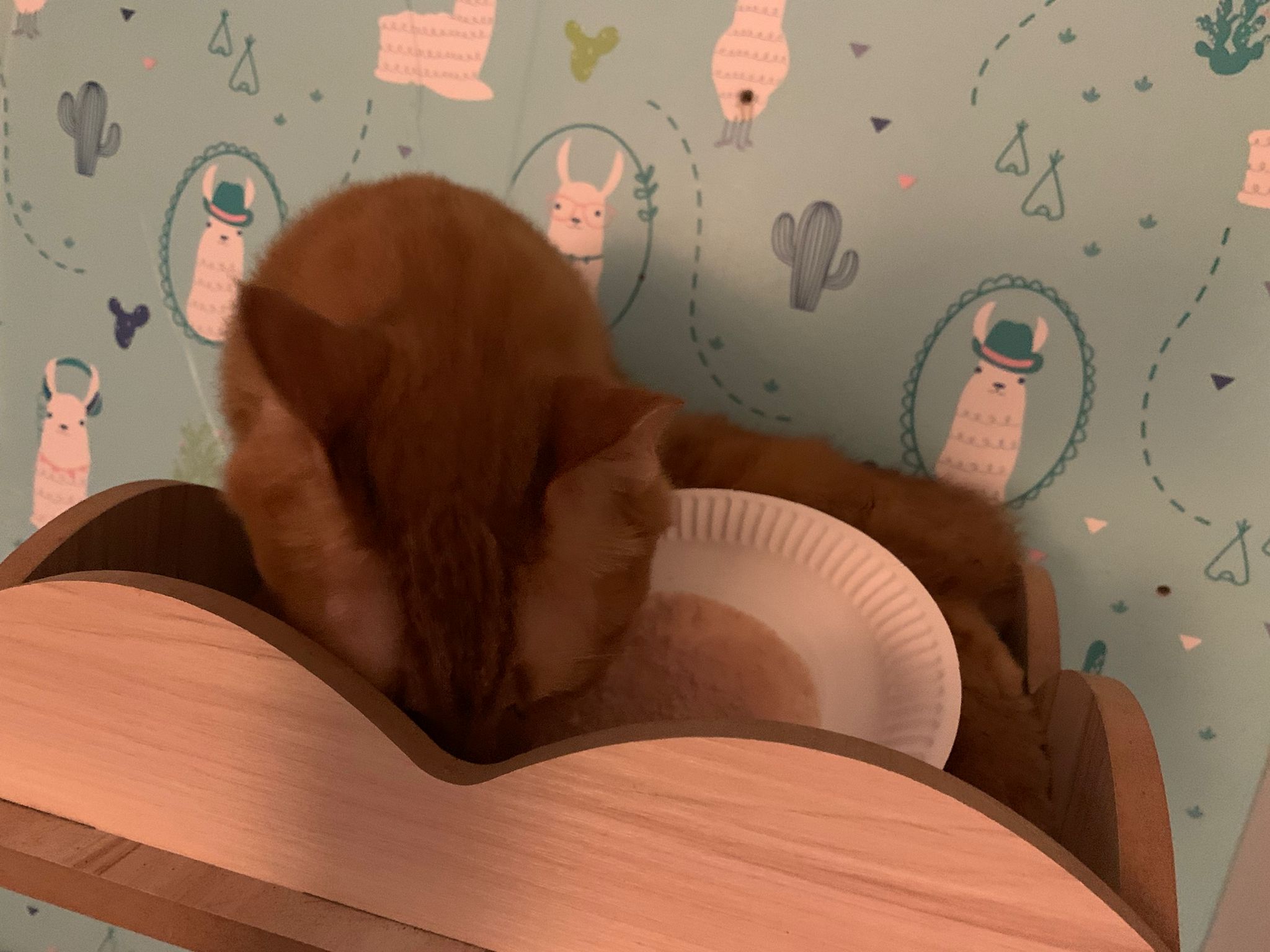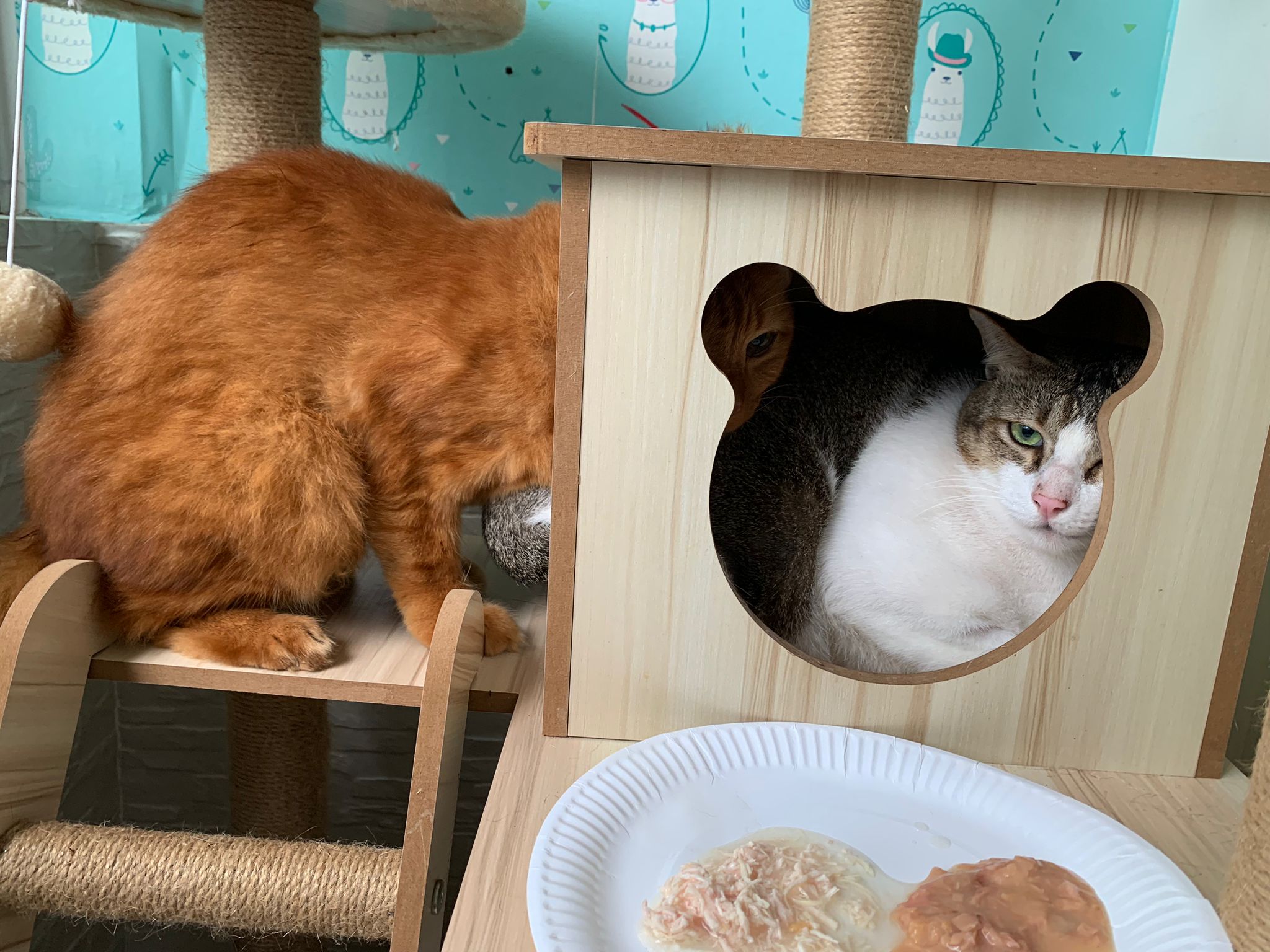 430pm: Serve him ciao cup. Told him that’s 猫房 cats fav. He is sleeping at the biggest deck.