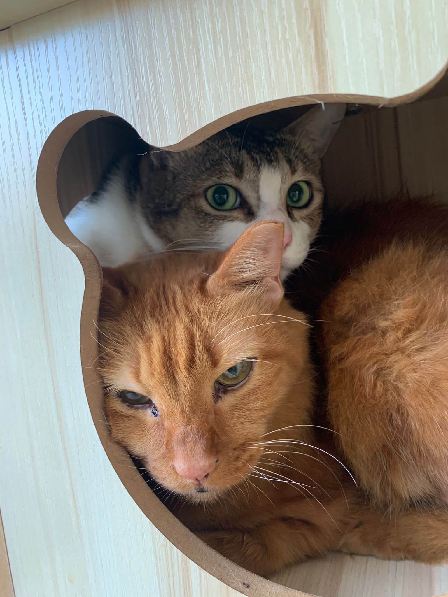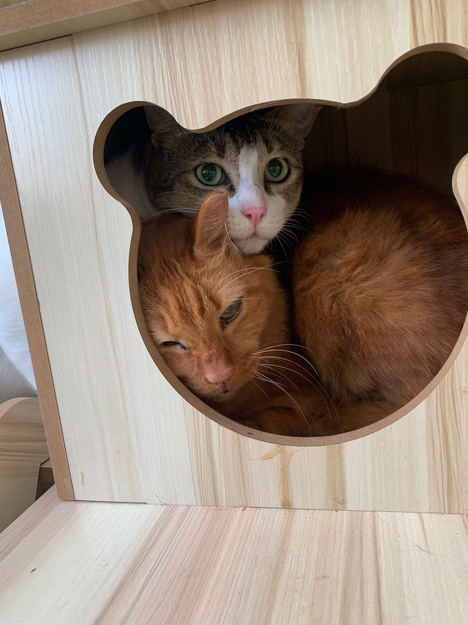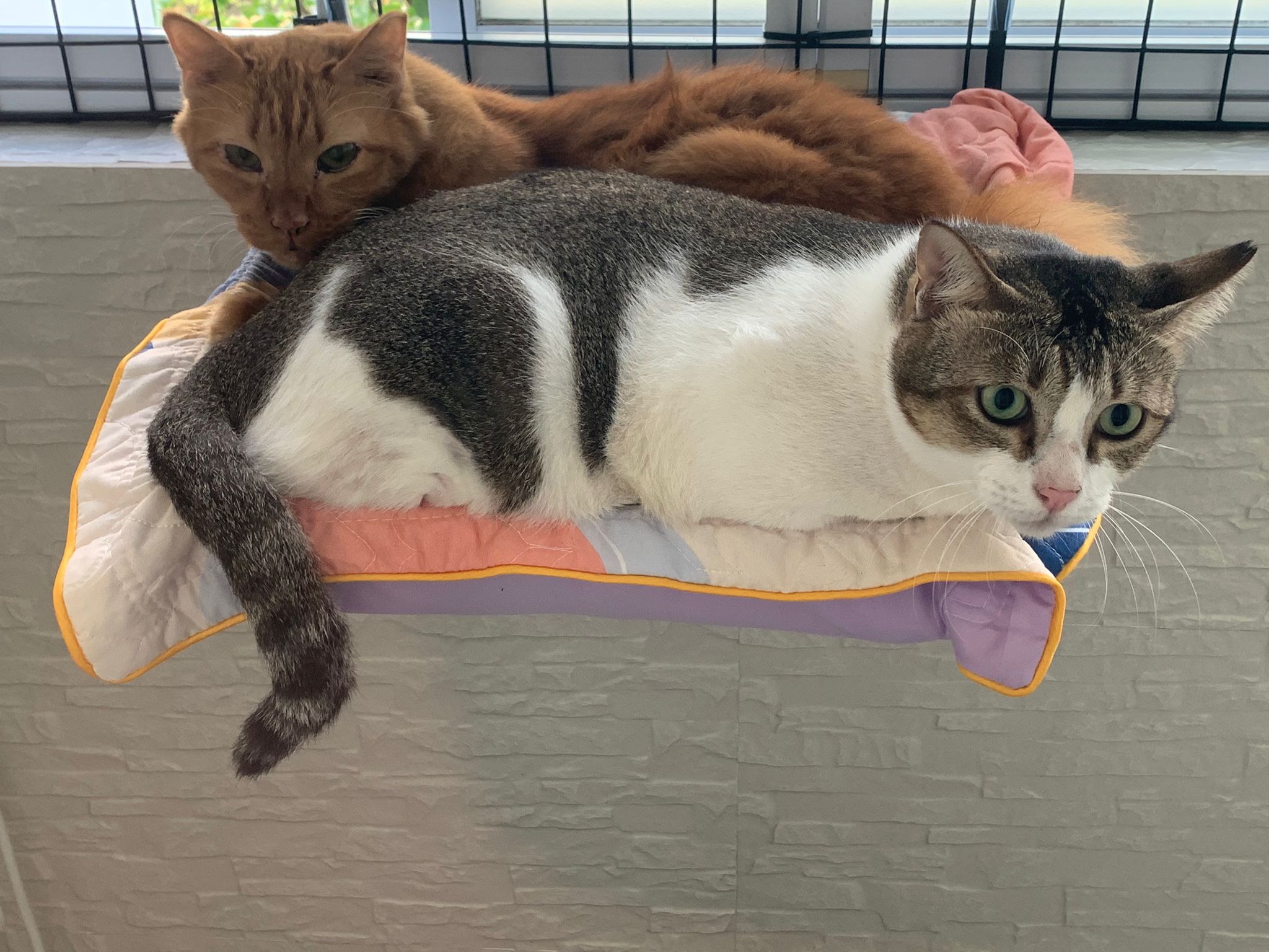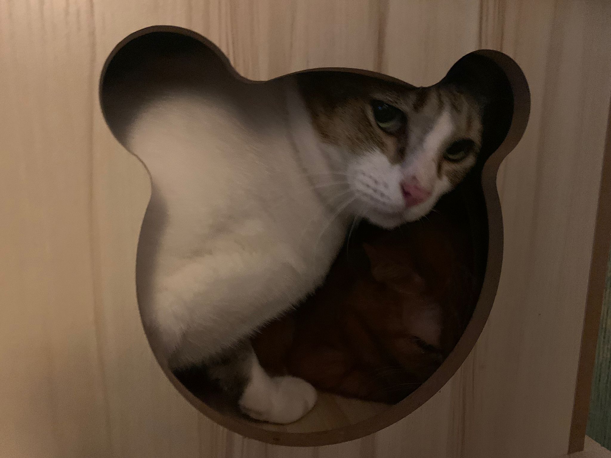 920am: wa today both at condo. Ein at the top deck again. they didn’t sleep on hanging bed anymore. Thru the night, they take turn to be on the hanging bed, ein on it the most time 2-5am, still grooming himself, someone confirm eat kibble.