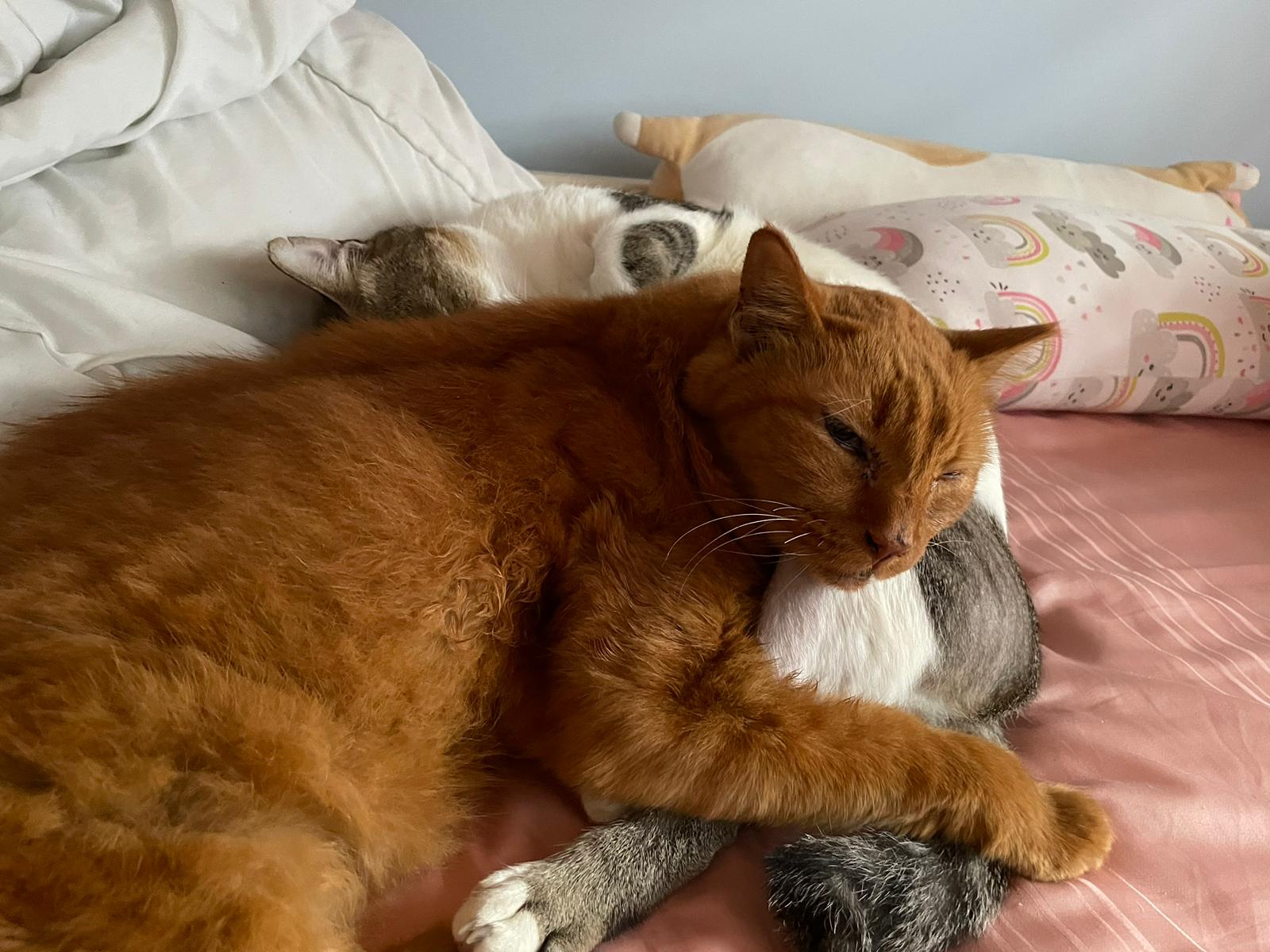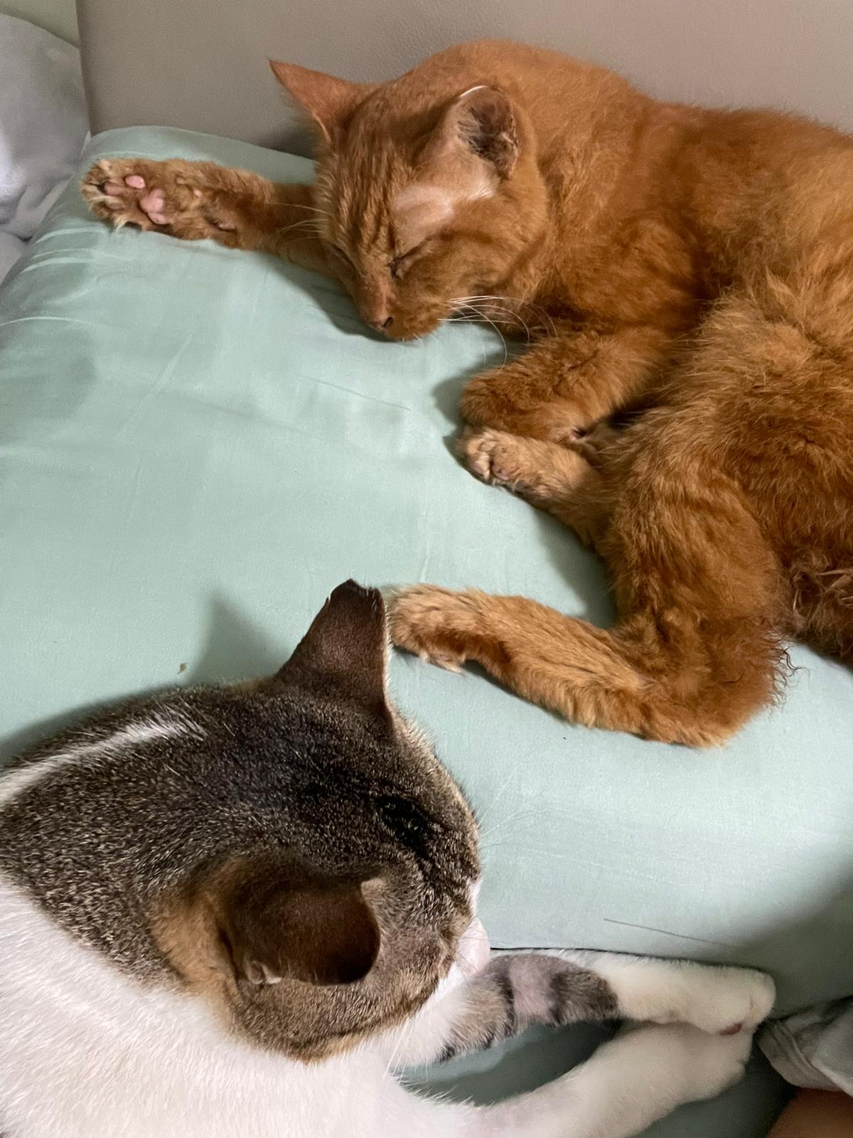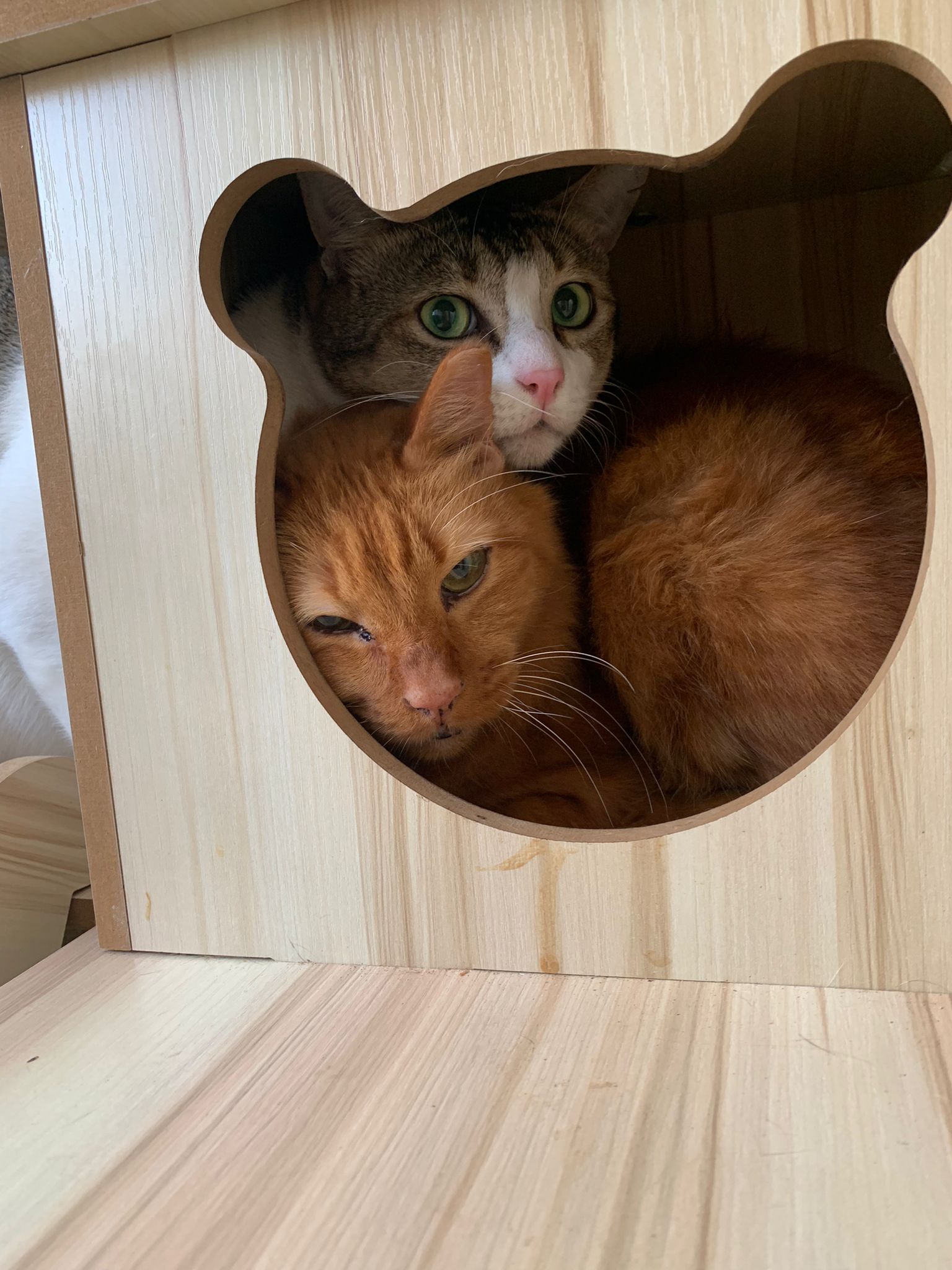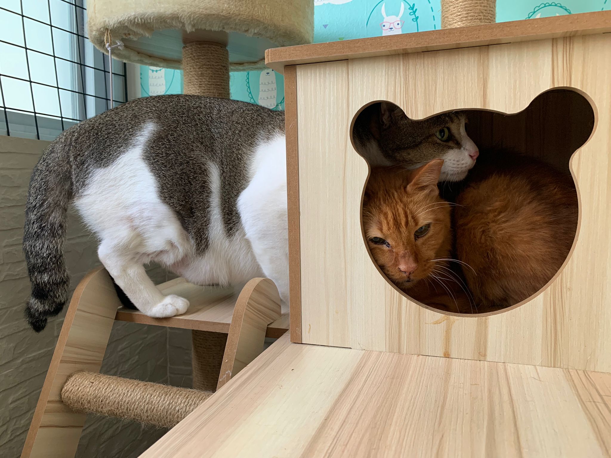 920am: wa today both at condo. Ein at the top deck again. they didn’t sleep on hanging bed anymore. Thru the night, they take turn to be on the hanging bed, ein on it the most time 2-5am, still grooming himself, someone confirm eat kibble.