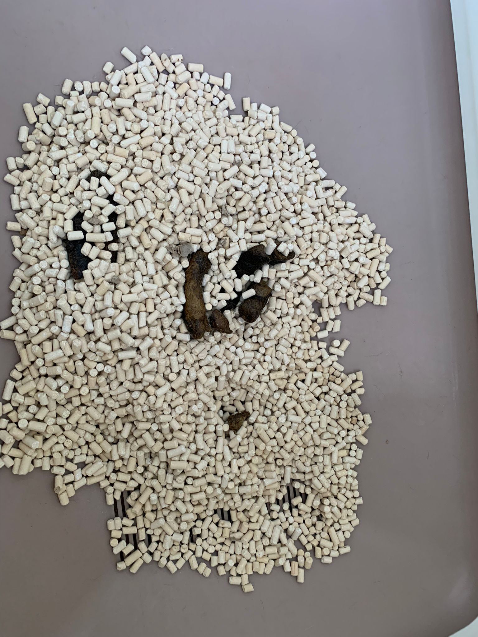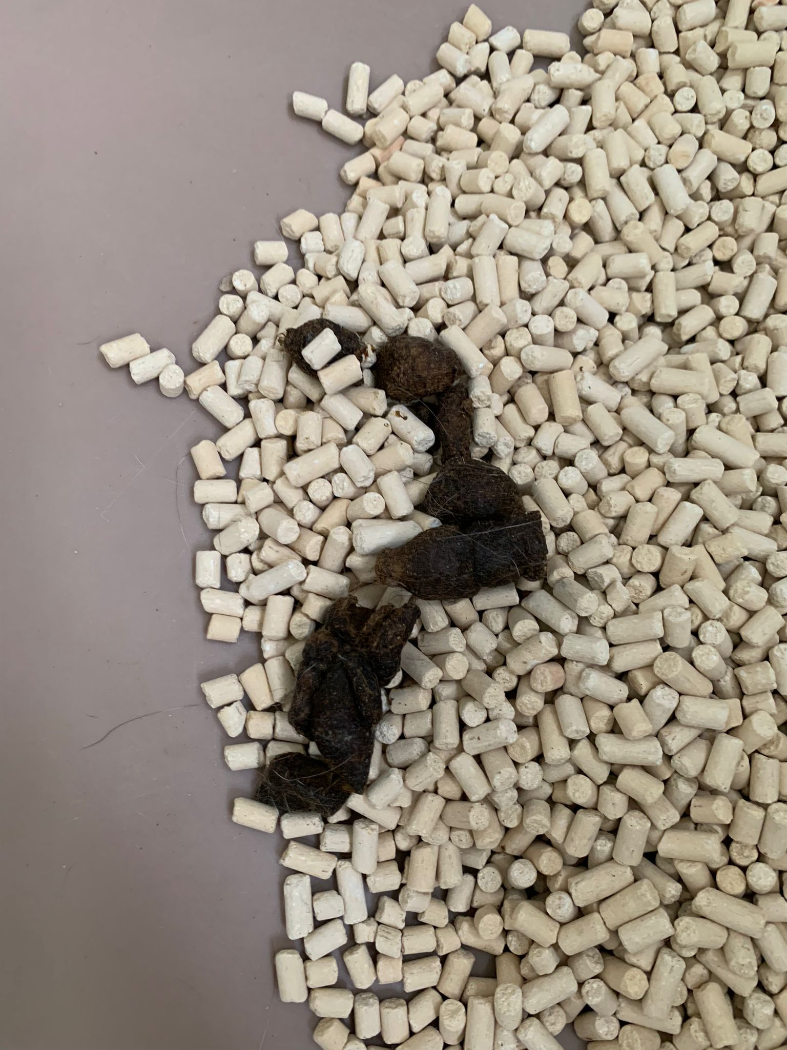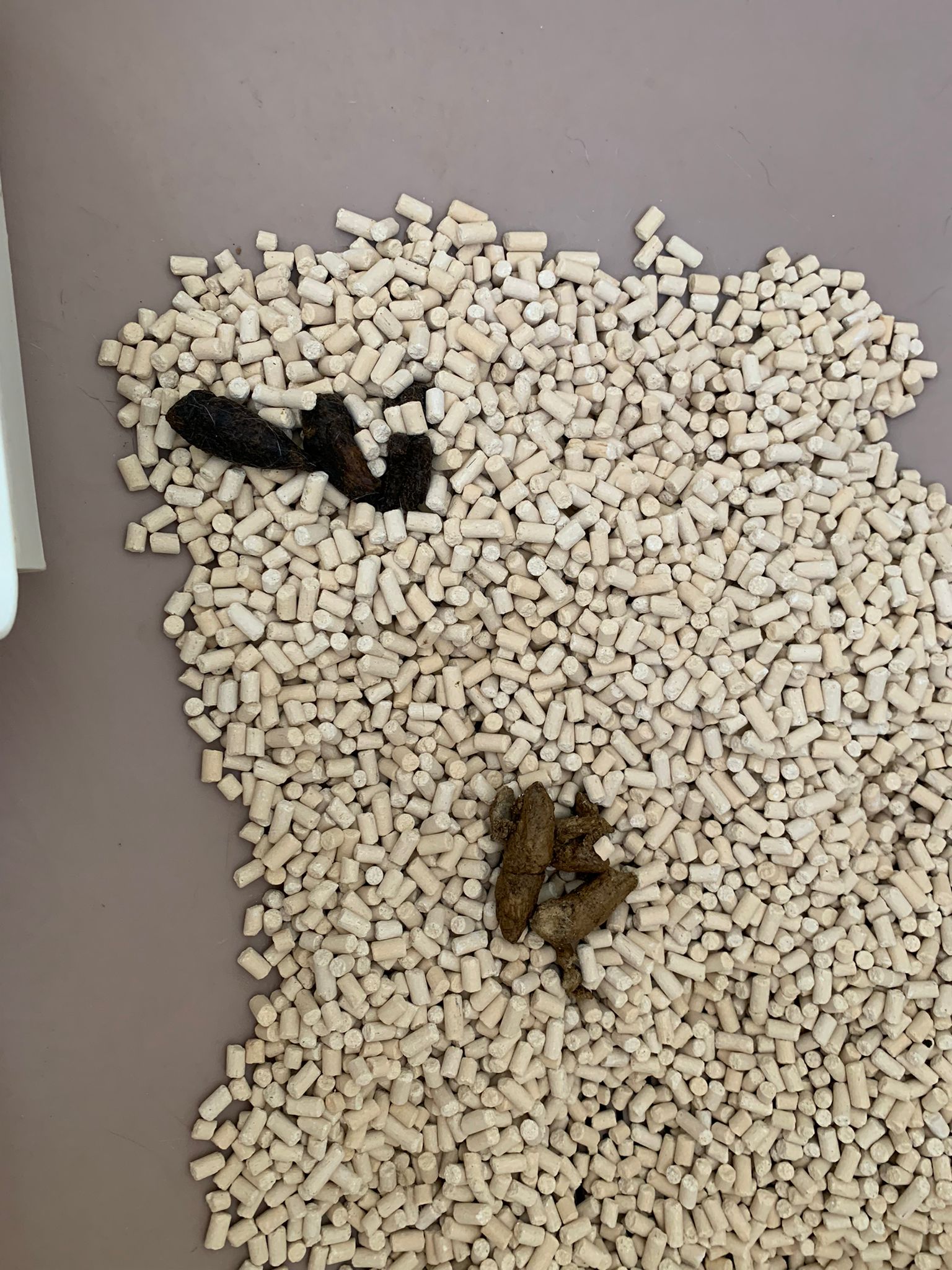 There is one big puddle of pee in bin, 2 cats combined? Or one cat big puddle – if that’s the case maybe is ein’s?