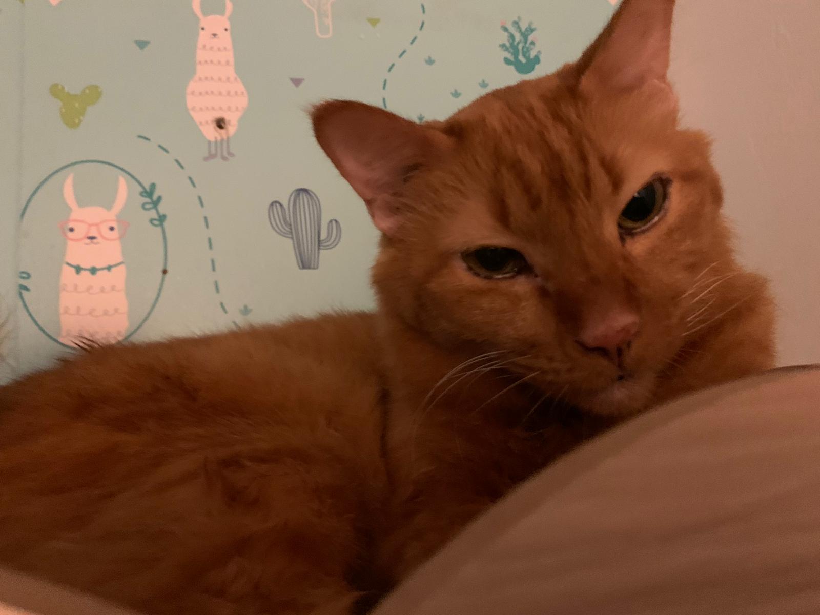 Night: serve orange can of aixia oldie and sheba crab. Sayang his cute face.