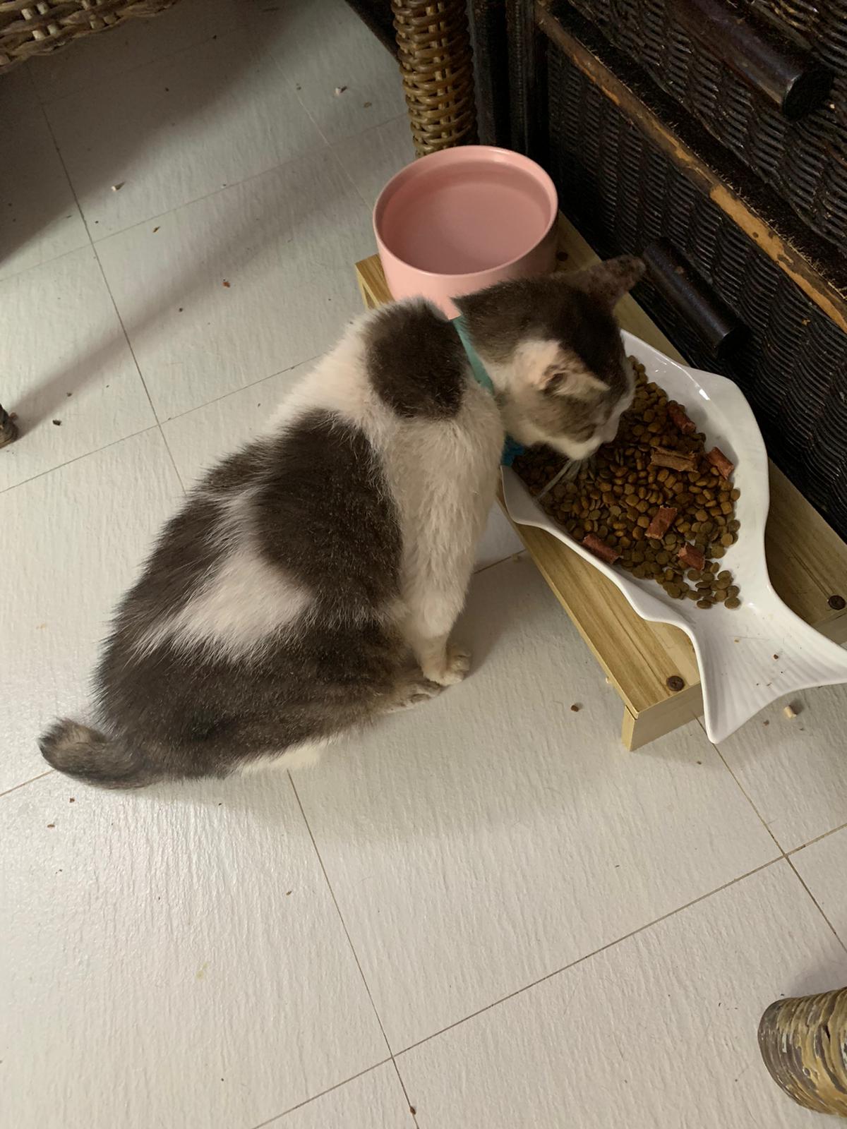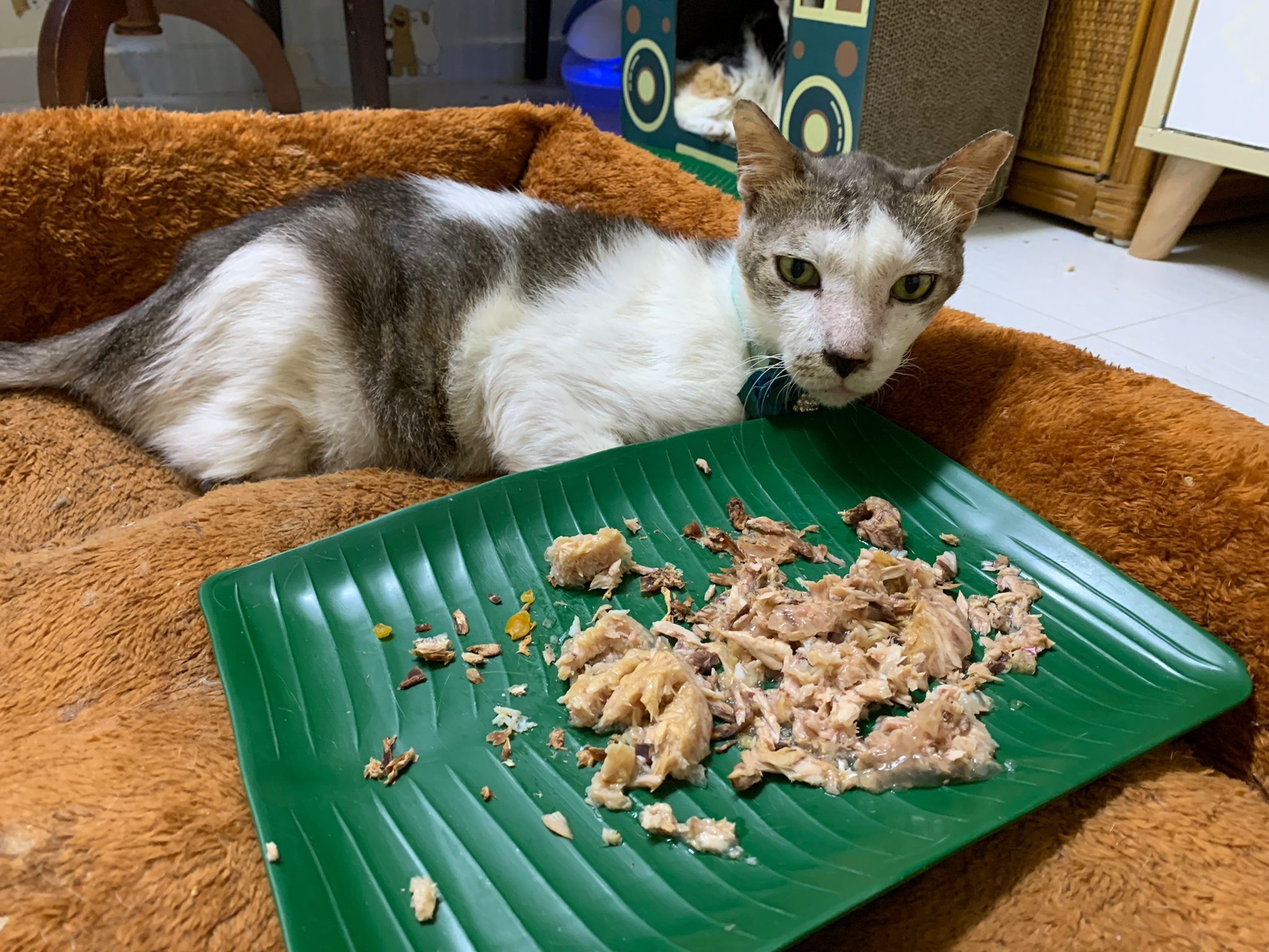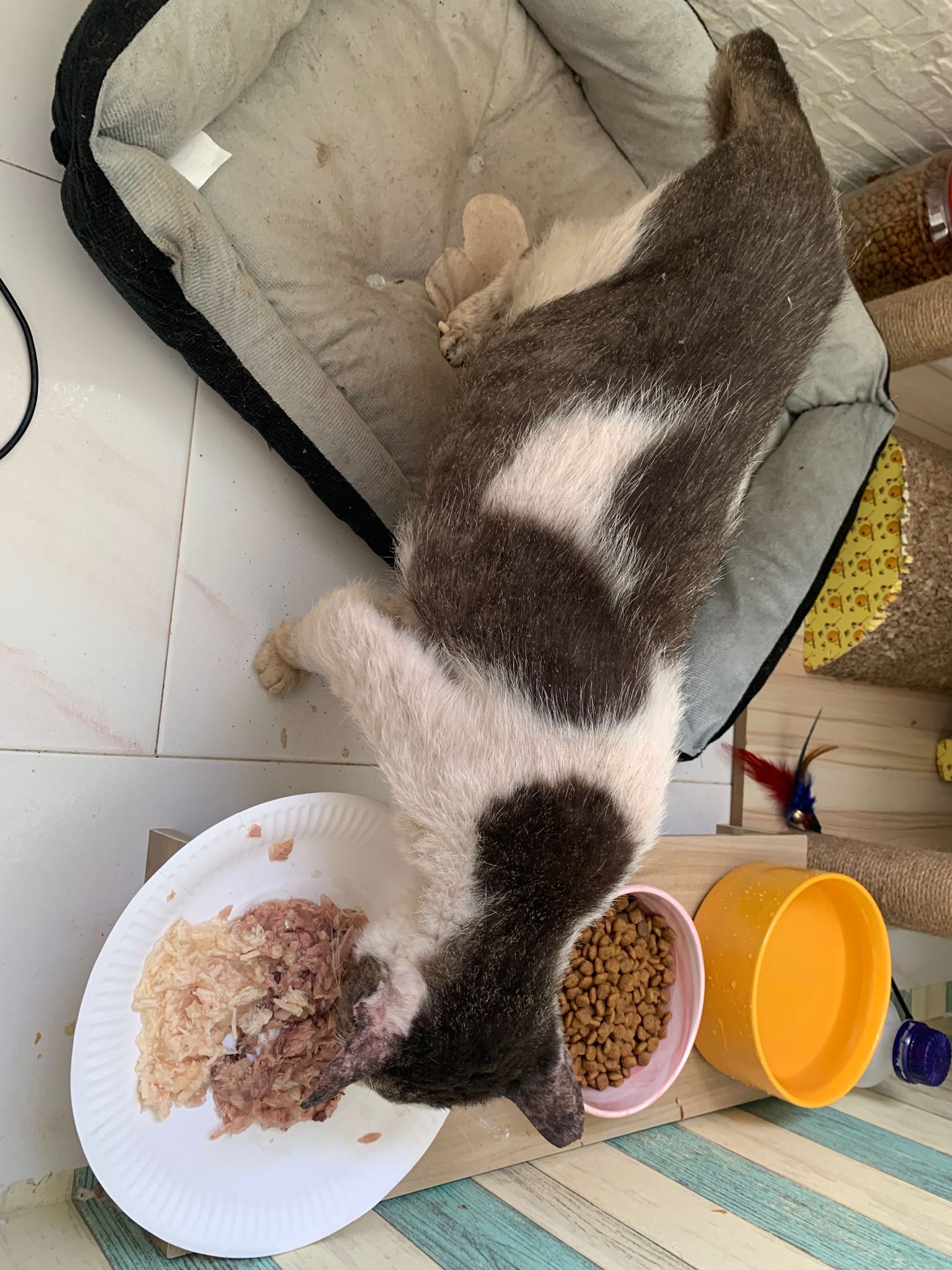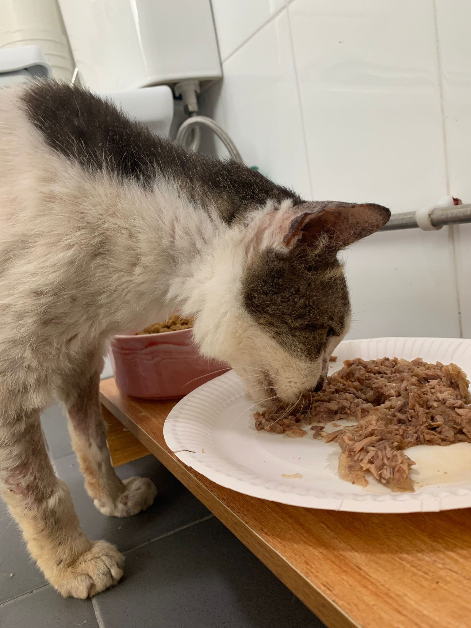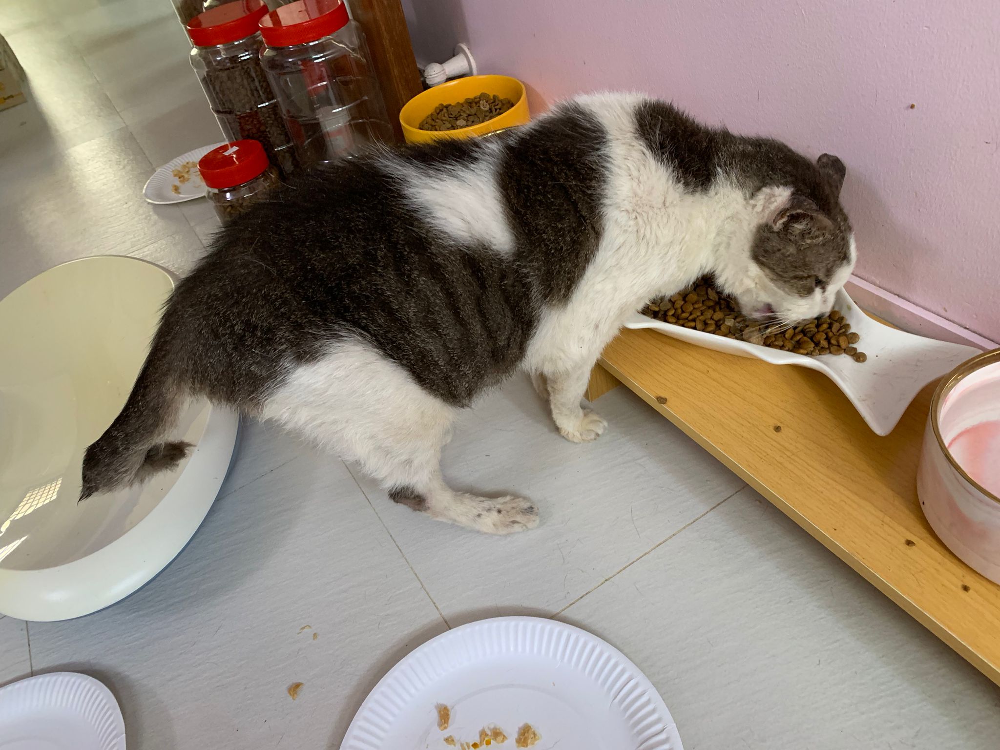 • update Fr Agnes: “This 2 day fat fat dun really eat well , few bite for can food .i put dry food mix with stream fish he also not very interested . This morning the bowl left abit But morning bf he also eat few bite on can food , have to put some dry food food .”