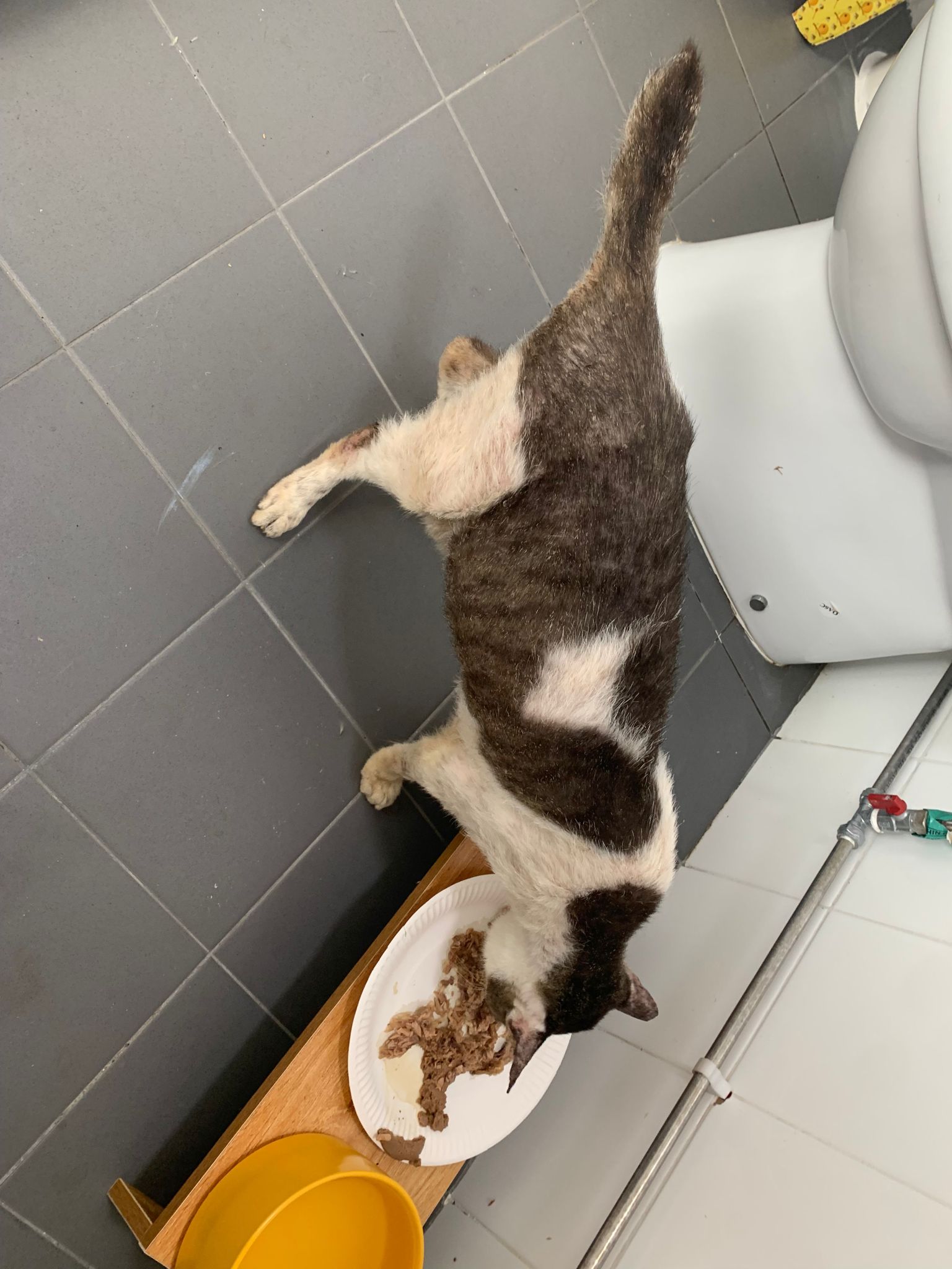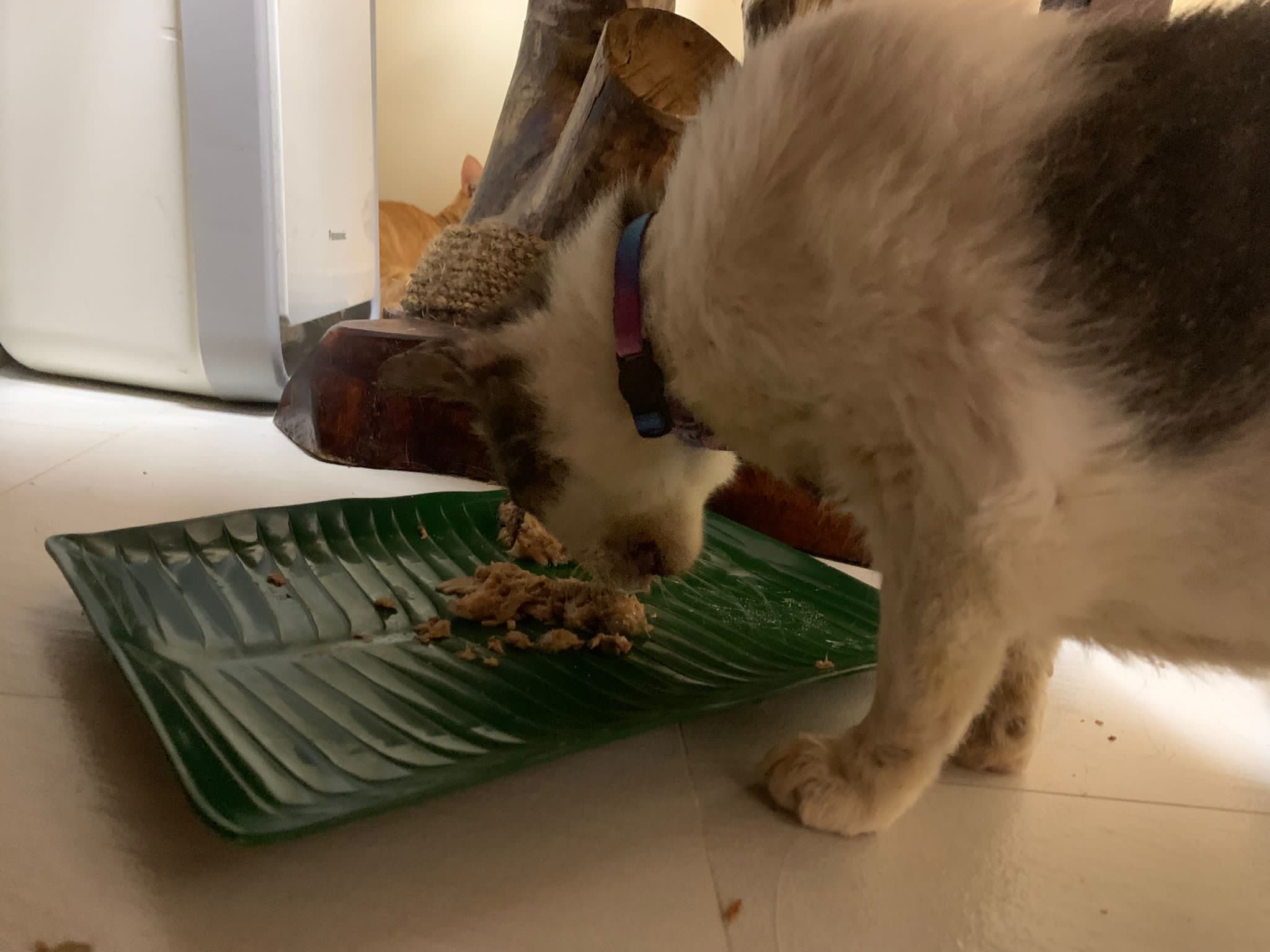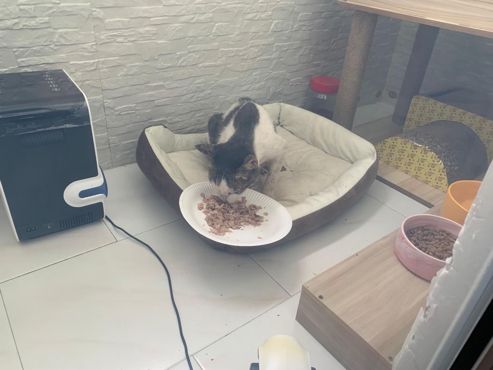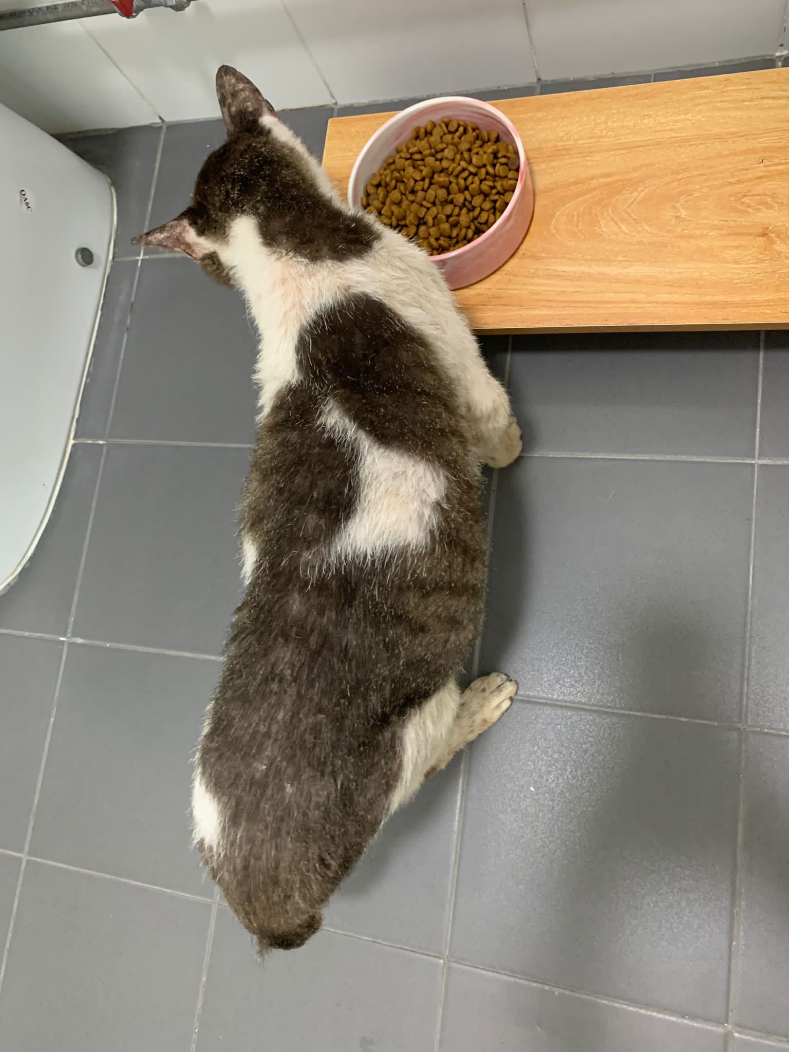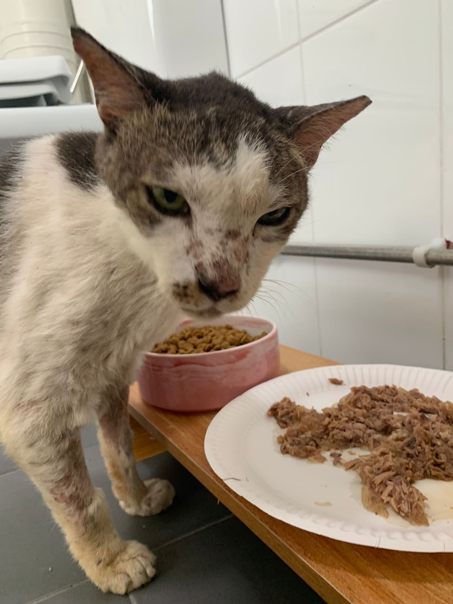 • update Fr Agnes: “This 2 day fat fat dun really eat well , few bite for can food .i put dry food mix with stream fish he also not very interested . This morning the bowl left abit But morning bf he also eat few bite on can food , have to put some dry food food .”