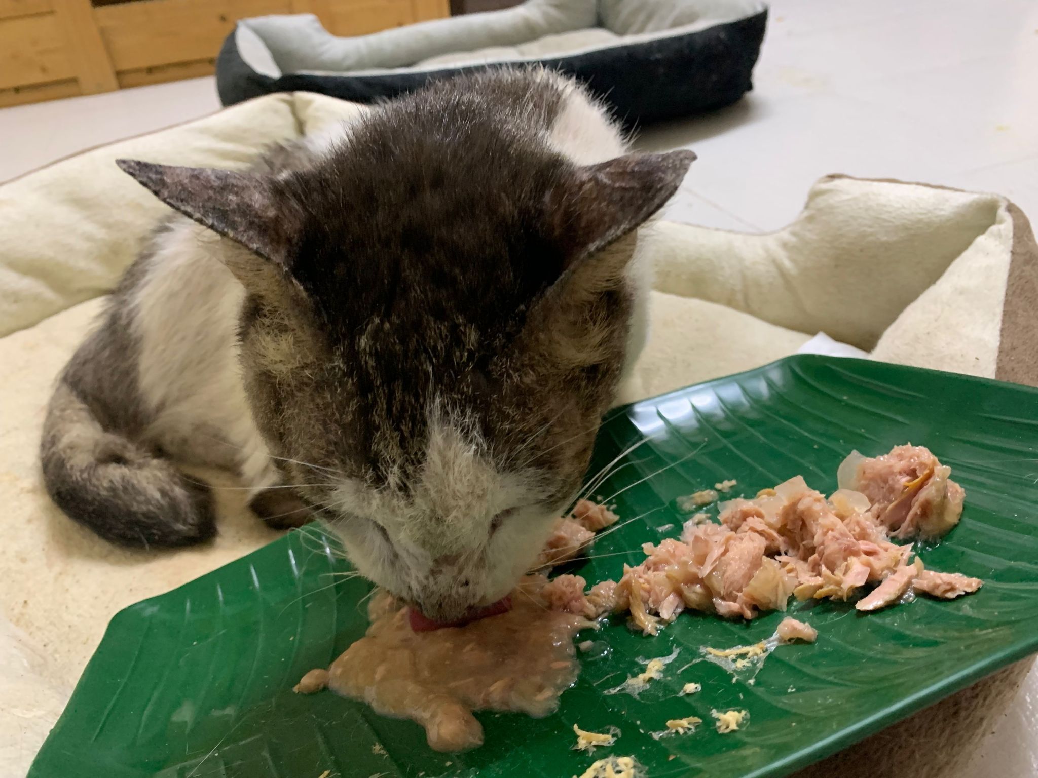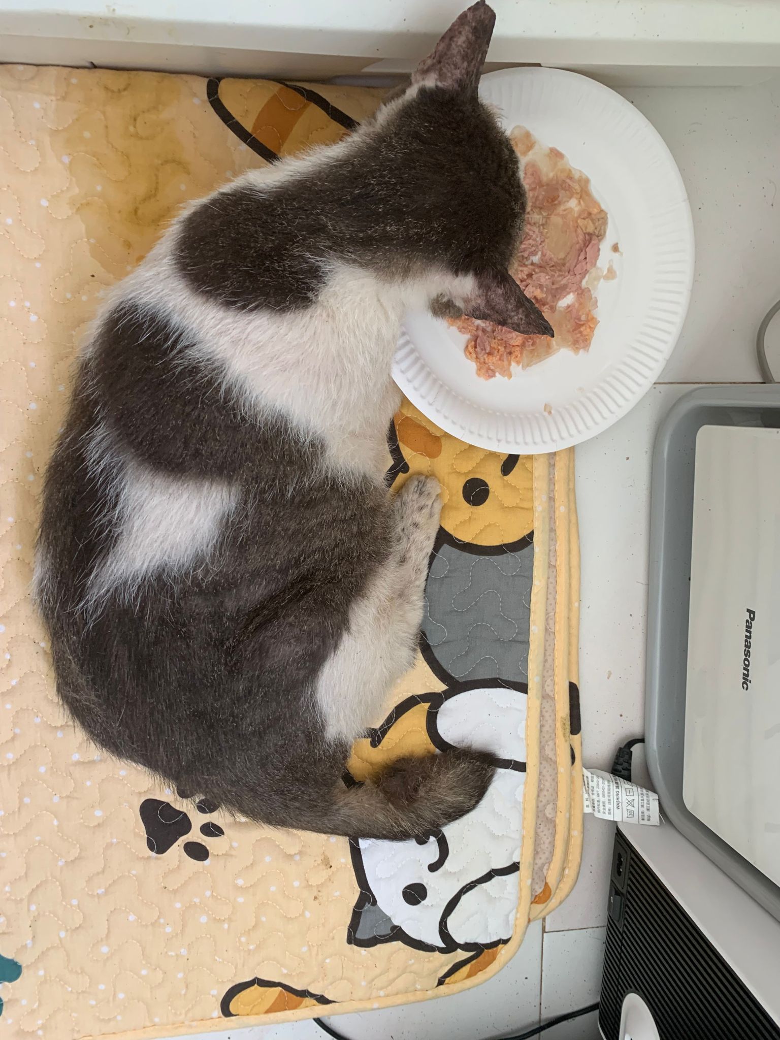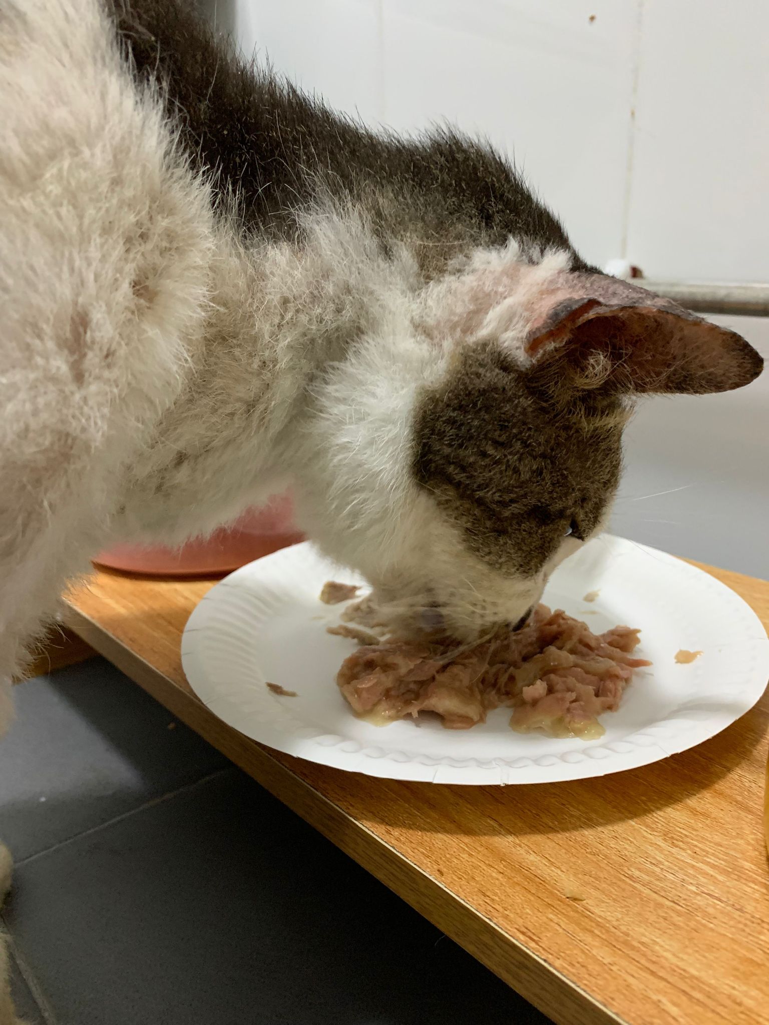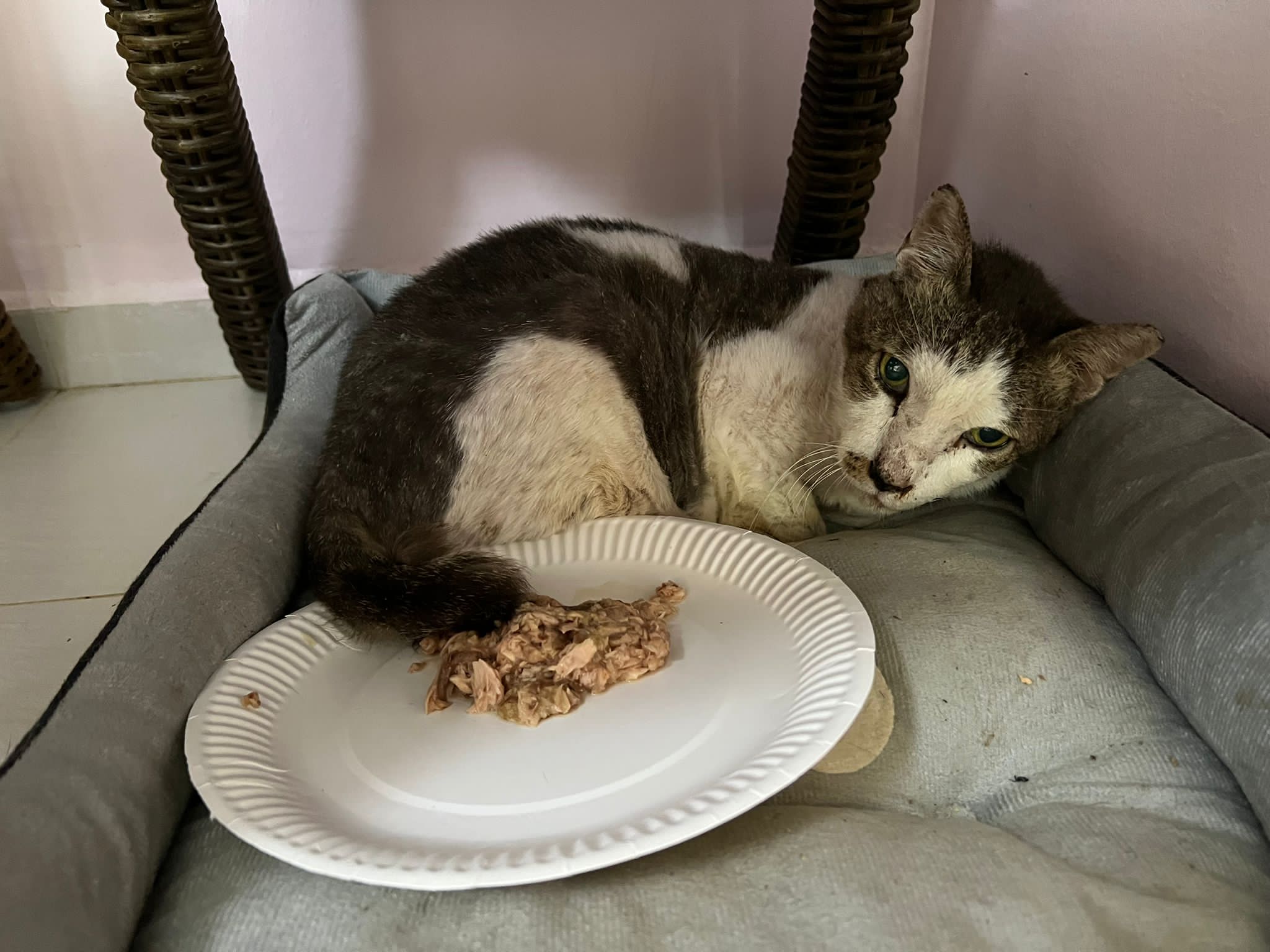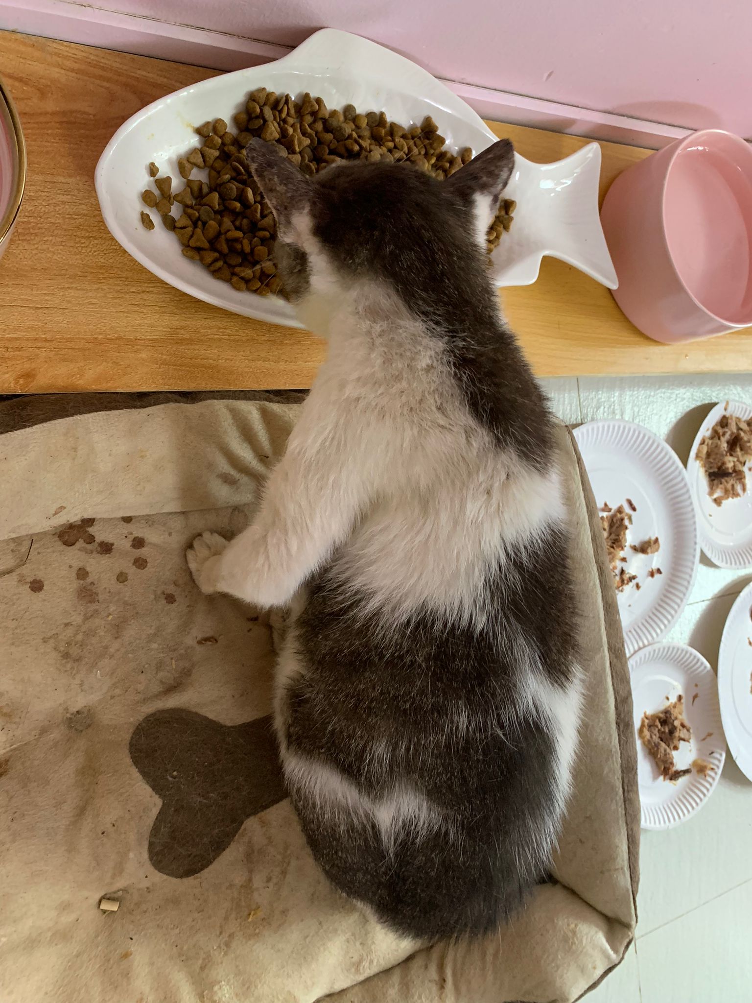 • update Fr Agnes: “This 2 day fat fat dun really eat well , few bite for can food .i put dry food mix with stream fish he also not very interested . This morning the bowl left abit But morning bf he also eat few bite on can food , have to put some dry food food .”