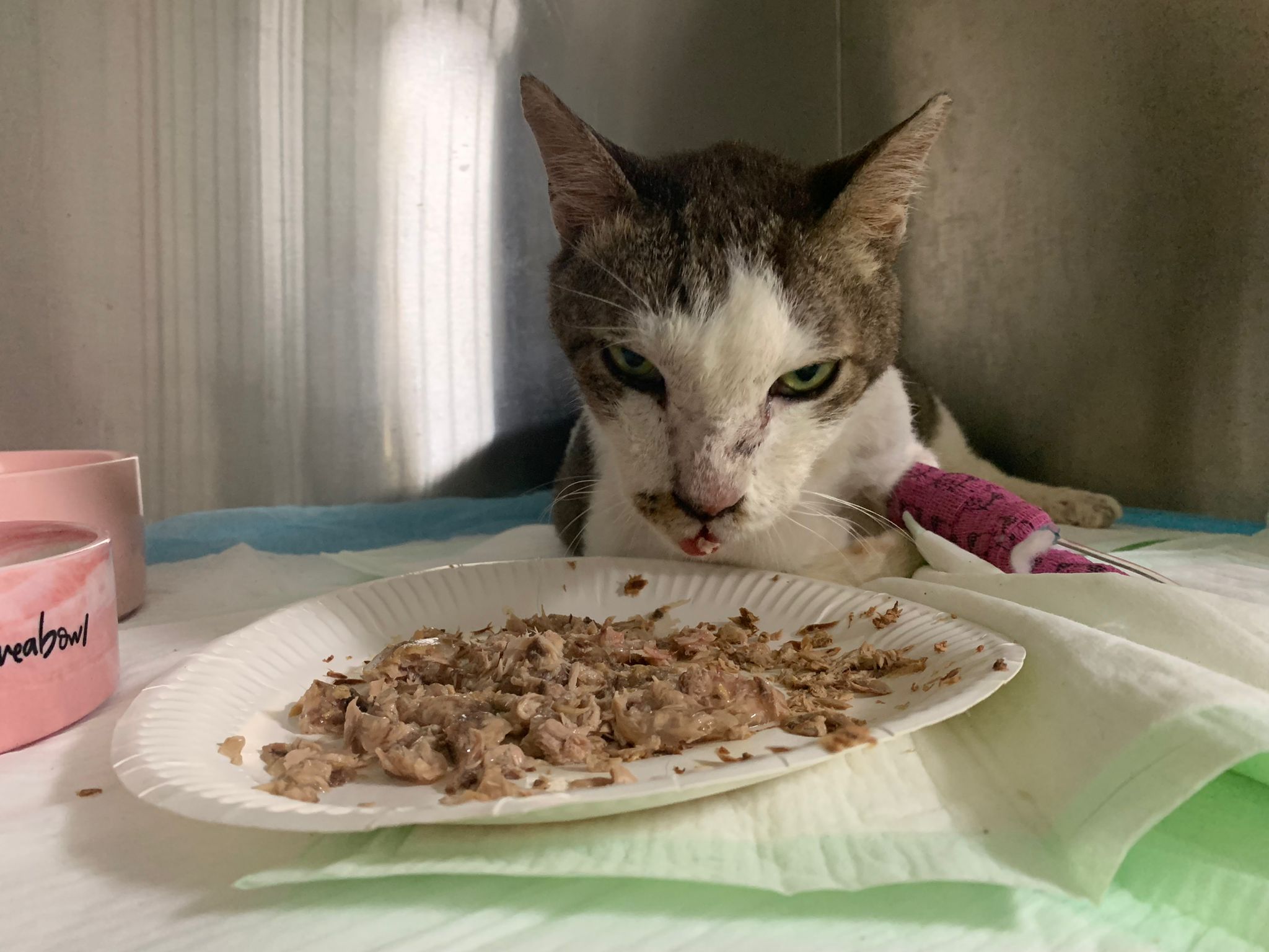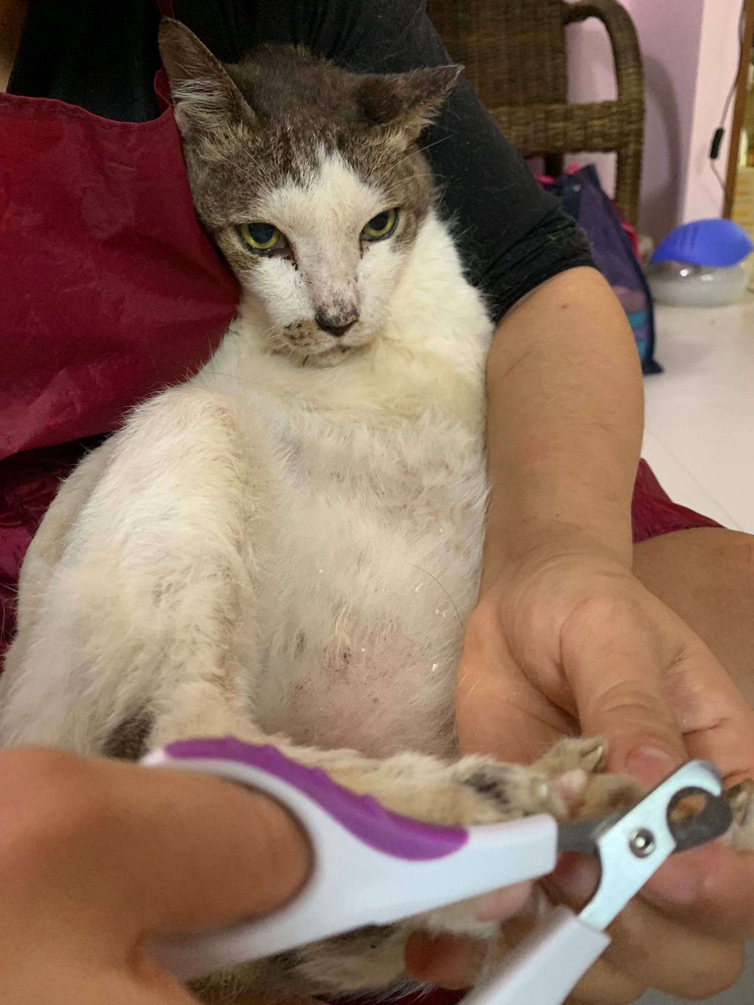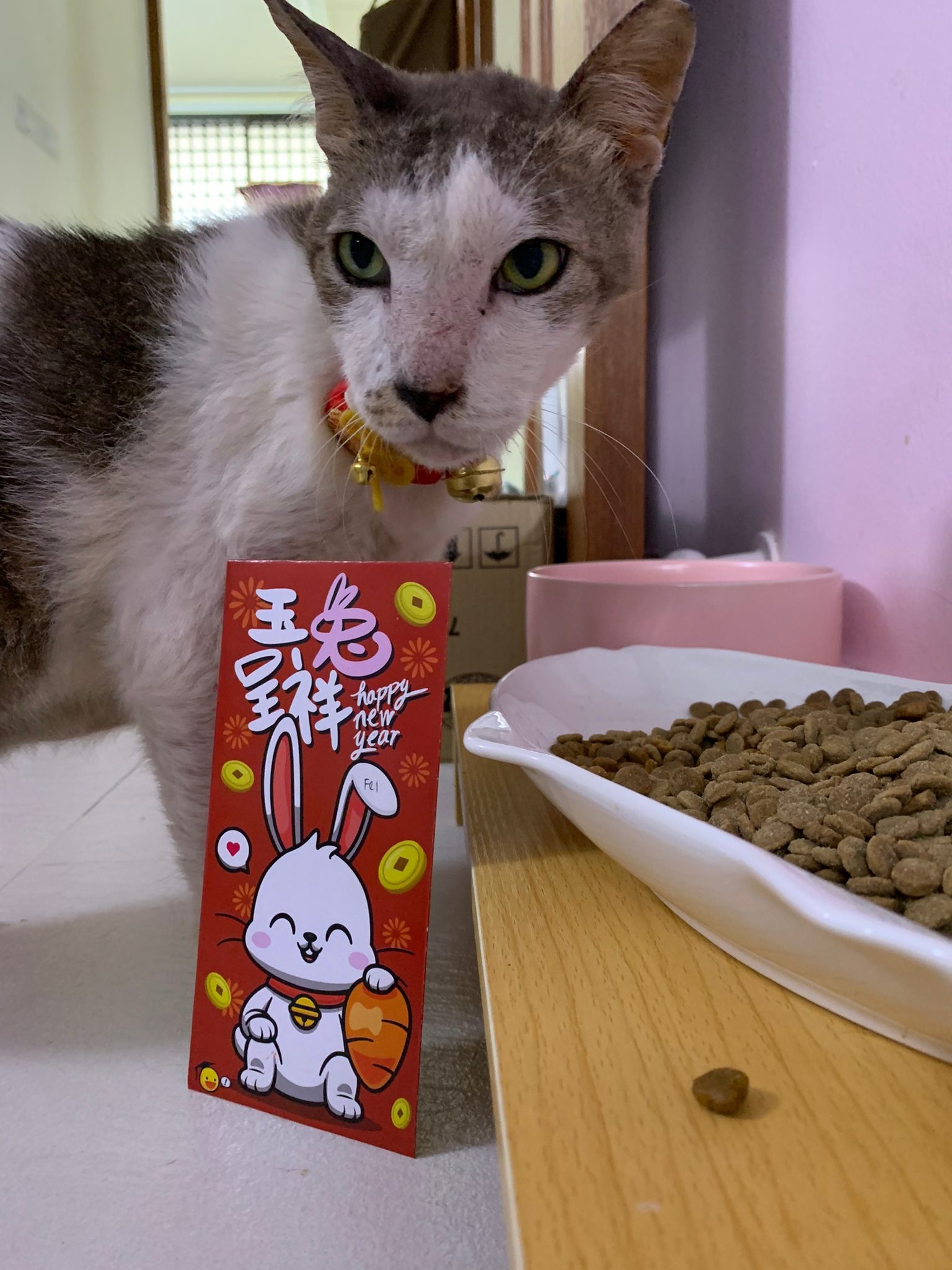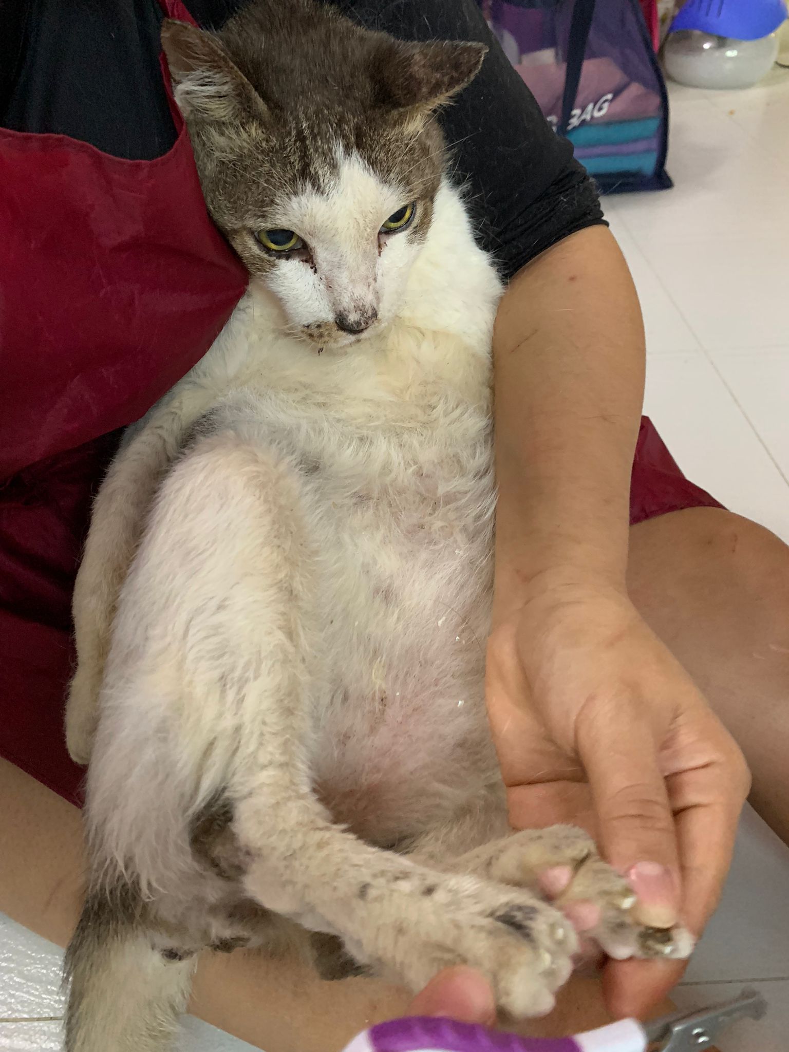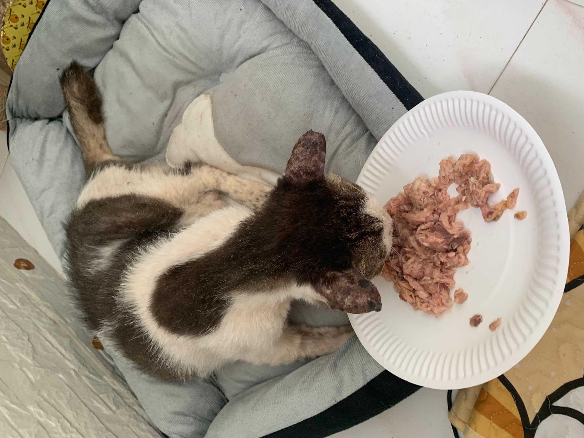 • update Fr Agnes: “This 2 day fat fat dun really eat well , few bite for can food .i put dry food mix with stream fish he also not very interested . This morning the bowl left abit But morning bf he also eat few bite on can food , have to put some dry food food .”