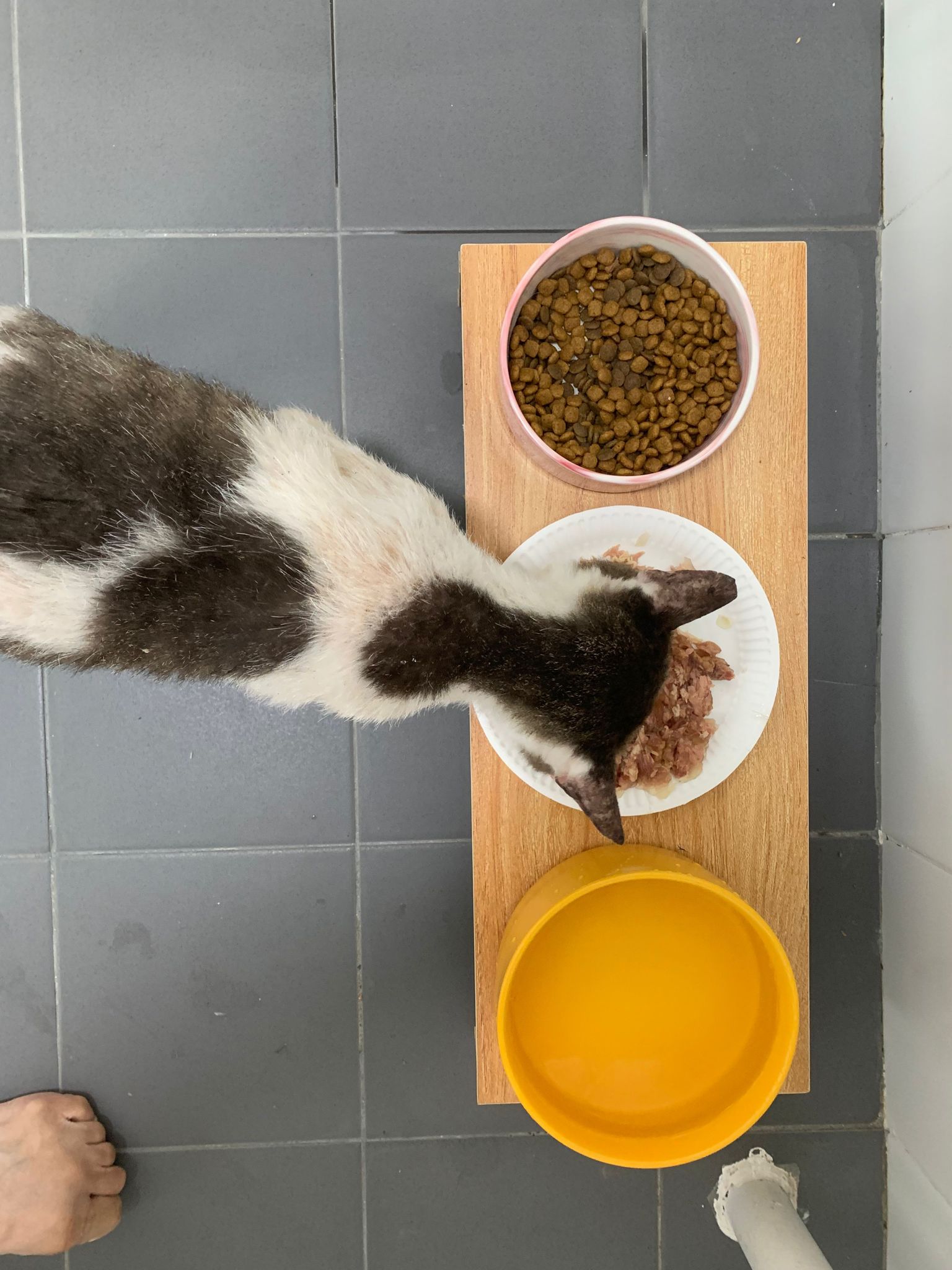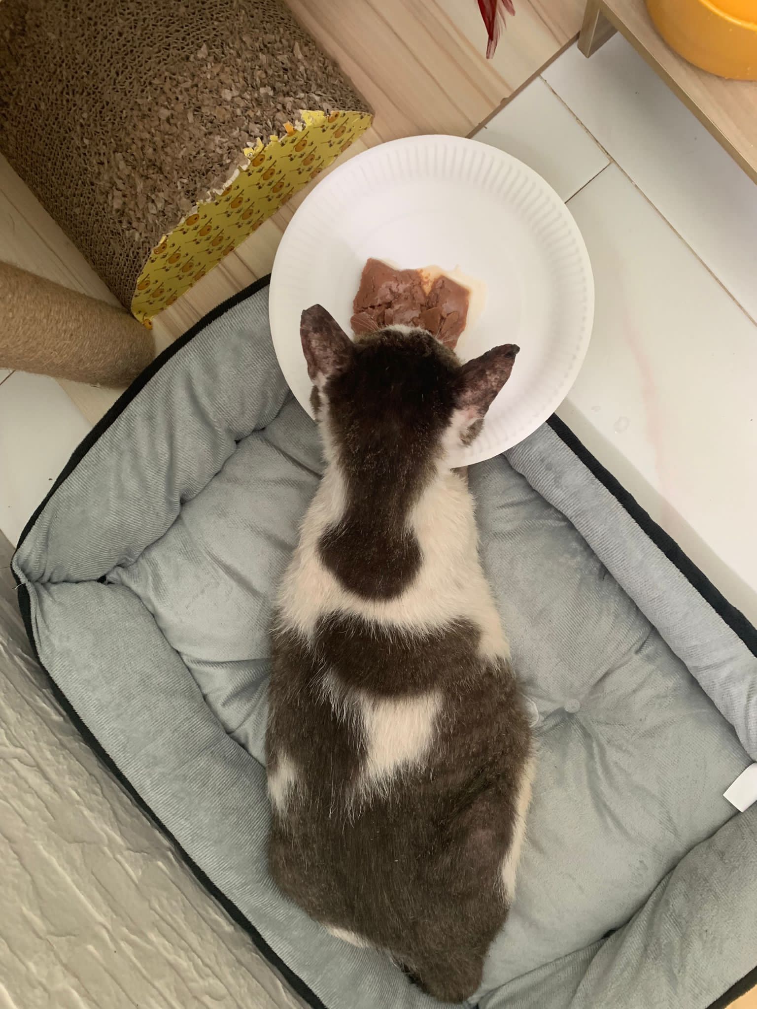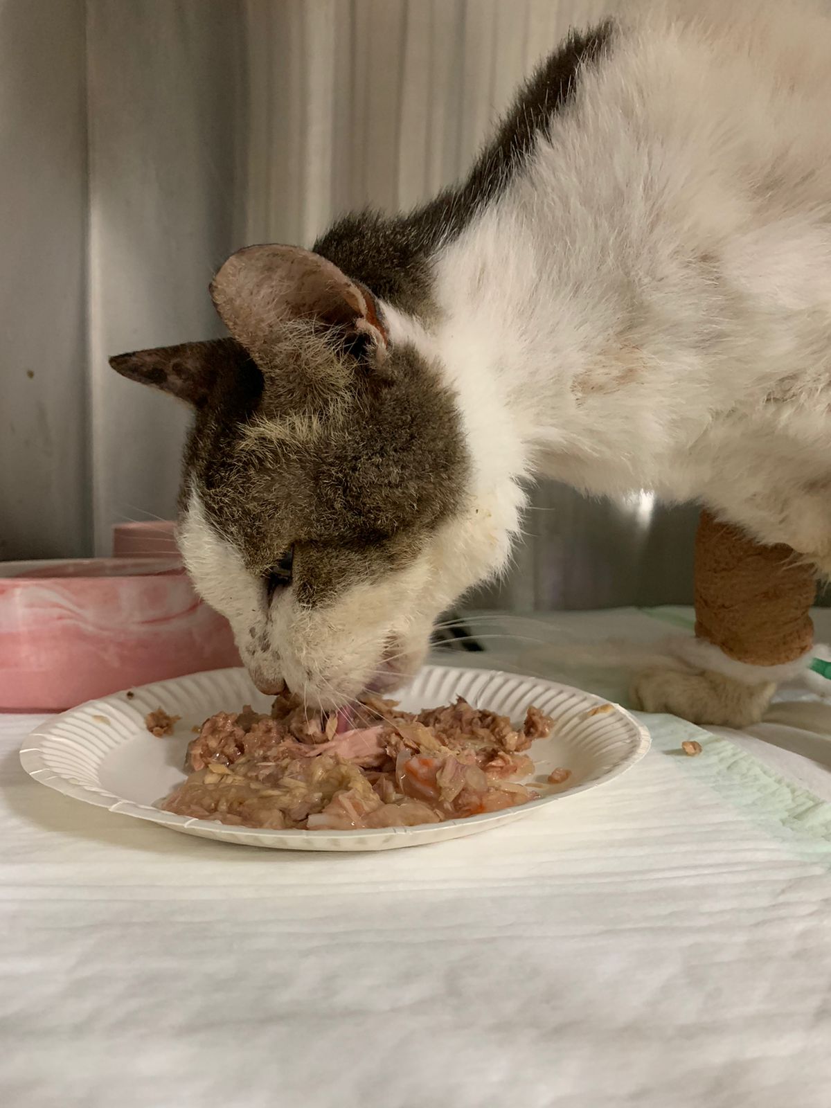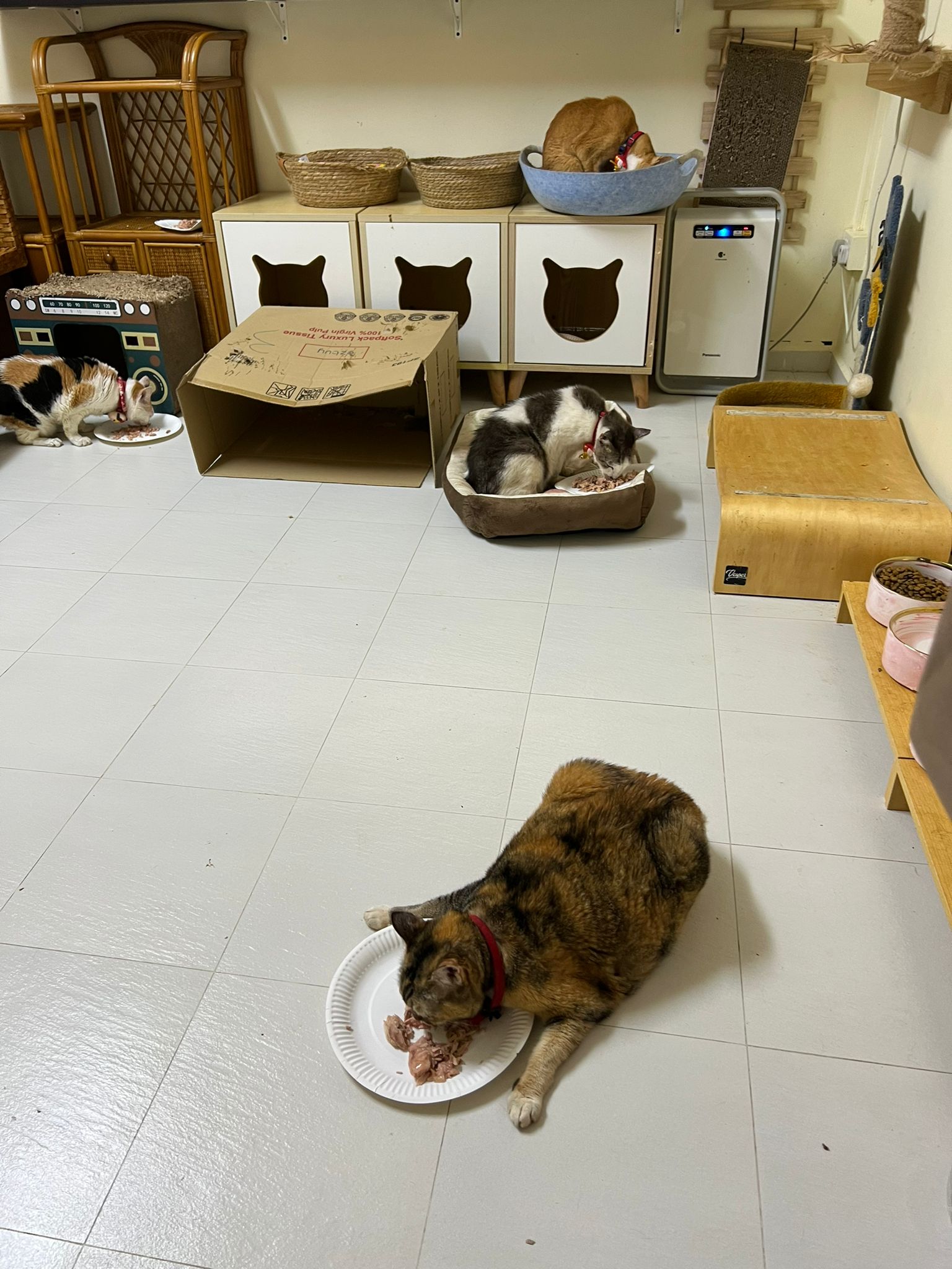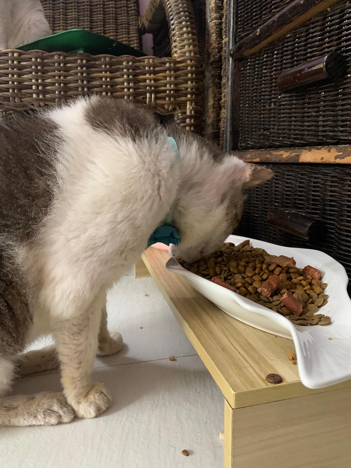 • update Fr Agnes: “This 2 day fat fat dun really eat well , few bite for can food .i put dry food mix with stream fish he also not very interested . This morning the bowl left abit But morning bf he also eat few bite on can food , have to put some dry food food .”