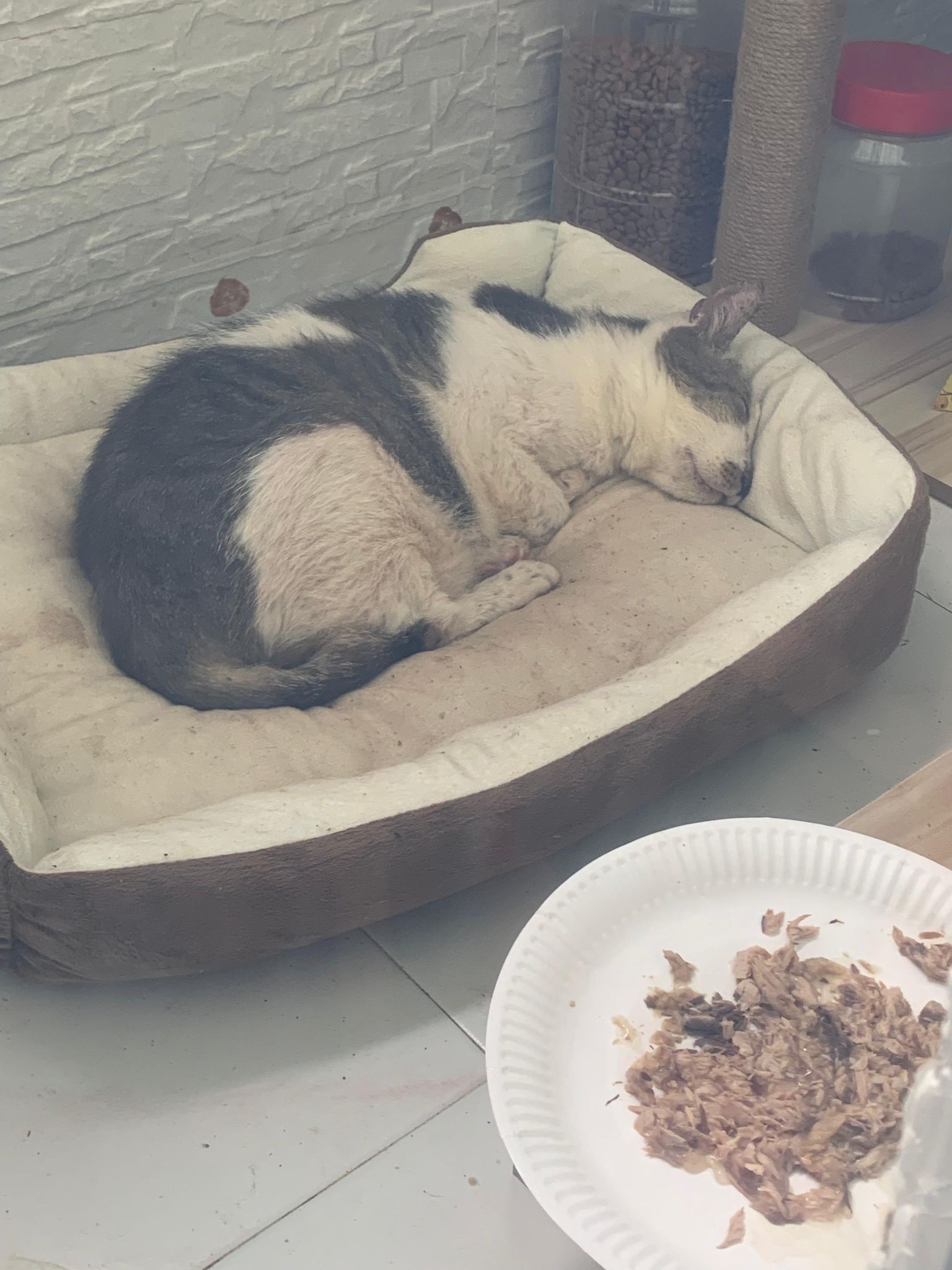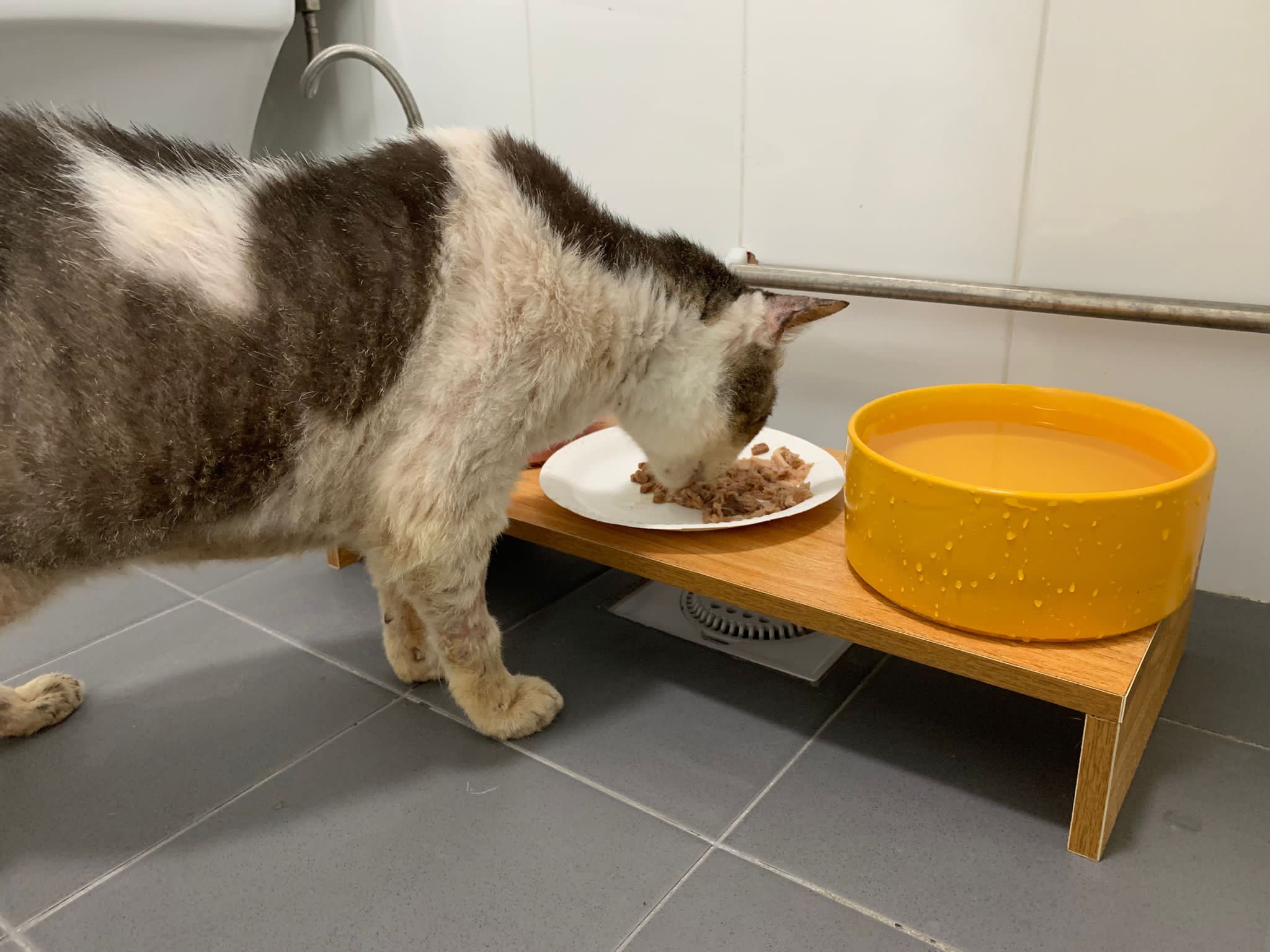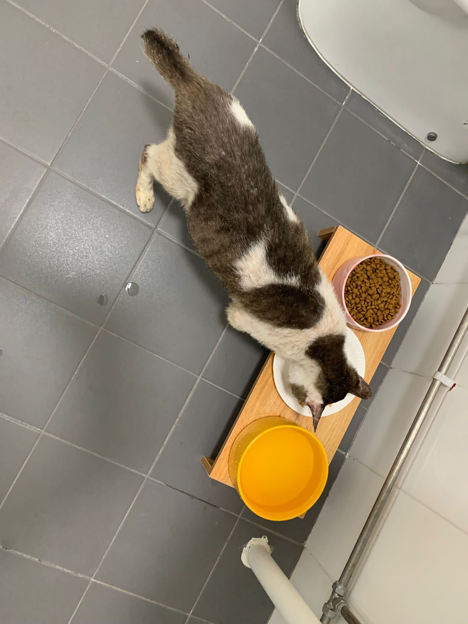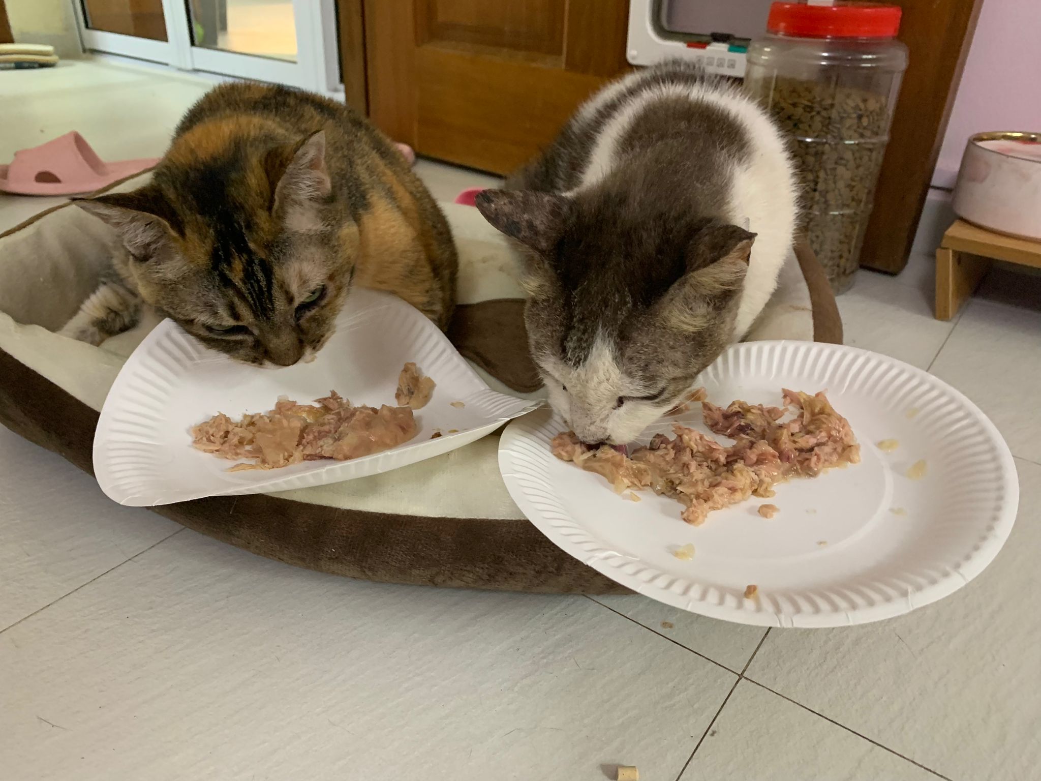 • update Fr Agnes: “This 2 day fat fat dun really eat well , few bite for can food .i put dry food mix with stream fish he also not very interested . This morning the bowl left abit But morning bf he also eat few bite on can food , have to put some dry food food .”