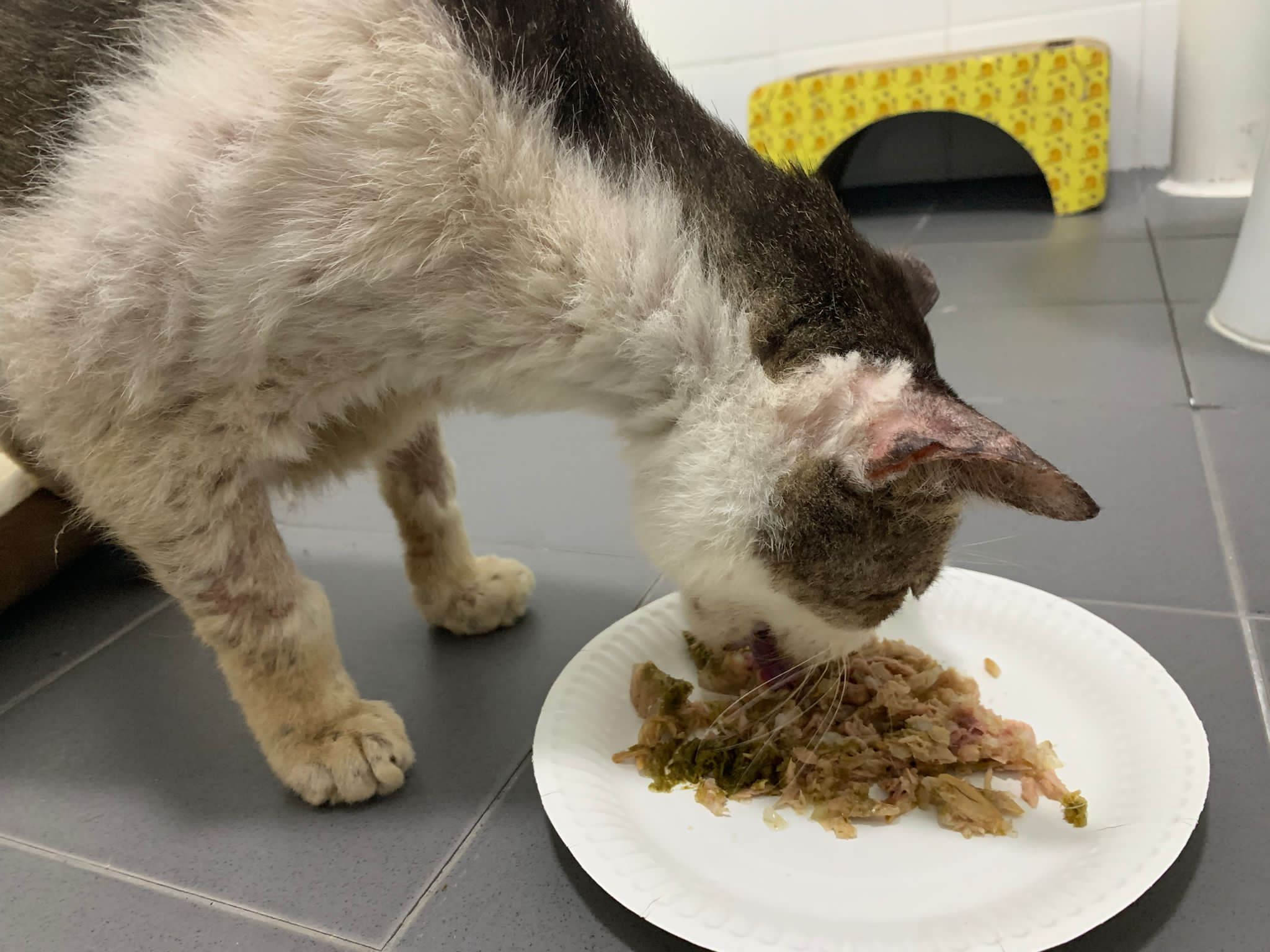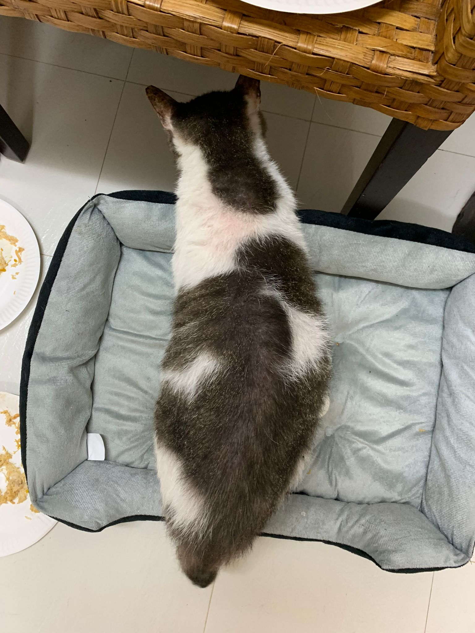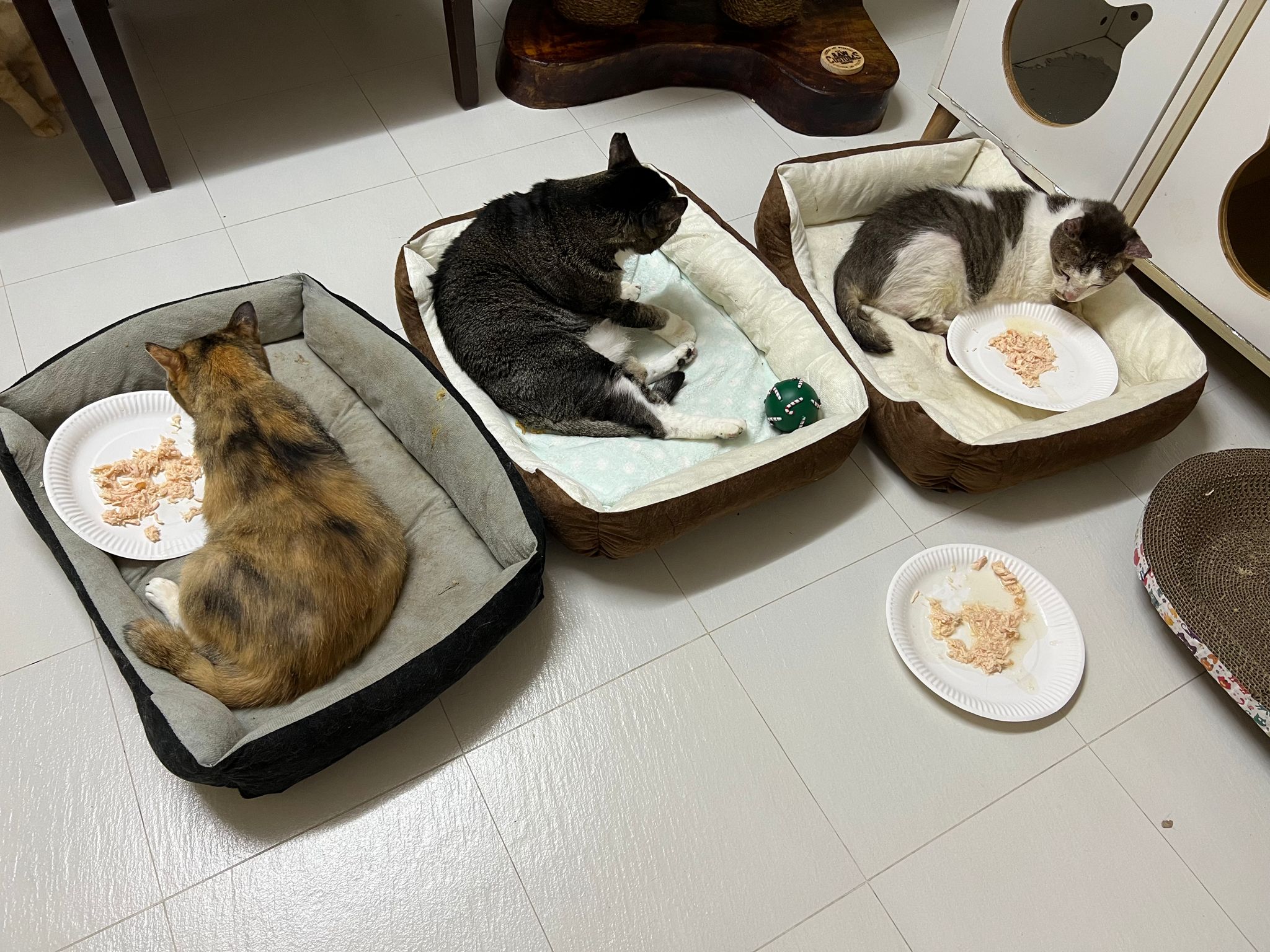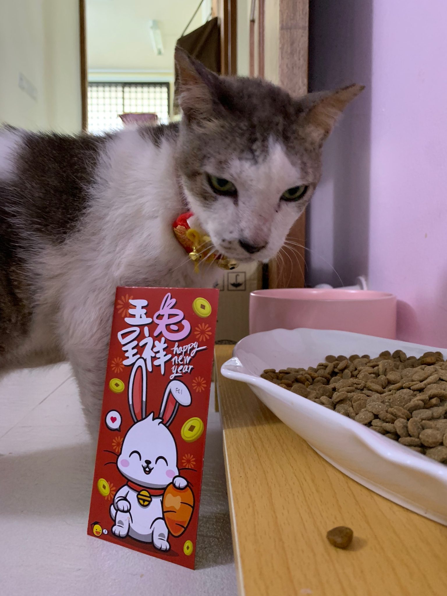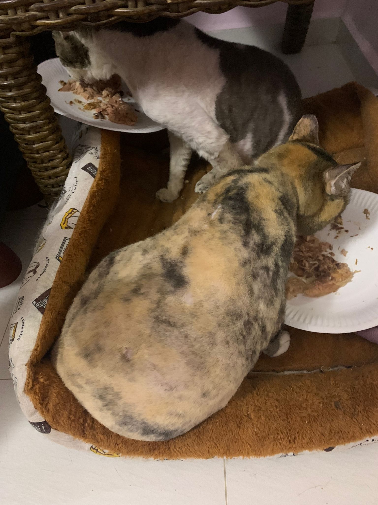 • update Fr Agnes: “This 2 day fat fat dun really eat well , few bite for can food .i put dry food mix with stream fish he also not very interested . This morning the bowl left abit But morning bf he also eat few bite on can food , have to put some dry food food .”