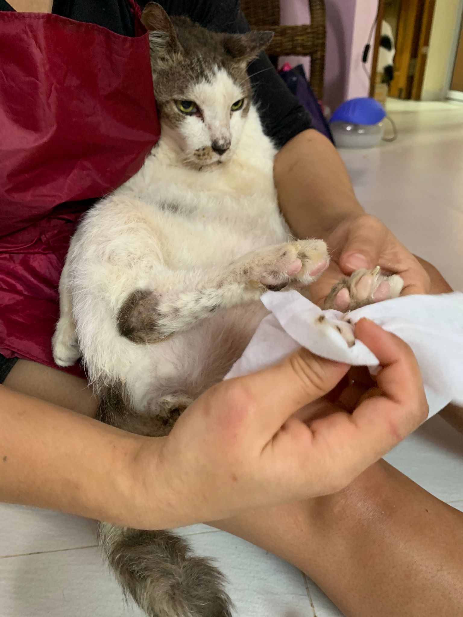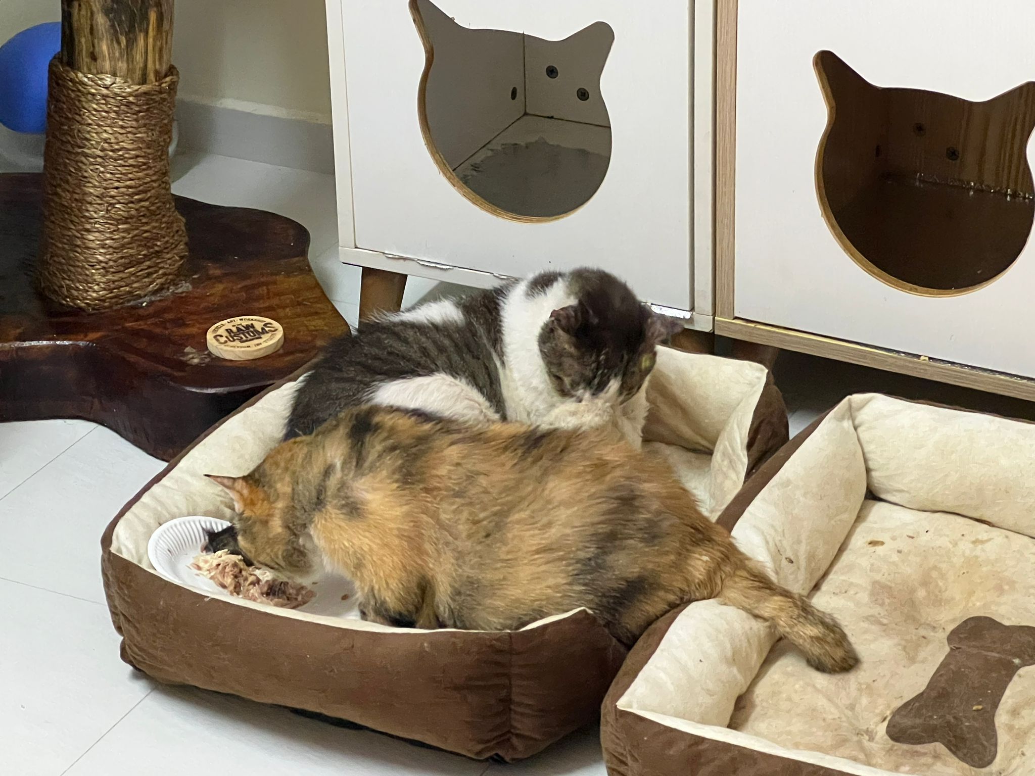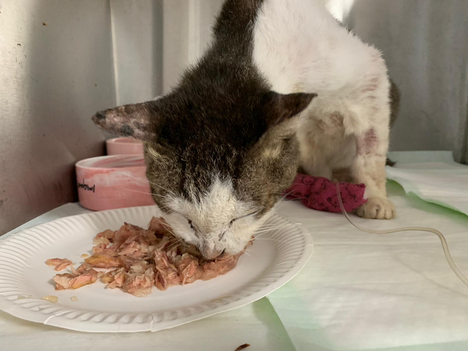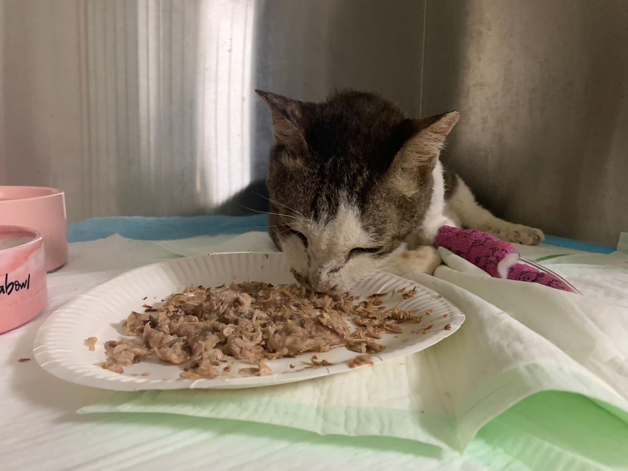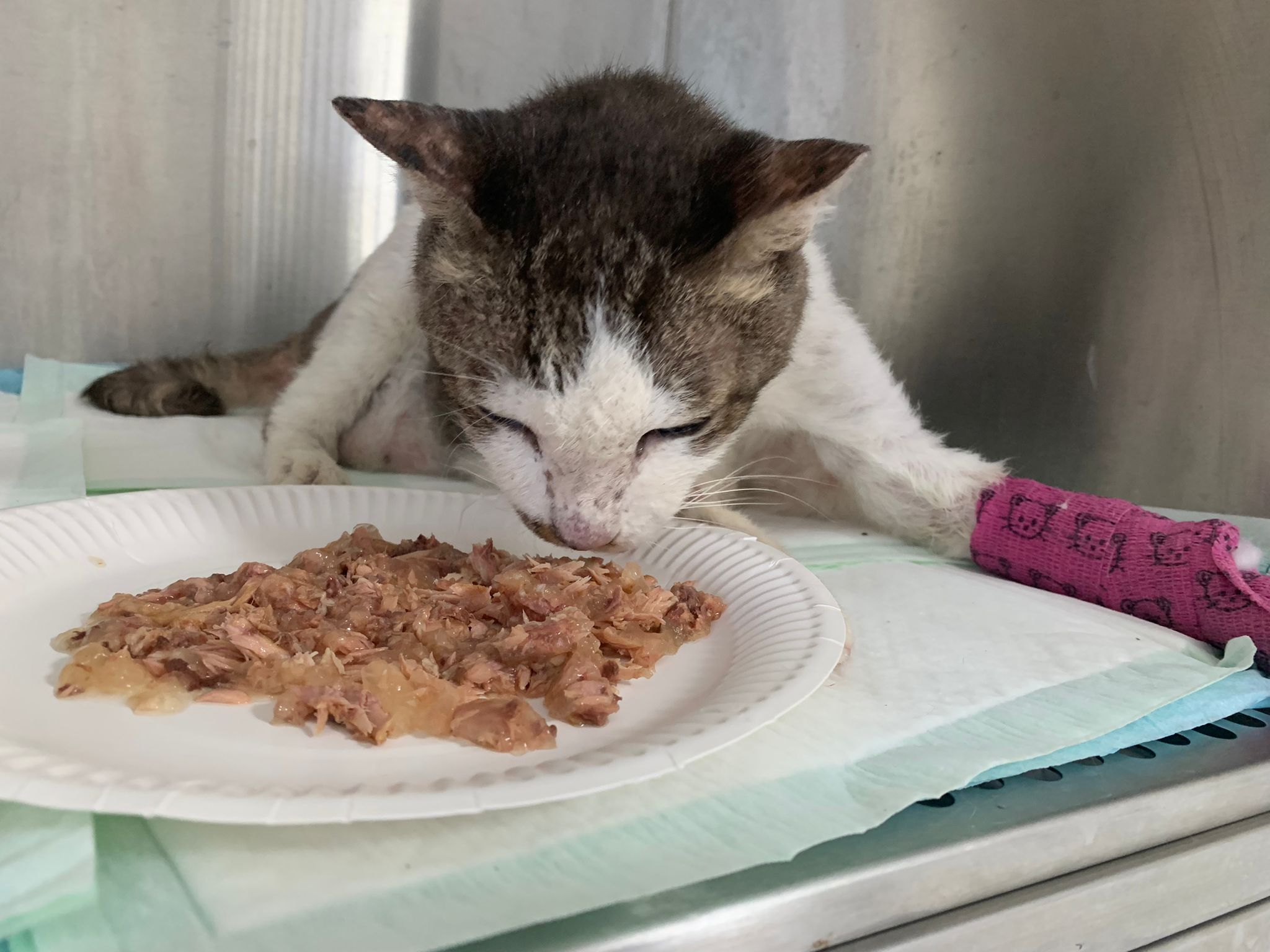 • update Fr Agnes: “This 2 day fat fat dun really eat well , few bite for can food .i put dry food mix with stream fish he also not very interested . This morning the bowl left abit But morning bf he also eat few bite on can food , have to put some dry food food .”