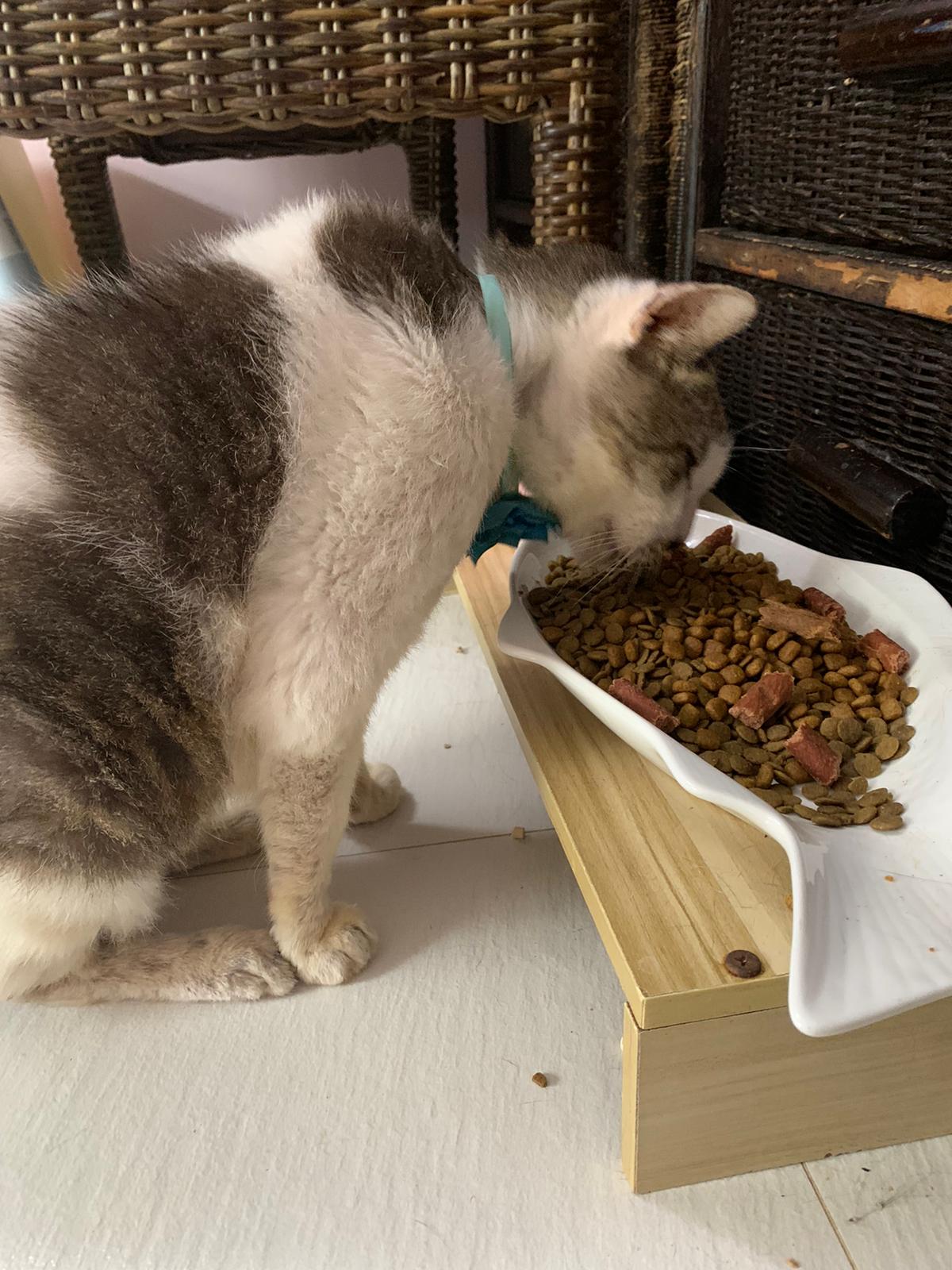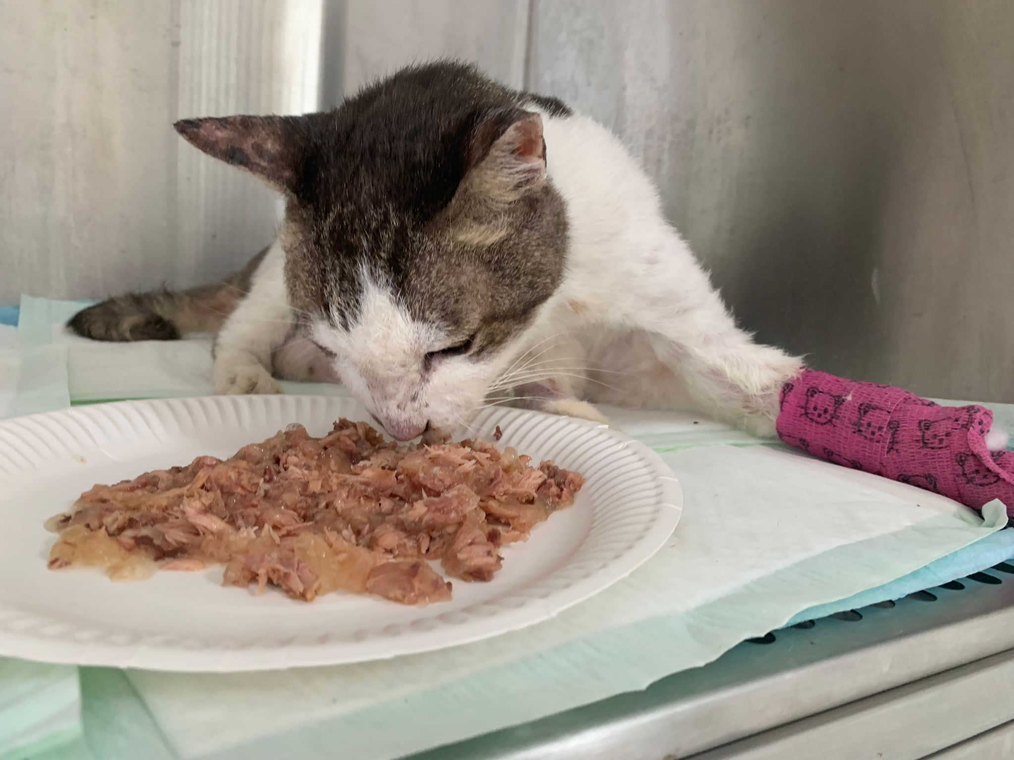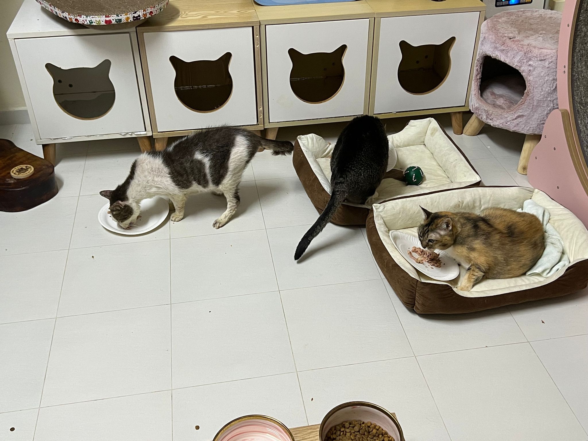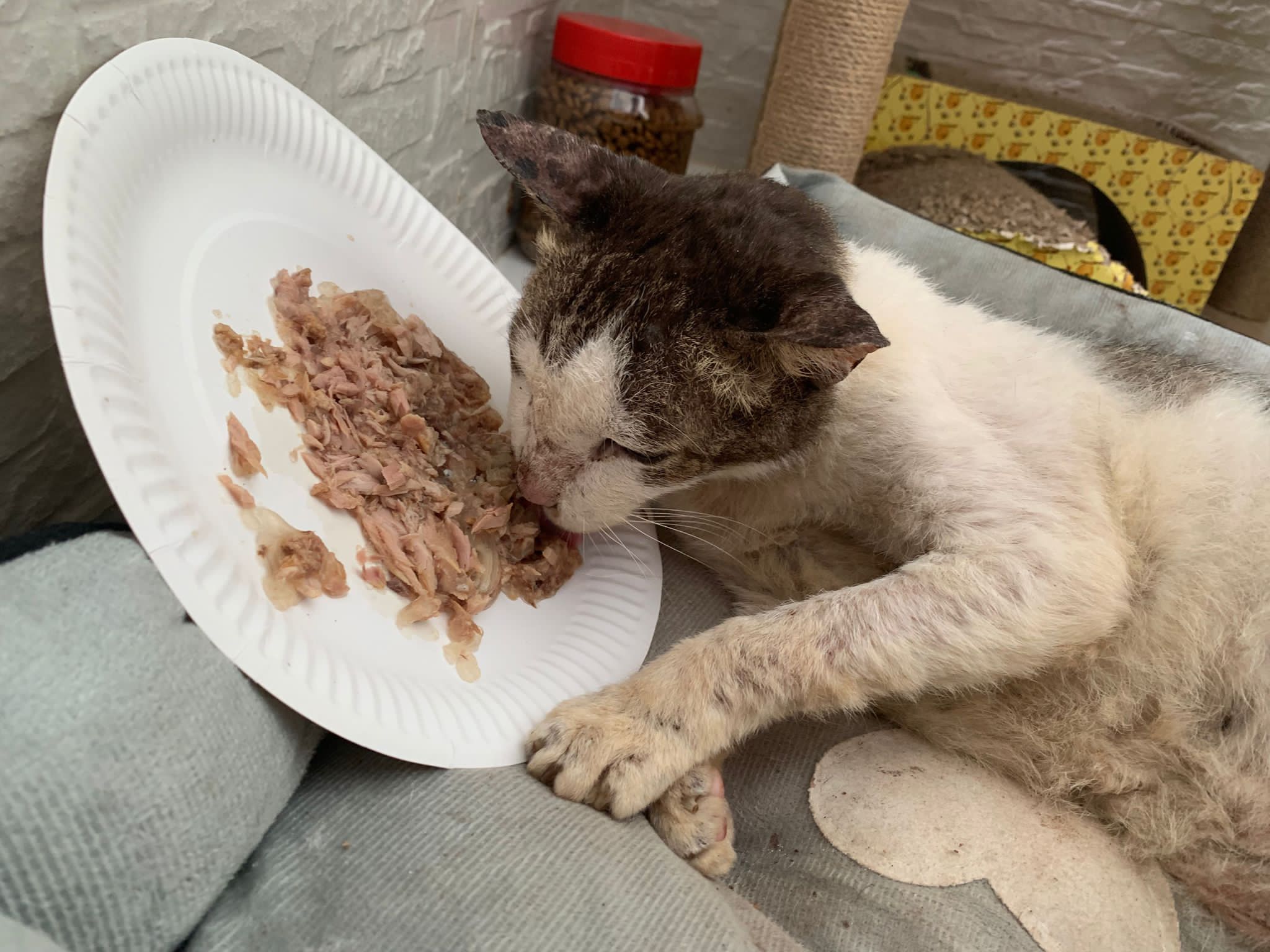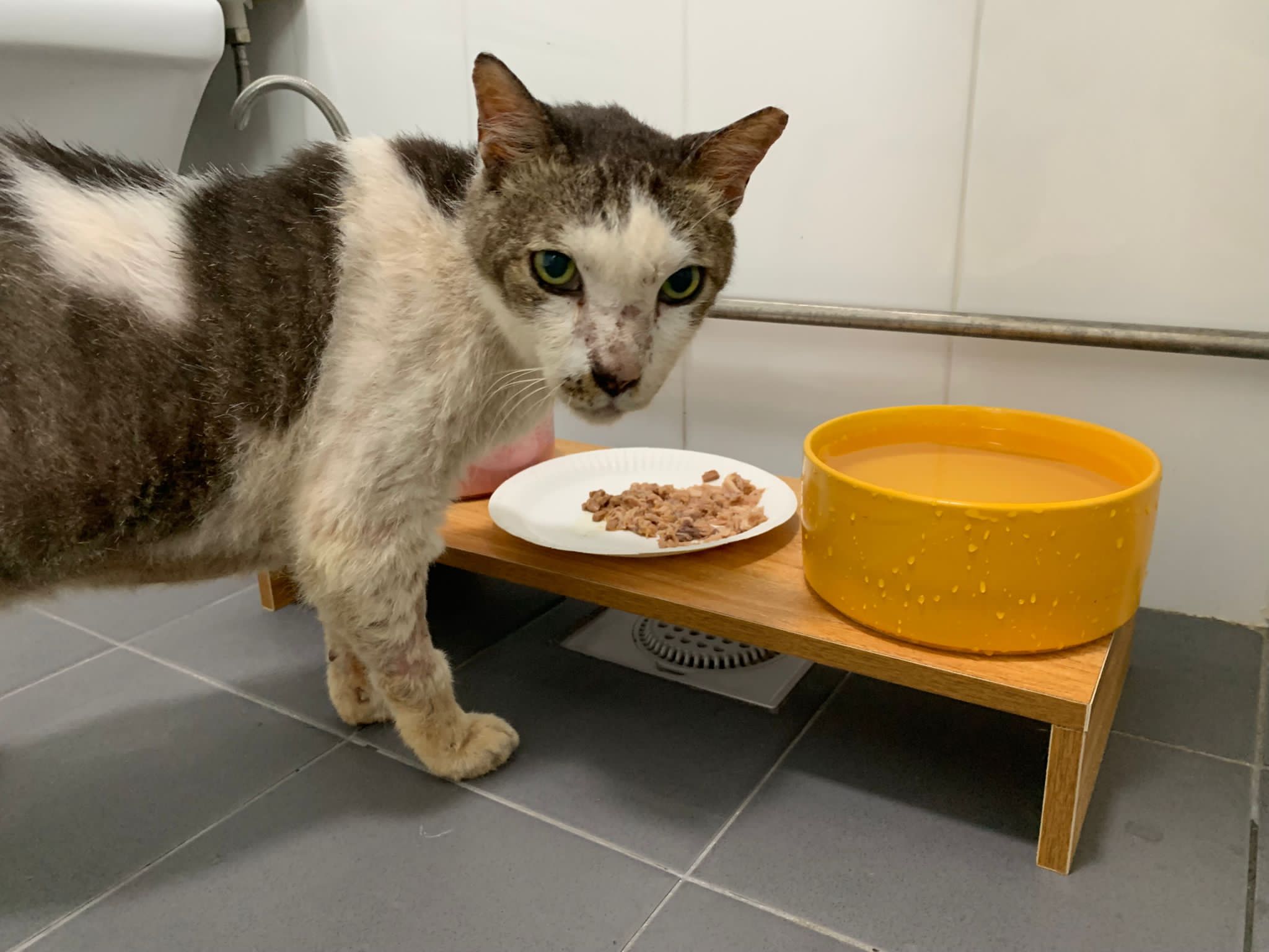 • update Fr Agnes: “This 2 day fat fat dun really eat well , few bite for can food .i put dry food mix with stream fish he also not very interested . This morning the bowl left abit But morning bf he also eat few bite on can food , have to put some dry food food .”