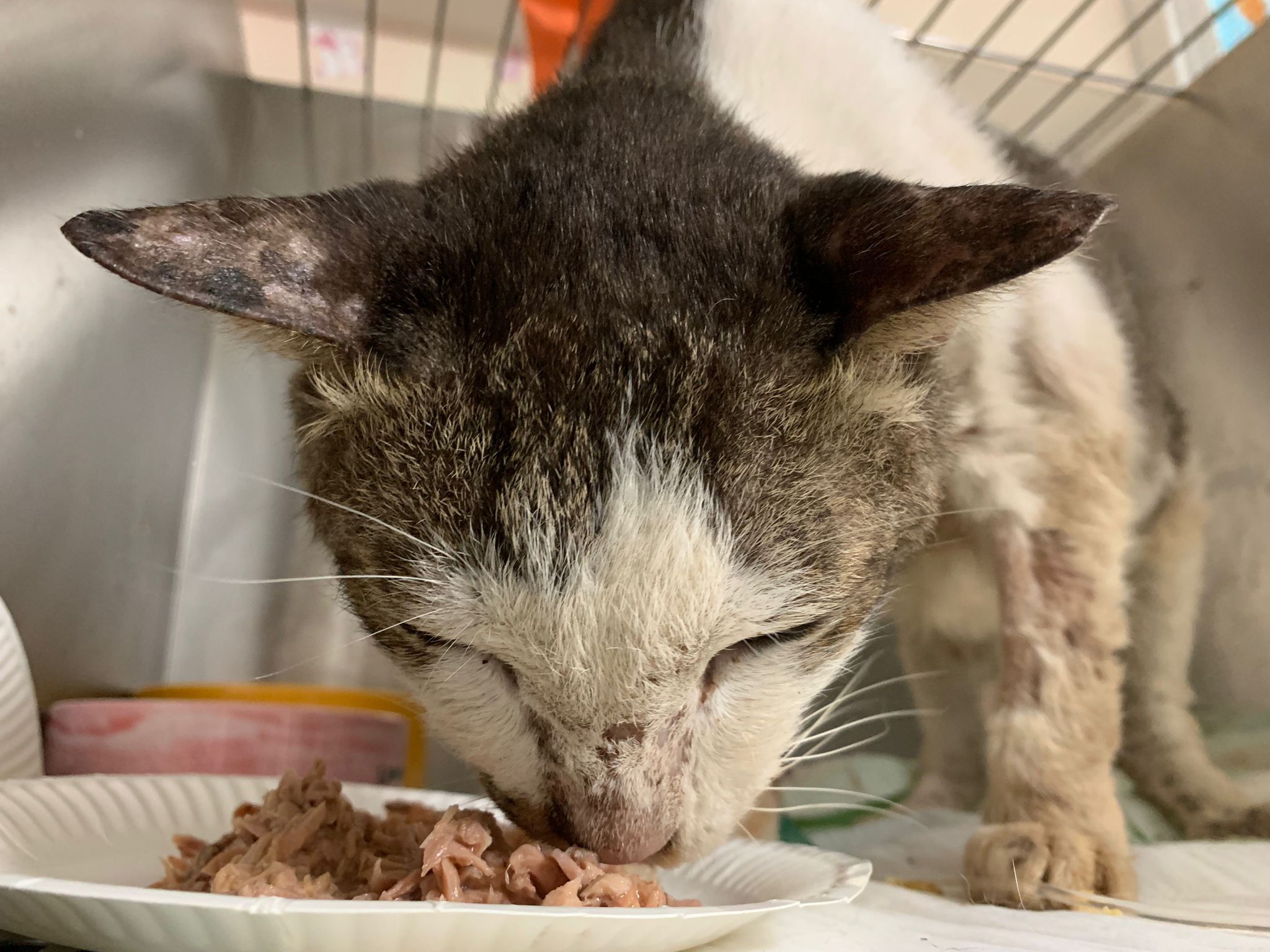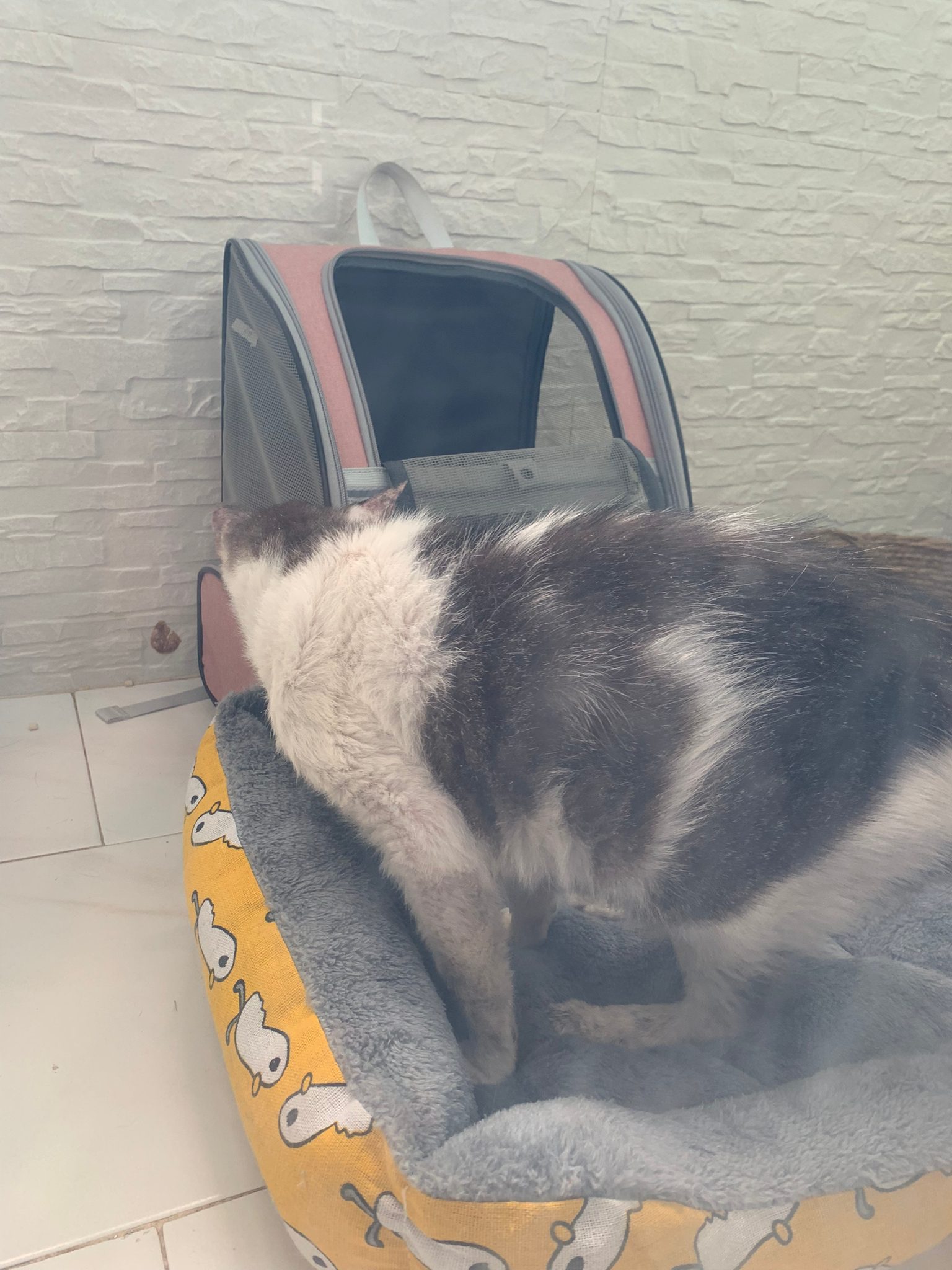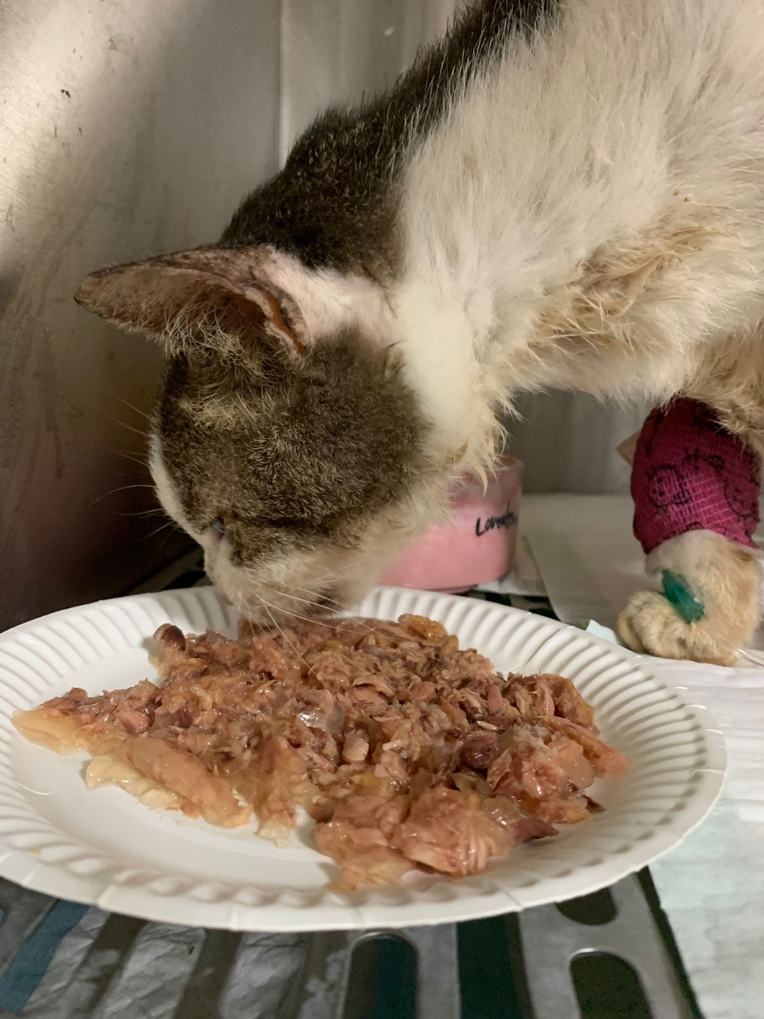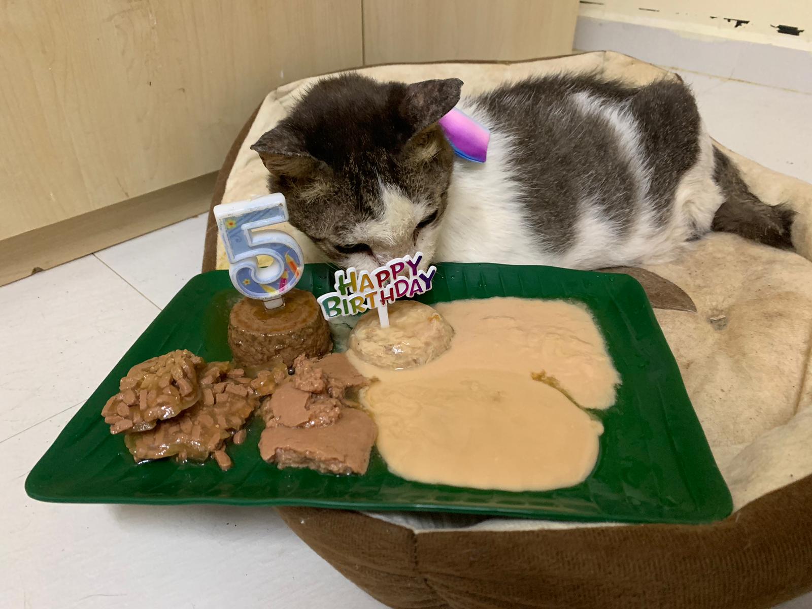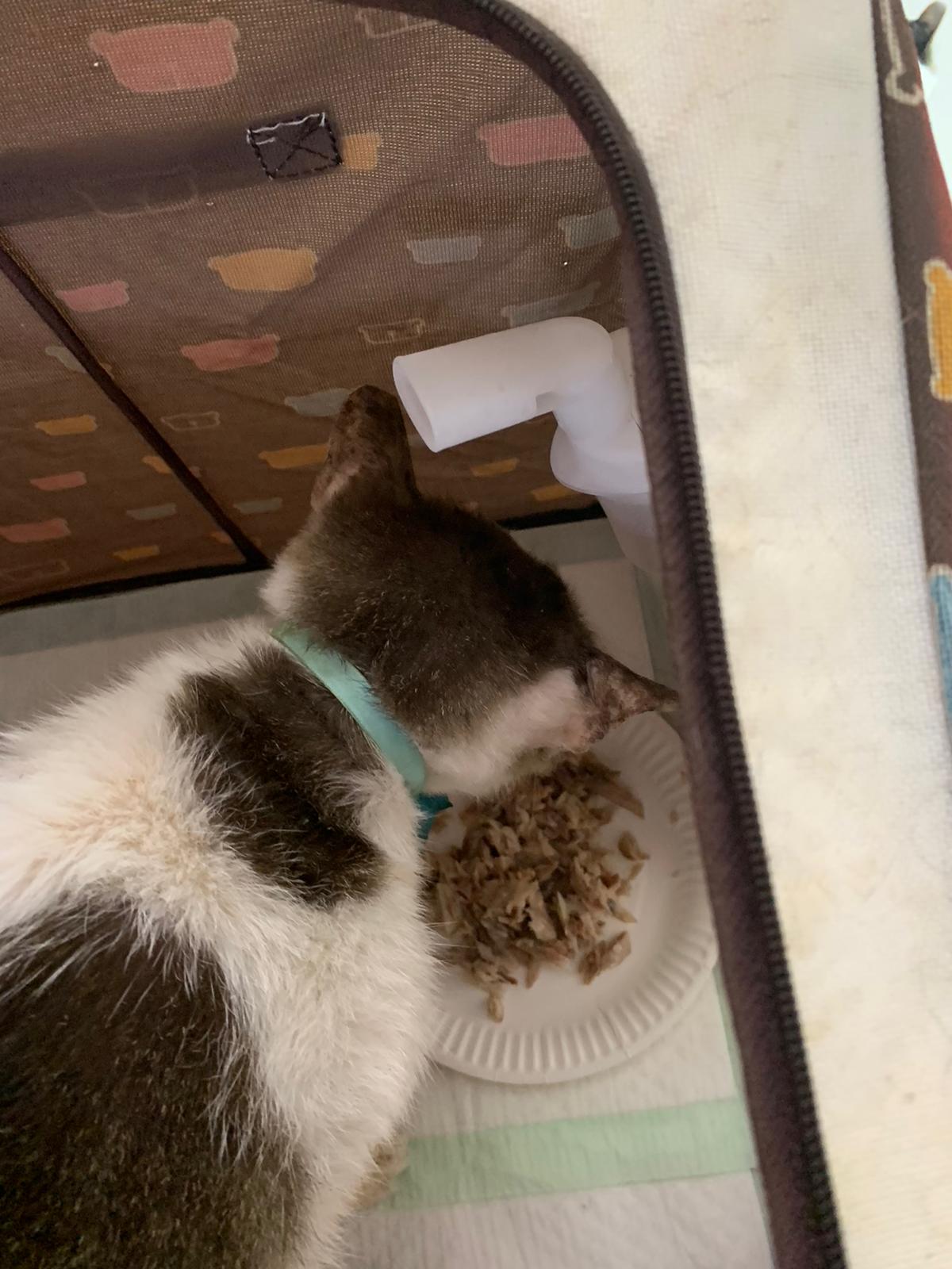 • update Fr Agnes: “This 2 day fat fat dun really eat well , few bite for can food .i put dry food mix with stream fish he also not very interested . This morning the bowl left abit But morning bf he also eat few bite on can food , have to put some dry food food .”
