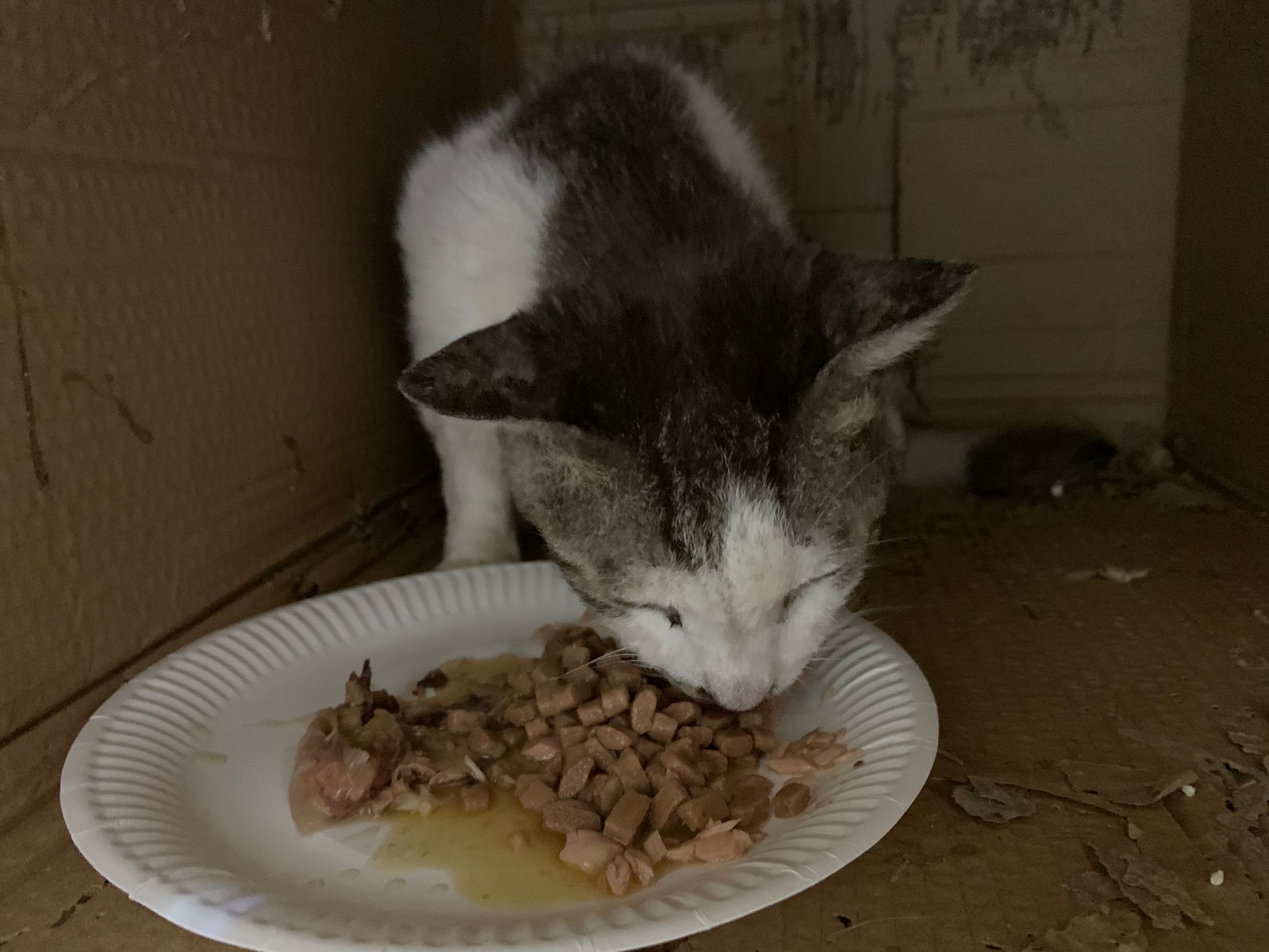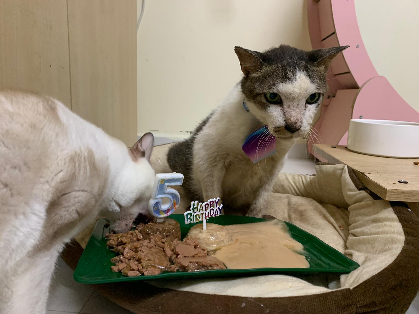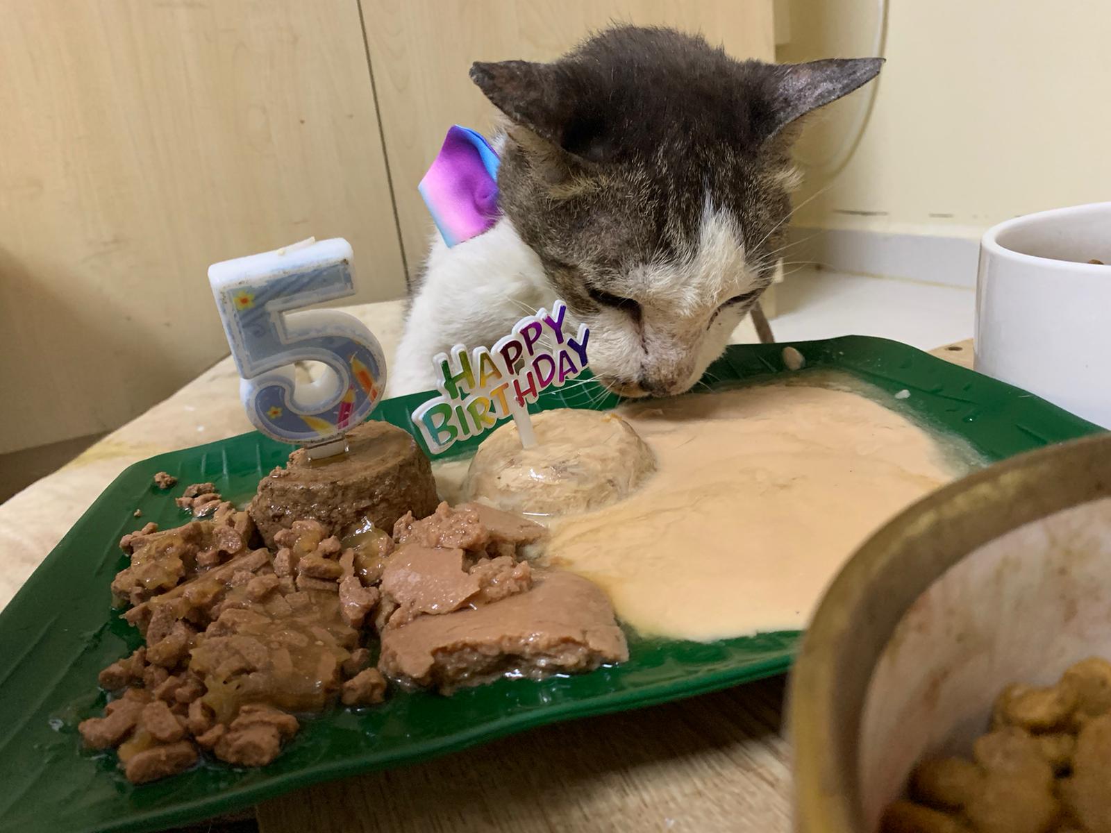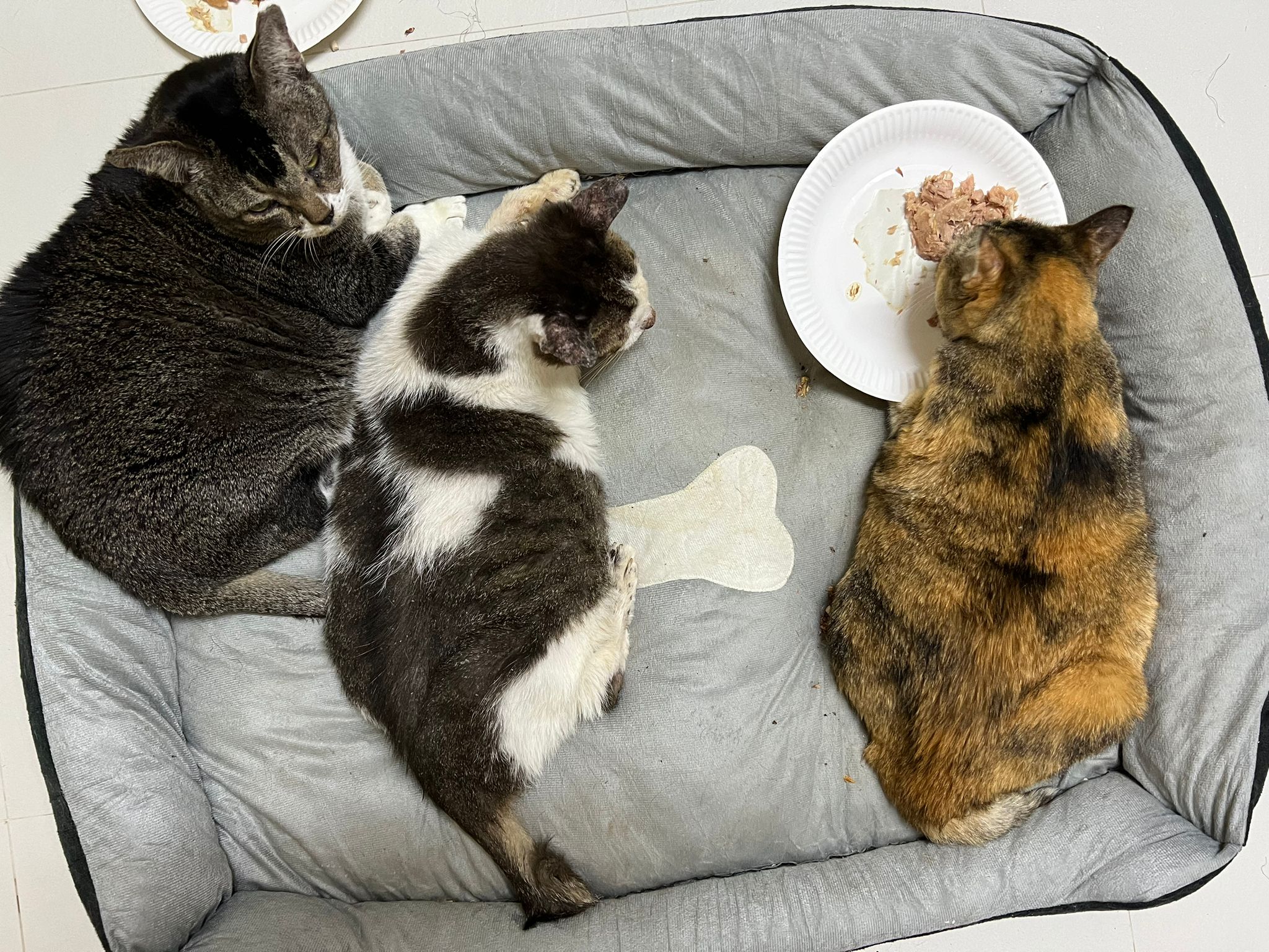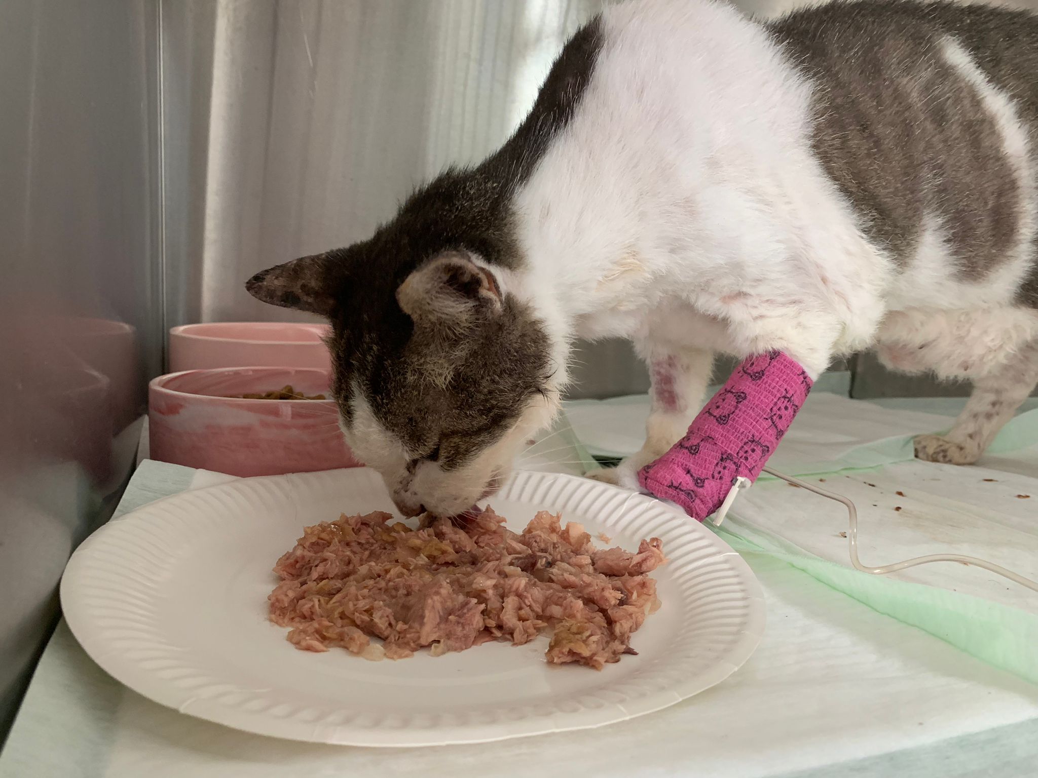 • update Fr Agnes: “This 2 day fat fat dun really eat well , few bite for can food .i put dry food mix with stream fish he also not very interested . This morning the bowl left abit But morning bf he also eat few bite on can food , have to put some dry food food .”