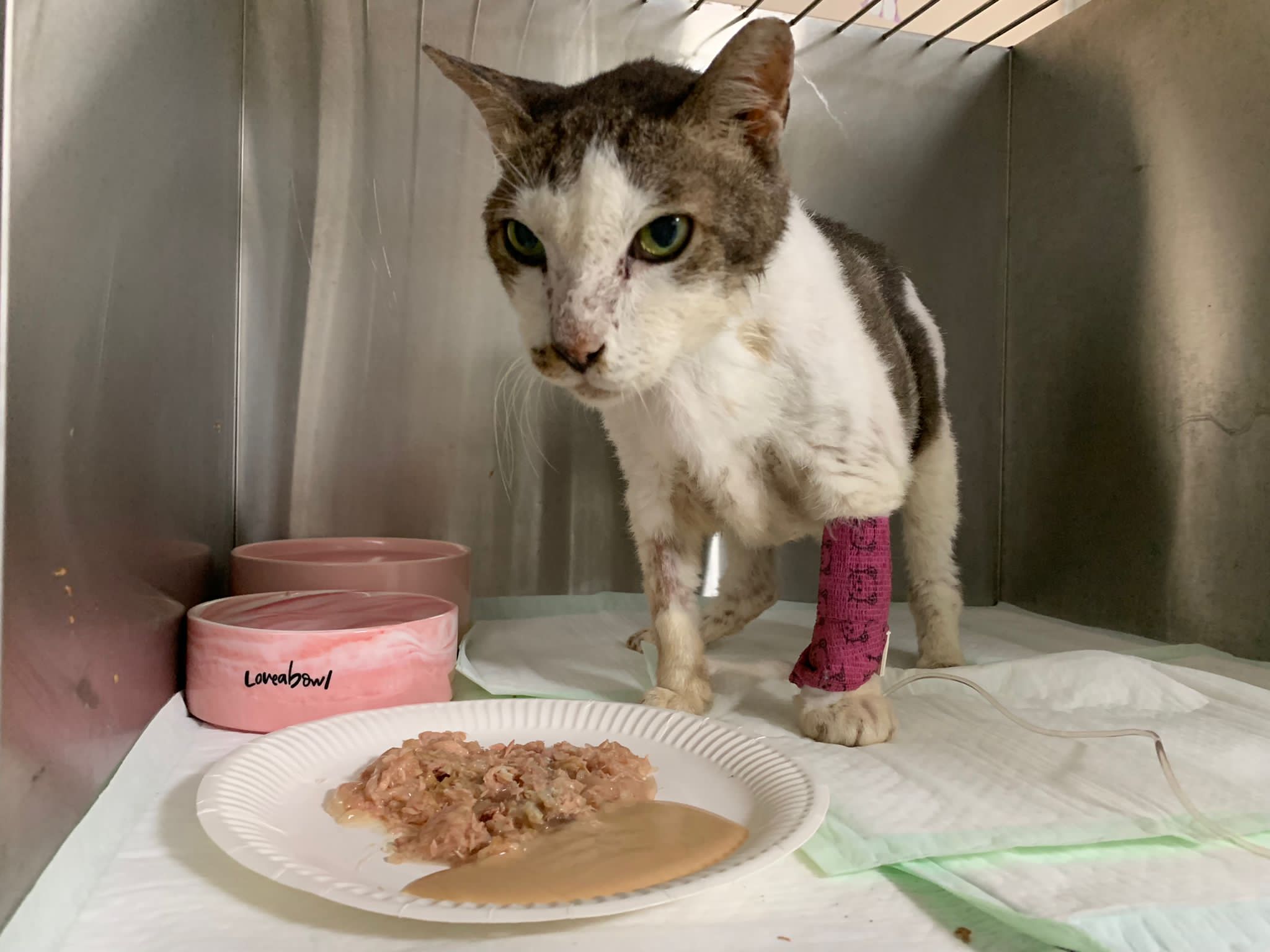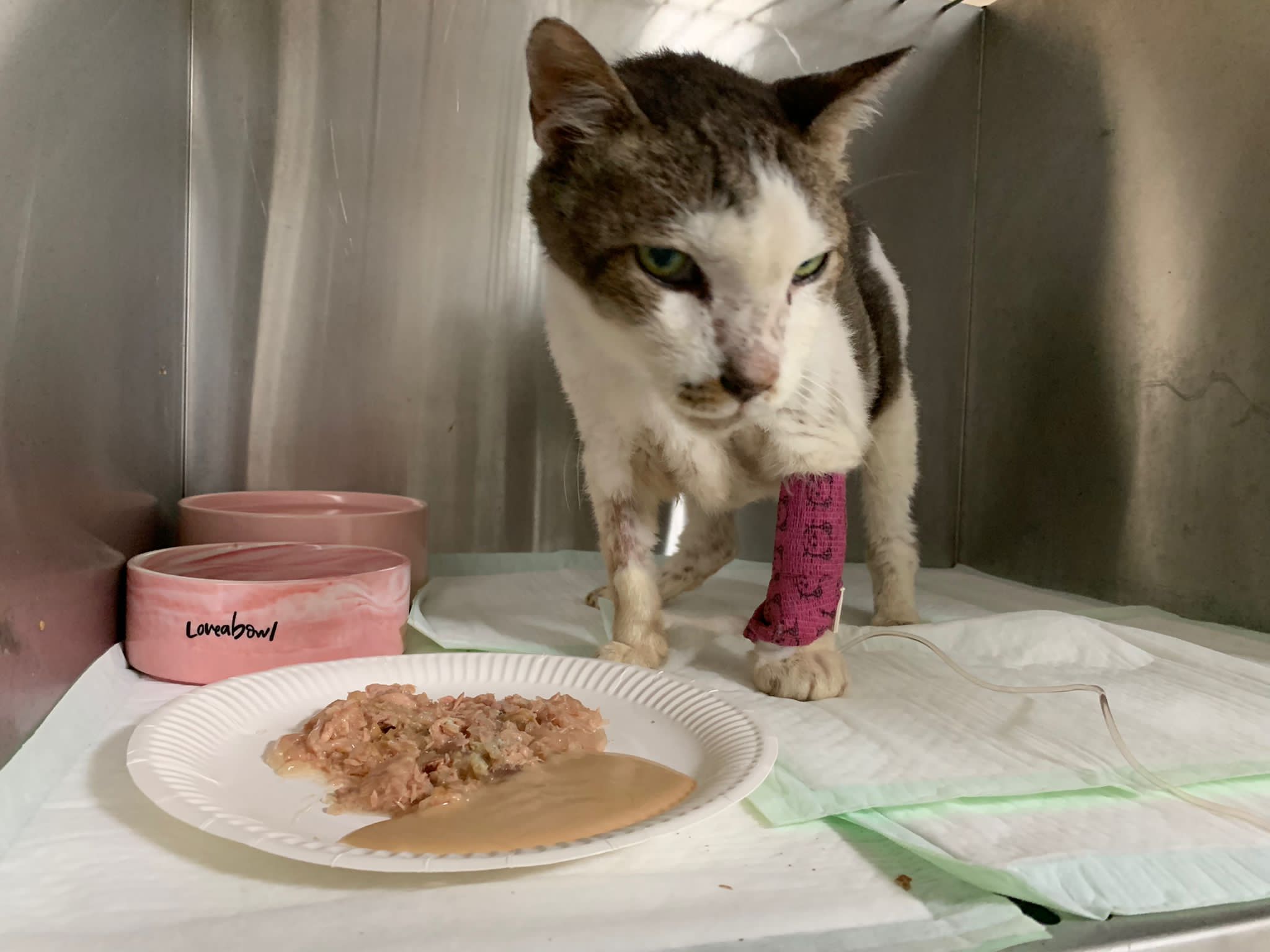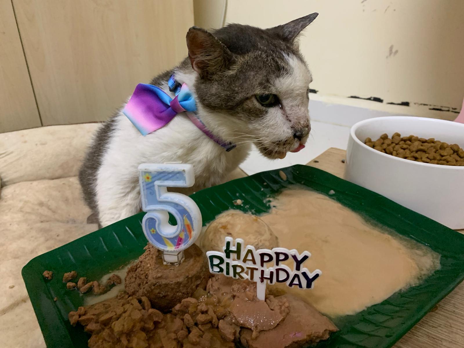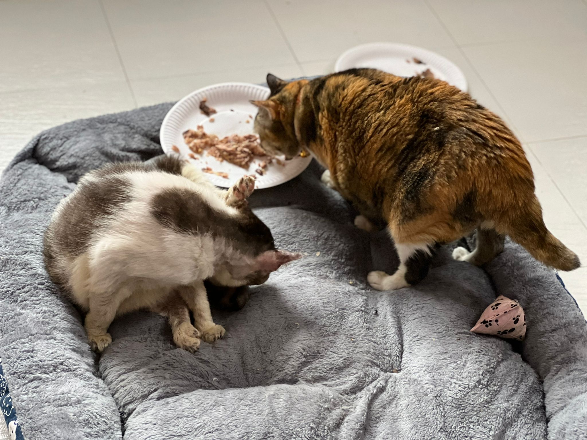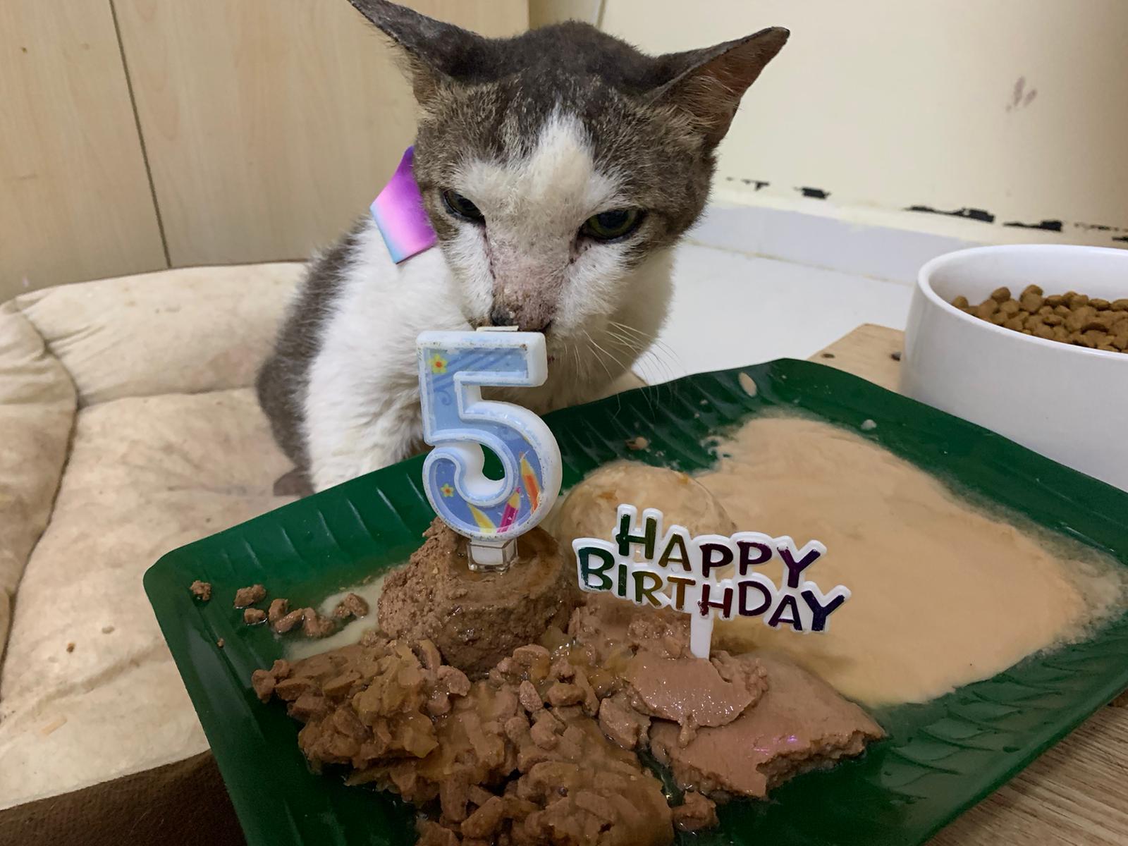 • update Fr Agnes: “This 2 day fat fat dun really eat well , few bite for can food .i put dry food mix with stream fish he also not very interested . This morning the bowl left abit But morning bf he also eat few bite on can food , have to put some dry food food .”