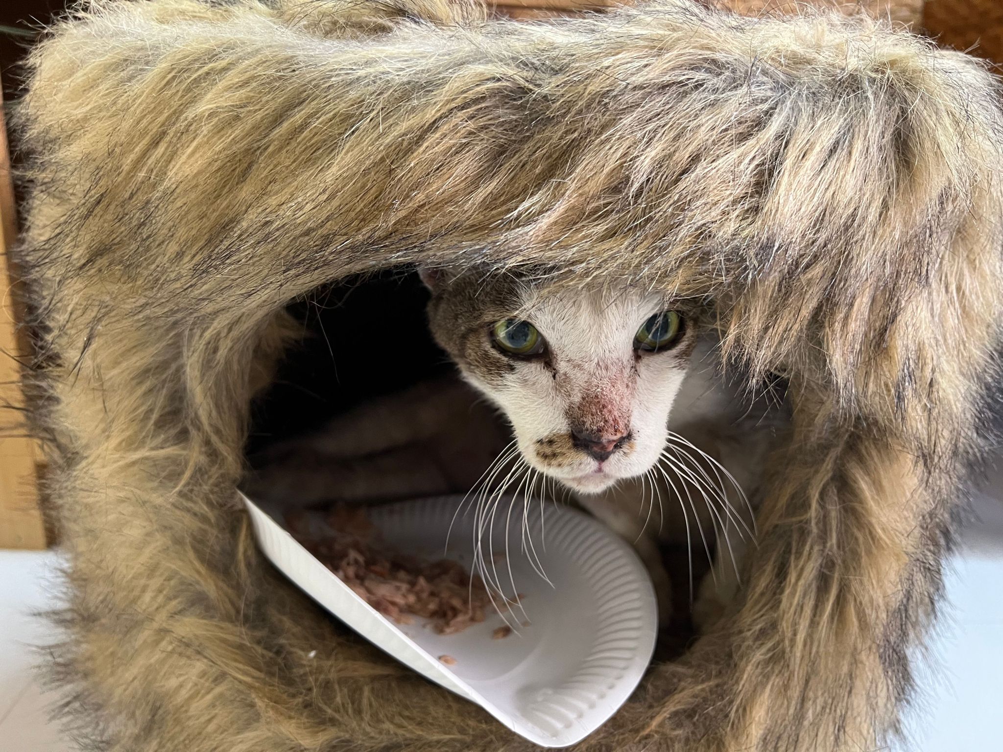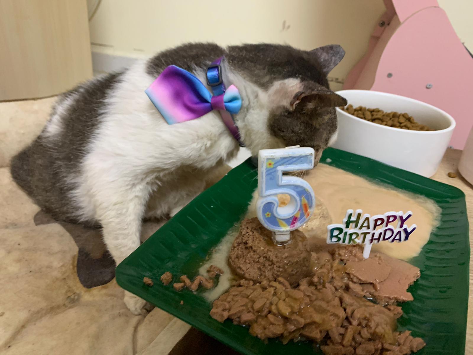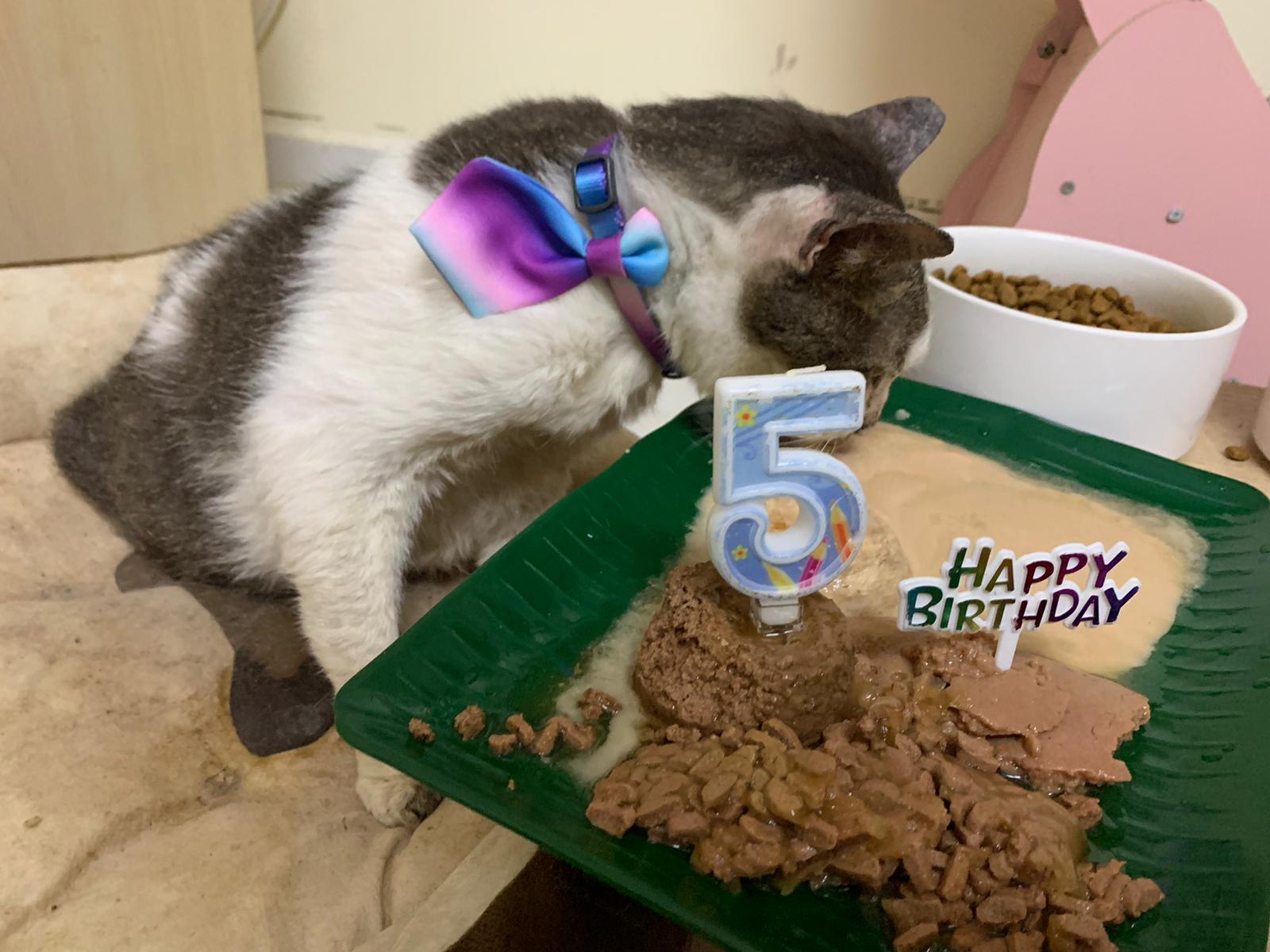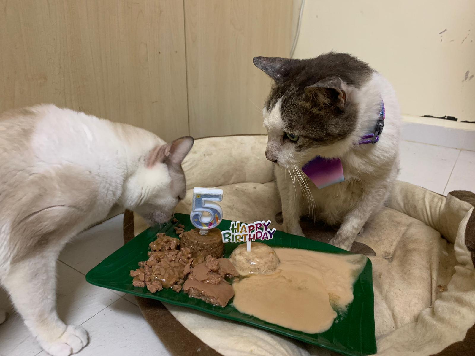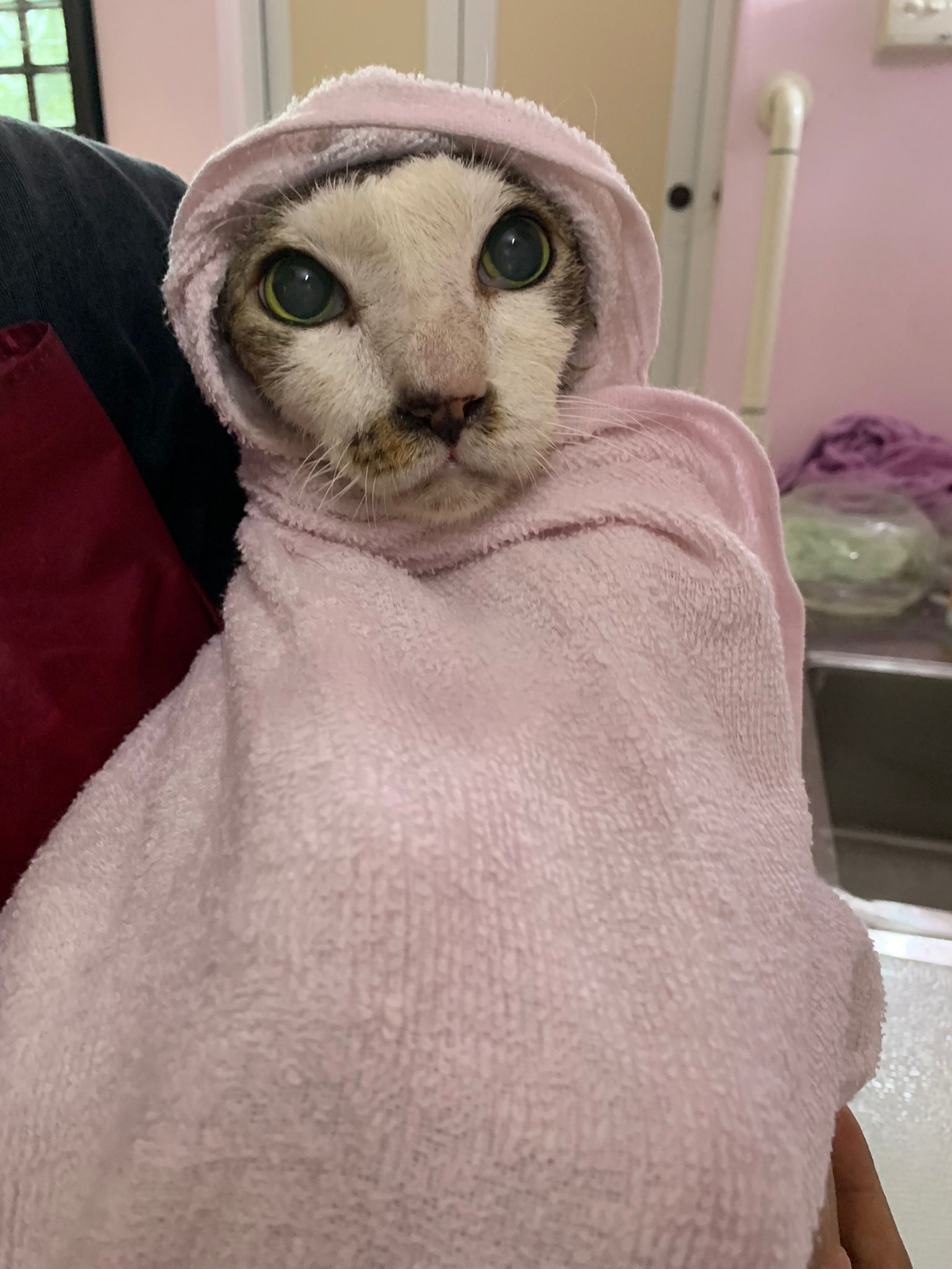 • update Fr Agnes: “This 2 day fat fat dun really eat well , few bite for can food .i put dry food mix with stream fish he also not very interested . This morning the bowl left abit But morning bf he also eat few bite on can food , have to put some dry food food .”
