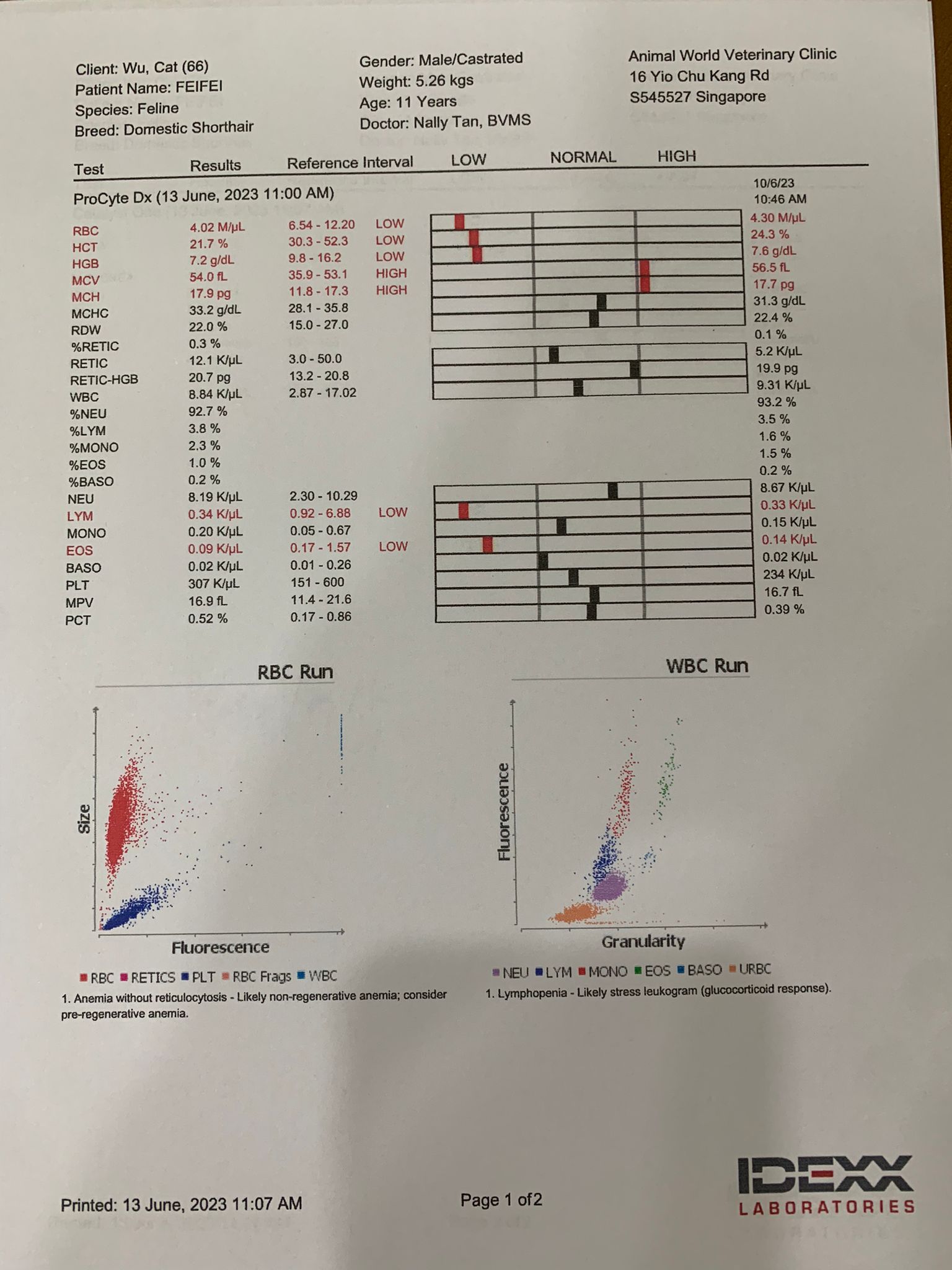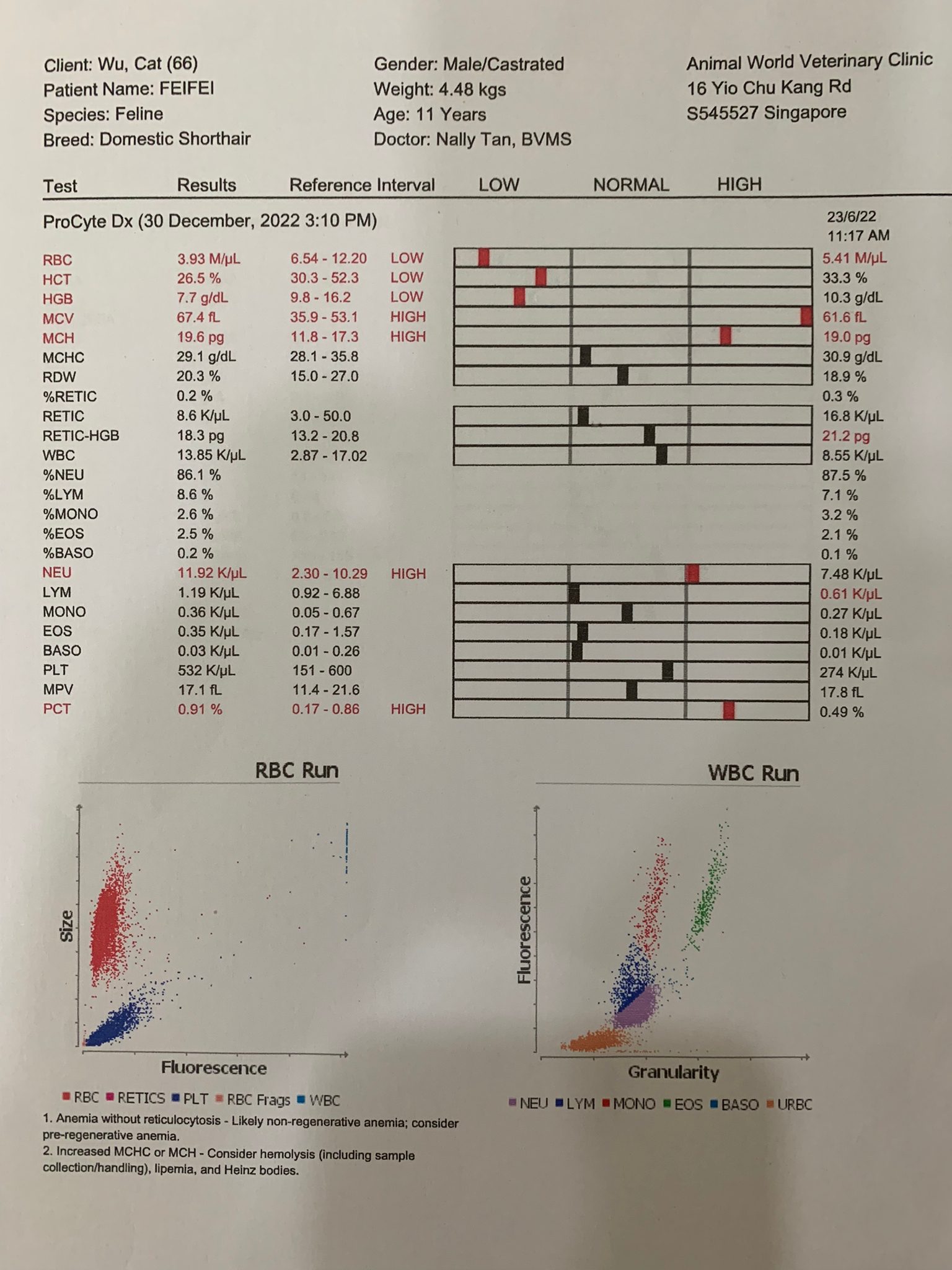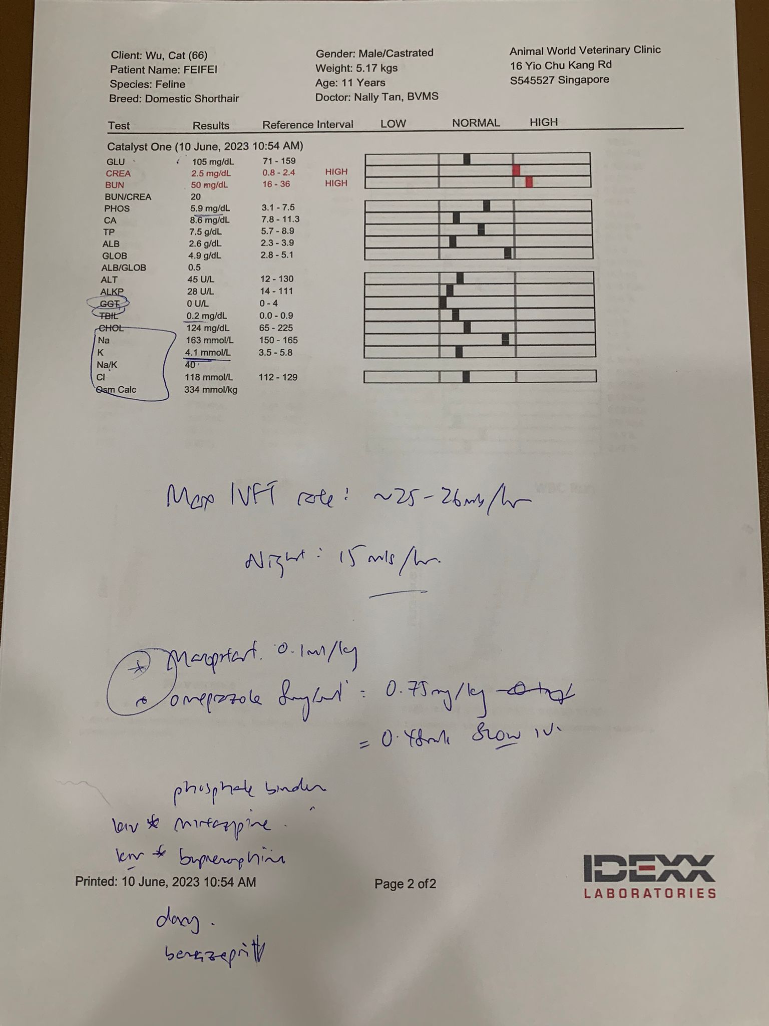 0.075ml 40ug. Crea 2.8 bun 66 – medi can’t stop. Sigh. have to give more frequent. review in 2-3 months time. Dr nally didn’t sound v positive about azodyl. Erm … she mention very ex n didn’t sound like it got much usefulness.