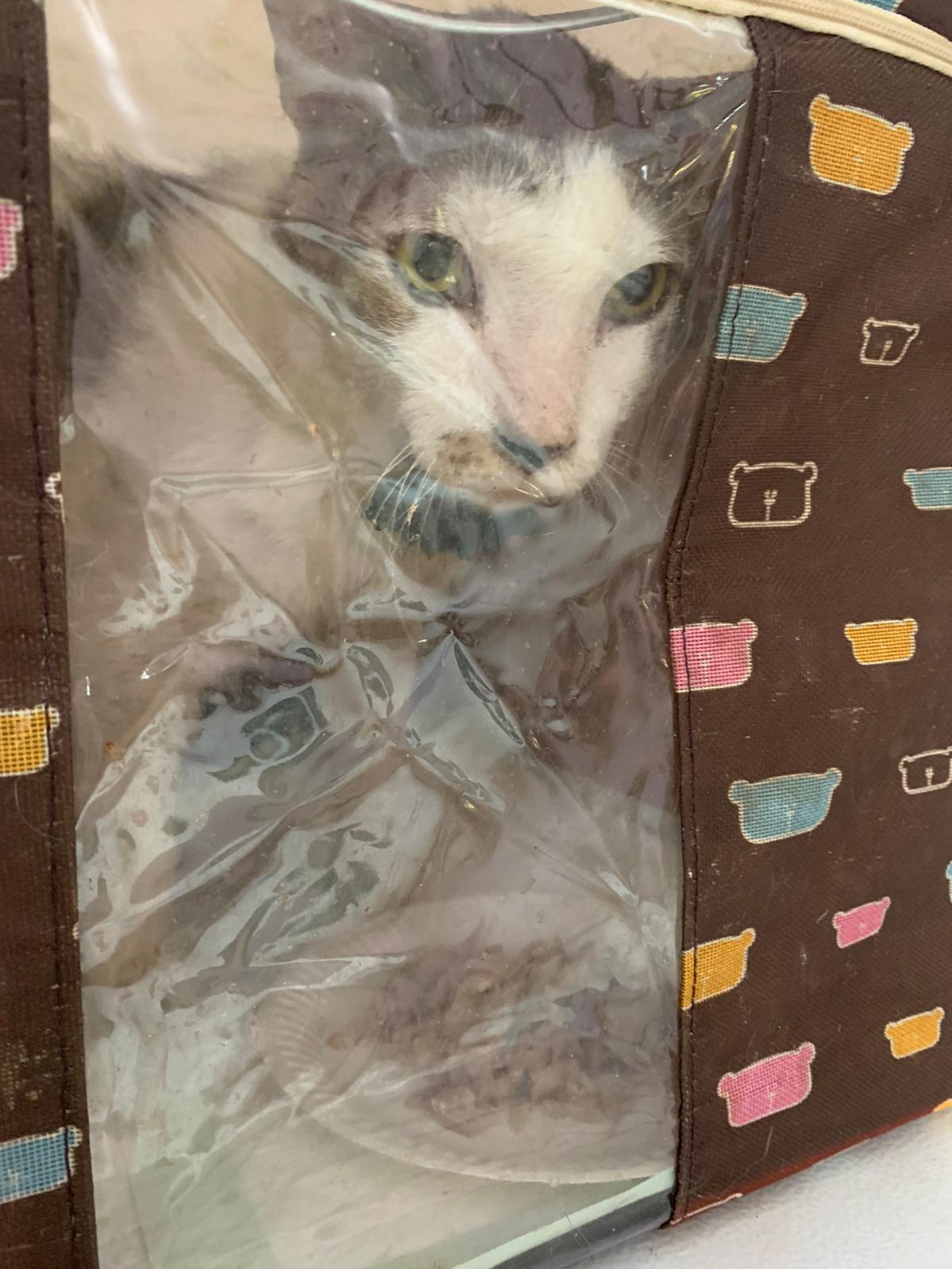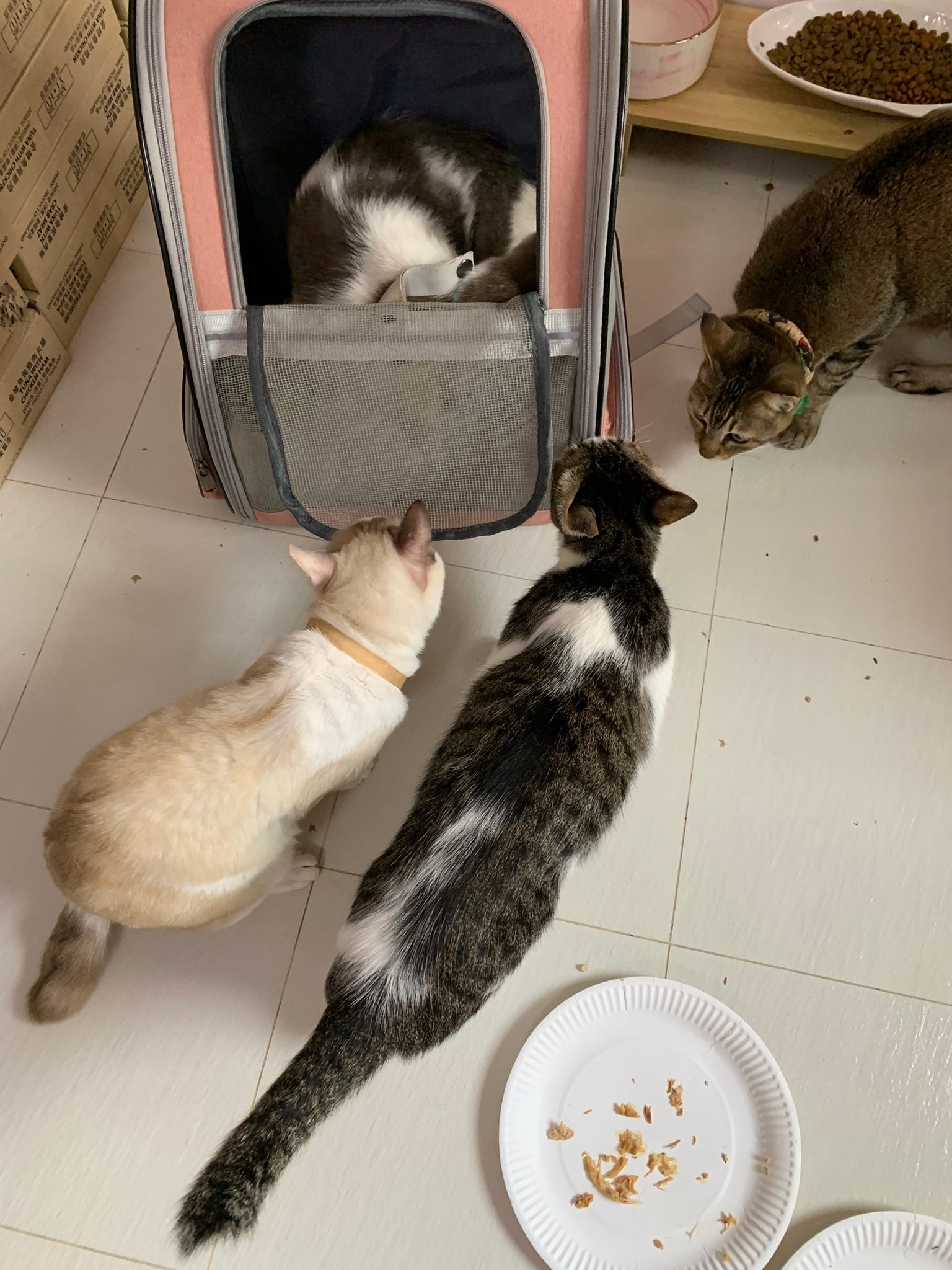 • today he go back to void deck, b4 Agnes fetch him back I told him I go find steam fish for him as fatewell party … he looks sad to leave 猫房
