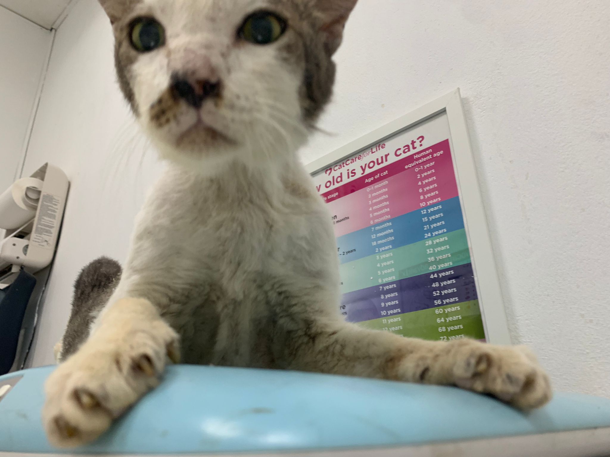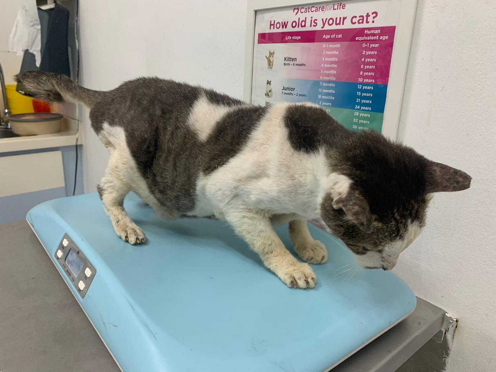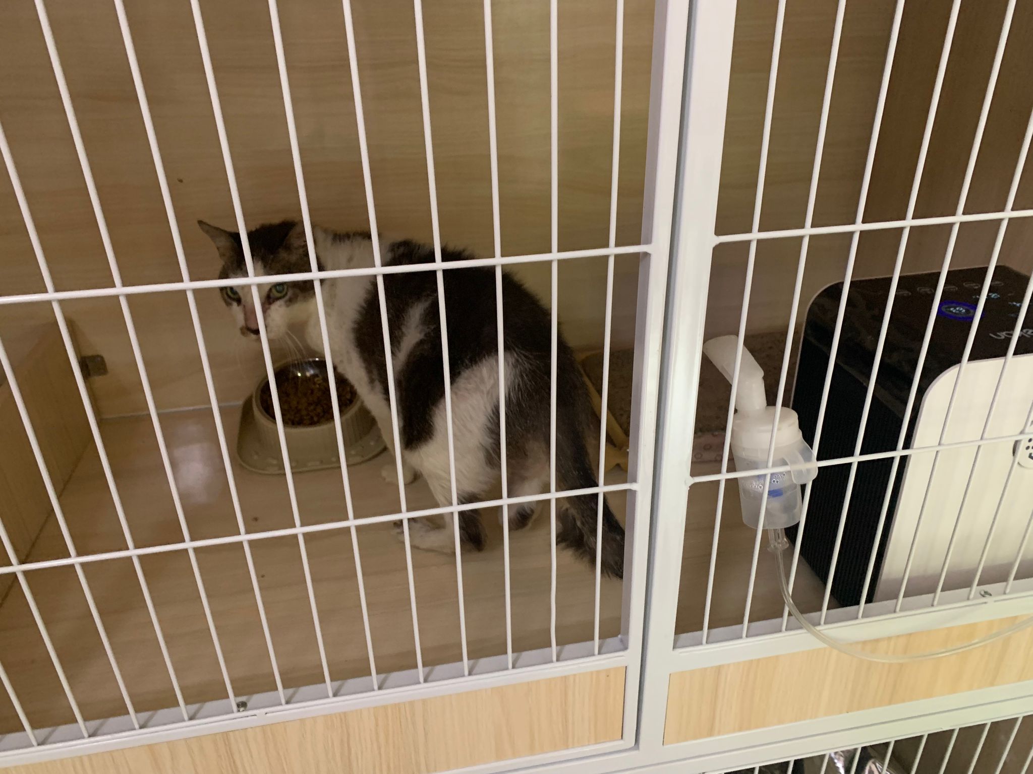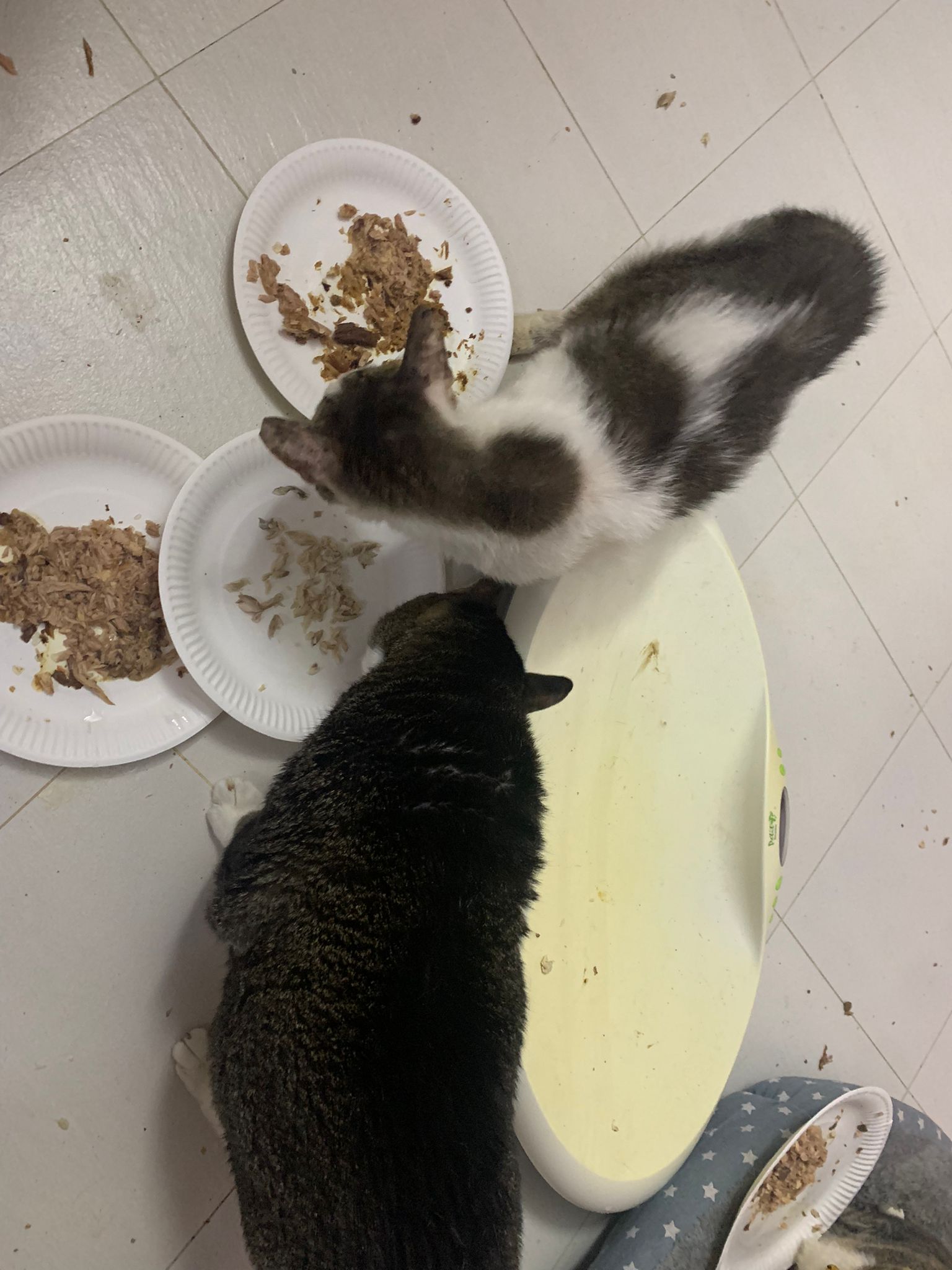 • 630pm: enter 猫房 – weigh him 7.39kg – first cat he seen is tiger Mao, no reaction. He hiss at Rena who scream at him