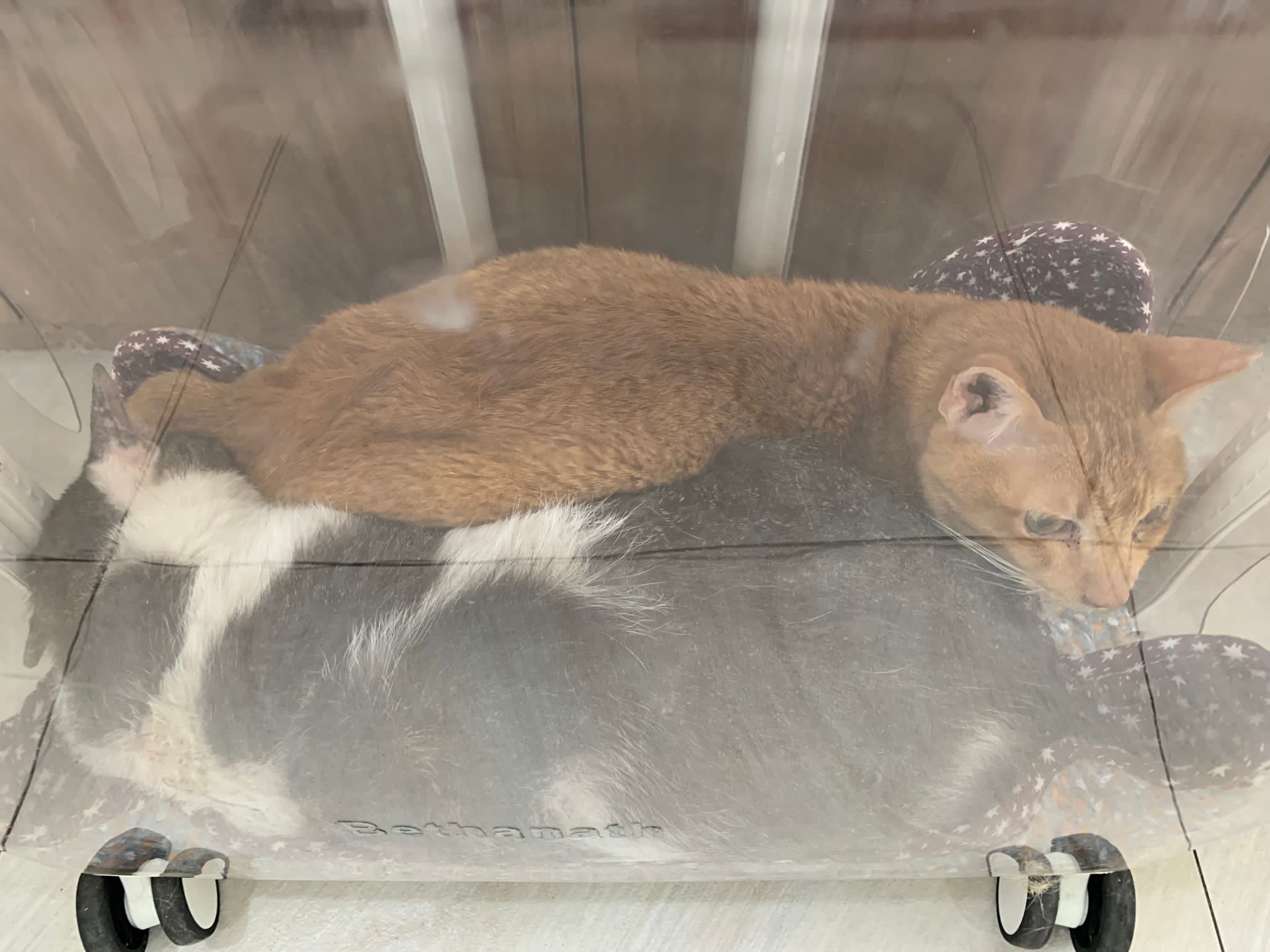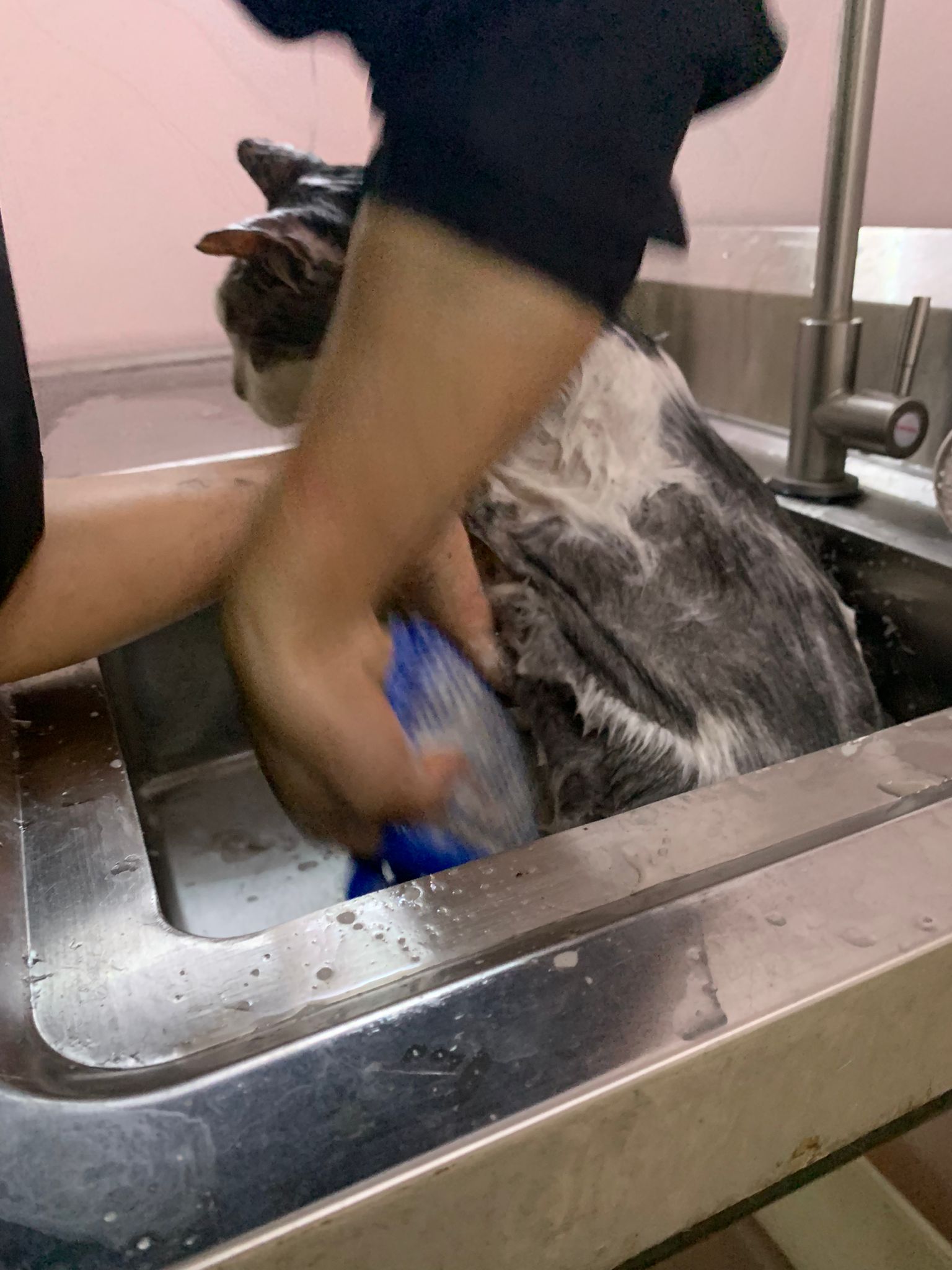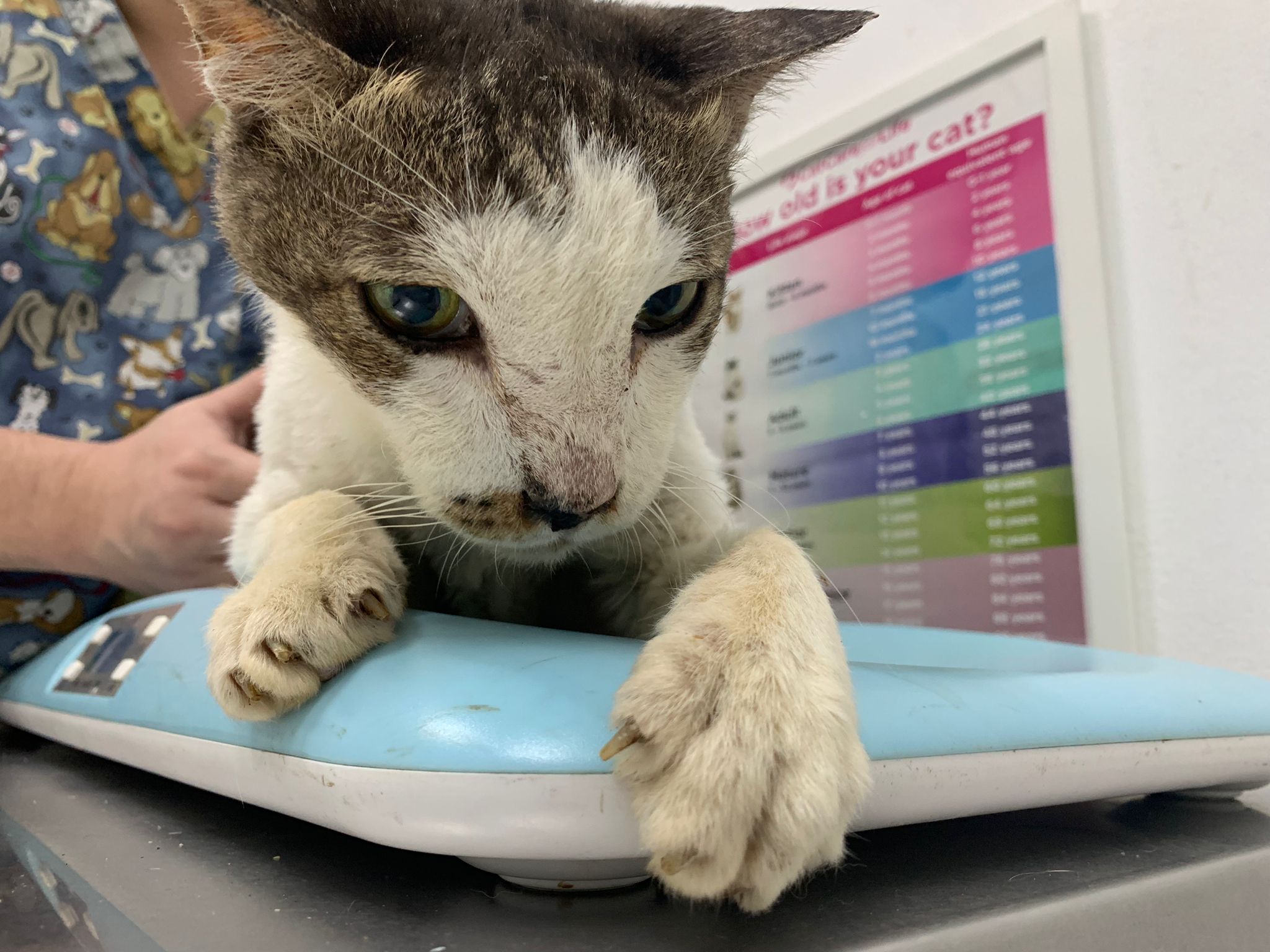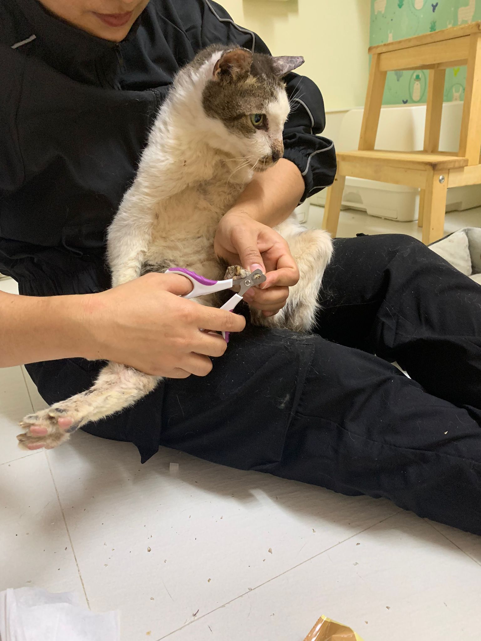 • 630pm: enter 猫房 – weigh him 7.39kg – first cat he seen is tiger Mao, no reaction. He hiss at Rena who scream at him