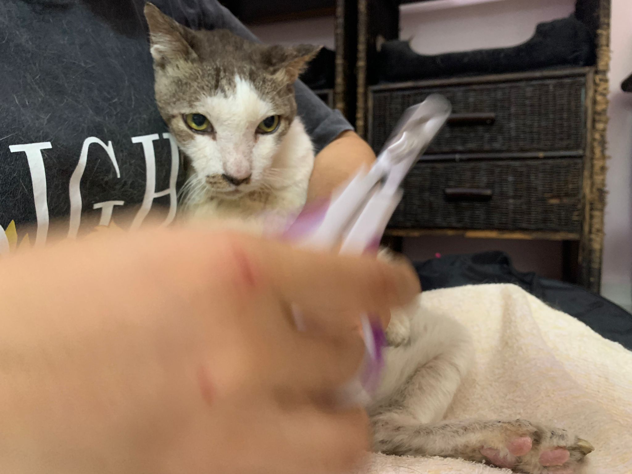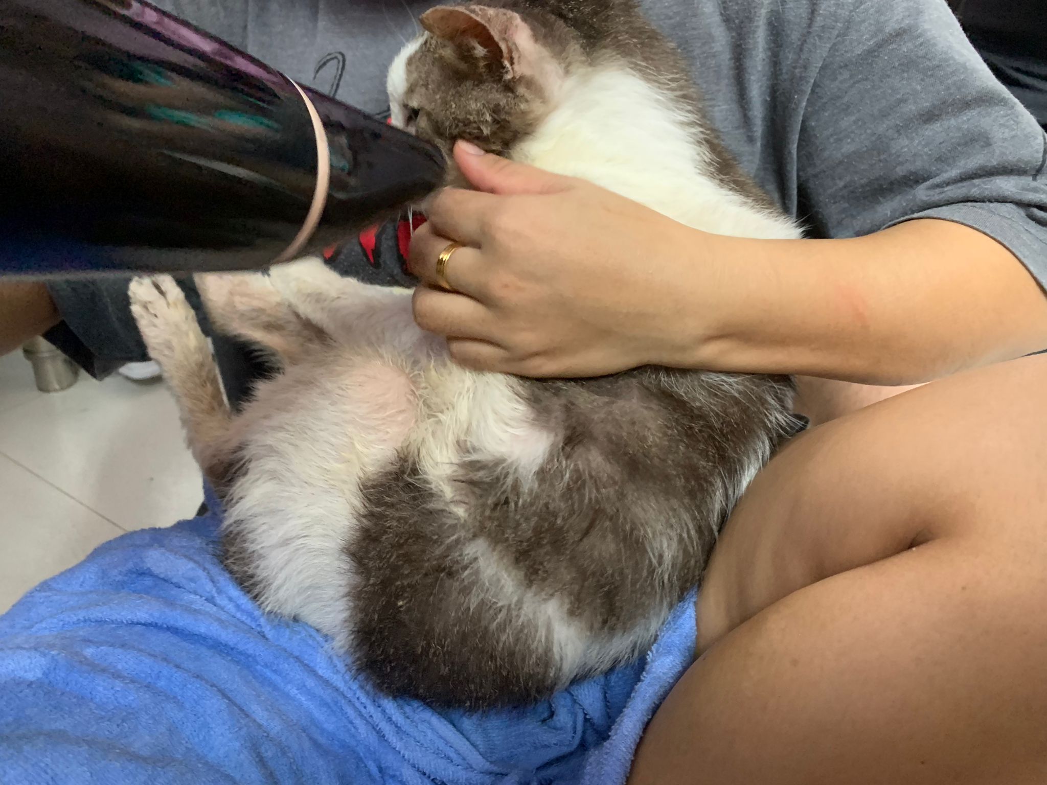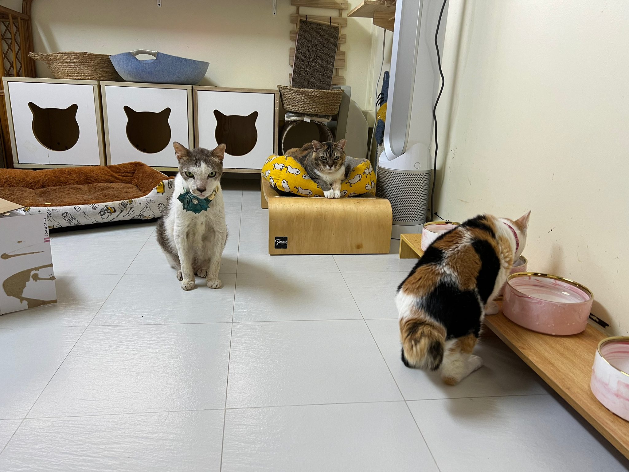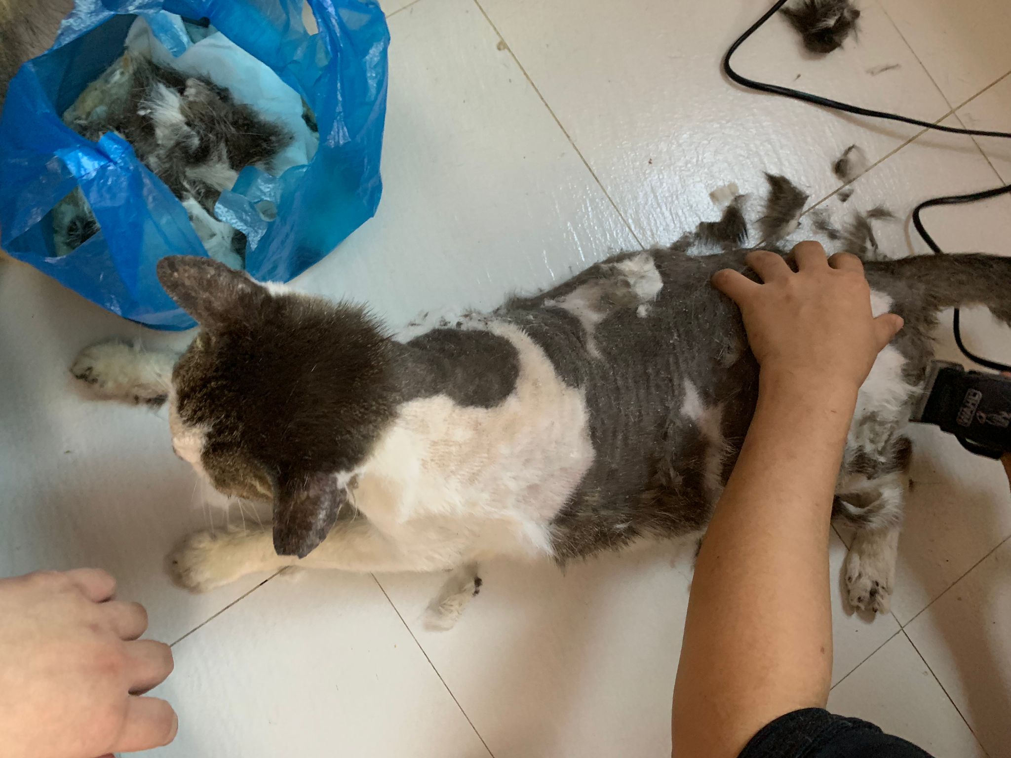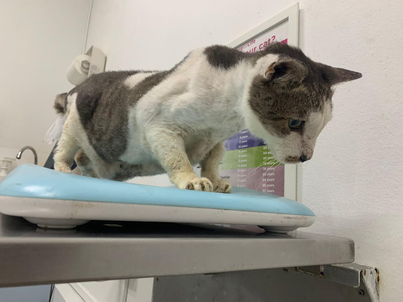 • 630pm: enter 猫房 – weigh him 7.39kg – first cat he seen is tiger Mao, no reaction. He hiss at Rena who scream at him