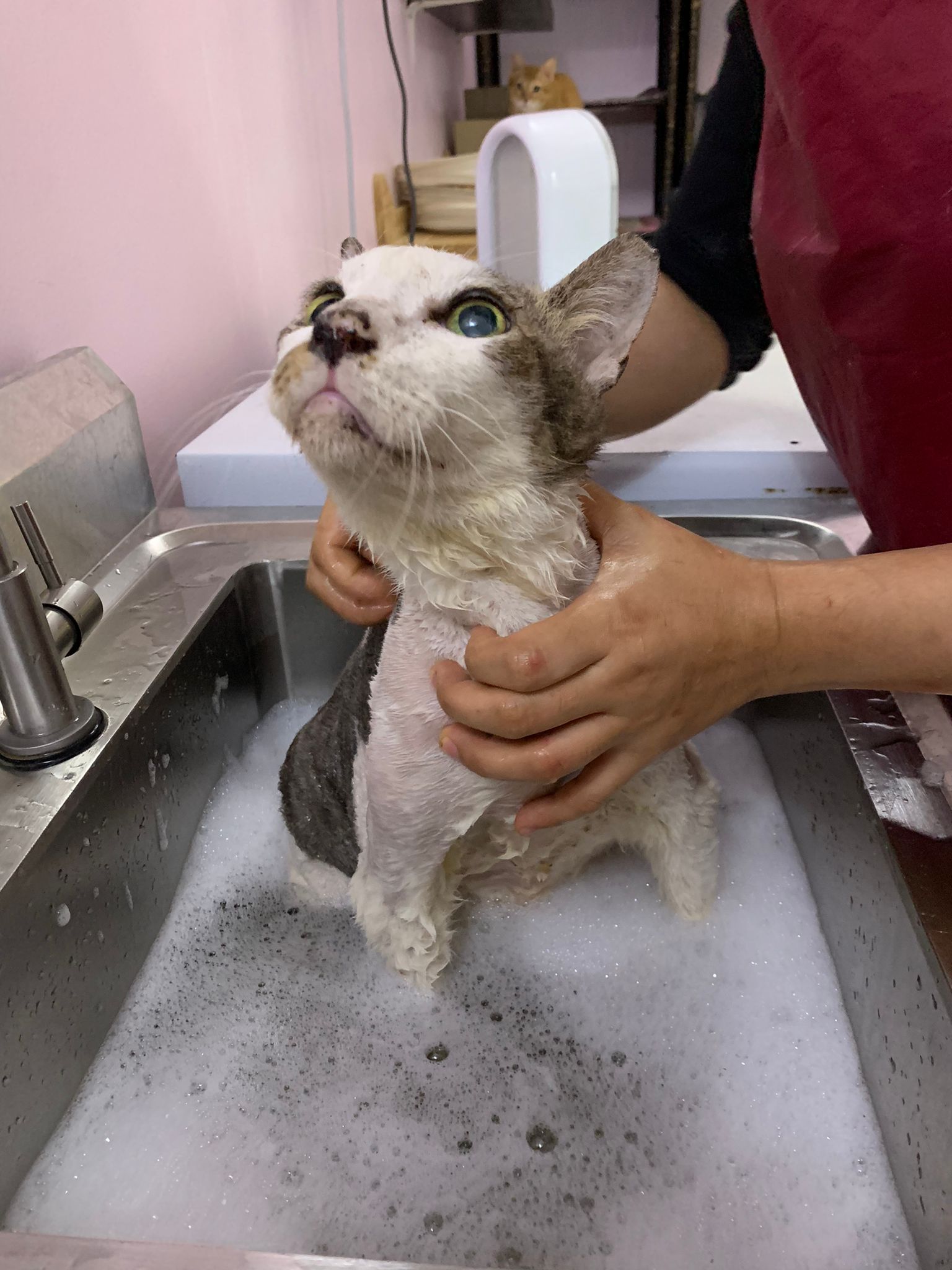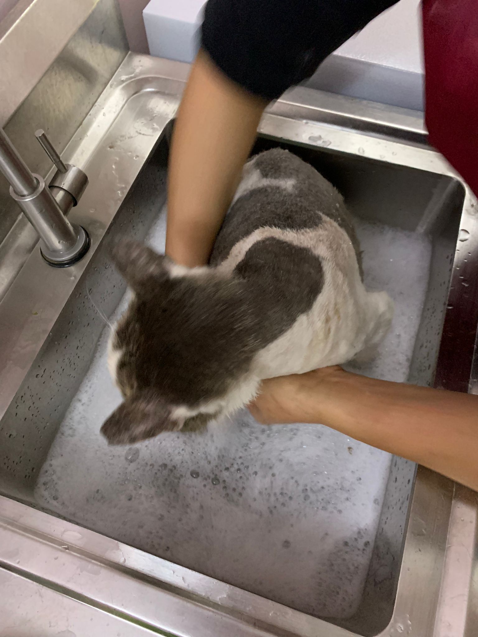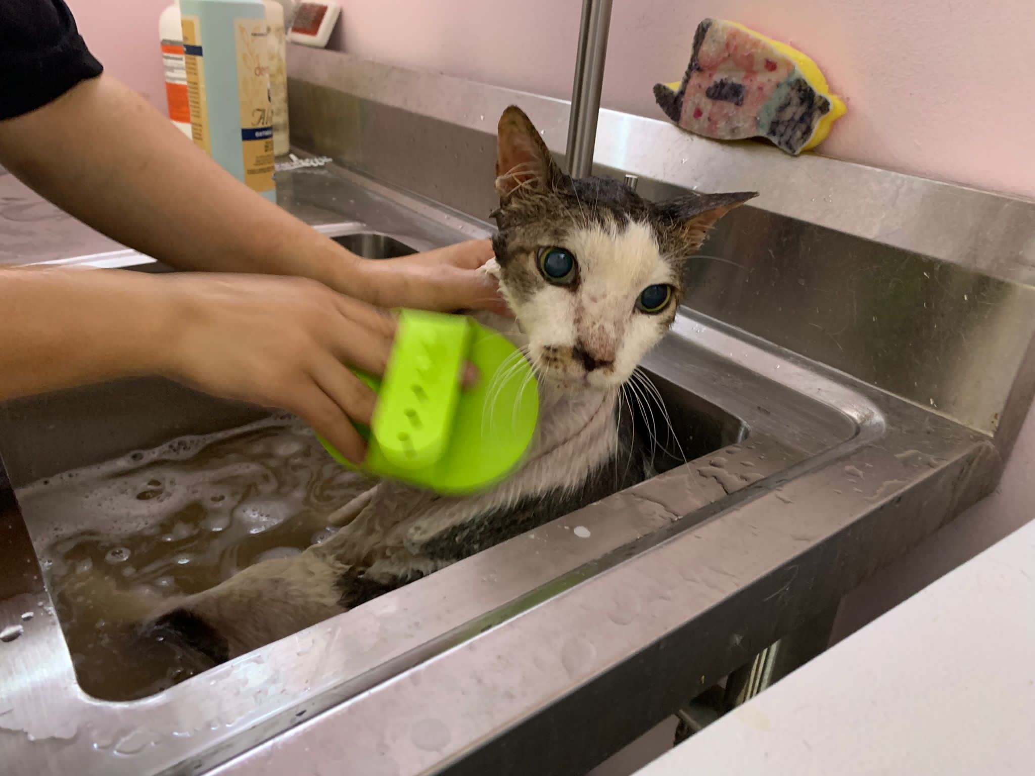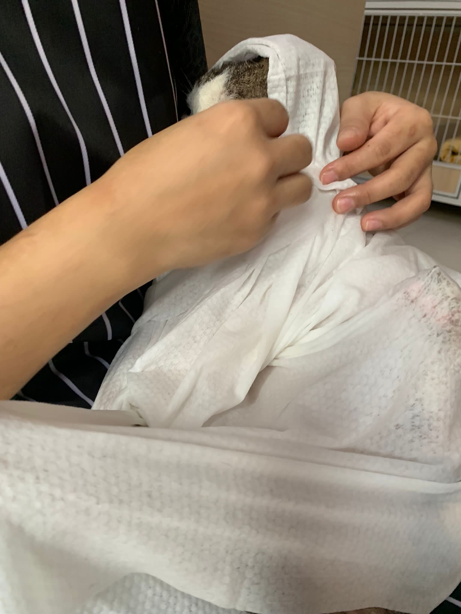 • 630pm: enter 猫房 – weigh him 7.39kg – first cat he seen is tiger Mao, no reaction. He hiss at Rena who scream at him