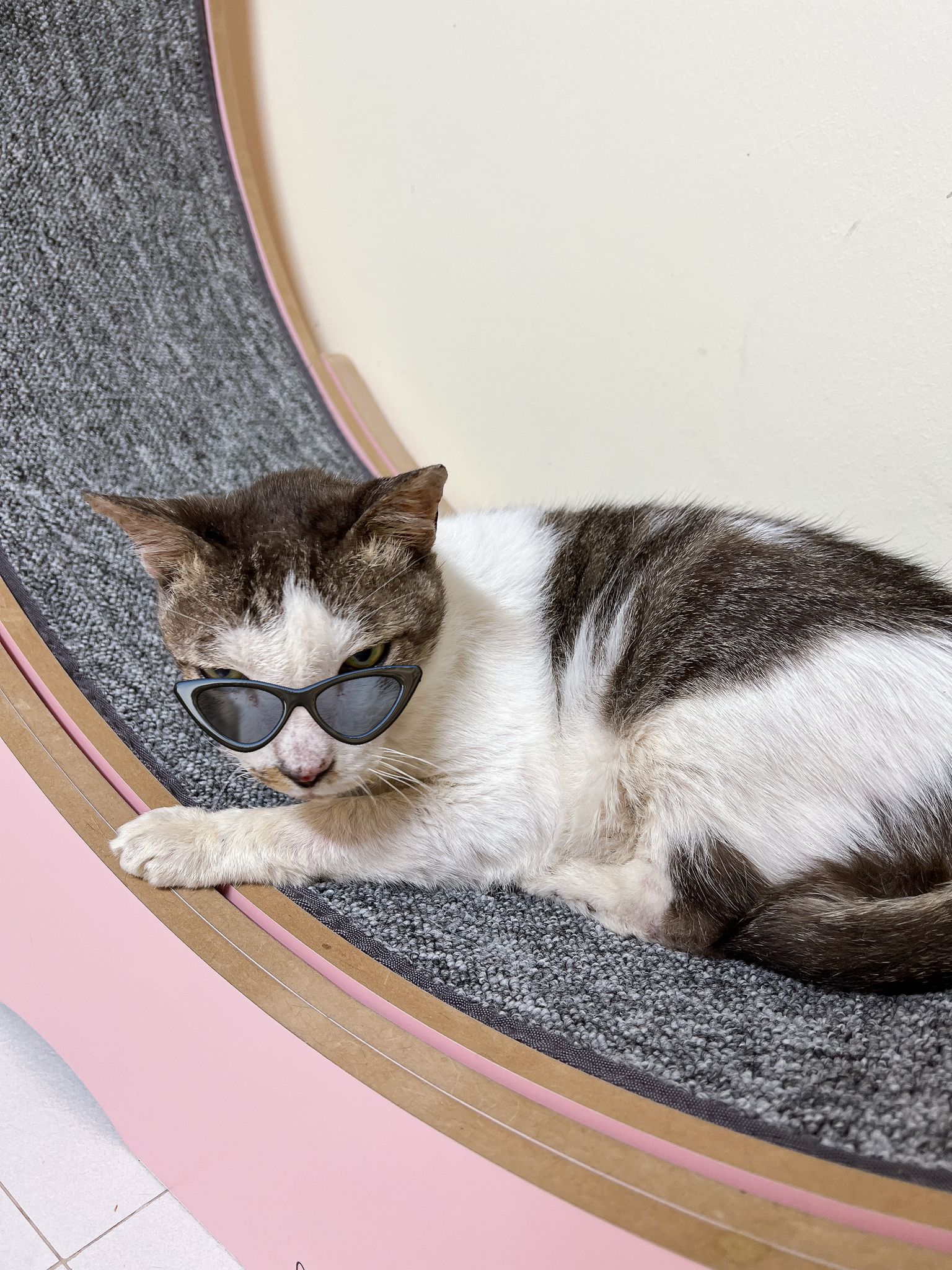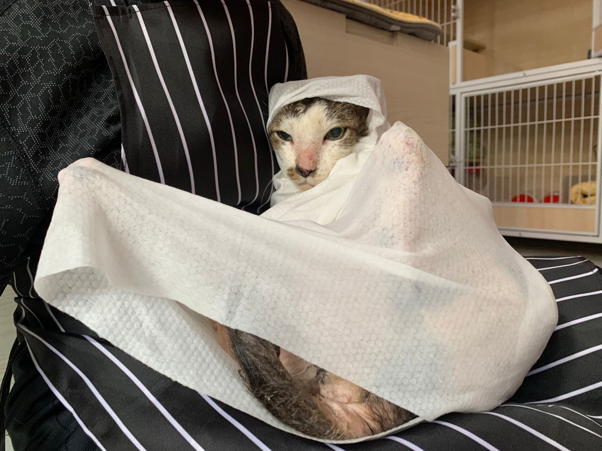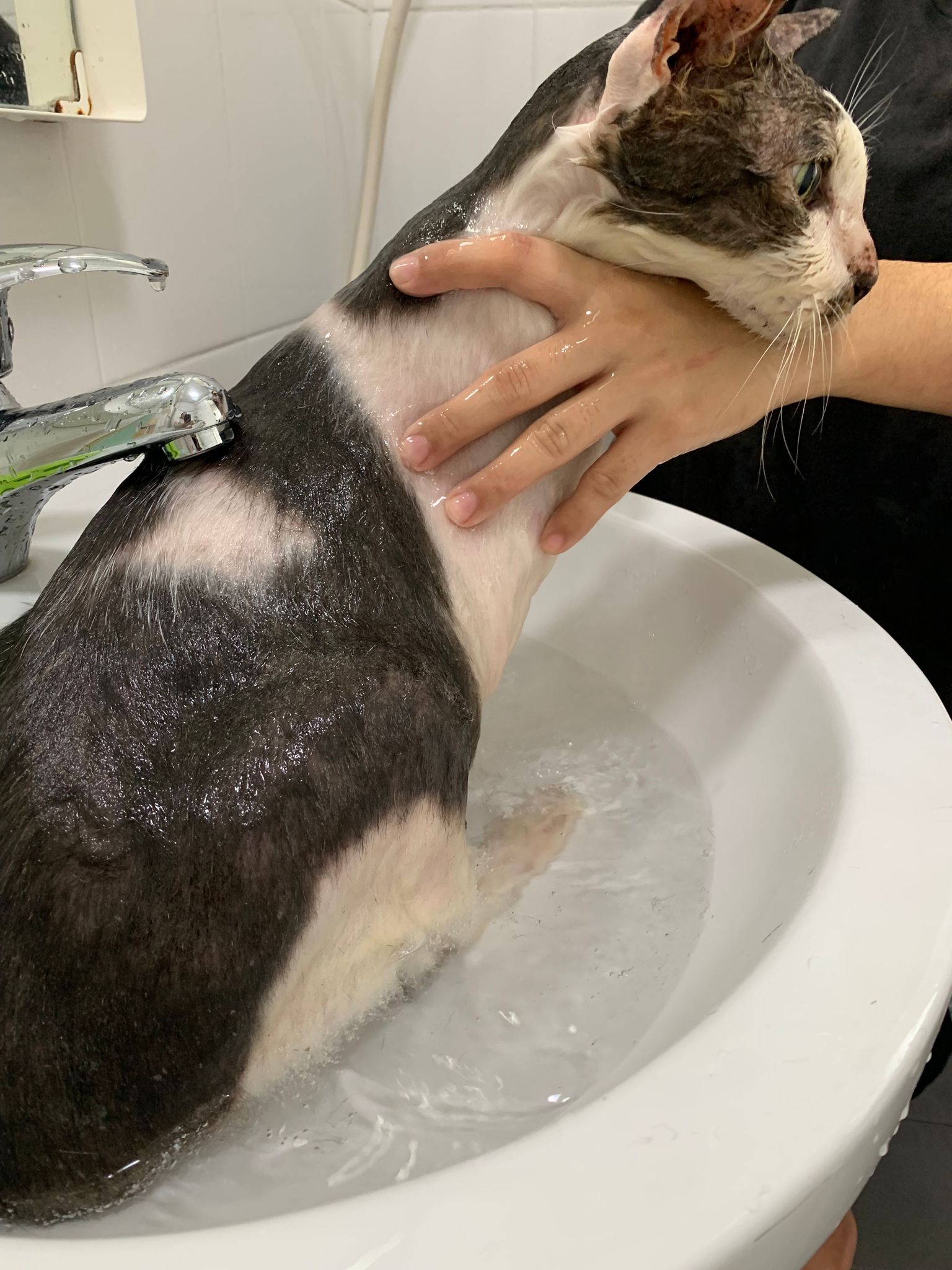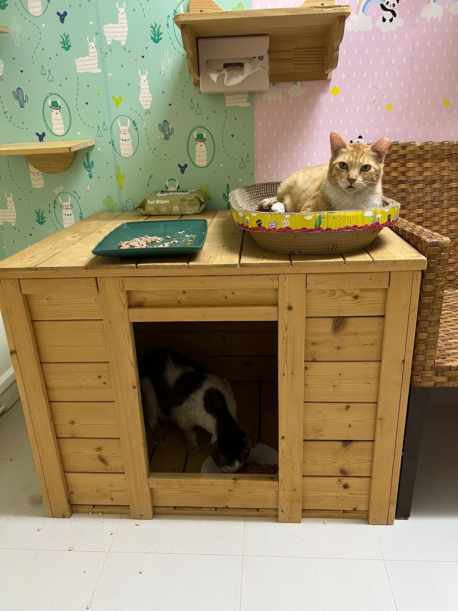 • 630pm: enter 猫房 – weigh him 7.39kg – first cat he seen is tiger Mao, no reaction. He hiss at Rena who scream at him