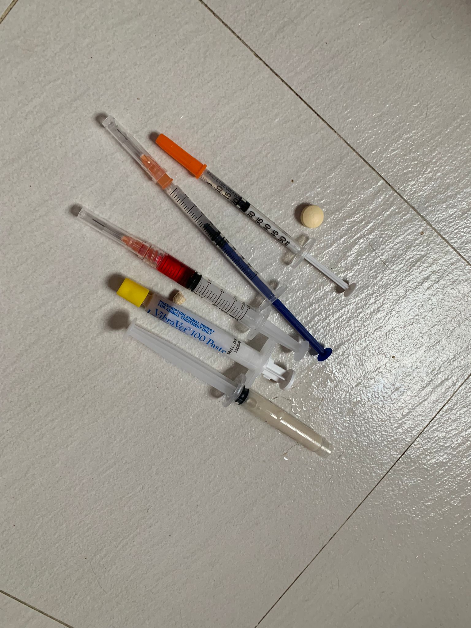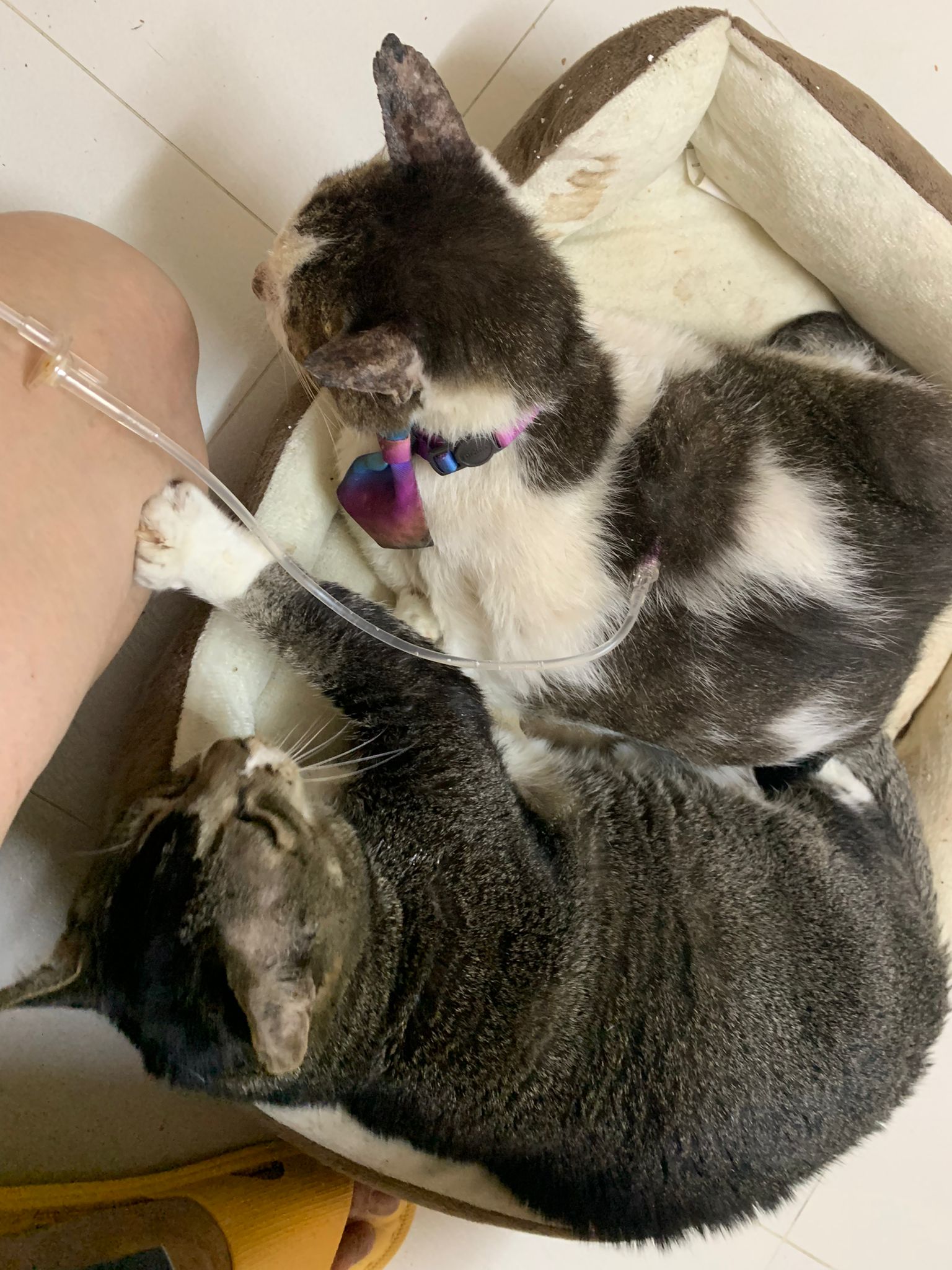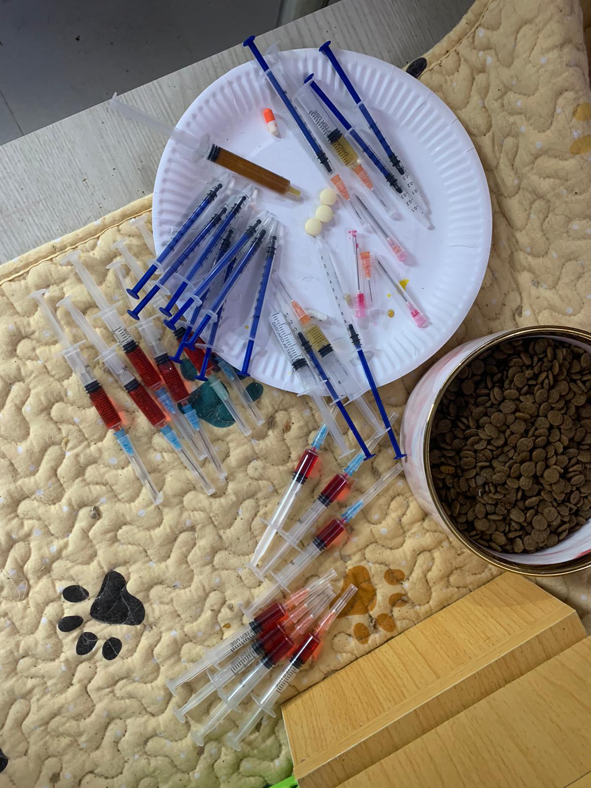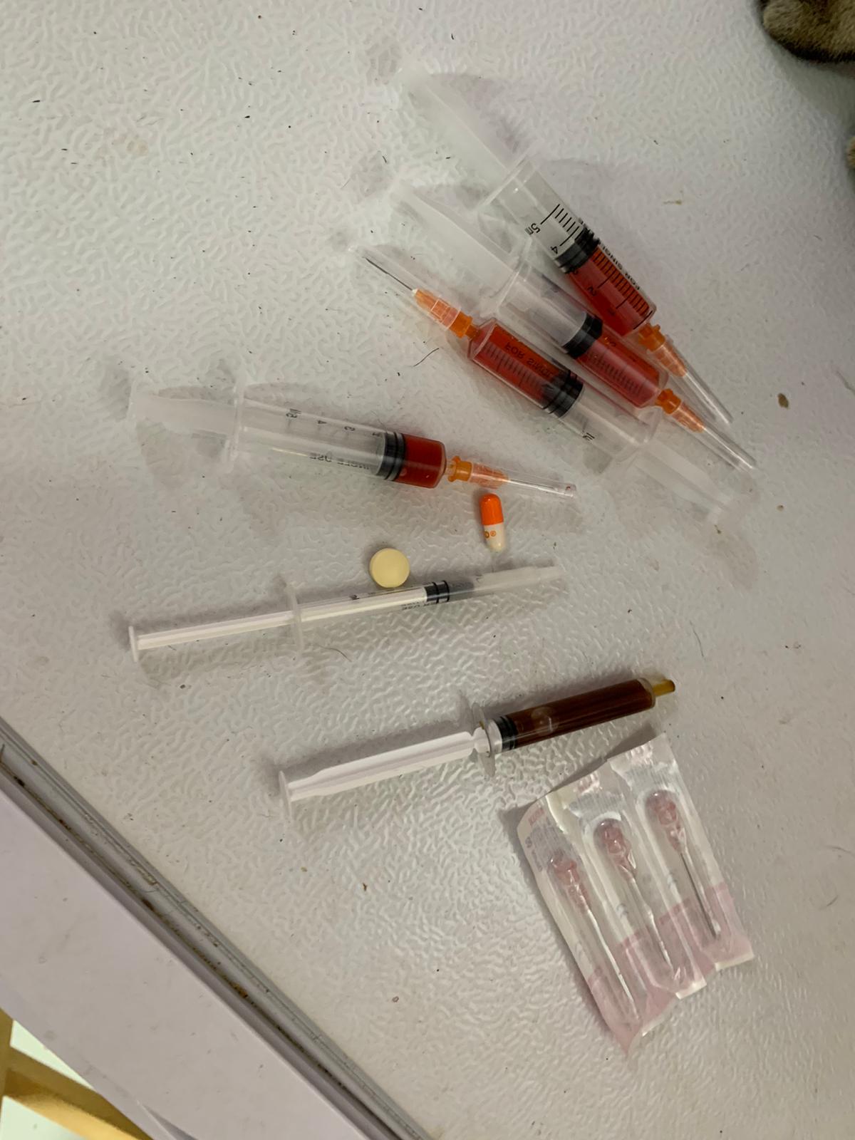 Morning: today cleaner is horrible. 3h can’t finish even one room, waste my time helping her w just even food room. Didn’t get to weigh the cats. Given oral liquid meds followed by Subcut w b12 b com then oral tablets – so far this works the best. No vomit. I’m seriously thinking of stopping by his clinda