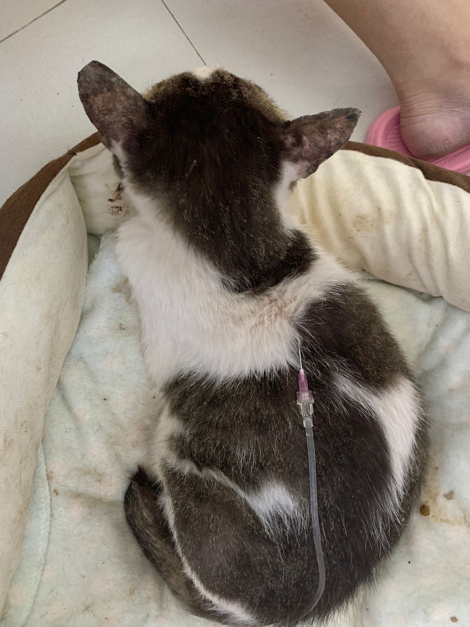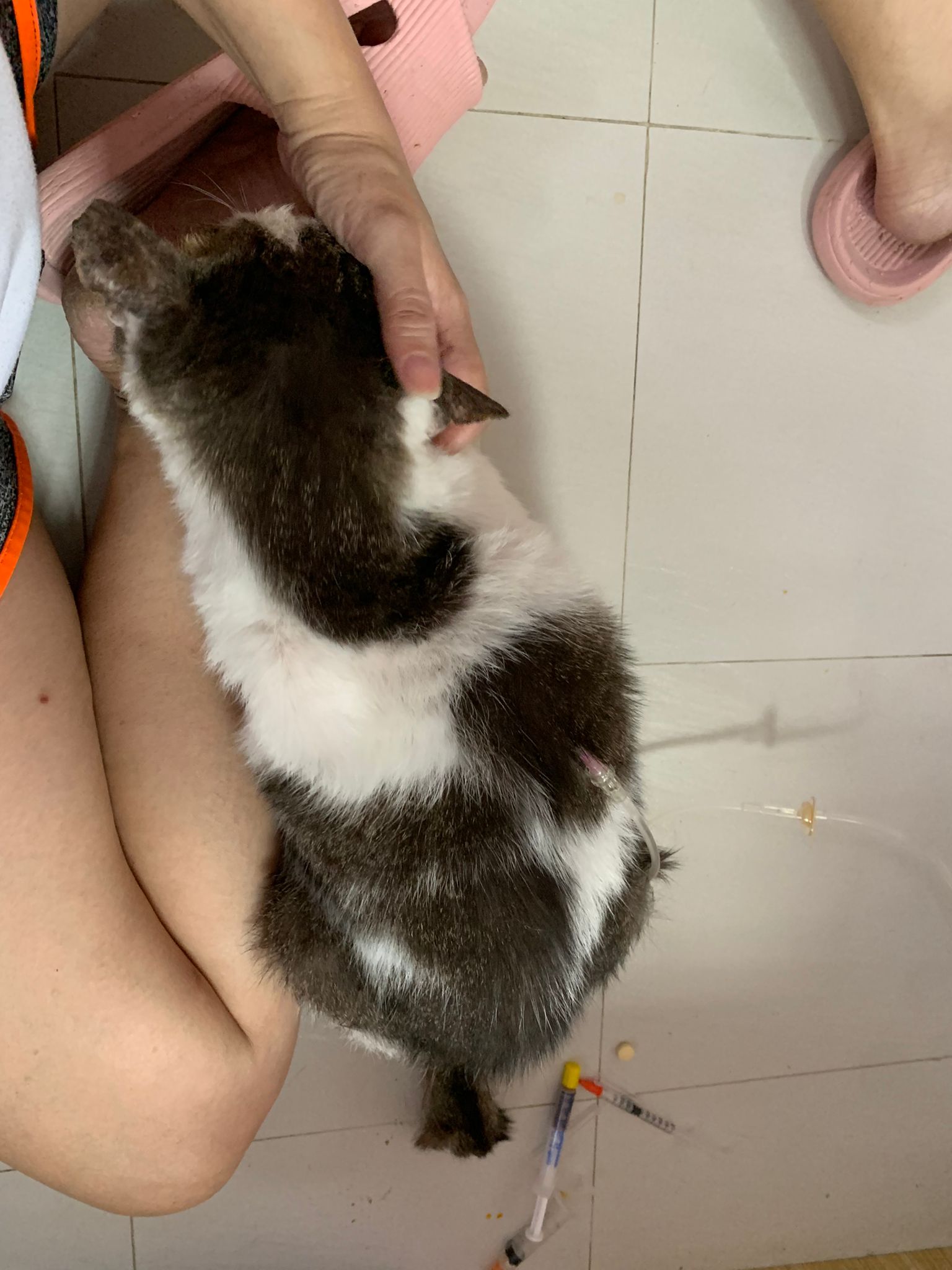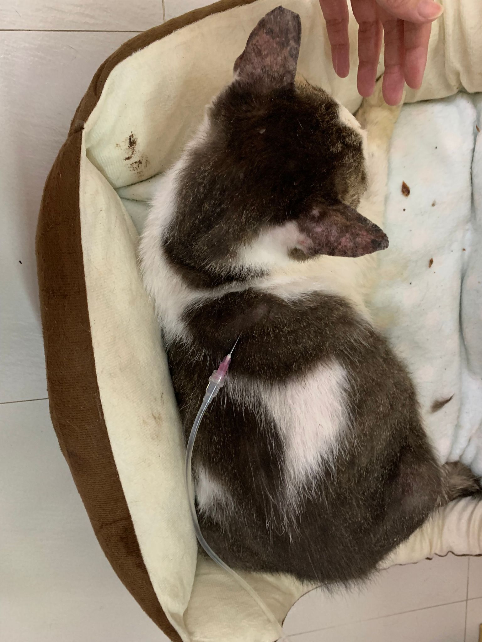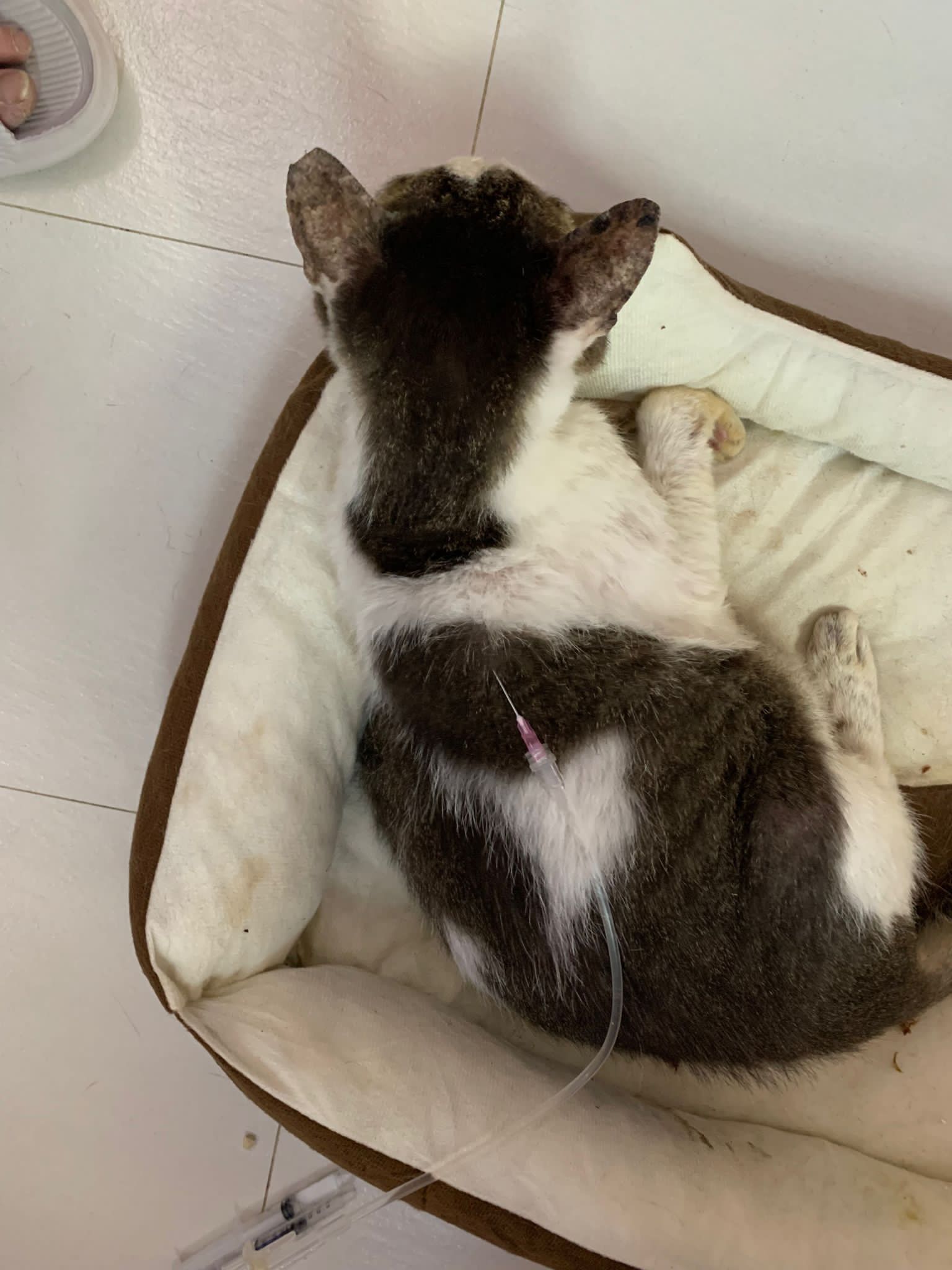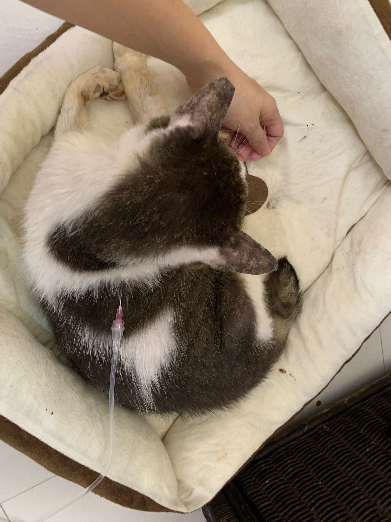 Morning: 6.09kg – gain 160g in 12 days. Today officially stop his clinda. Given Subcut w other meds