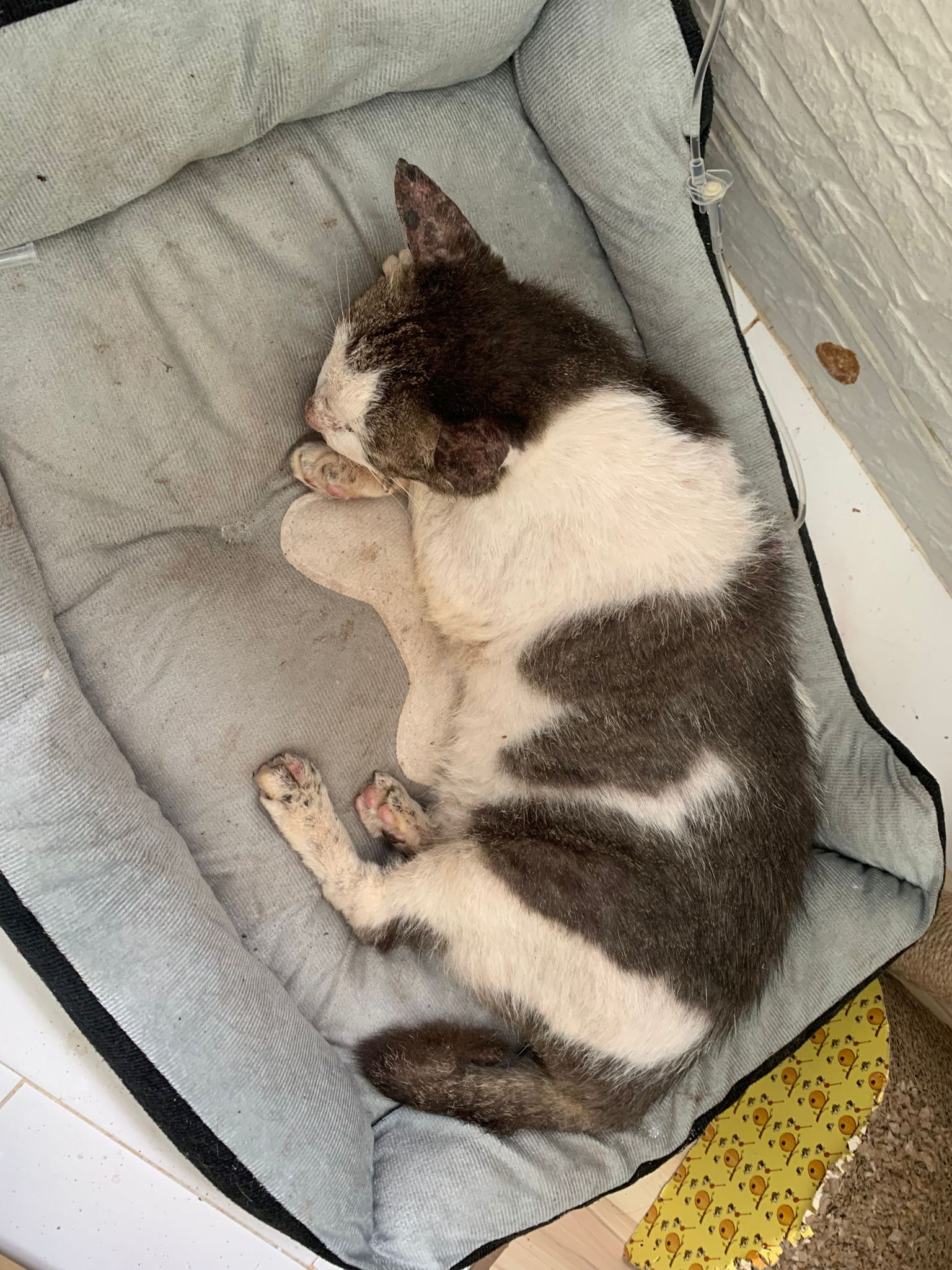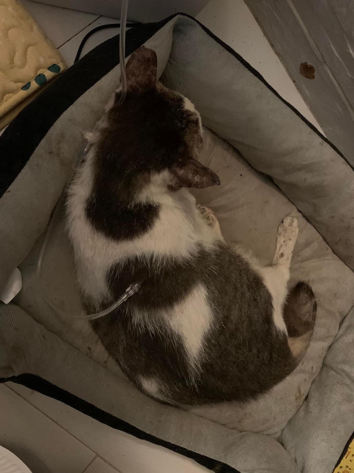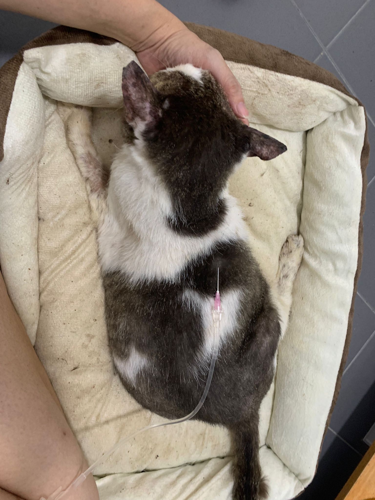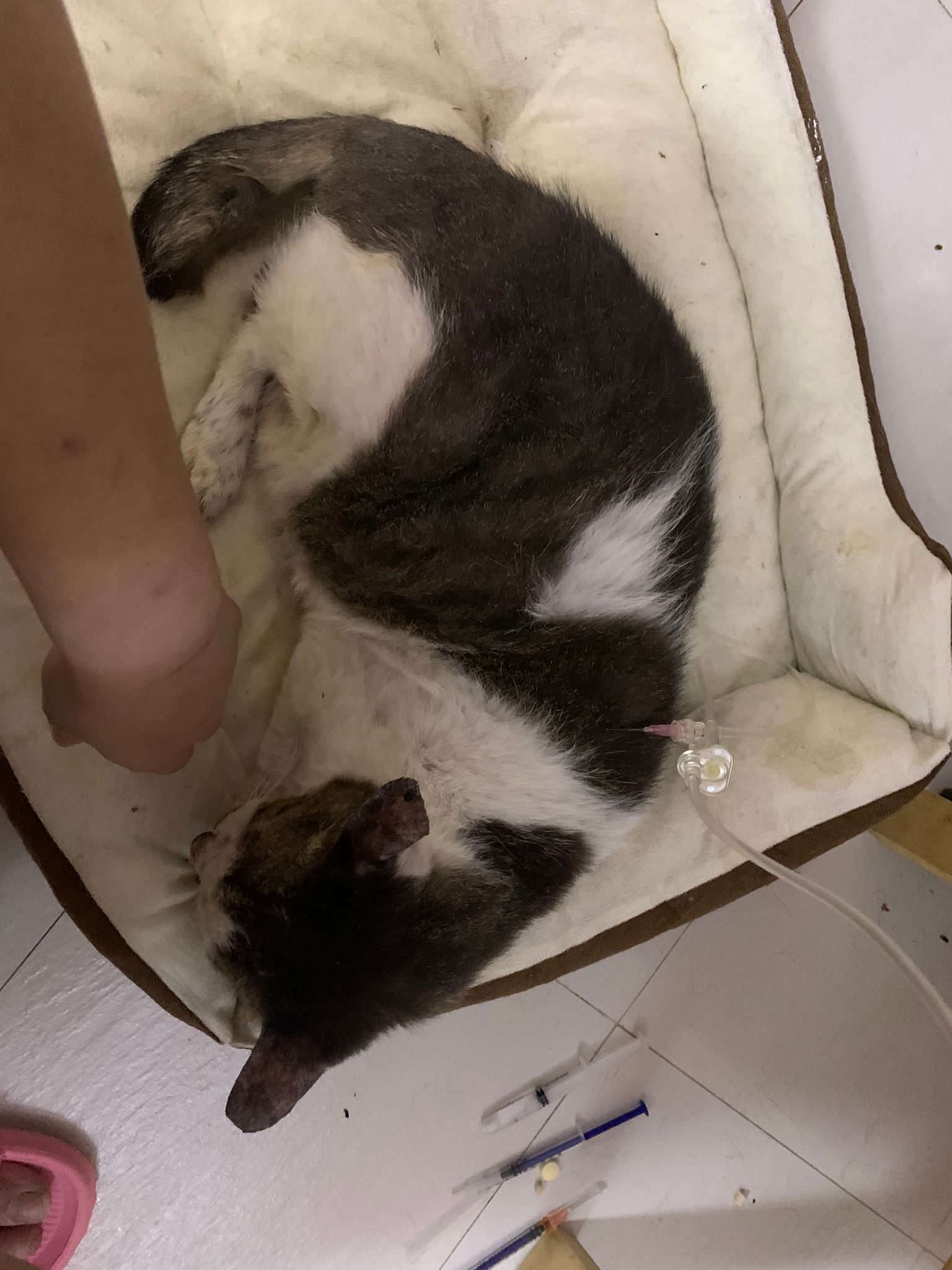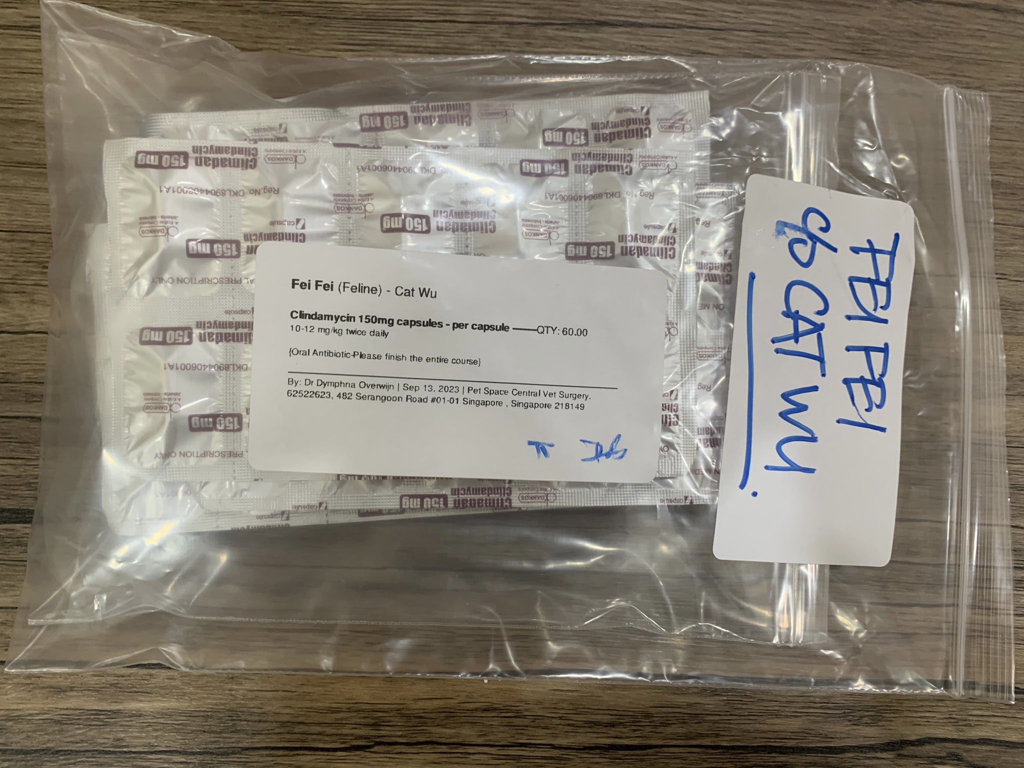 Morning: 6.09kg – gain 160g in 12 days. Today officially stop his clinda. Given Subcut w other meds