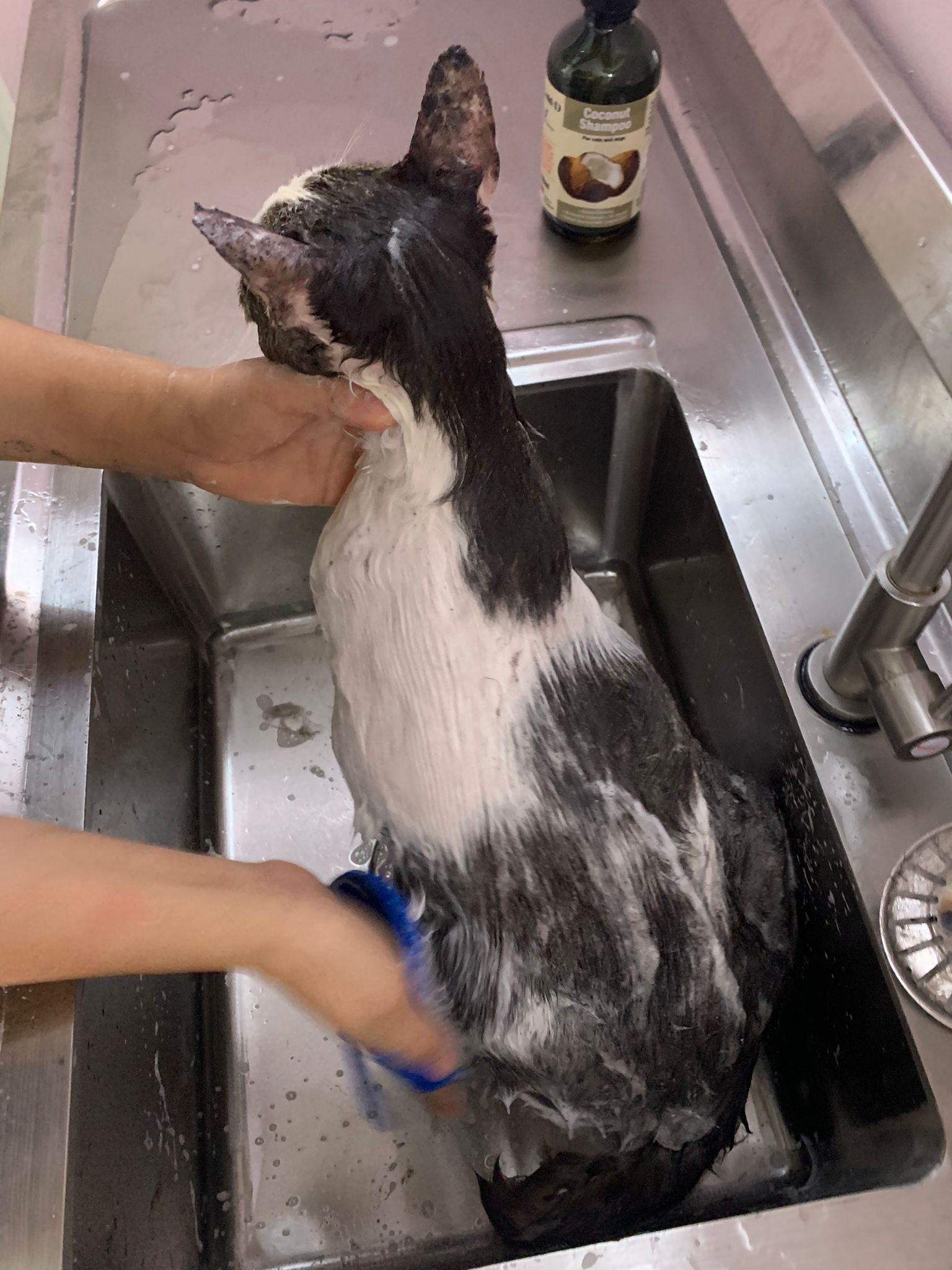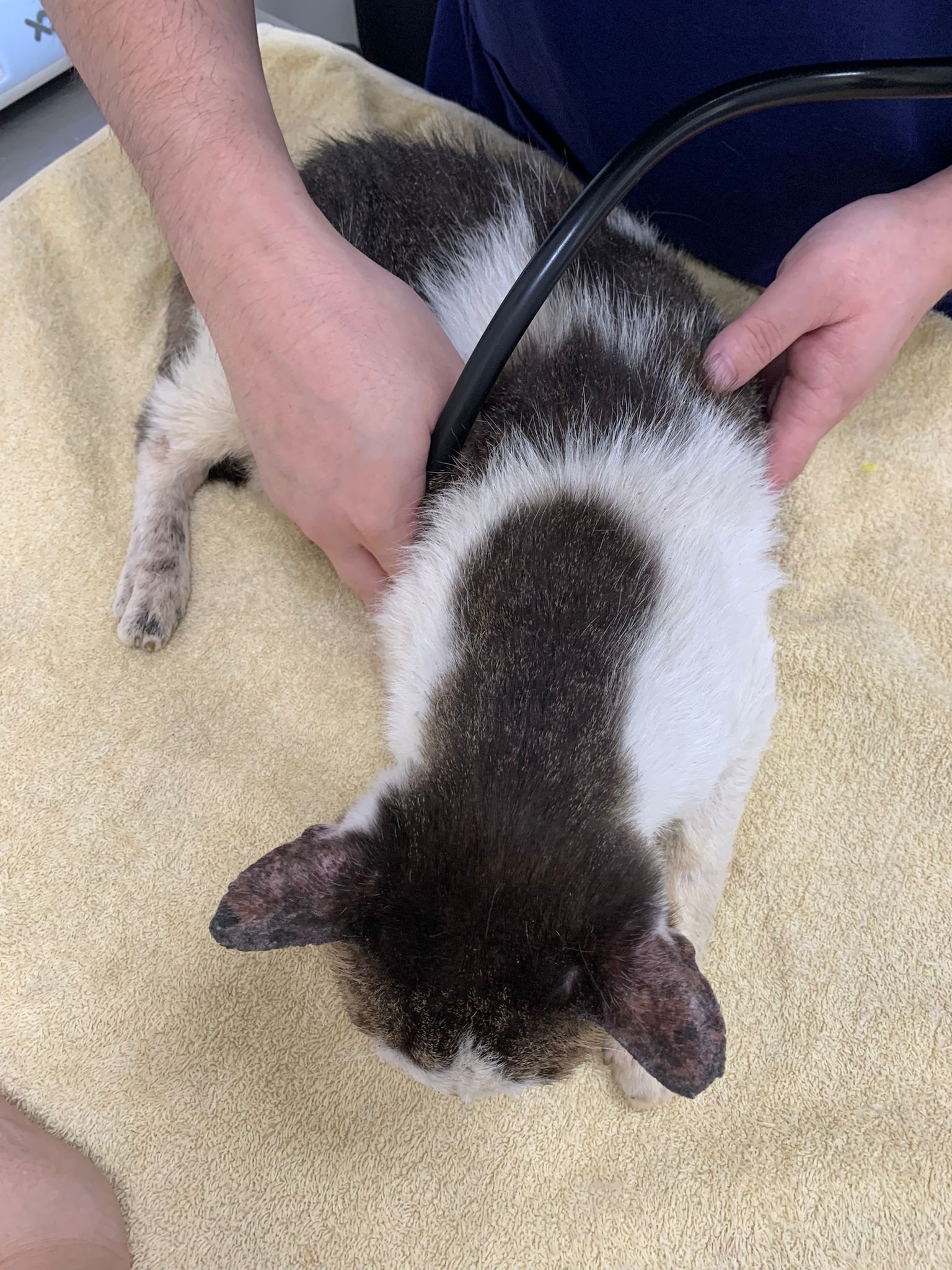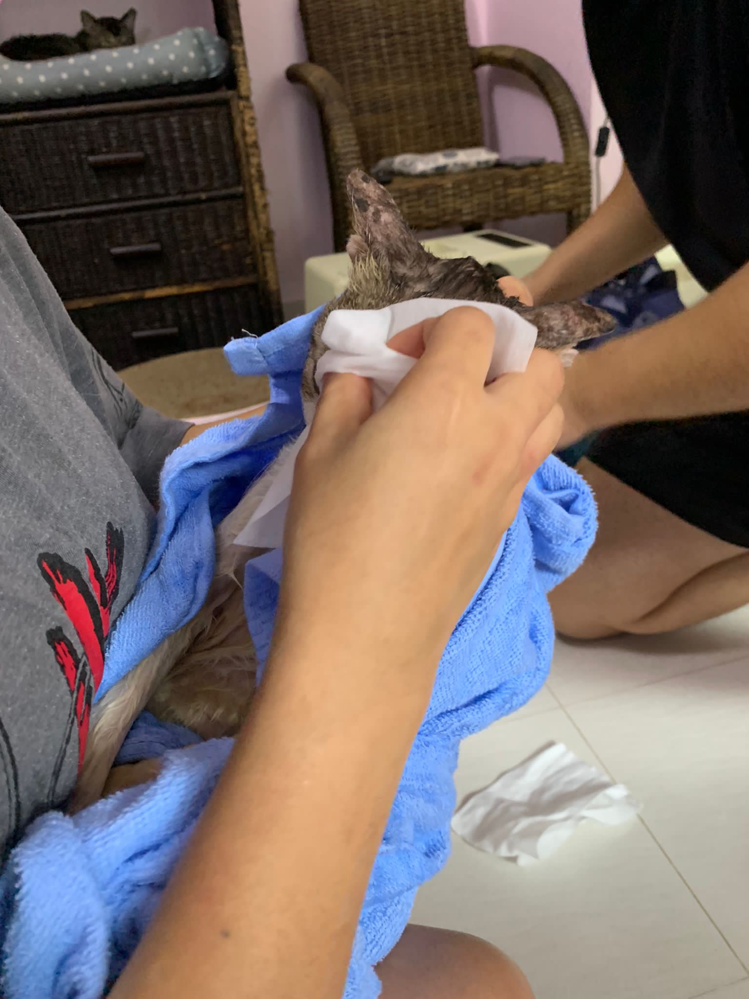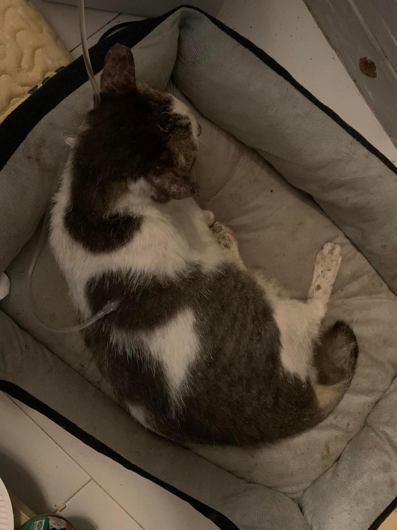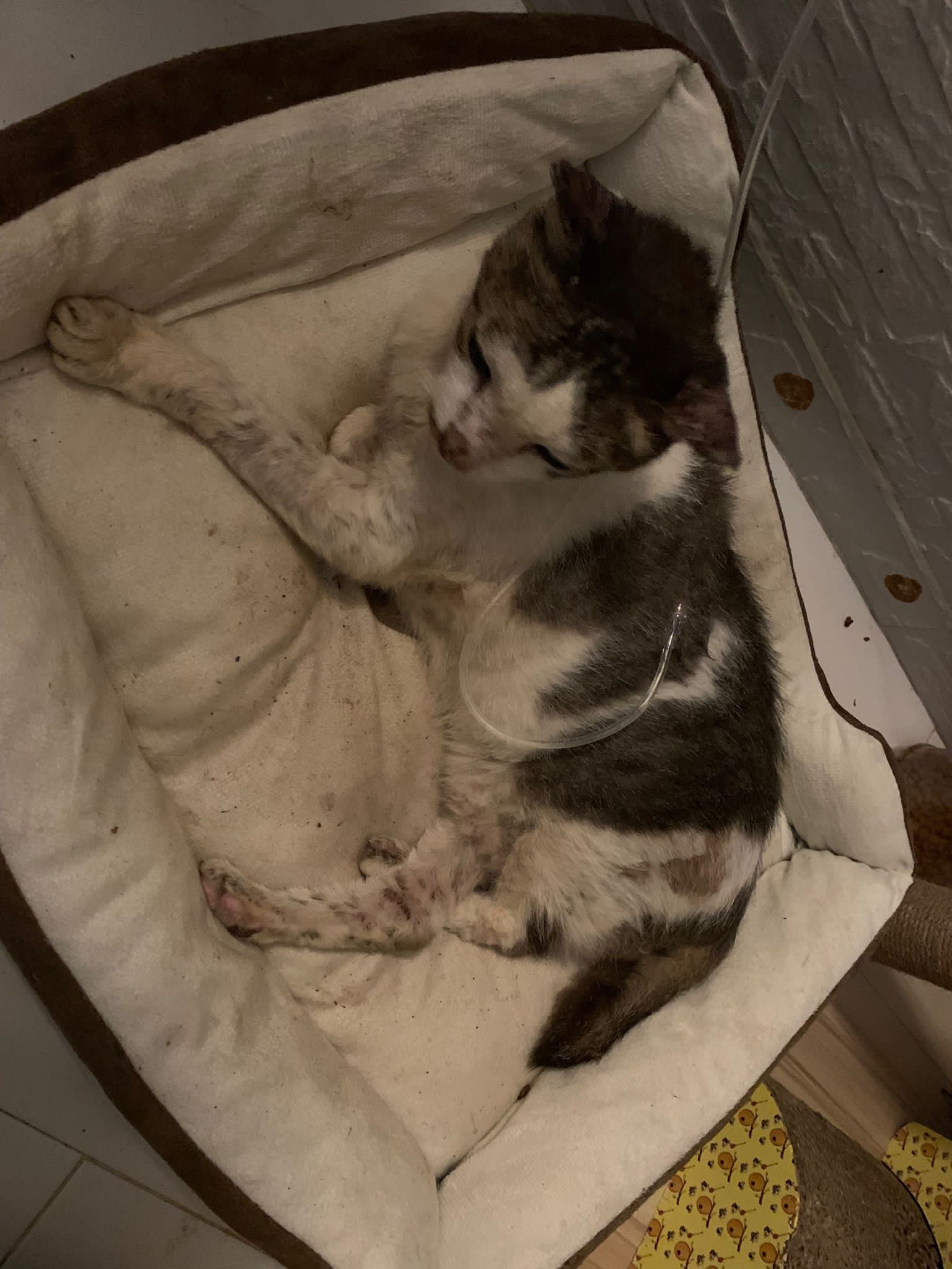 Morning: 6.09kg – gain 160g in 12 days. Today officially stop his clinda. Given Subcut w other meds