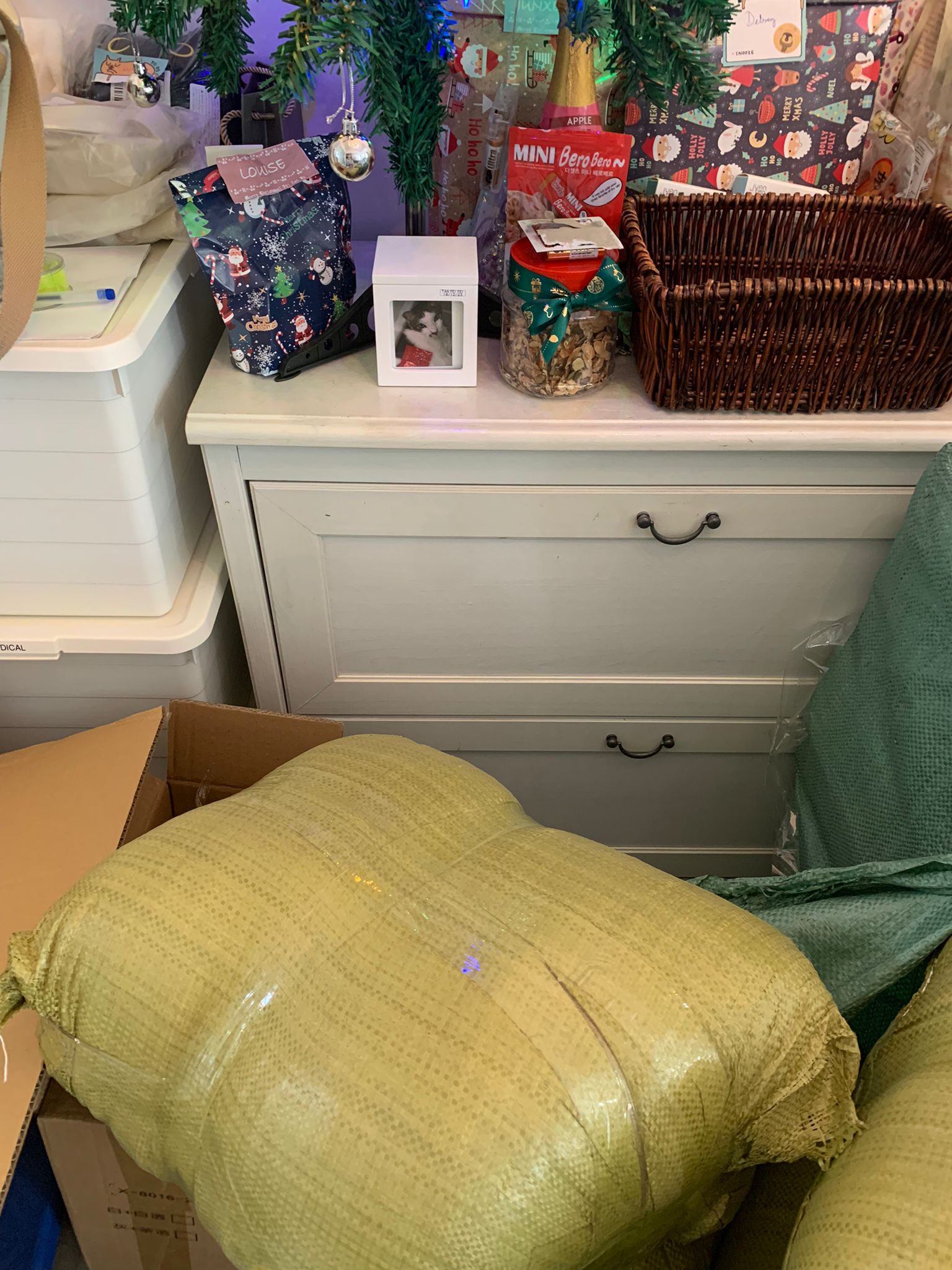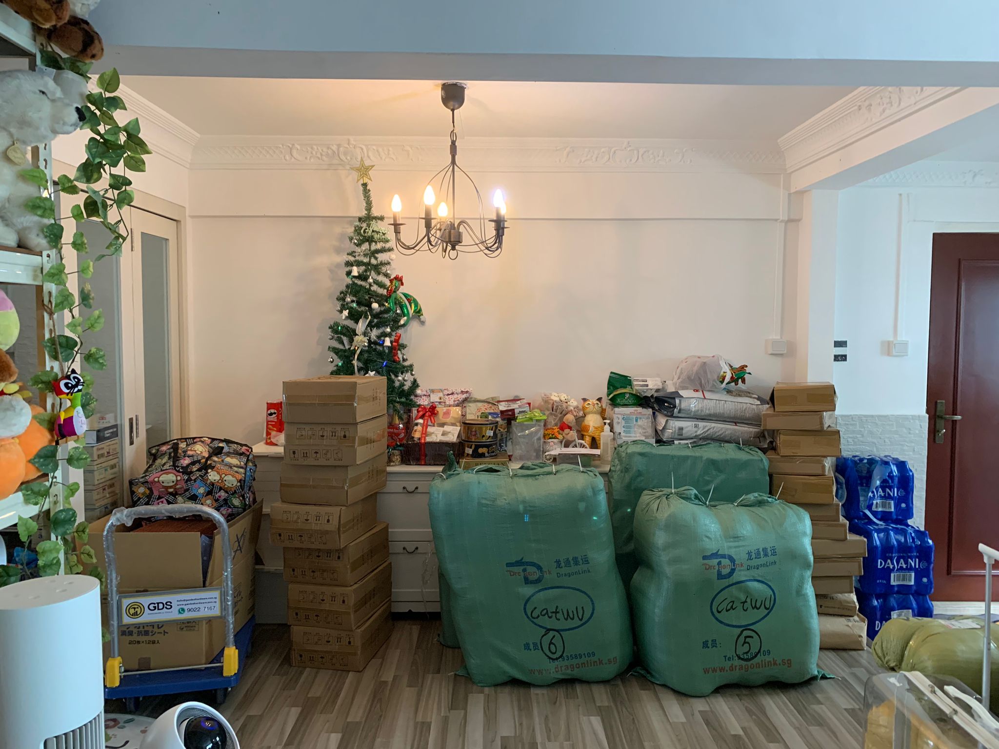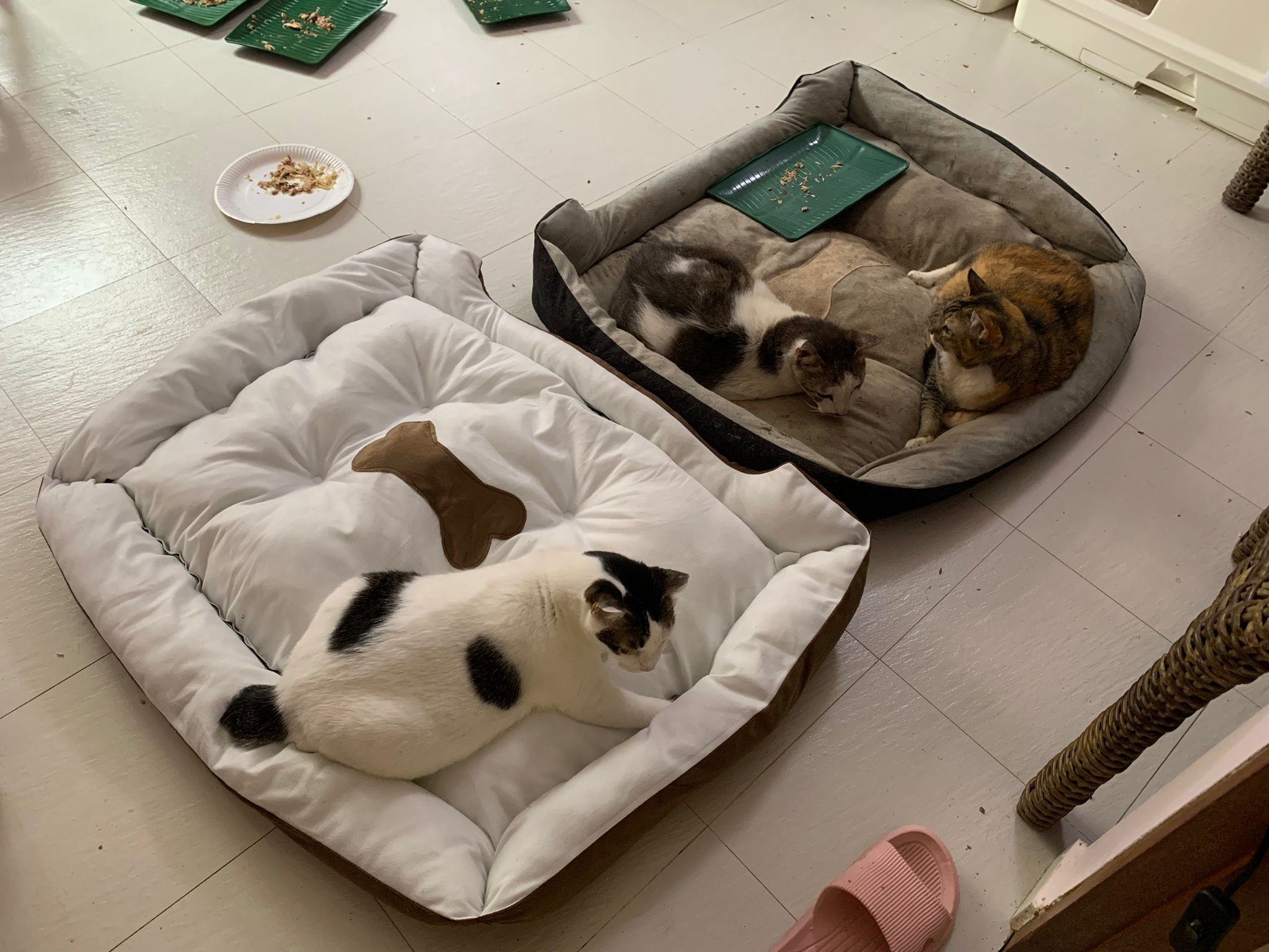 Morning/noon: unpacked the massive beds. All the big beds came so I let Fei lie on one … Erm Jack and kp will miss fei fei when they lie in this big bed, will be so empty