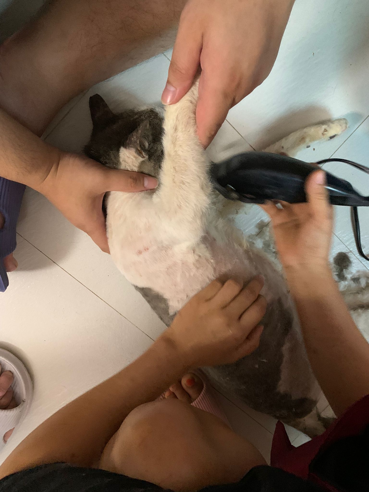 1245pm: fei and Jack seeing tgt- Bbf. Subcut him n medi him – later his turn for grooming