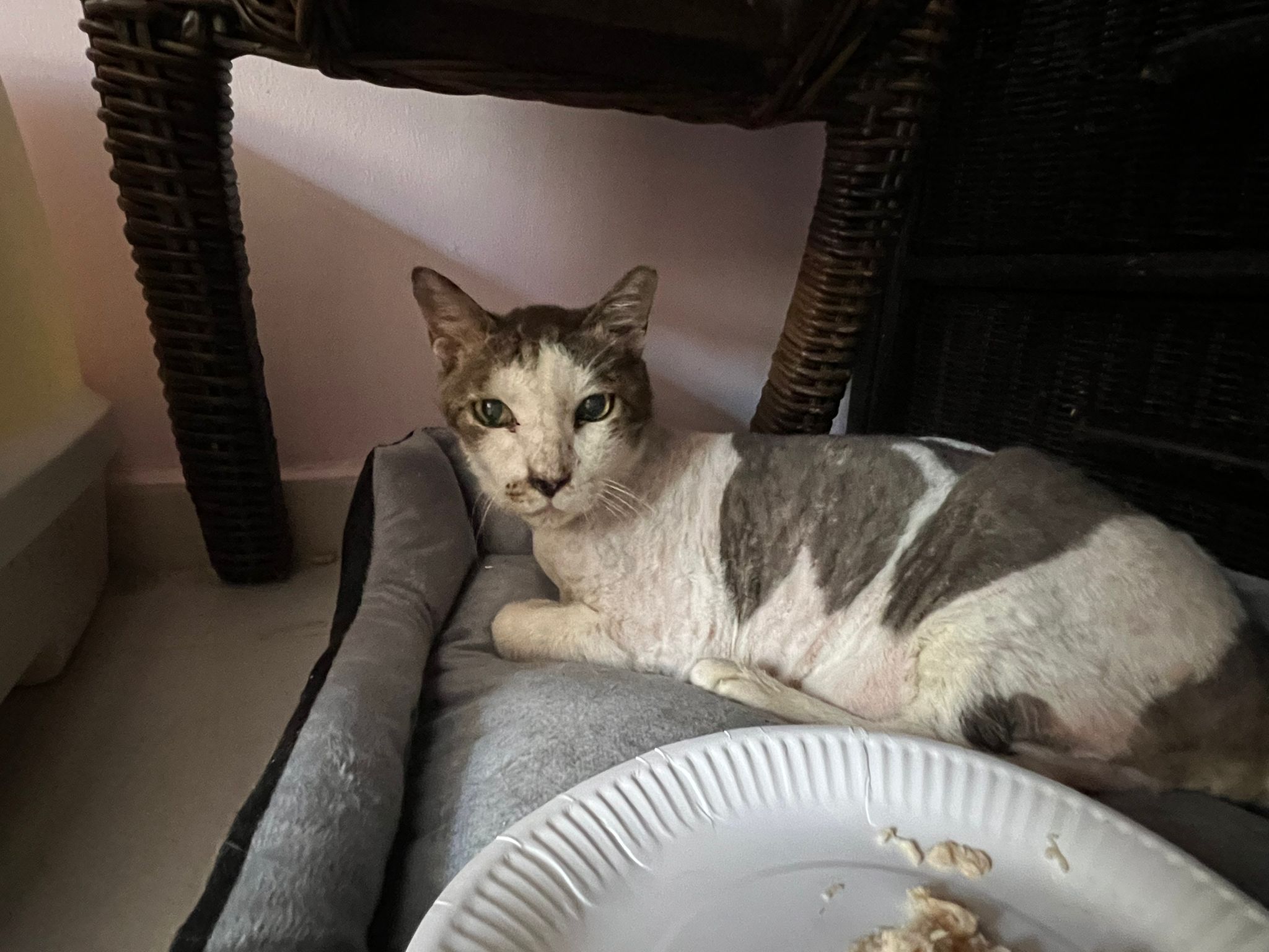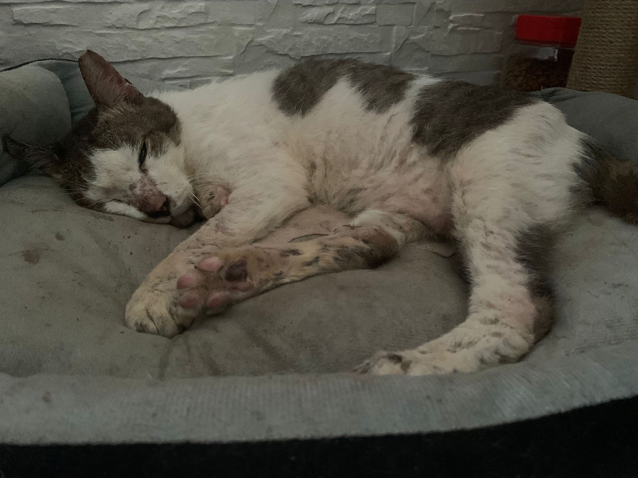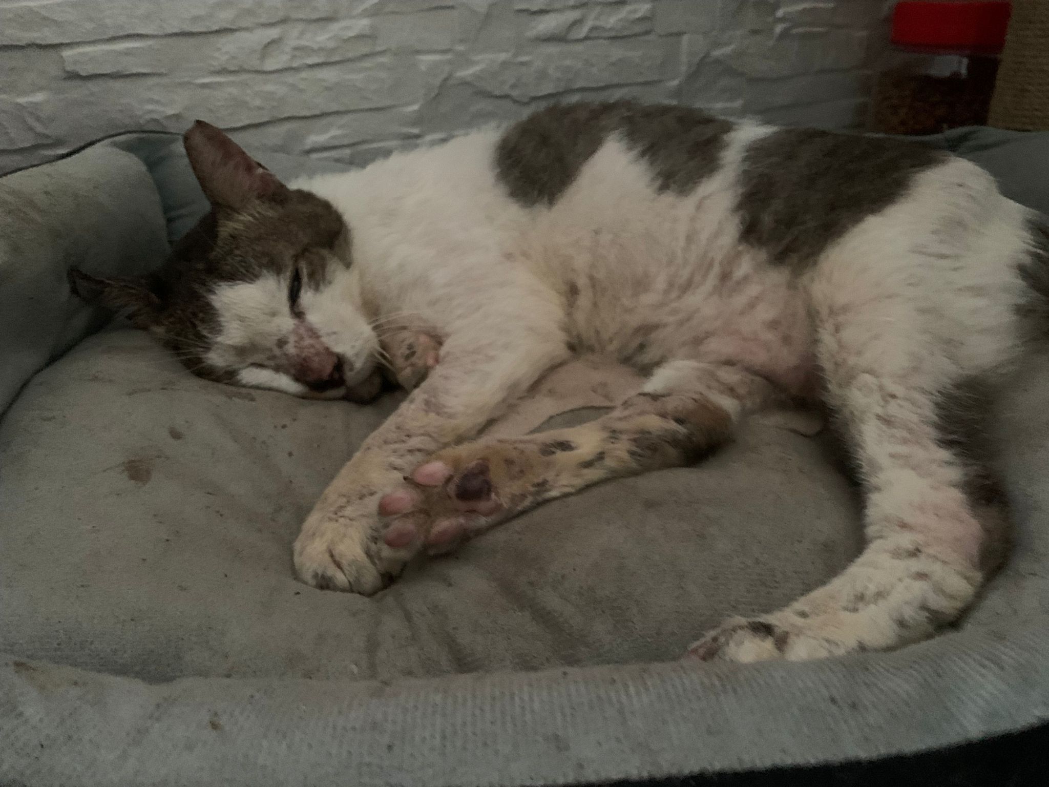 He is weak. Still v Weak. Non responsive to food – selar and tuna w chicken ham.