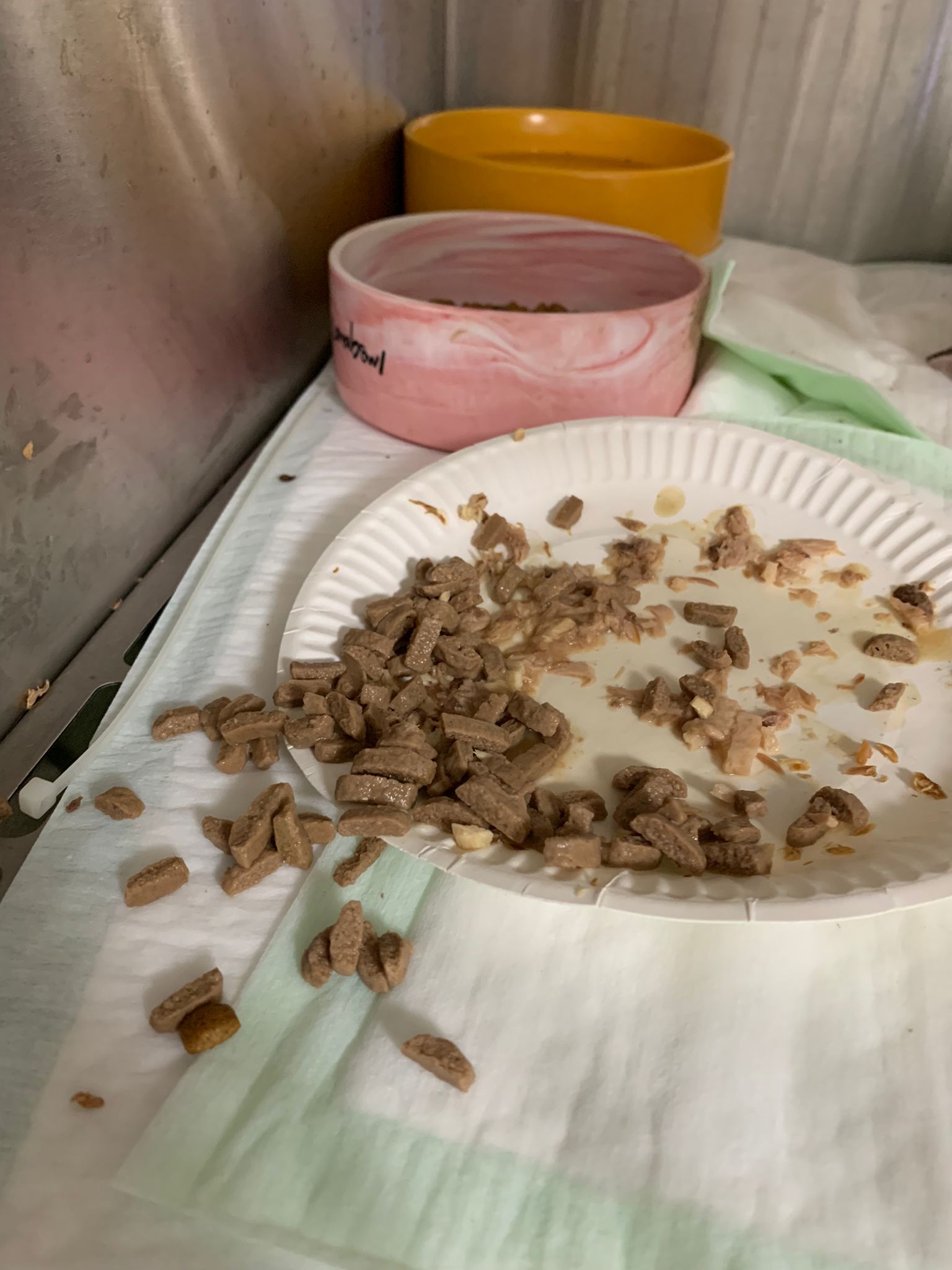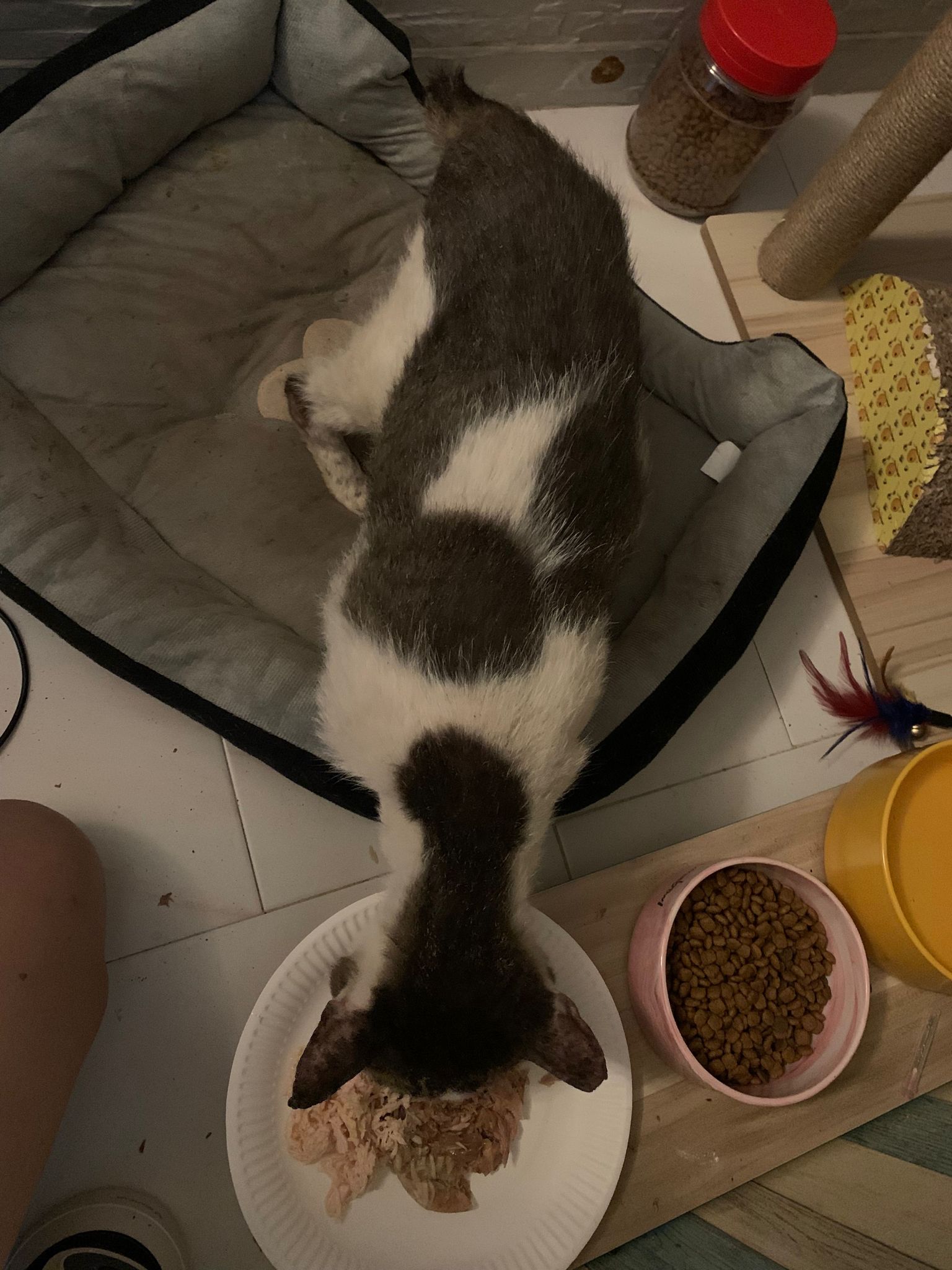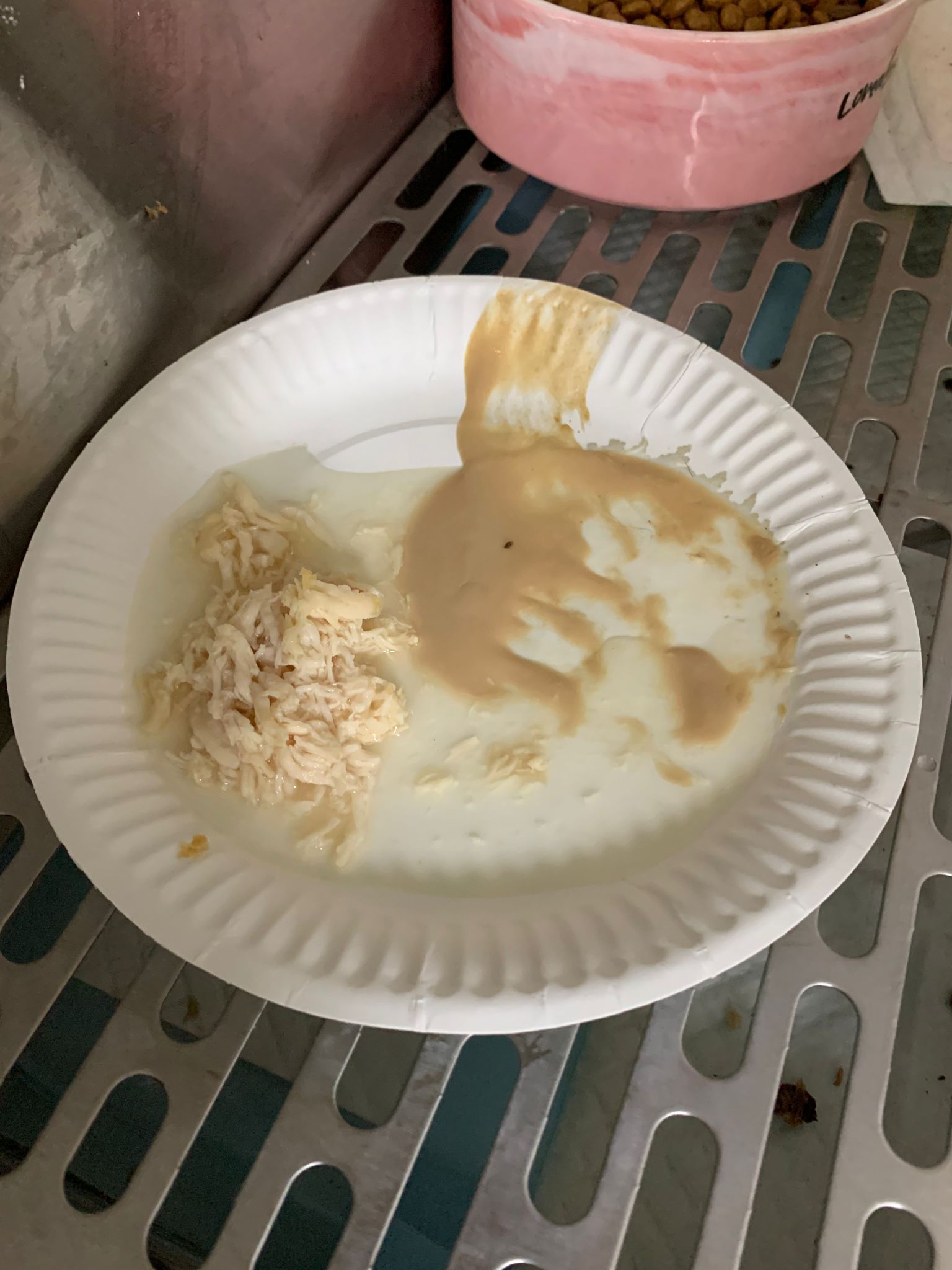 • 11pm: didn’t eat, serve him bistro chicken – got reaction but still didn’t eat