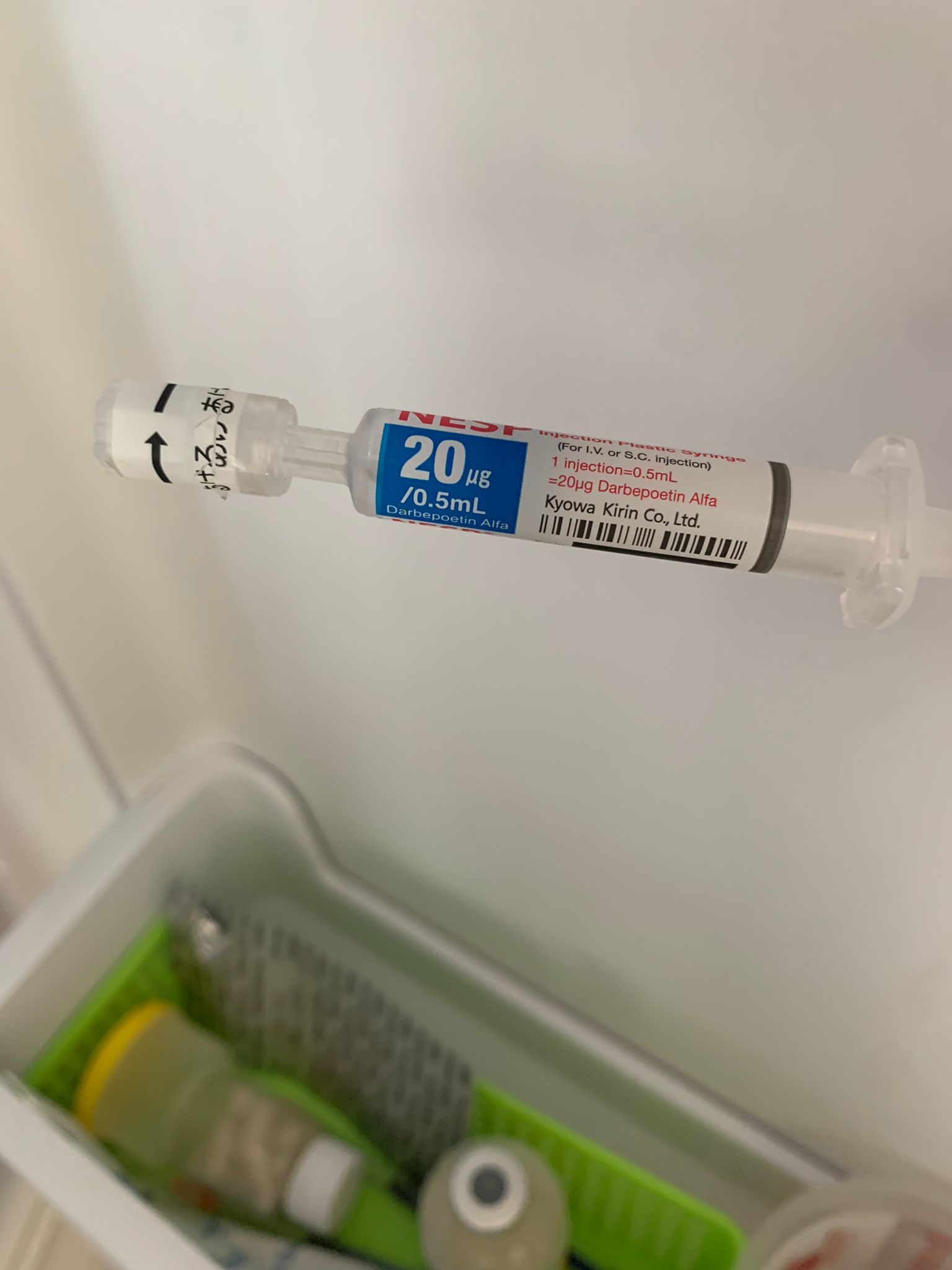 Day; given fersobang and darbepoetin 0.065ml today cos no more have to buy fr clinic again