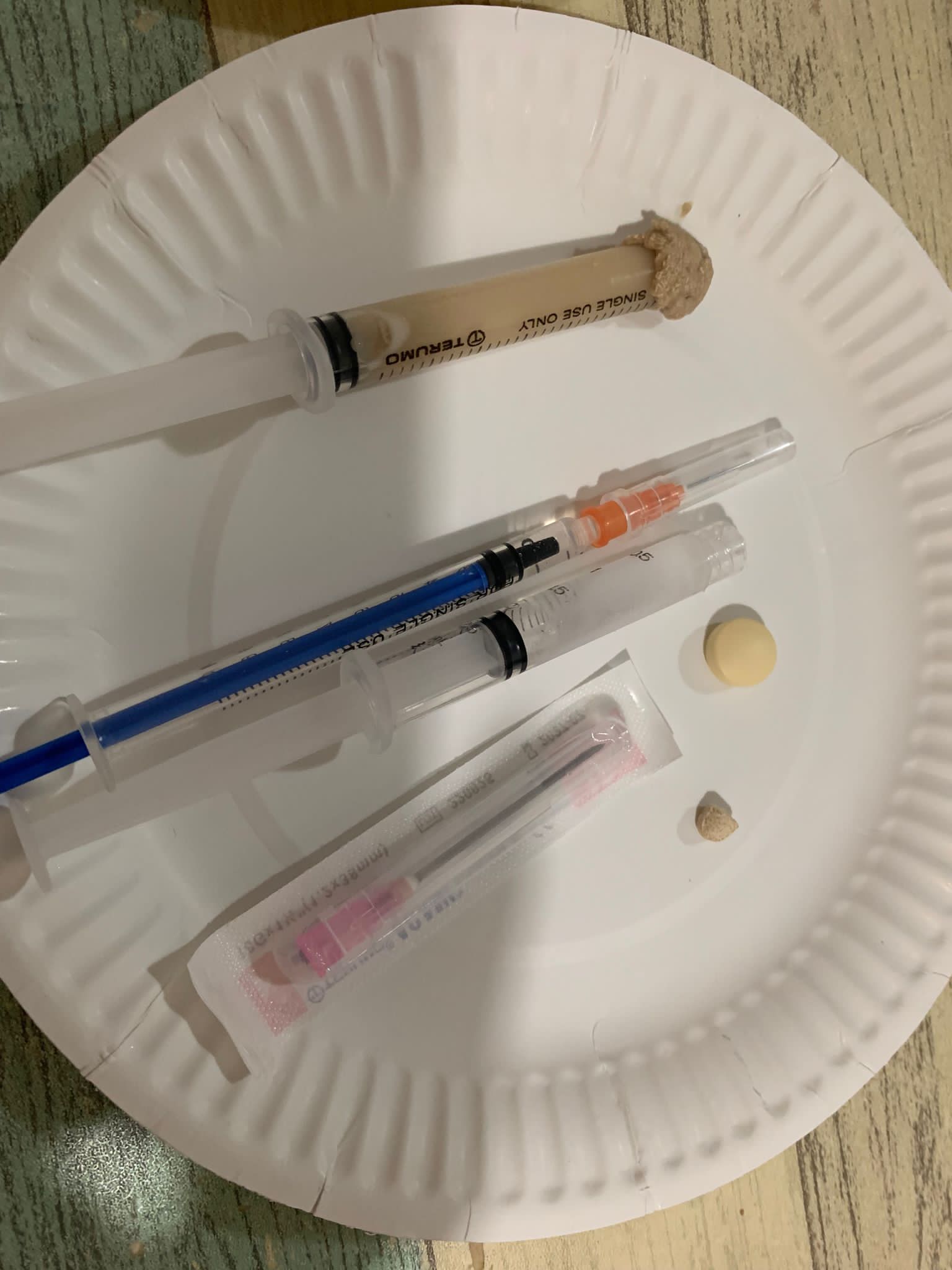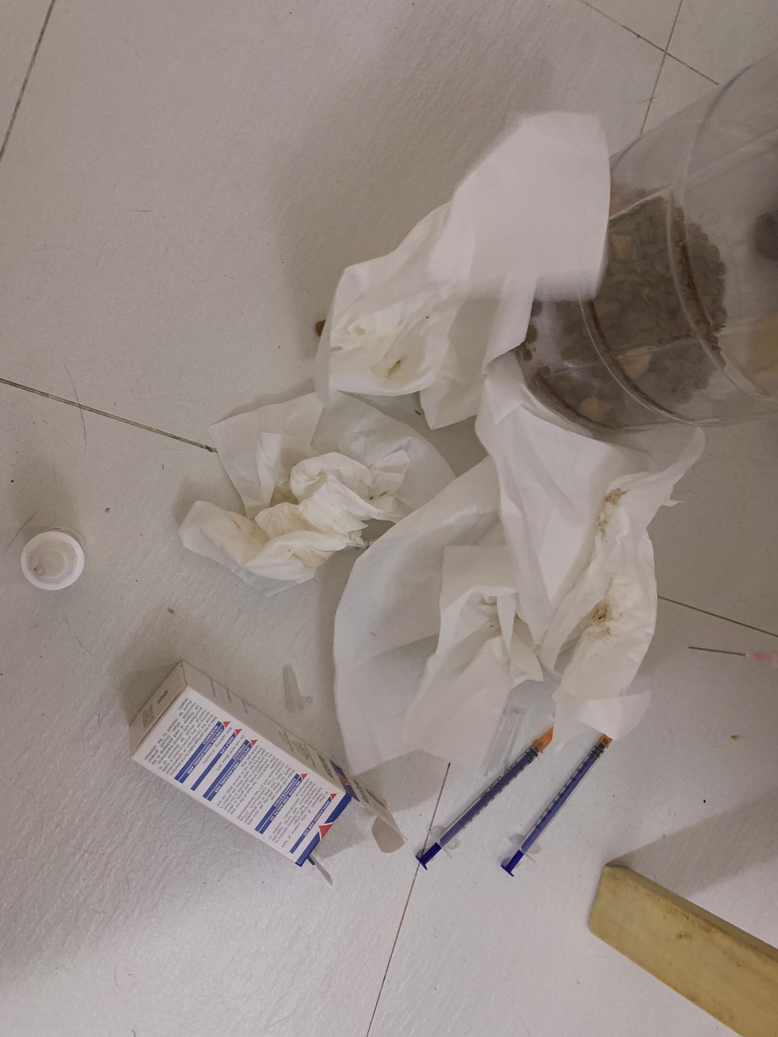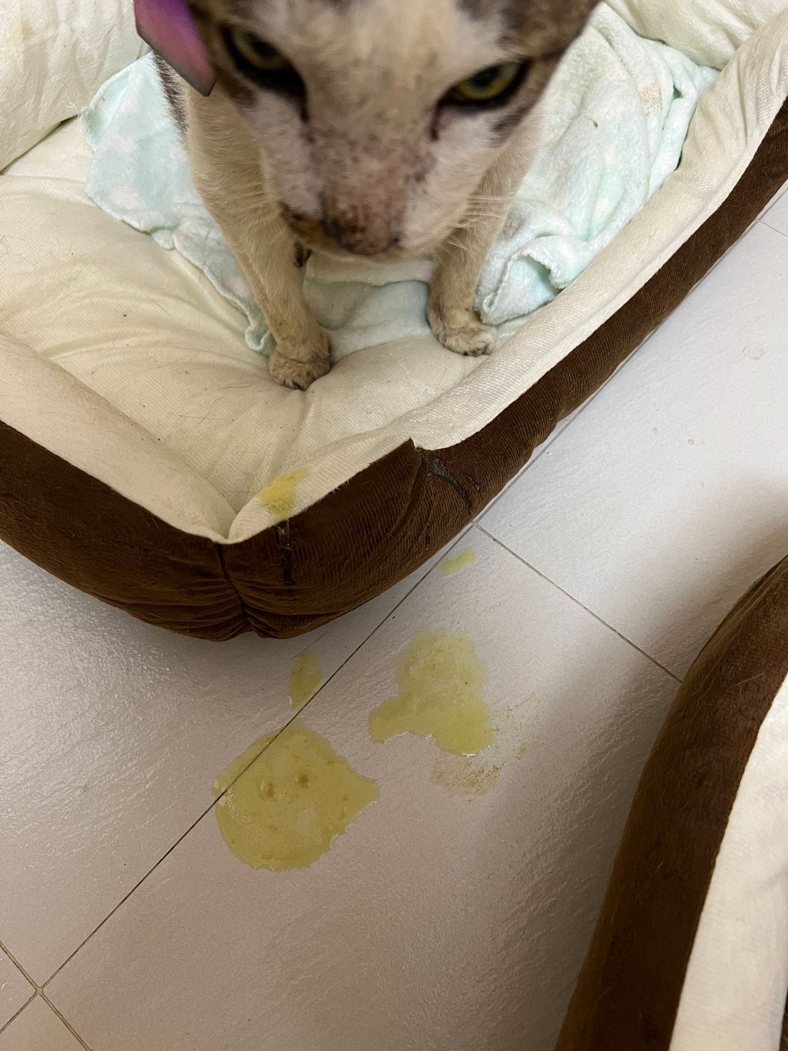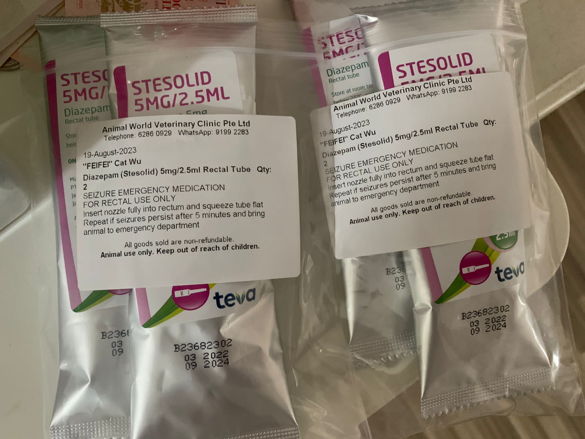Morning; didn’t give med on Thu cos I’m not in, but he still vomit out bile juice. Sigh. That day after I medi him he got sign of about to seizure but didn’t (like going to have fits) then he vomit.