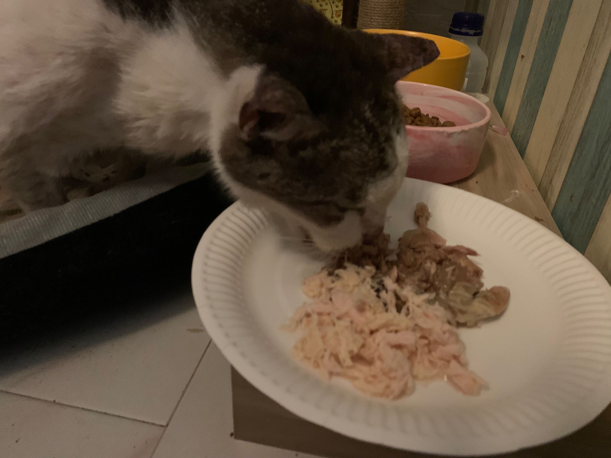 • sayang him and serve him tuna and white fish and kakato salmon since he is a fish cat