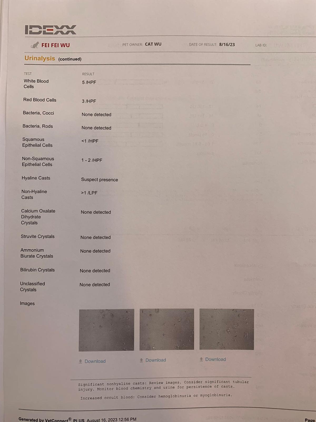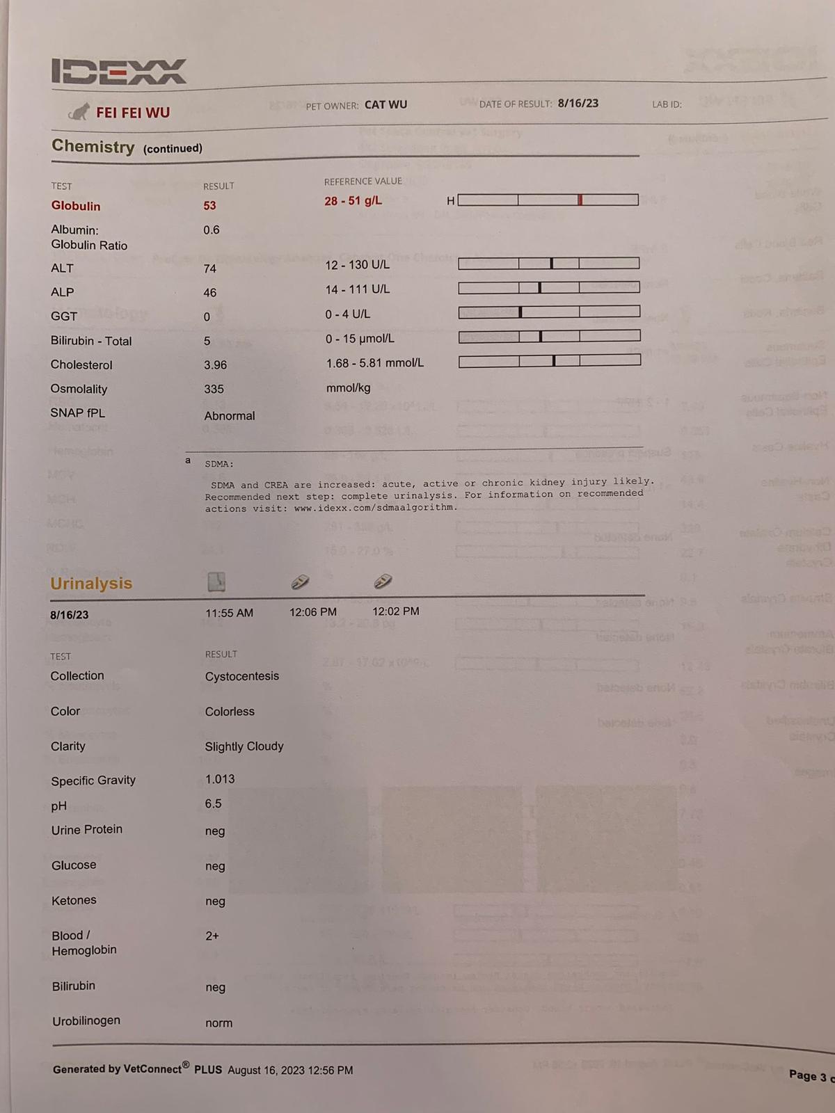 He pee while waiting for consult so can’t take UA le. Taken Cbc, crea bun phos
