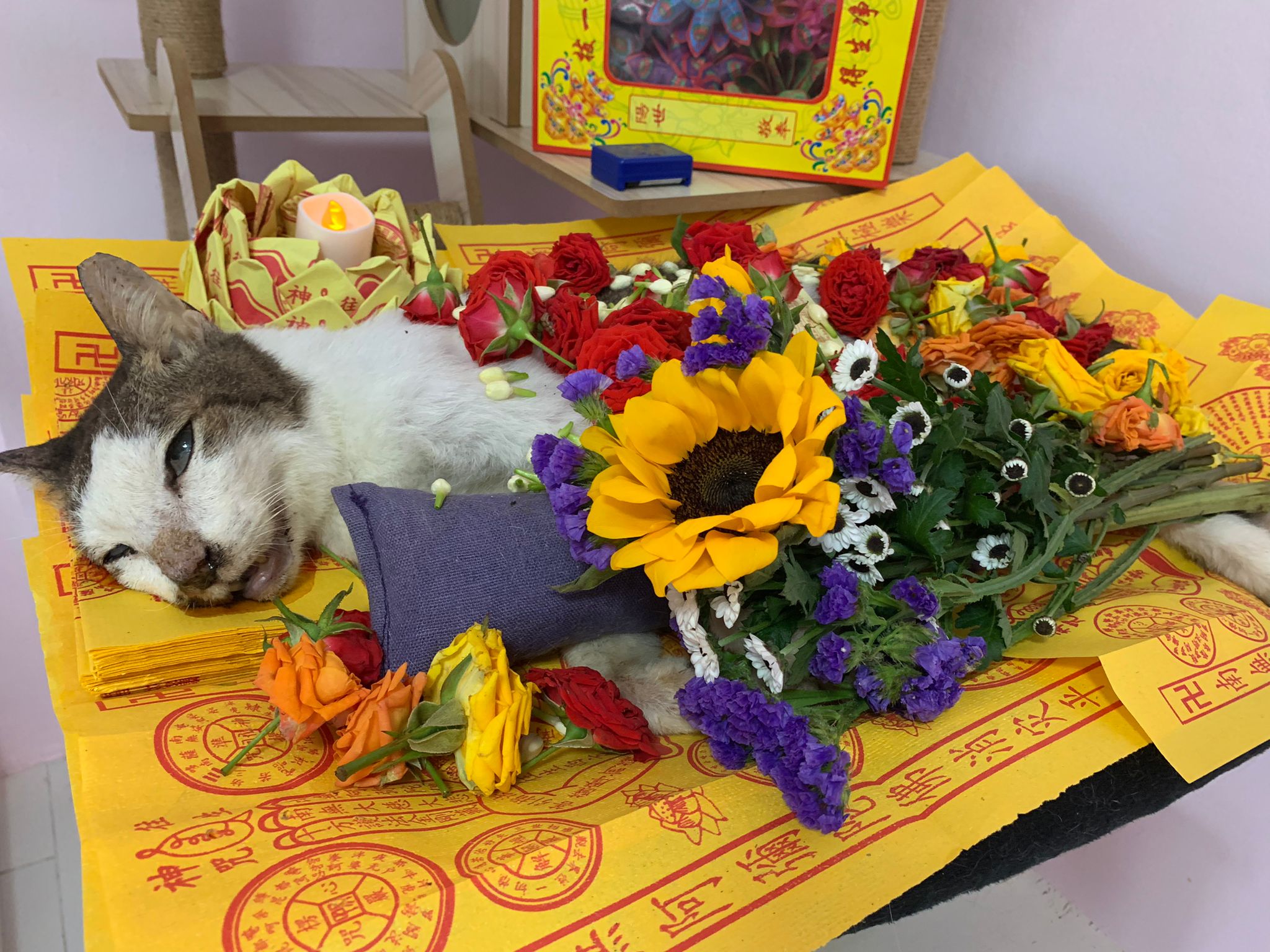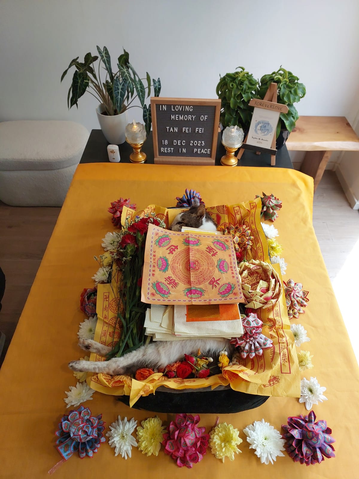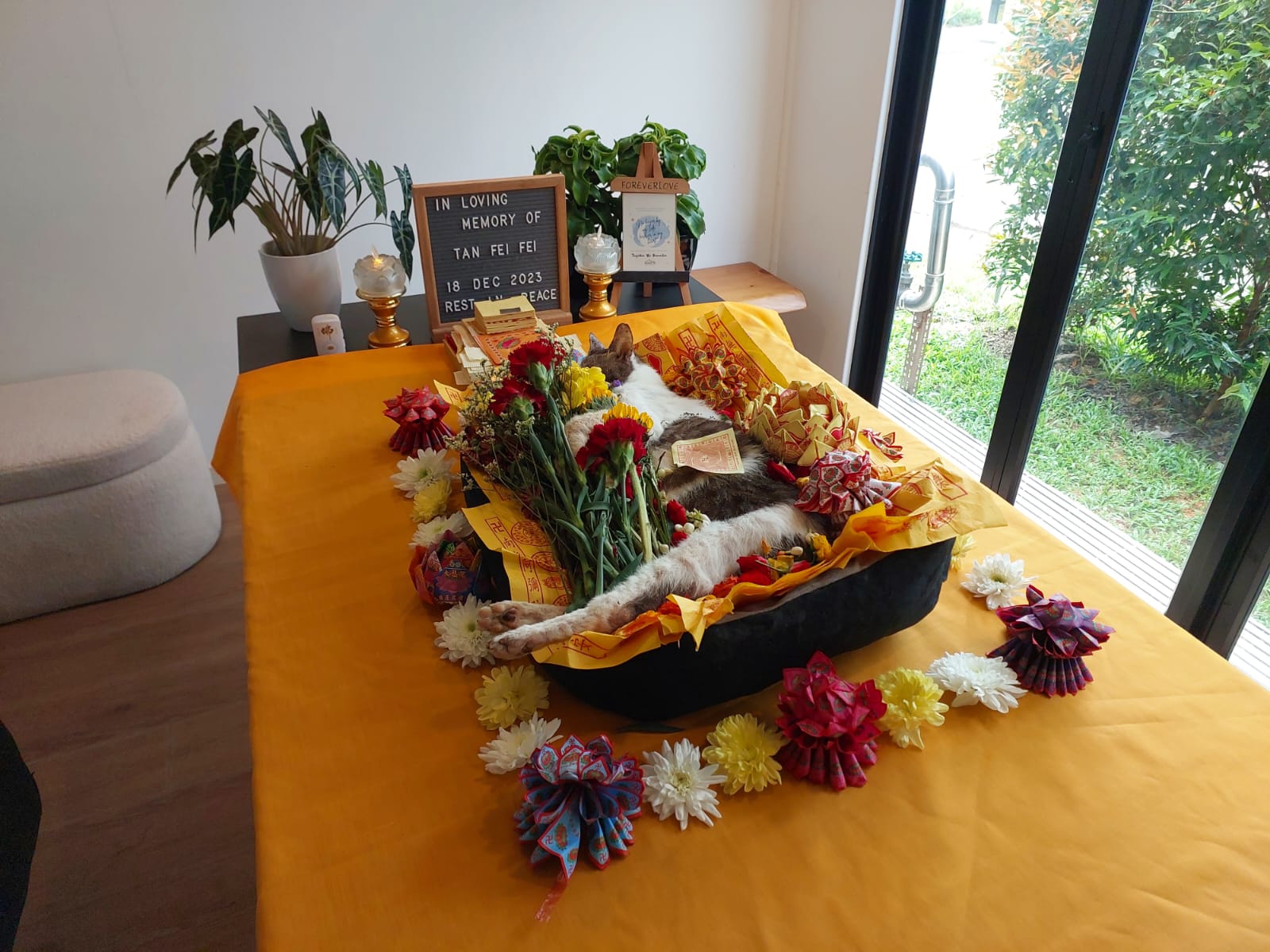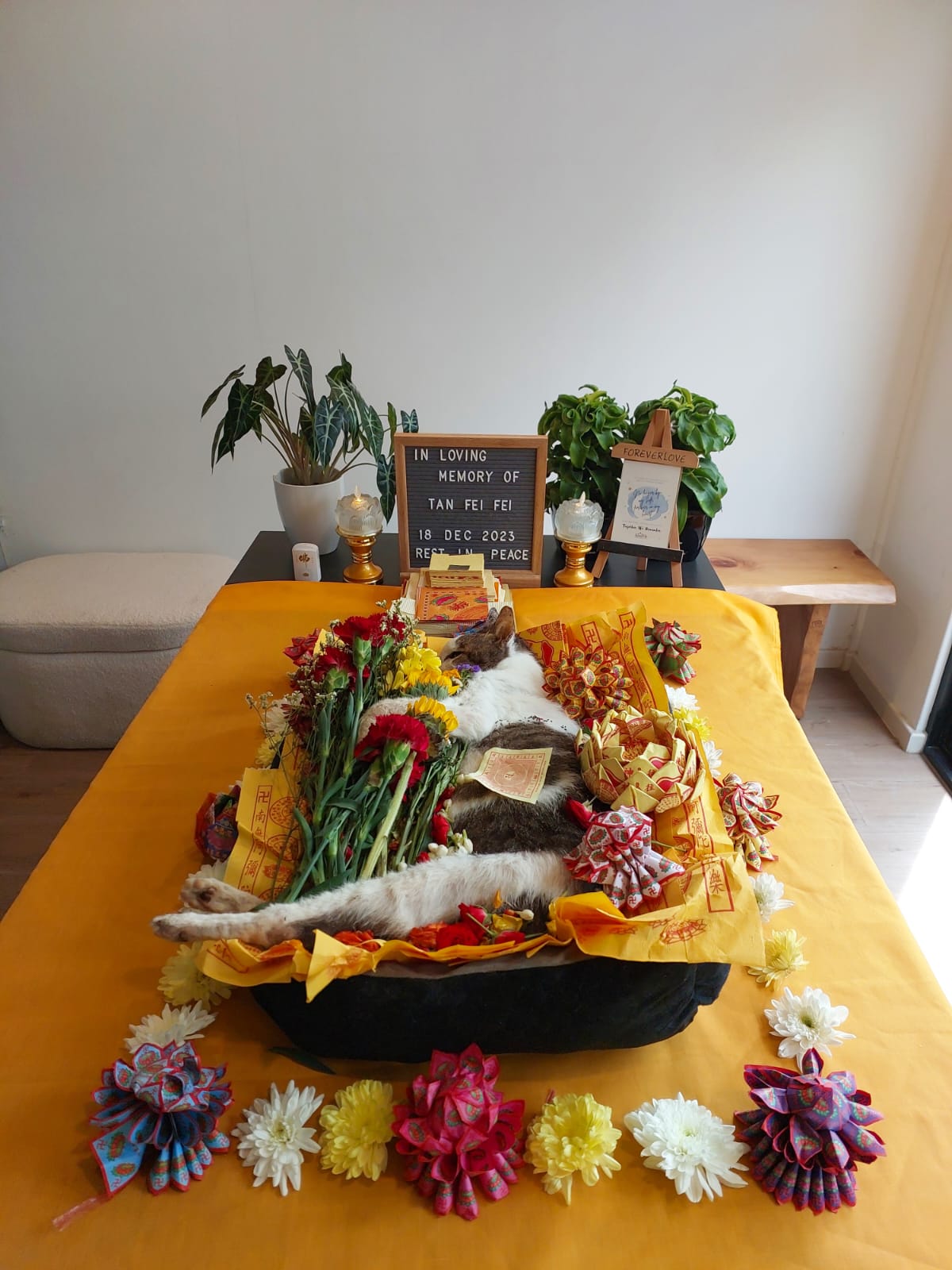 11.30am: cremation company came to fetch him. Informed them bed n pillow throw away. say bye bye to fei.