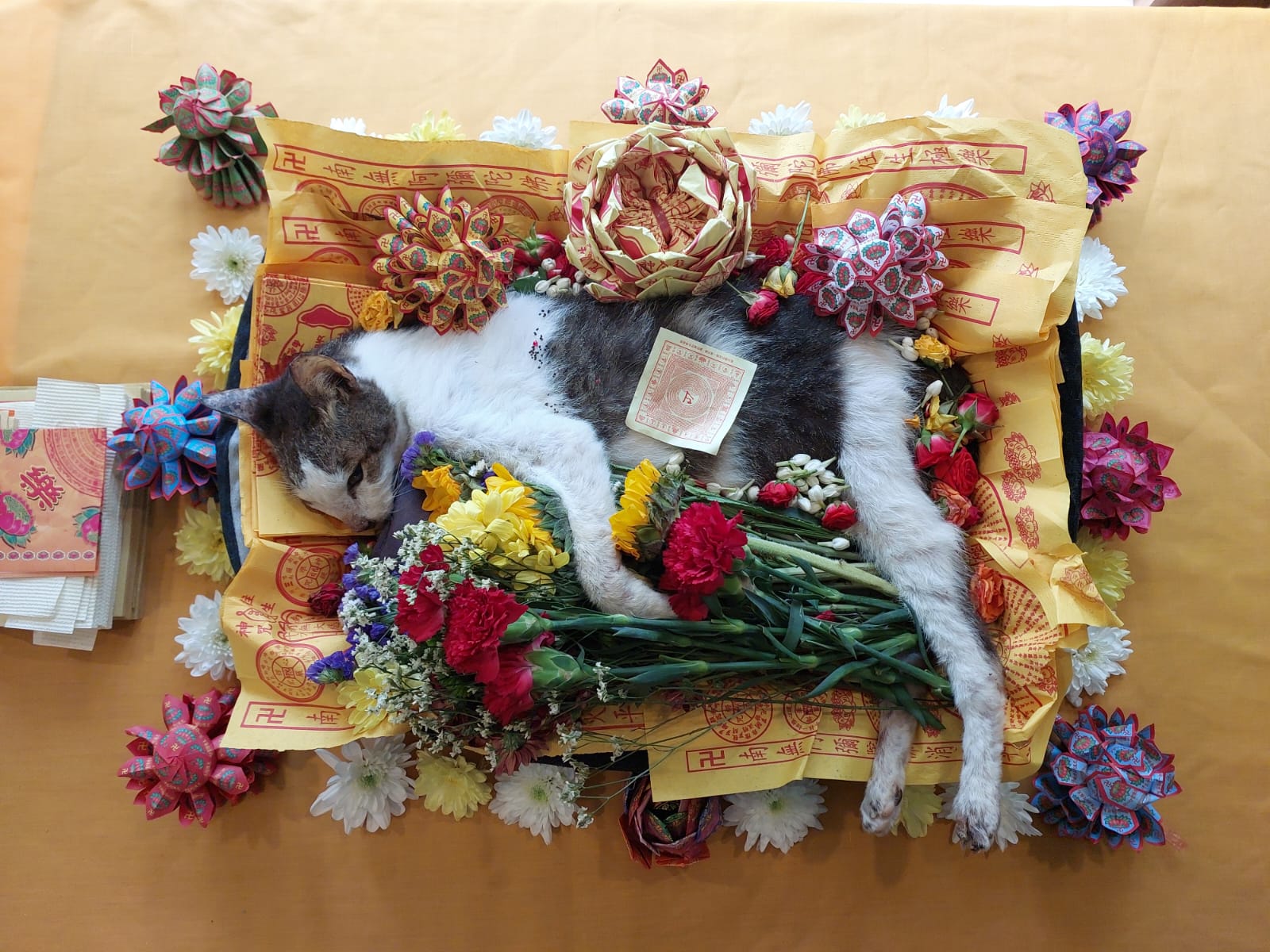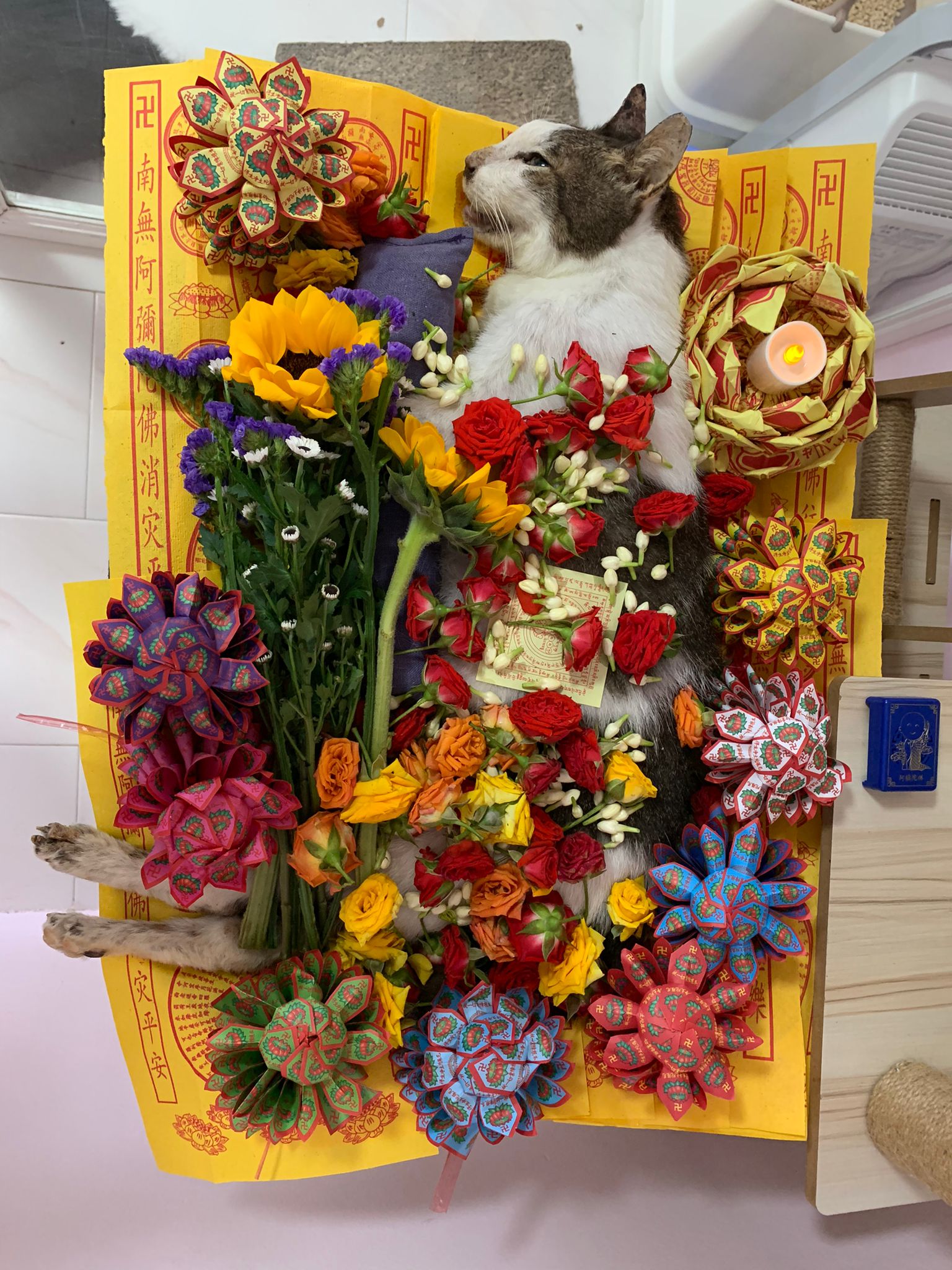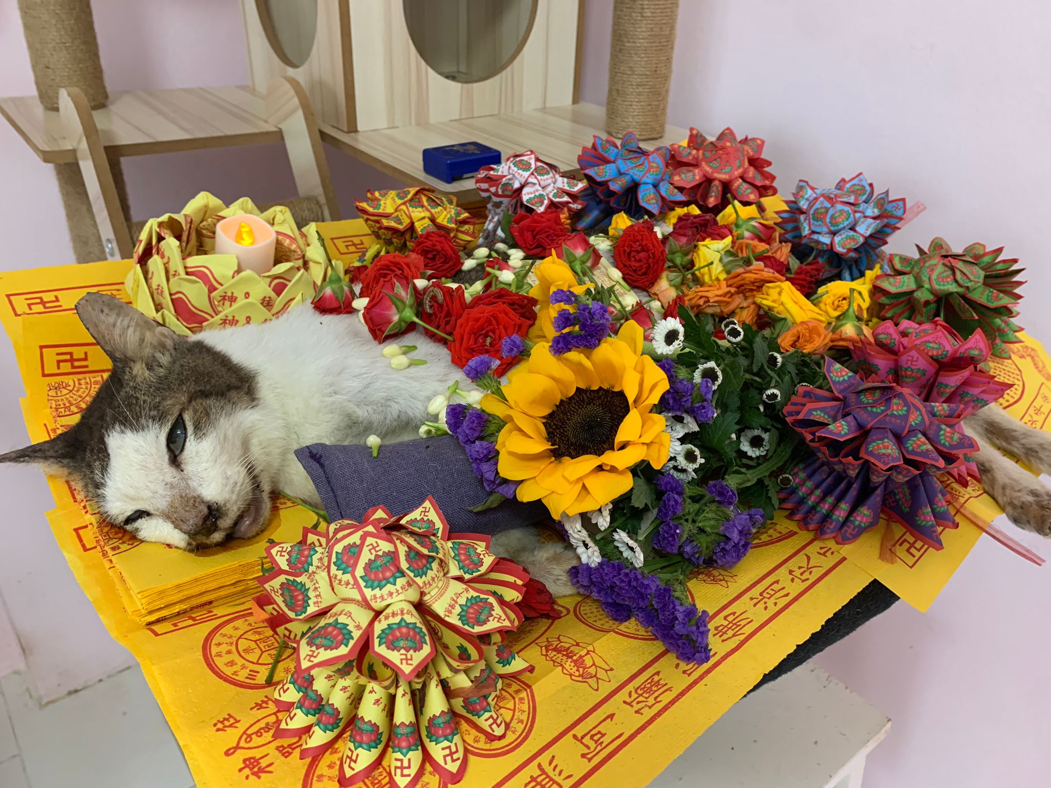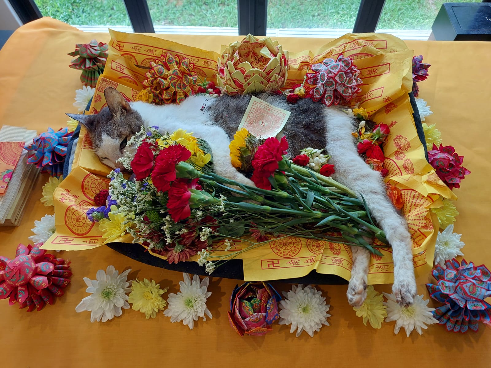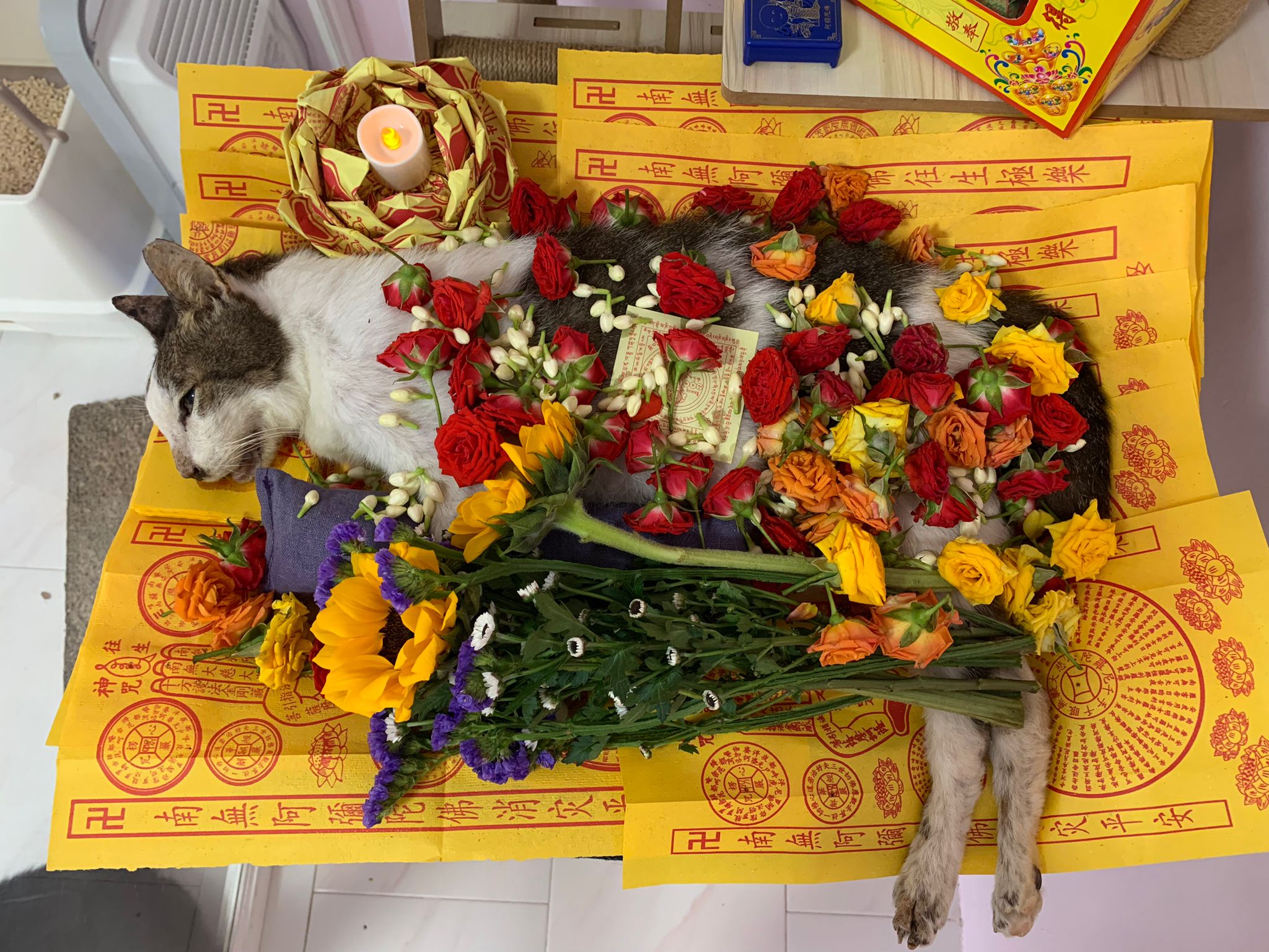 11.30am: cremation company came to fetch him. Informed them bed n pillow throw away. say bye bye to fei.