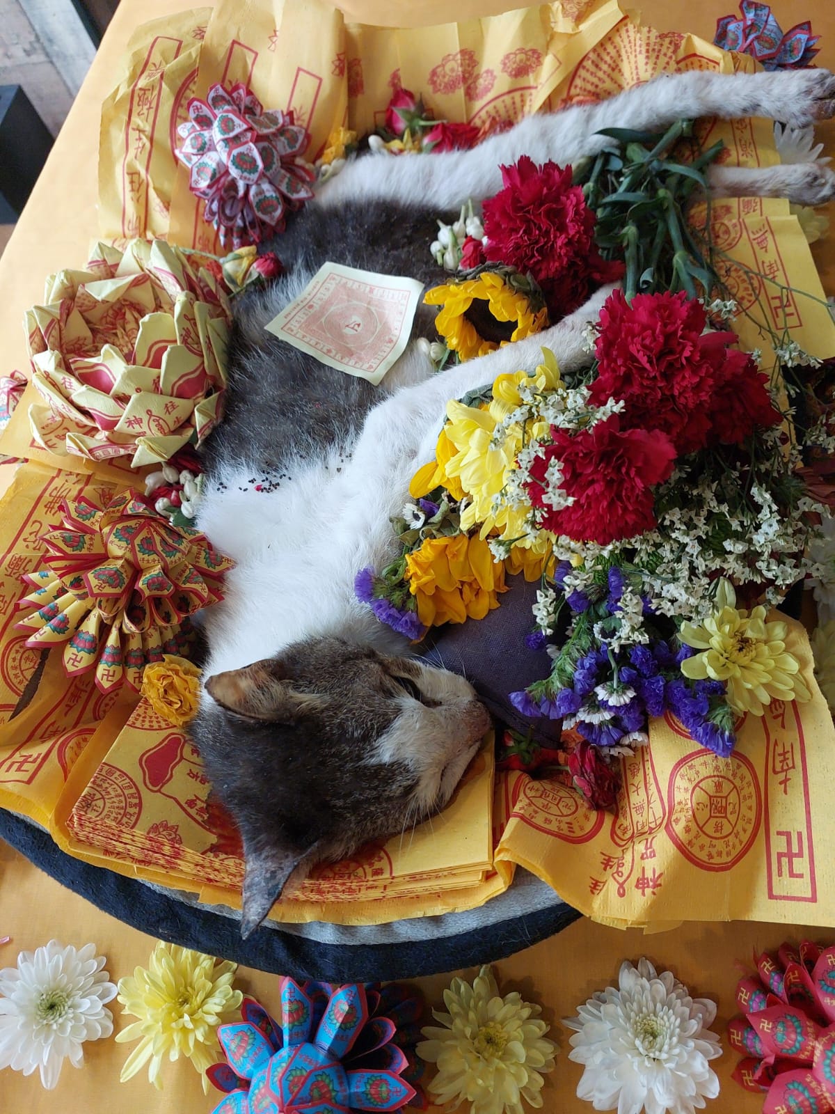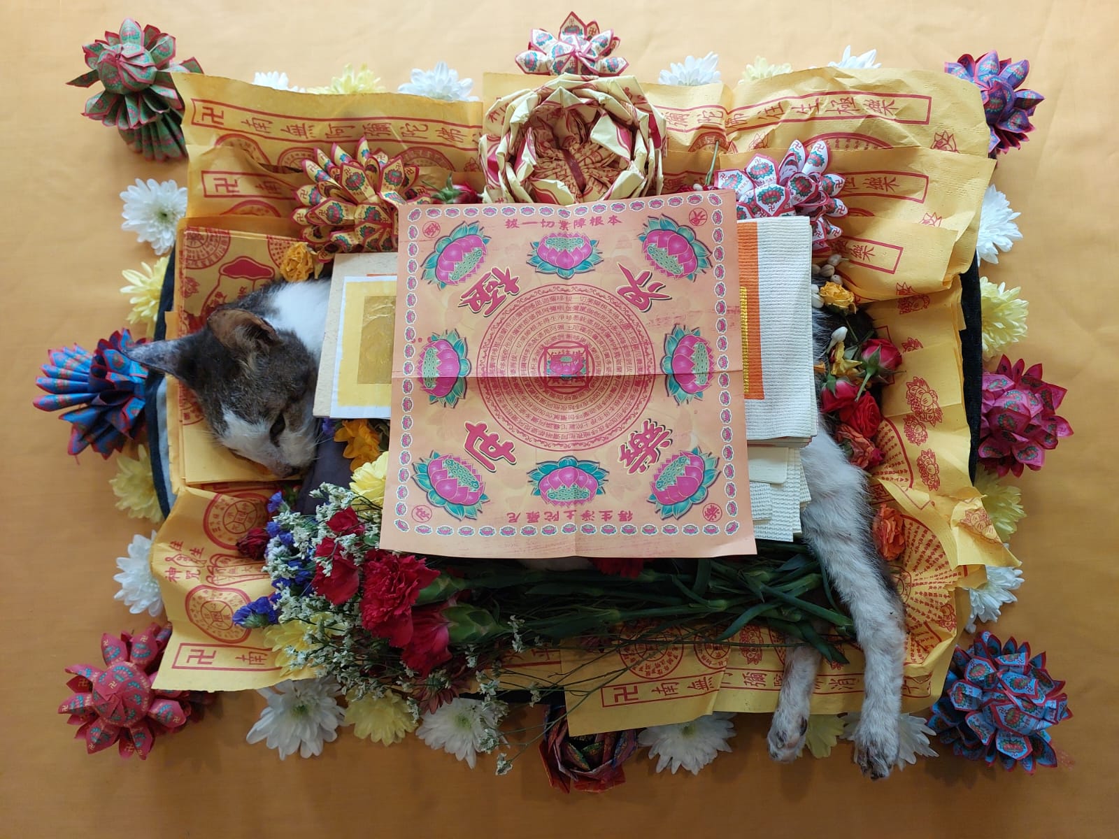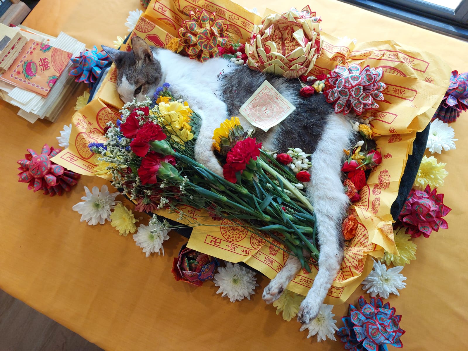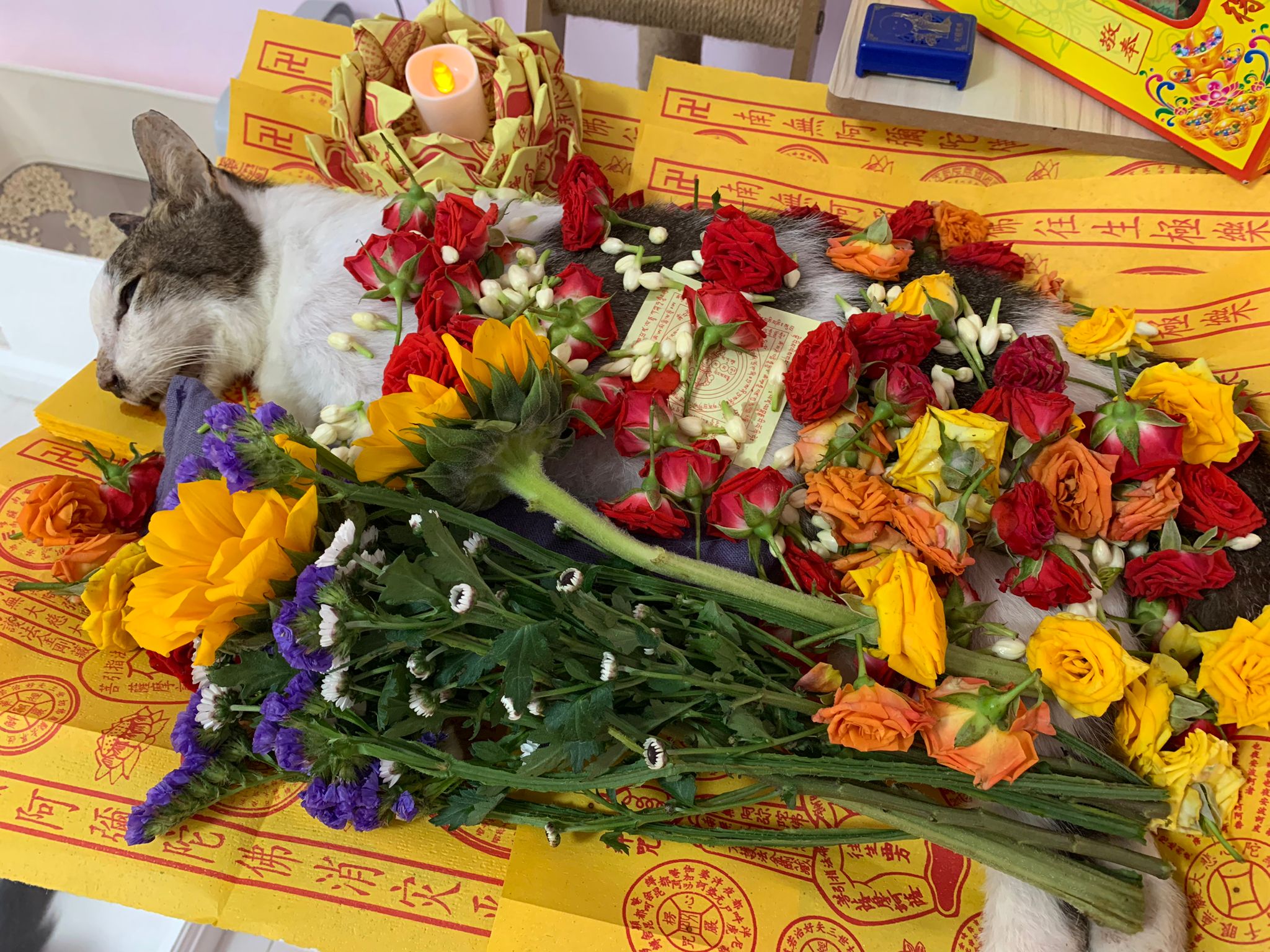 11.30am: cremation company came to fetch him. Informed them bed n pillow throw away. say bye bye to fei.