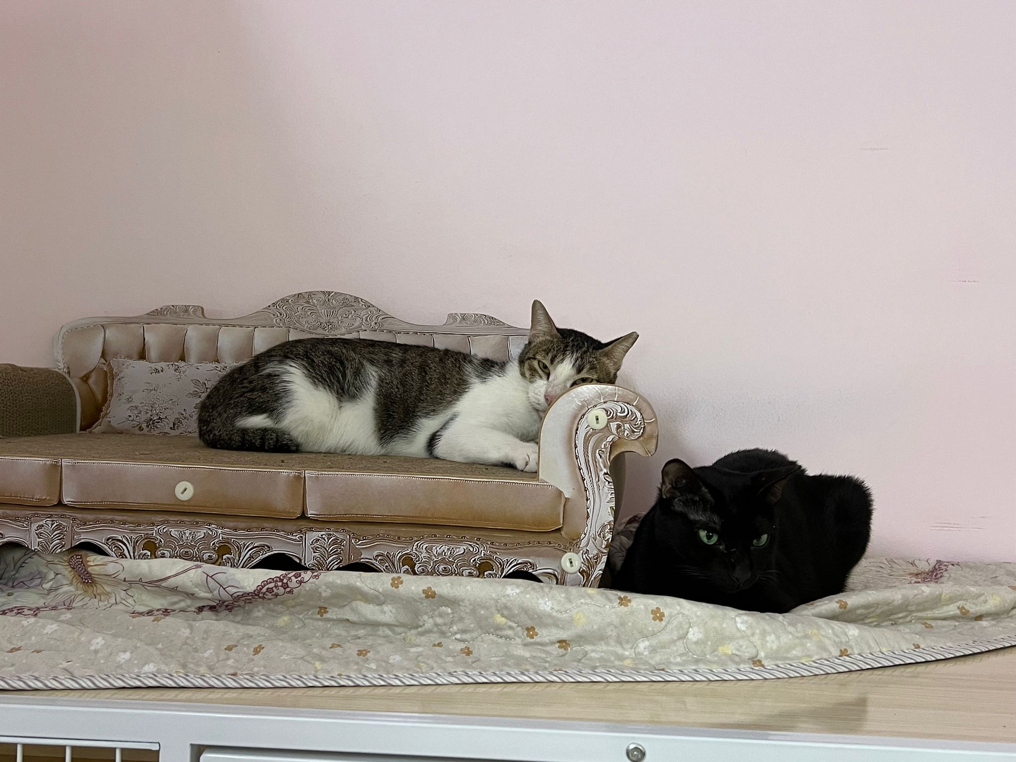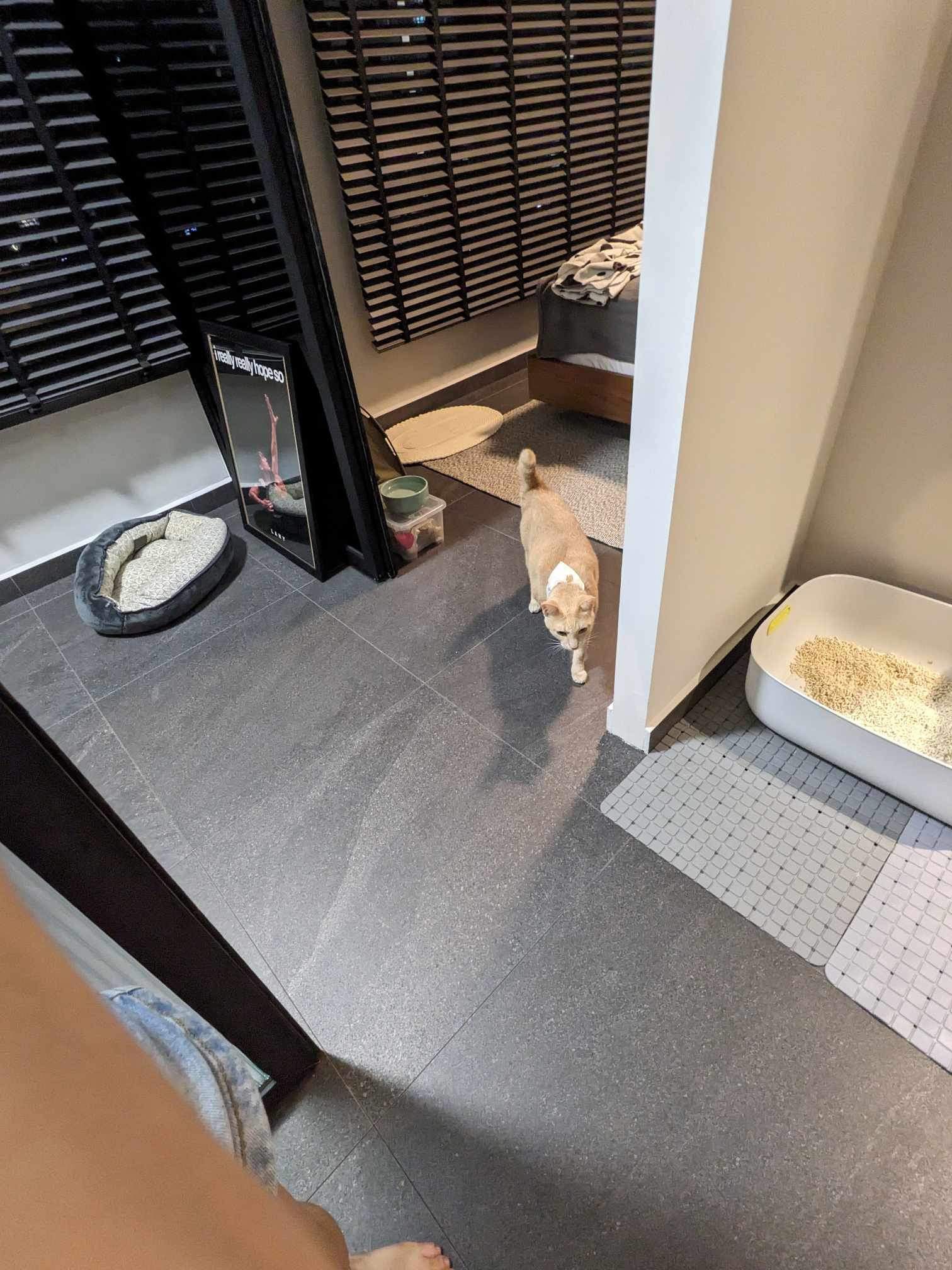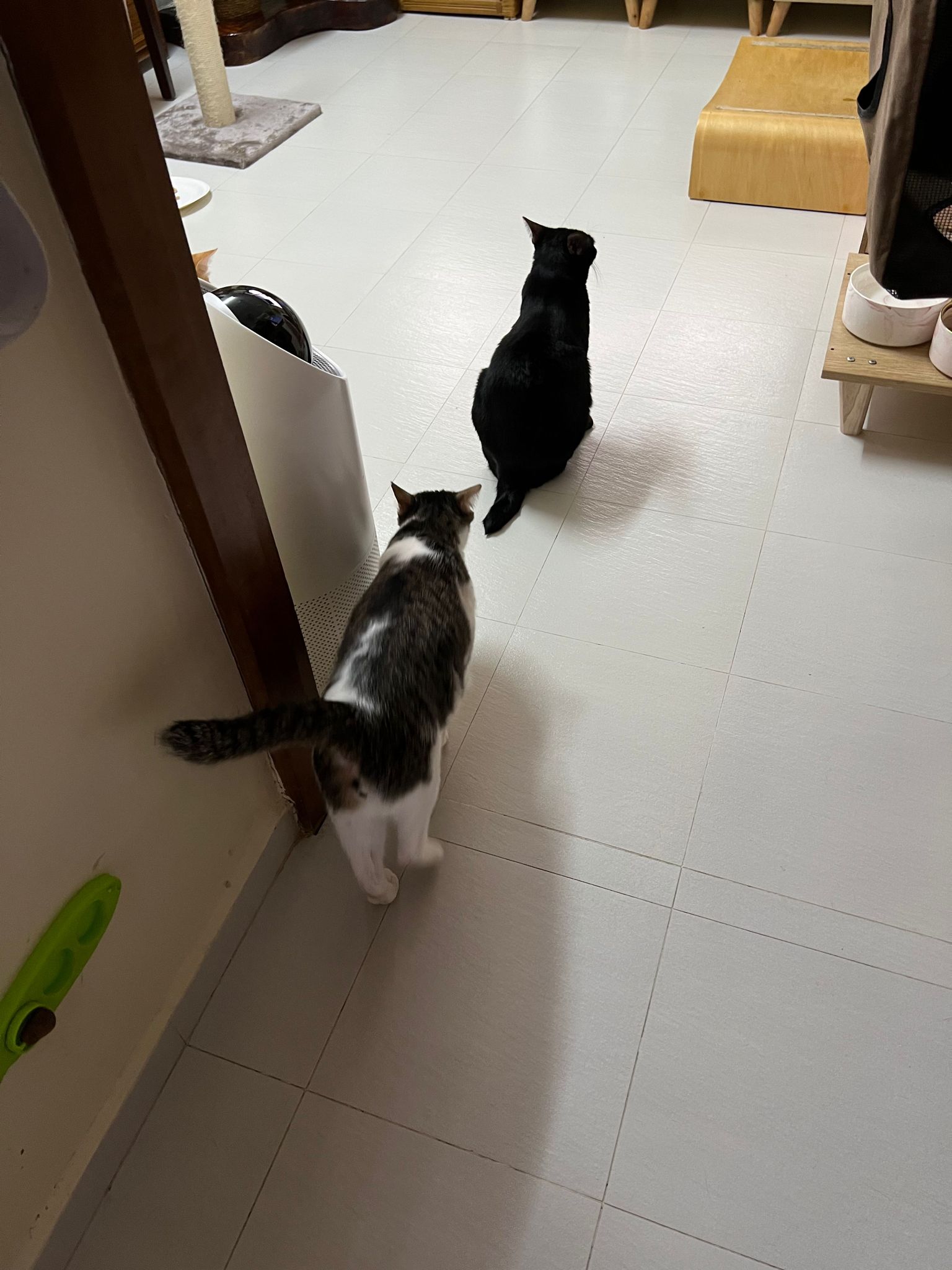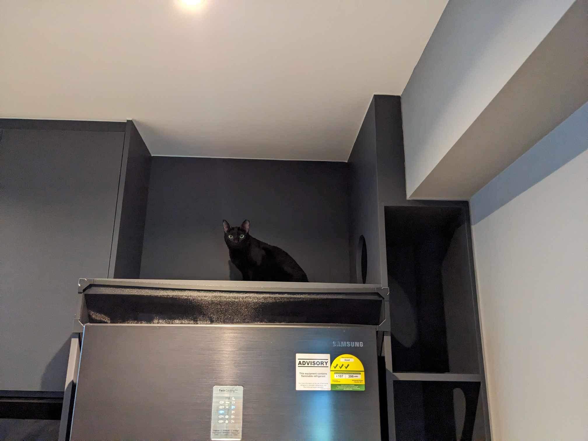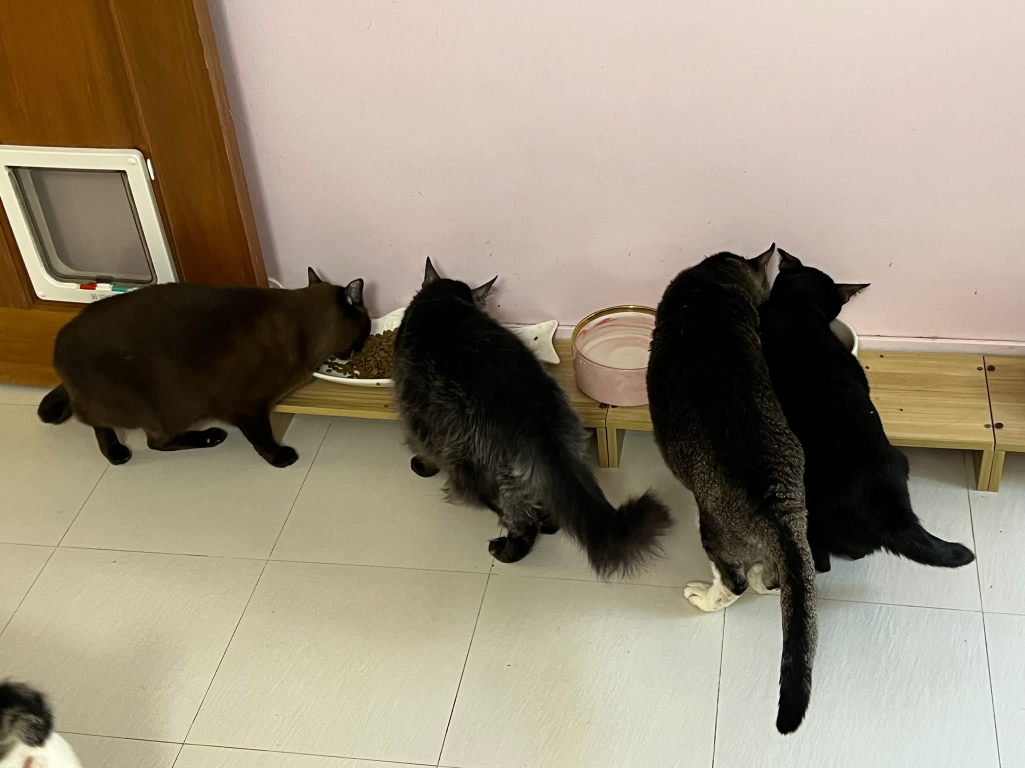 Mummy: “Simba saw Sheba a few times today through the glass door then he keep hissing. Think he stress, even the food also eat lesser. Sheba meanwhile eating dry food better than wet, also got drink water. She very good girl, listen to you. yesterday morning she already come rub rub when I squat down. Very good girl. Happy to see that she settle in very fast and eat very well. Most of her dry food meals finish 100%. She yesterday alr find her way up to the relax area on top of fridge and on top of dryer. Very brave and smart.”