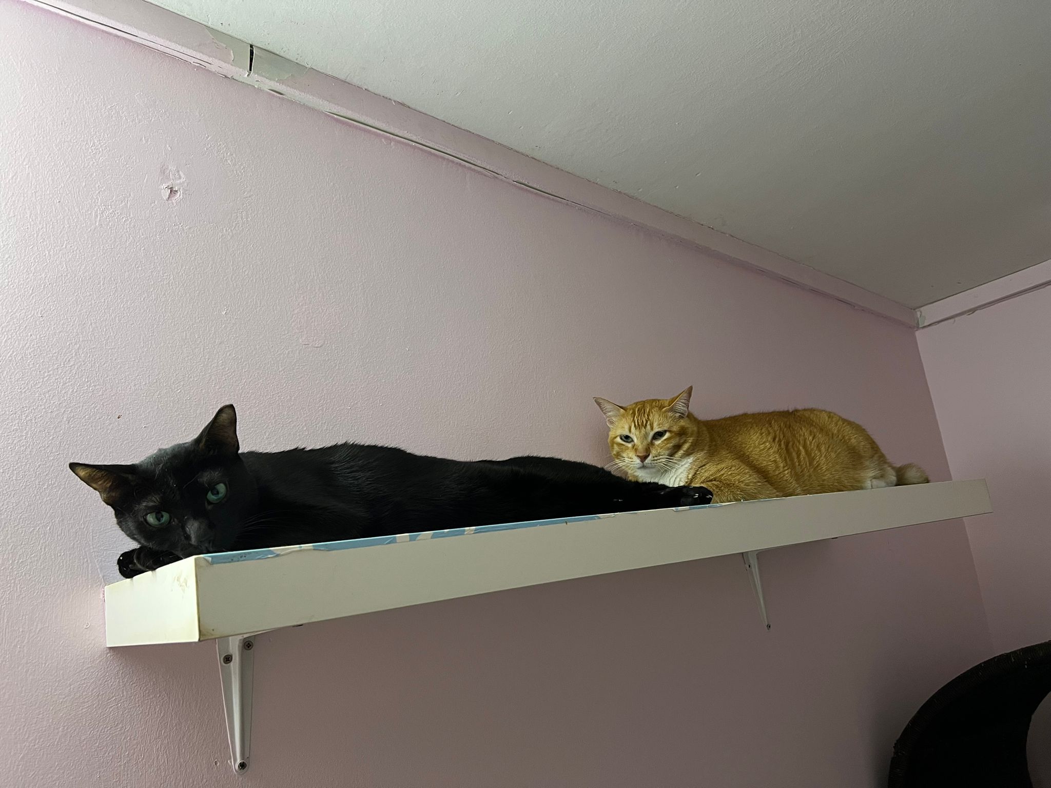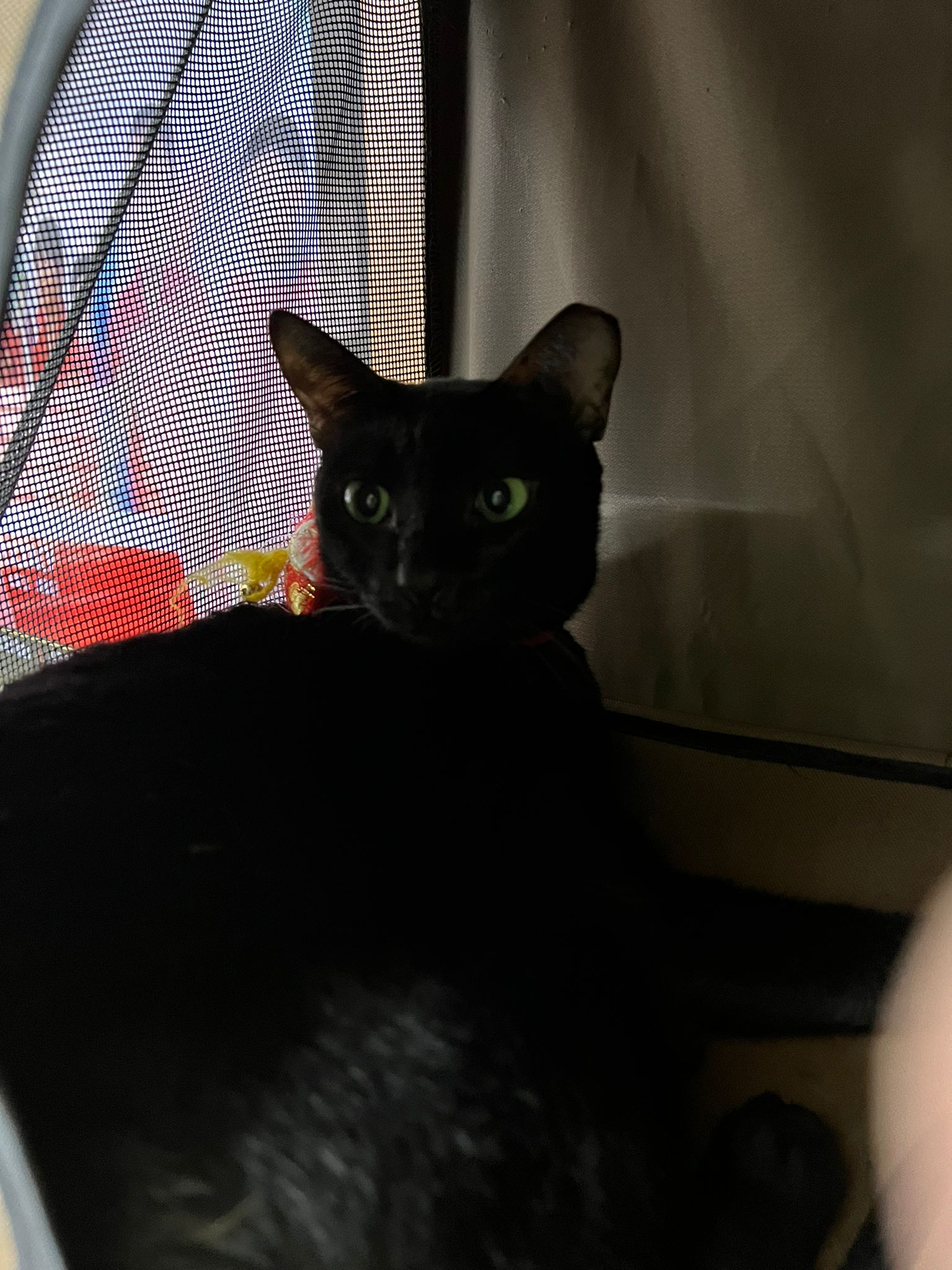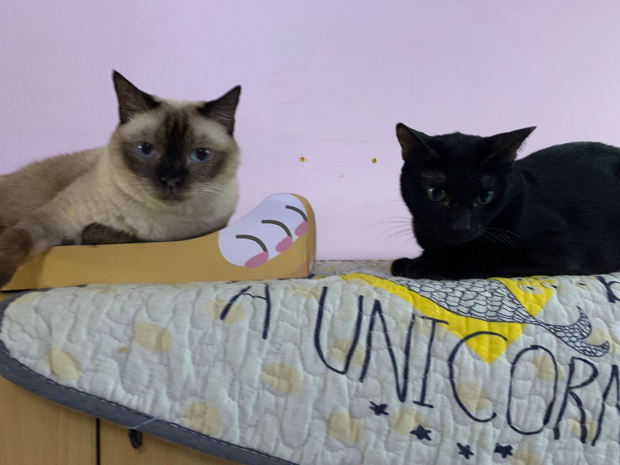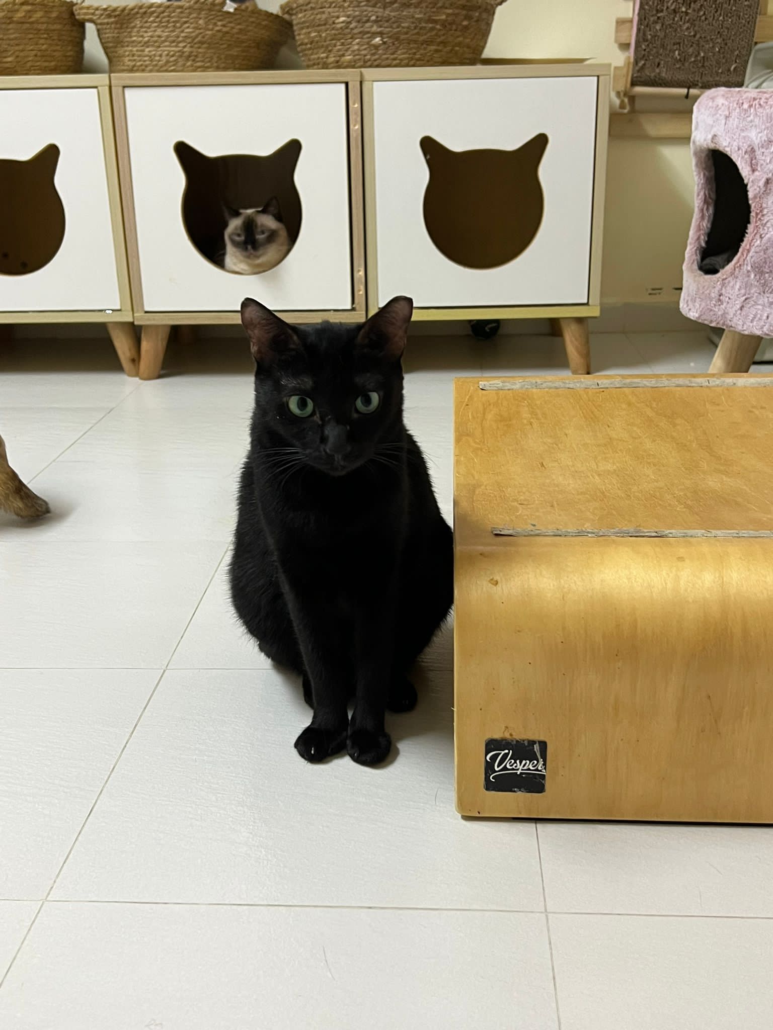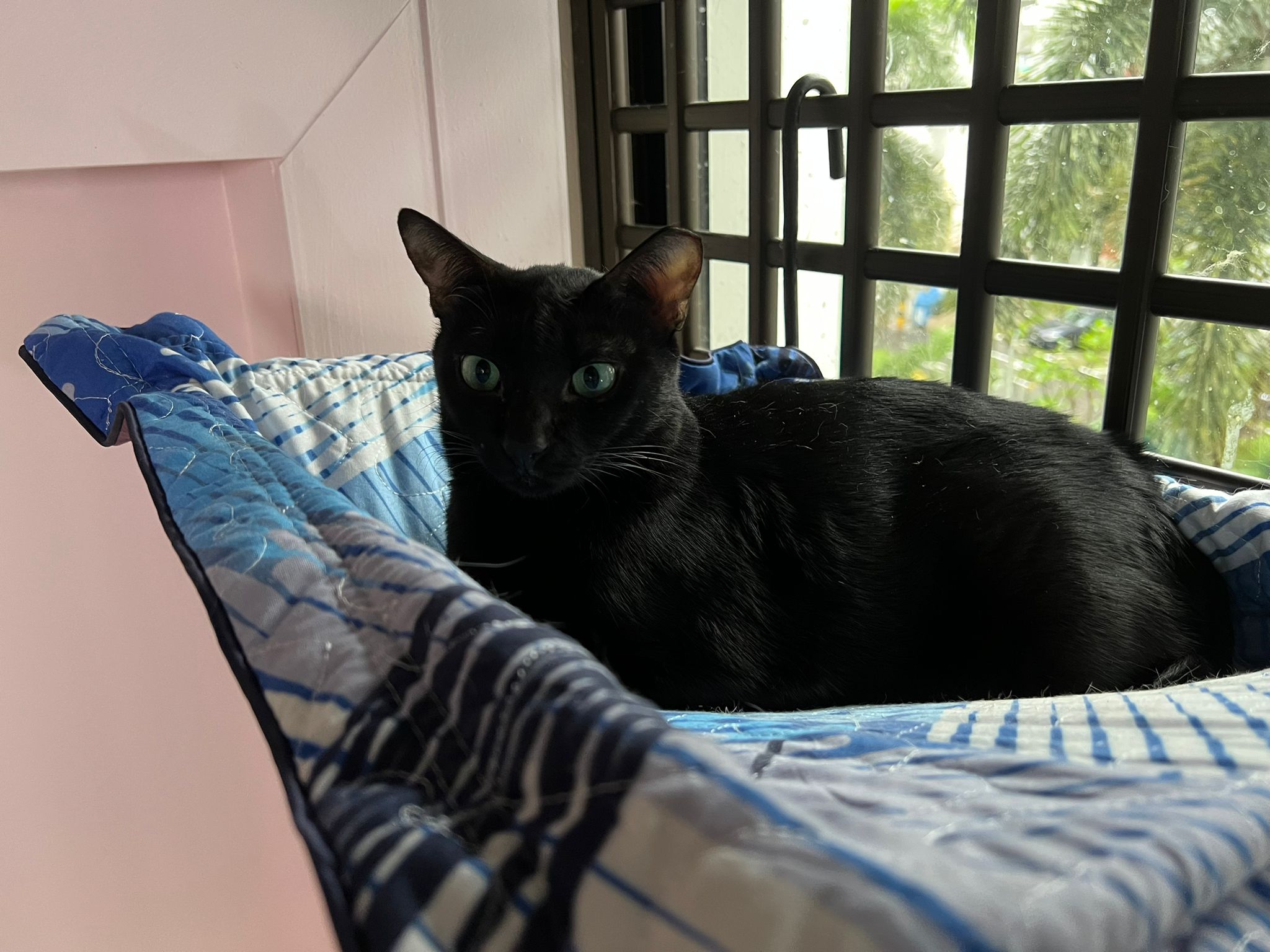 Mummy: “Simba saw Sheba a few times today through the glass door then he keep hissing. Think he stress, even the food also eat lesser. Sheba meanwhile eating dry food better than wet, also got drink water. She very good girl, listen to you. yesterday morning she already come rub rub when I squat down. Very good girl. Happy to see that she settle in very fast and eat very well. Most of her dry food meals finish 100%. She yesterday alr find her way up to the relax area on top of fridge and on top of dryer. Very brave and smart.”