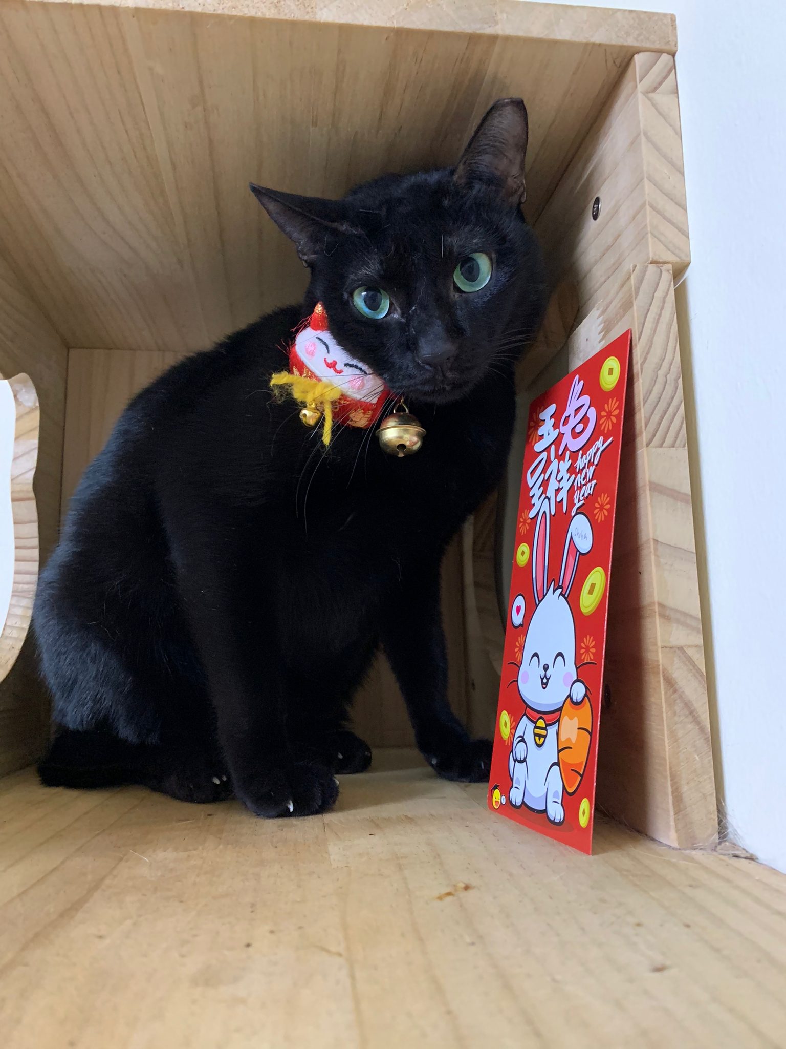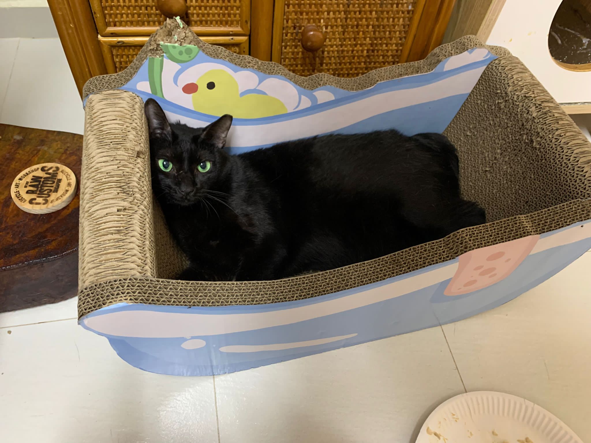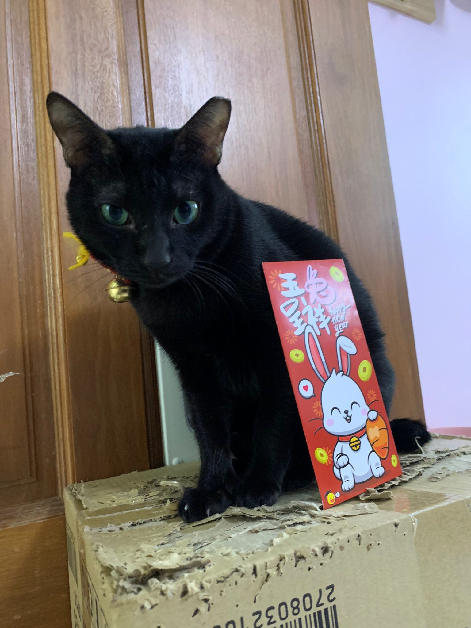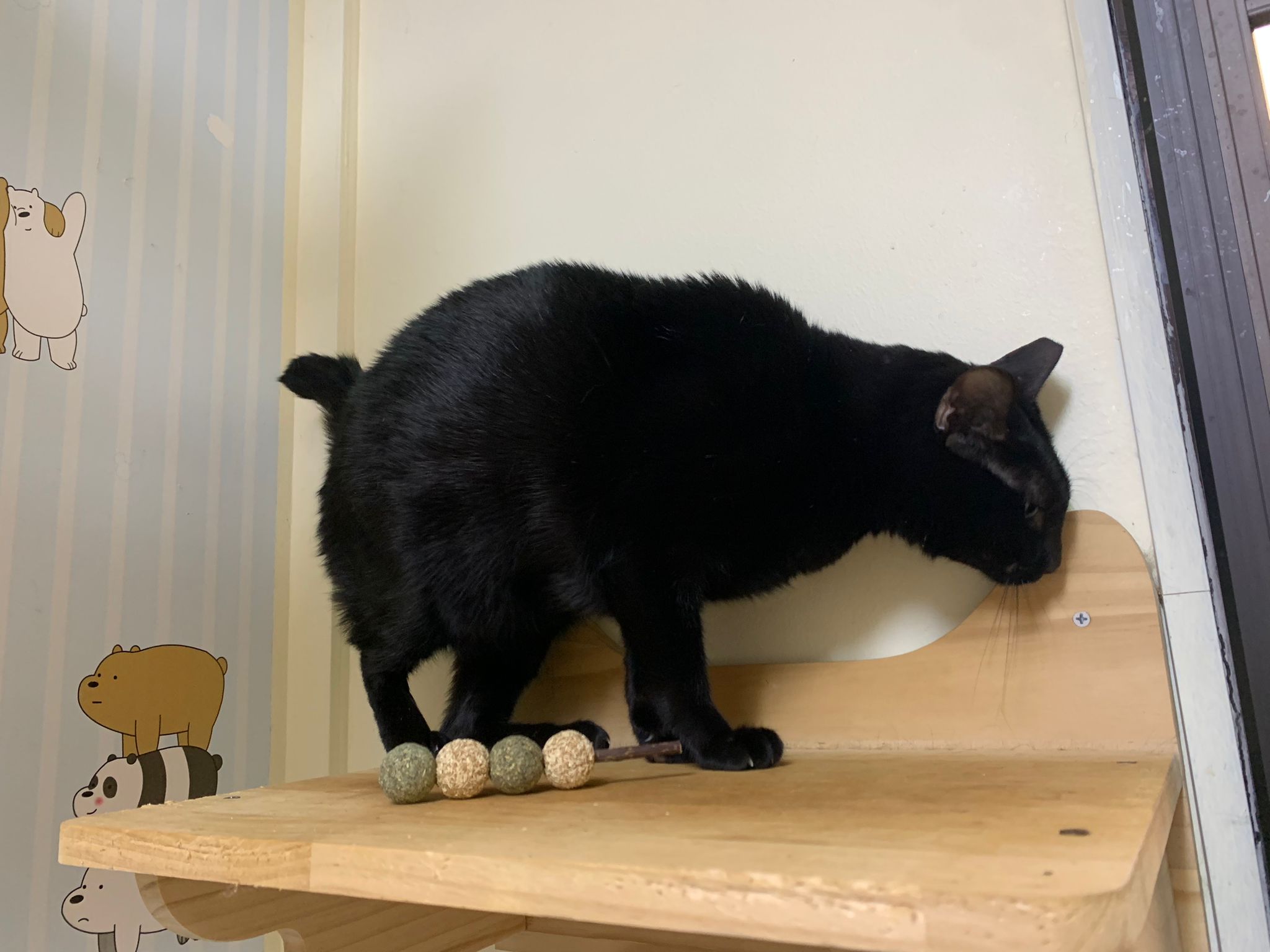 Morning: junior n Nala celebrate their 4th bday in 猫房. Got ciao chicken, sheba meow meow meow the eyes so big. Ha give her a bit from both the bday kids plates. She is happy.