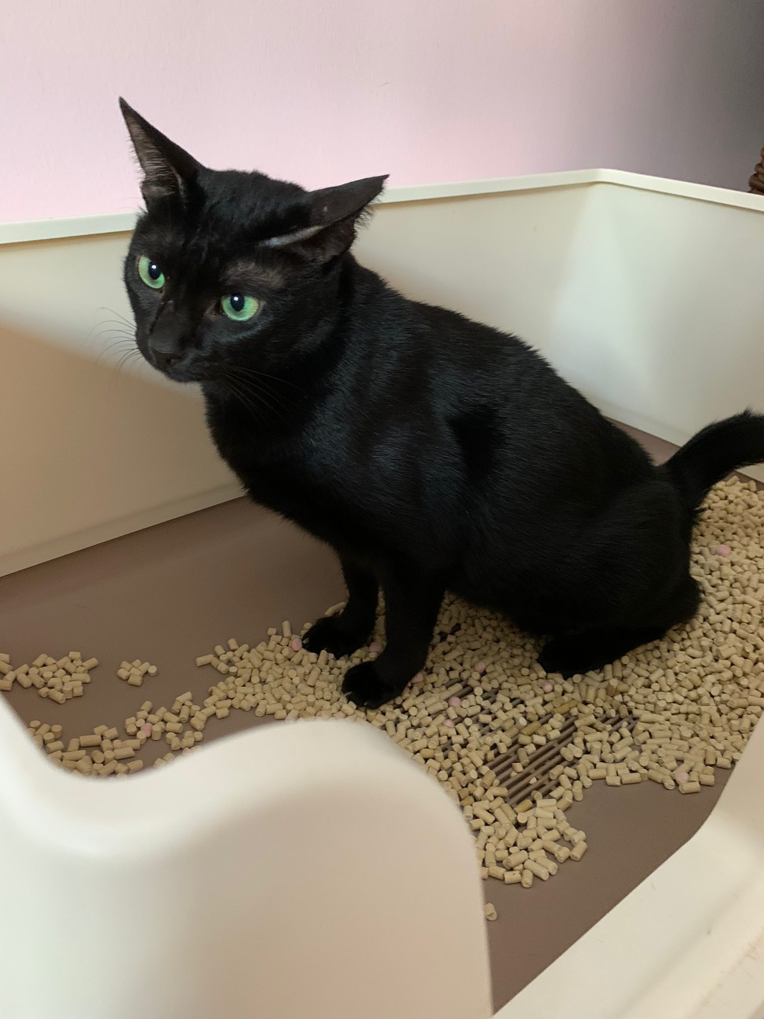 Morning: catch her peeing when I haven’t put new sheet of unicharm Peepad – yellow pee concentrated. But slight more yellow.