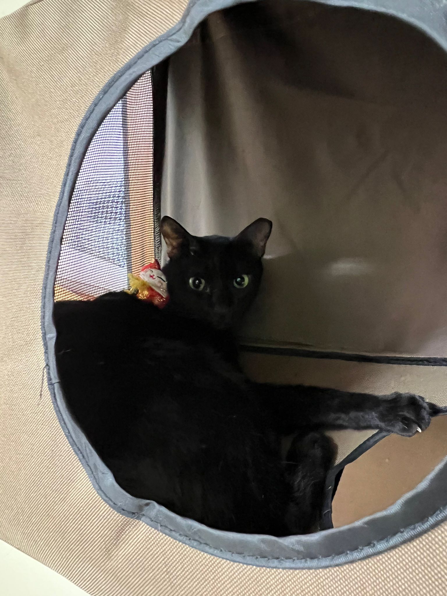 active when I reach 猫房, I only put her into bag when we r leaving, banging in the bag loh, I so scare bag will give Way. Lucky not metal box, face sure disfigured.